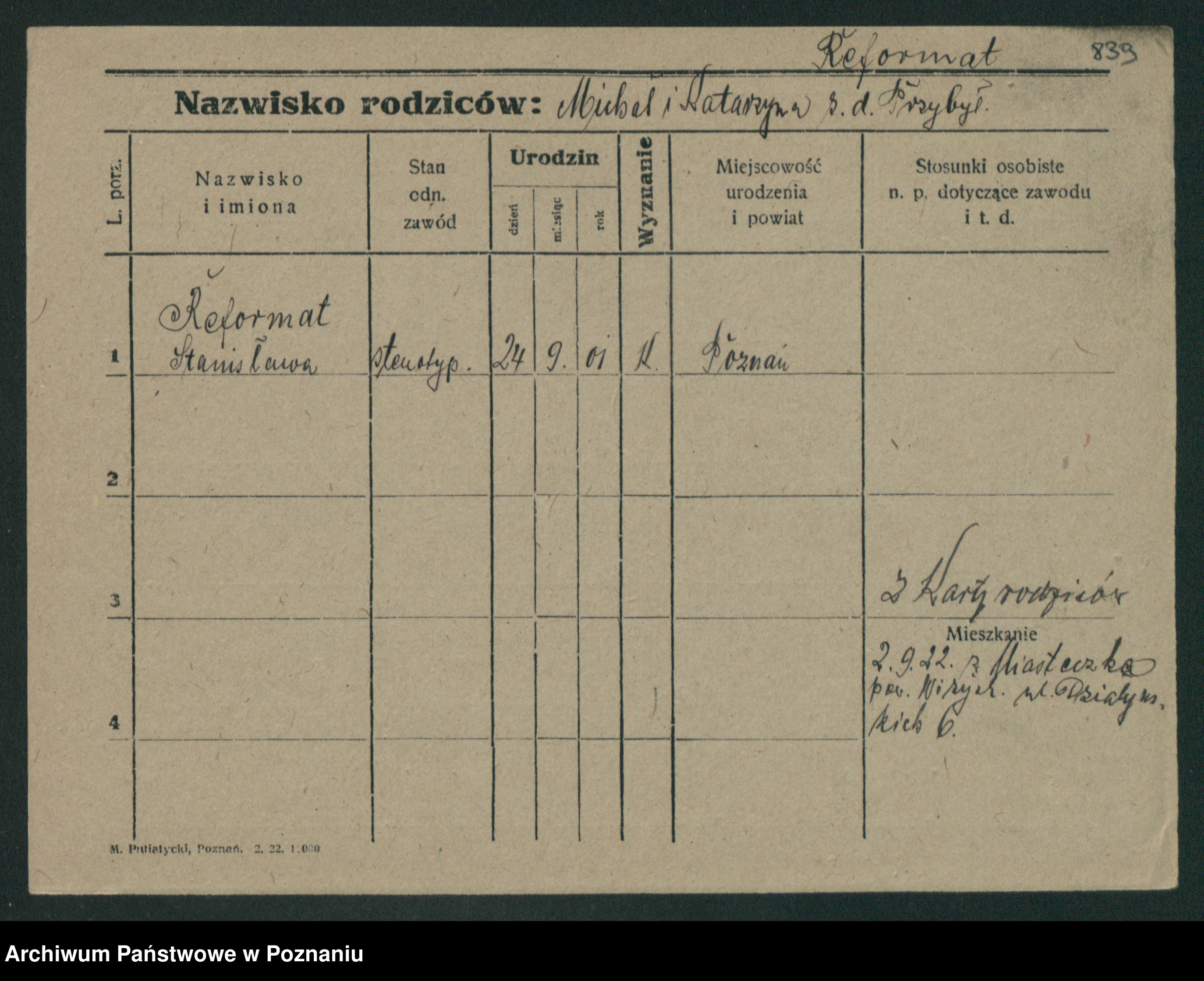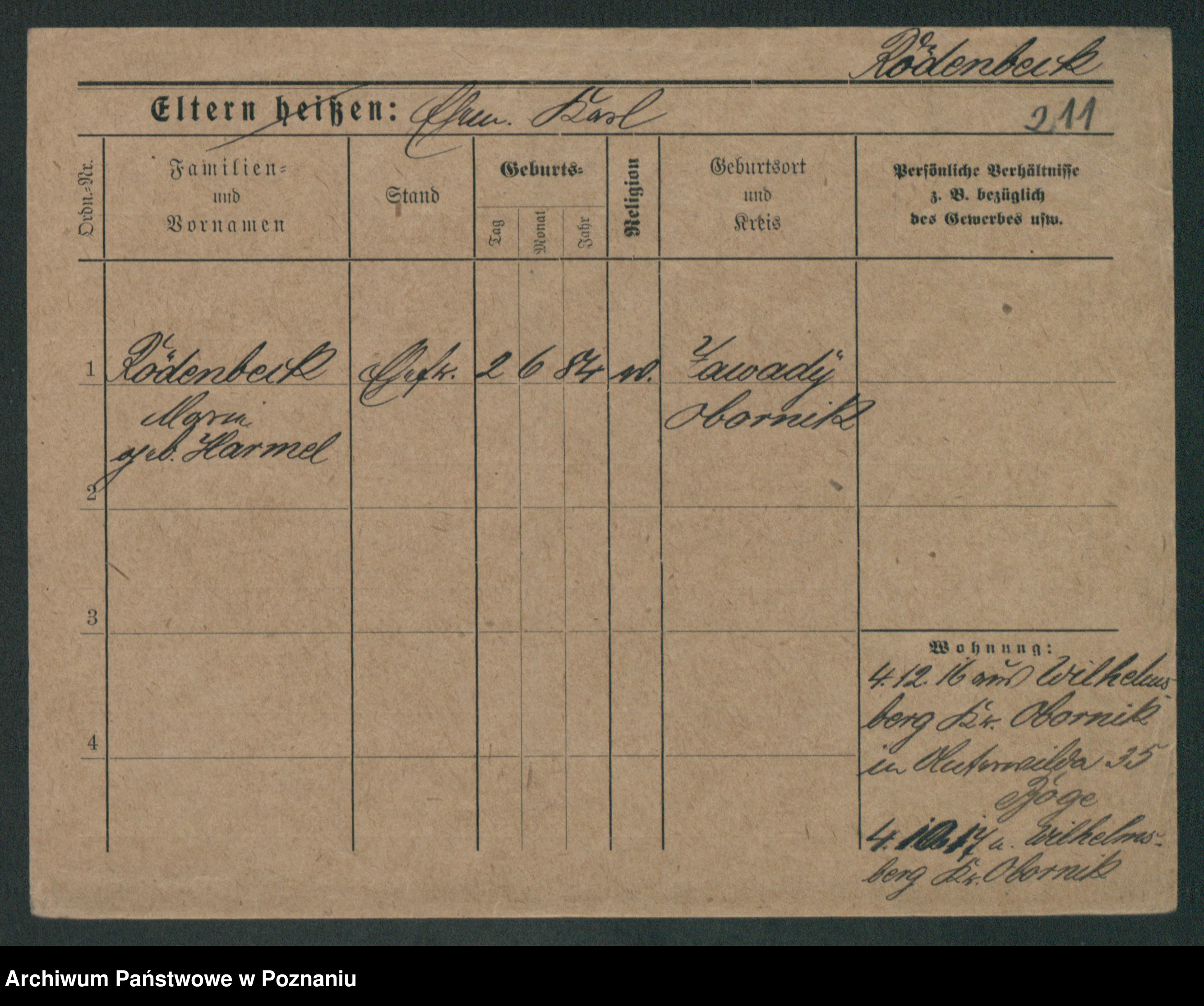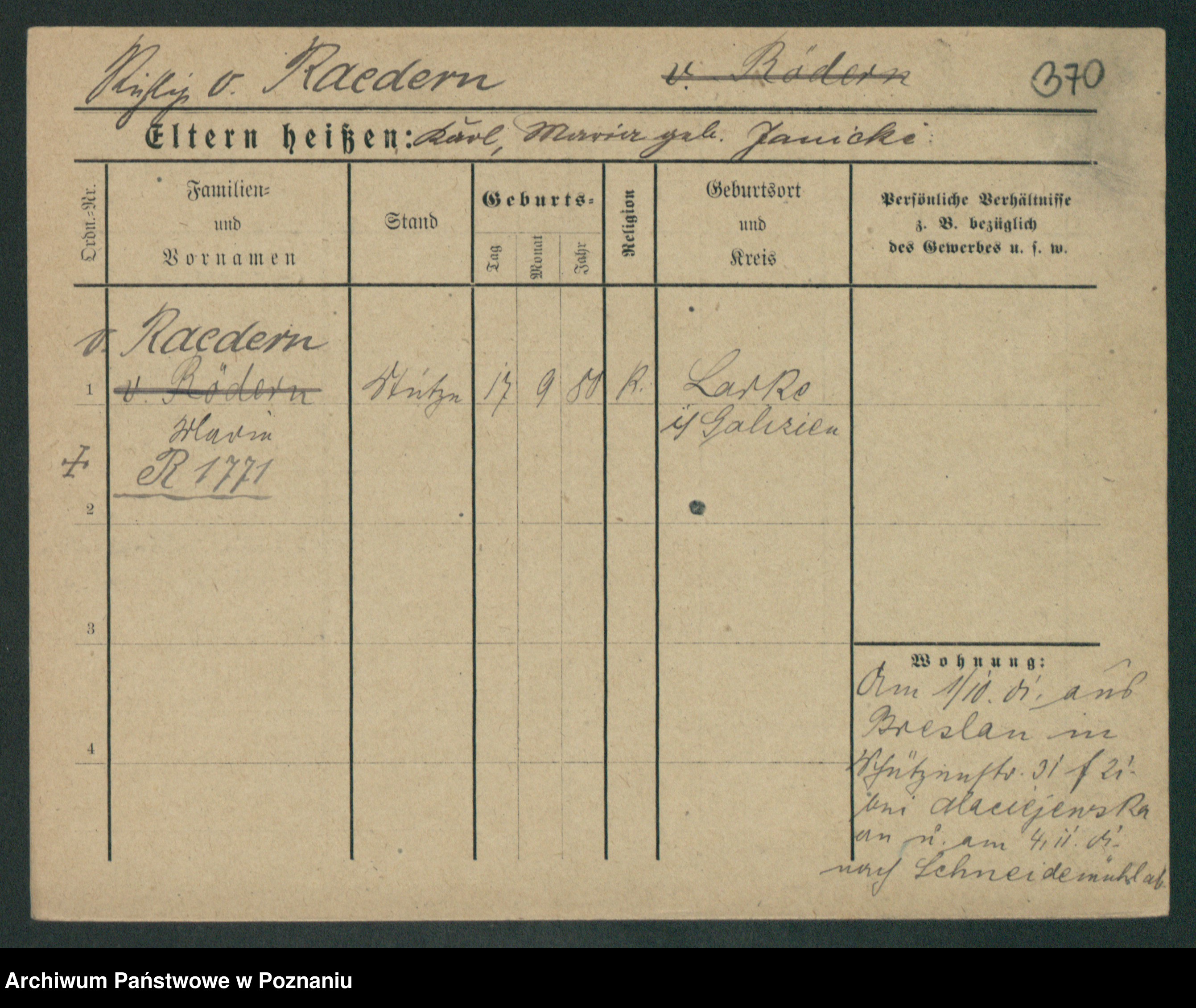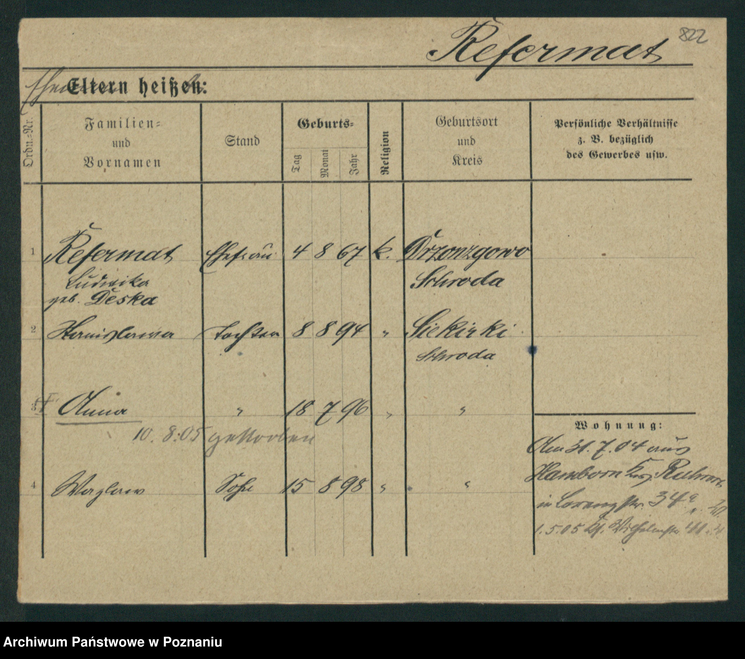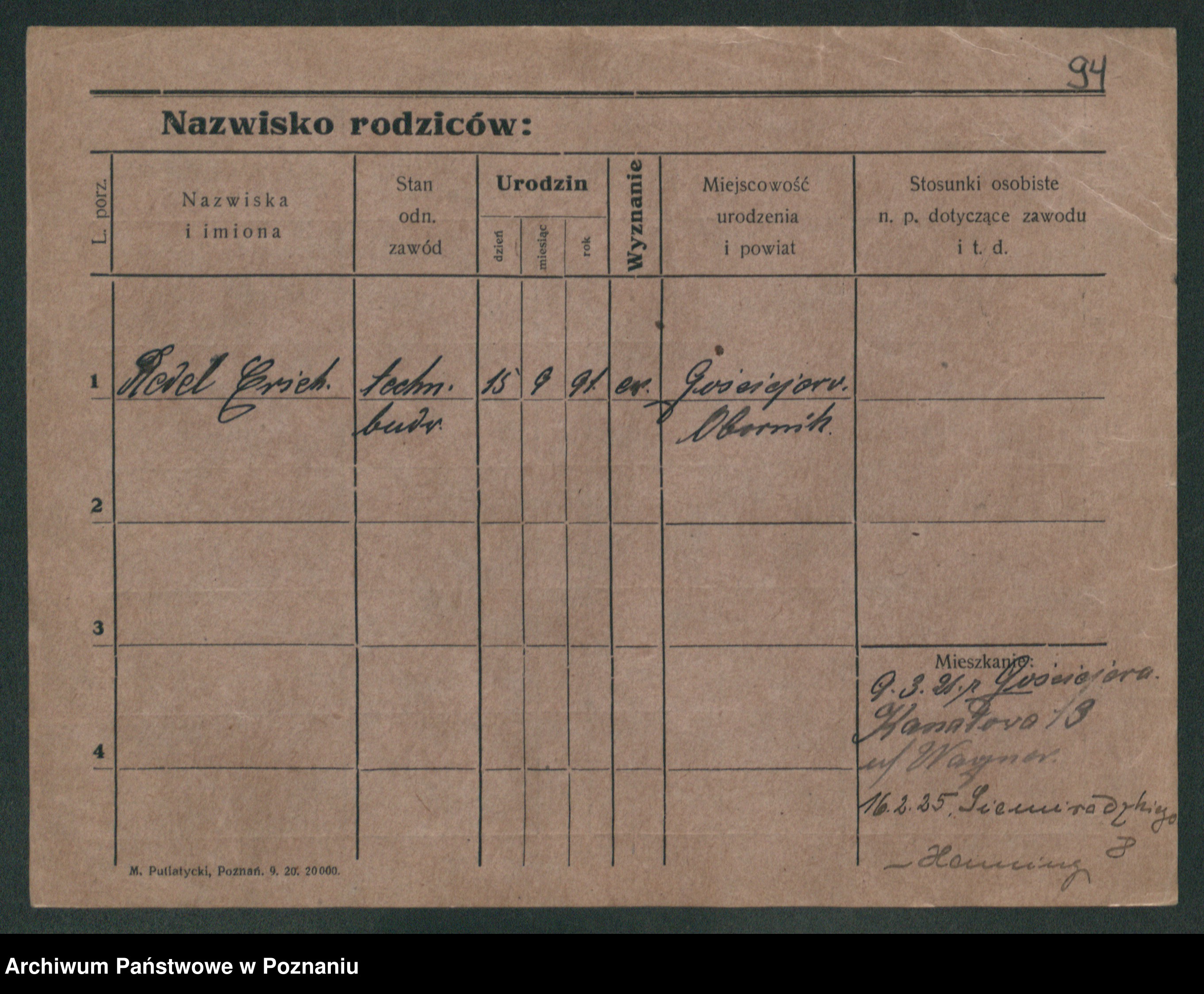 Podgląd karty osobowej dostępny jest po kliknięciu na nazwisko lub ikonkę karty. Można dokonywać powiększenia (ikony na górze) lub przechodzić między kolejnymi skanami (strzałki po bokach).