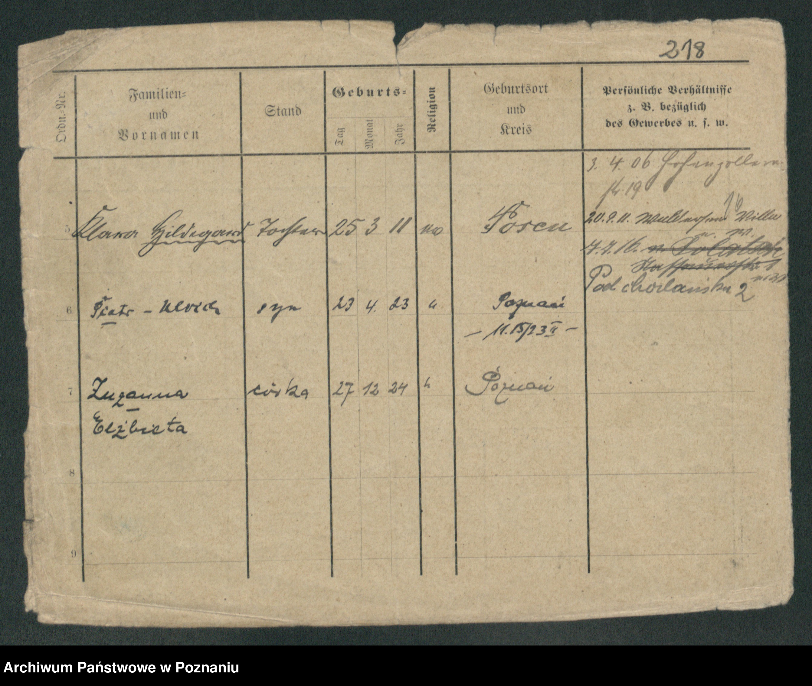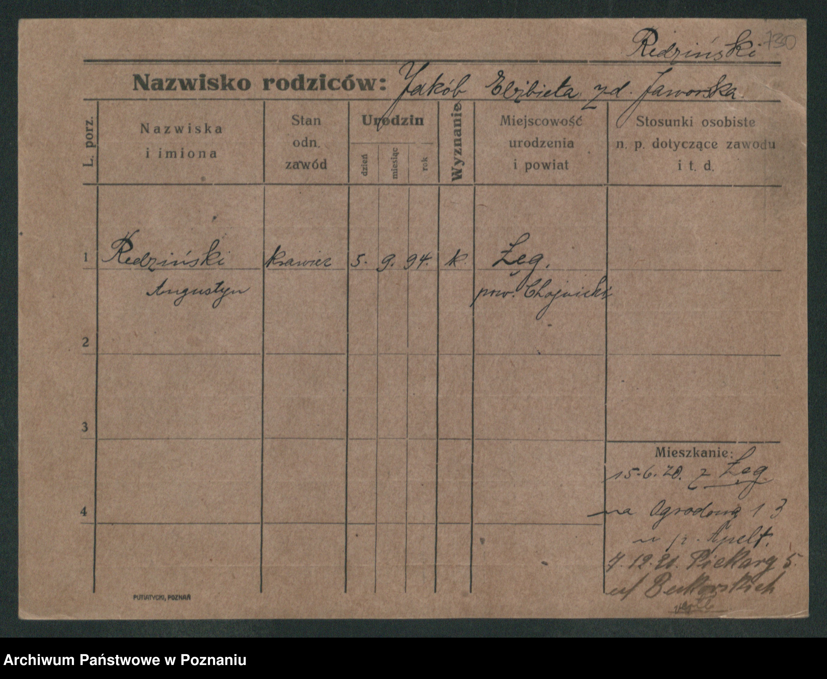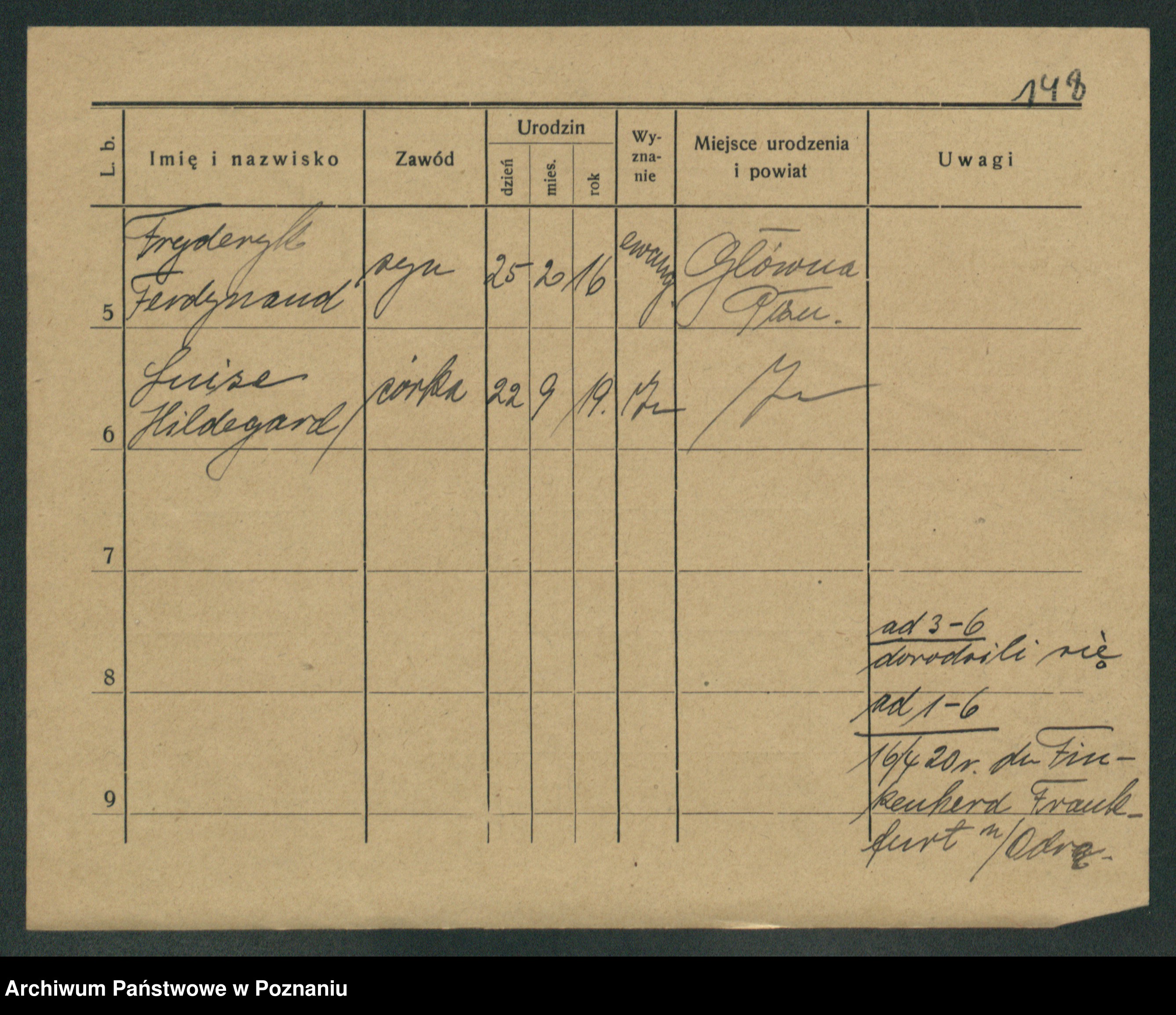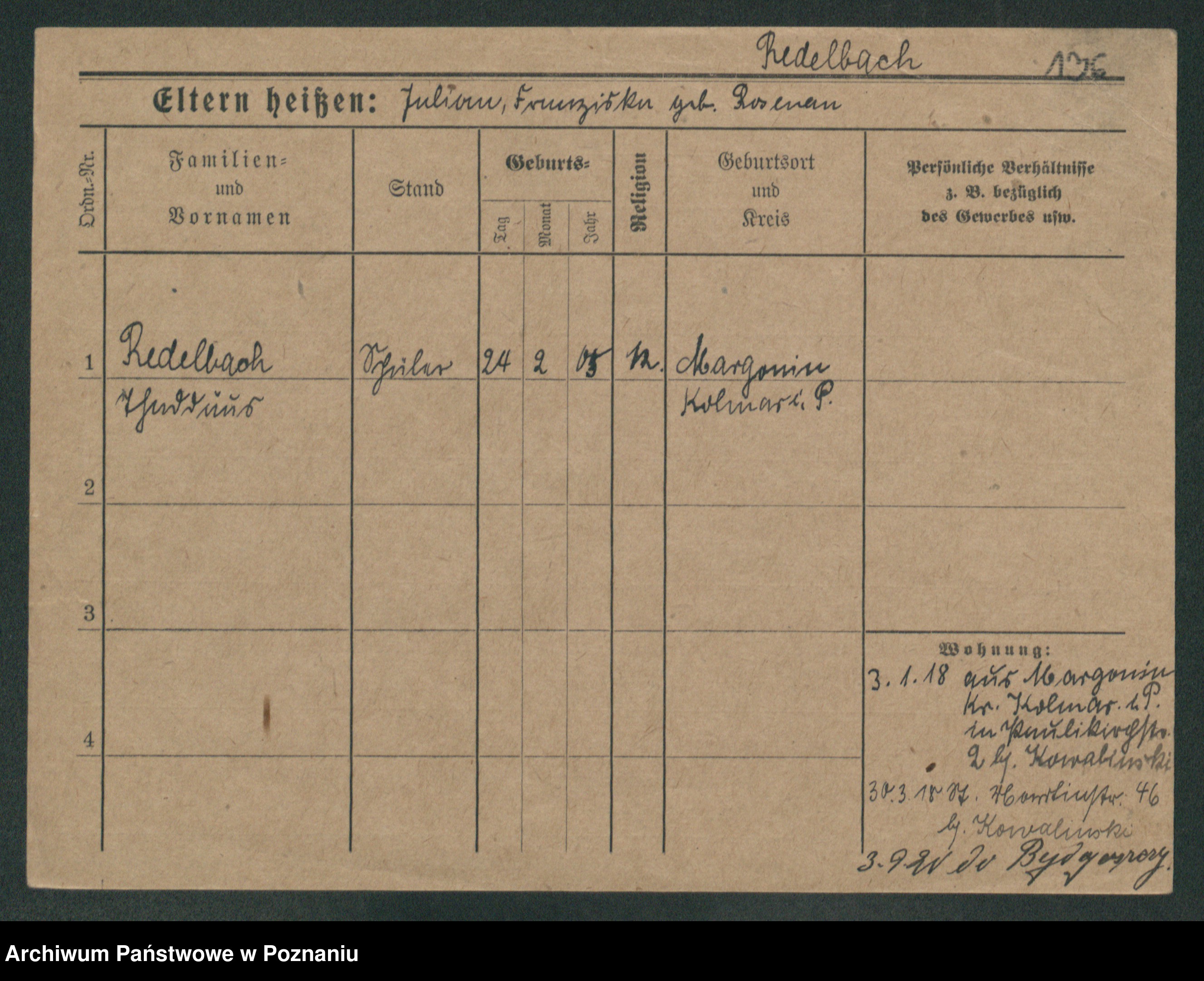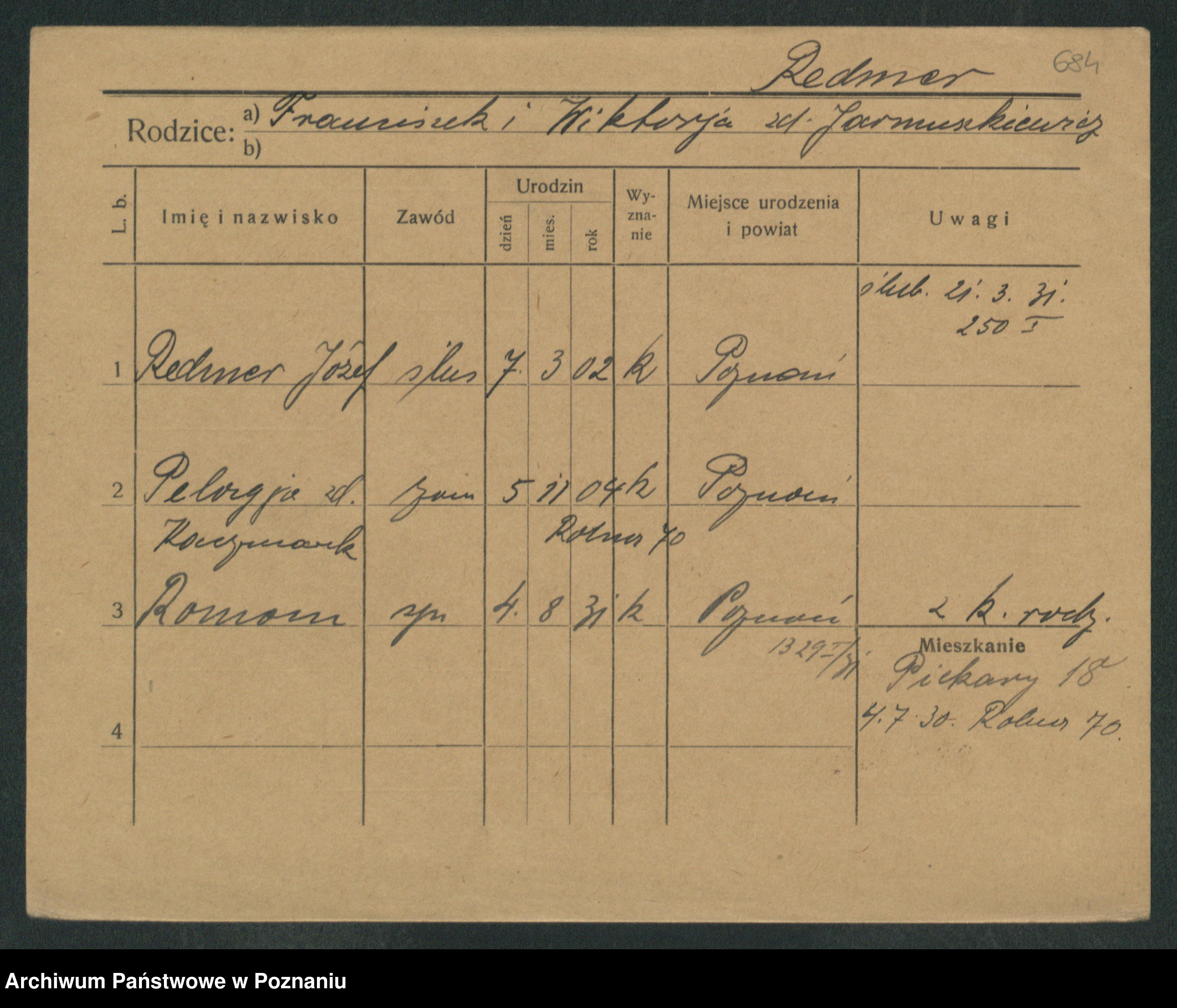 Podgląd karty osobowej dostępny jest po kliknięciu na nazwisko lub ikonkę karty. Można dokonywać powiększenia (ikony na górze) lub przechodzić między kolejnymi skanami (strzałki po bokach).