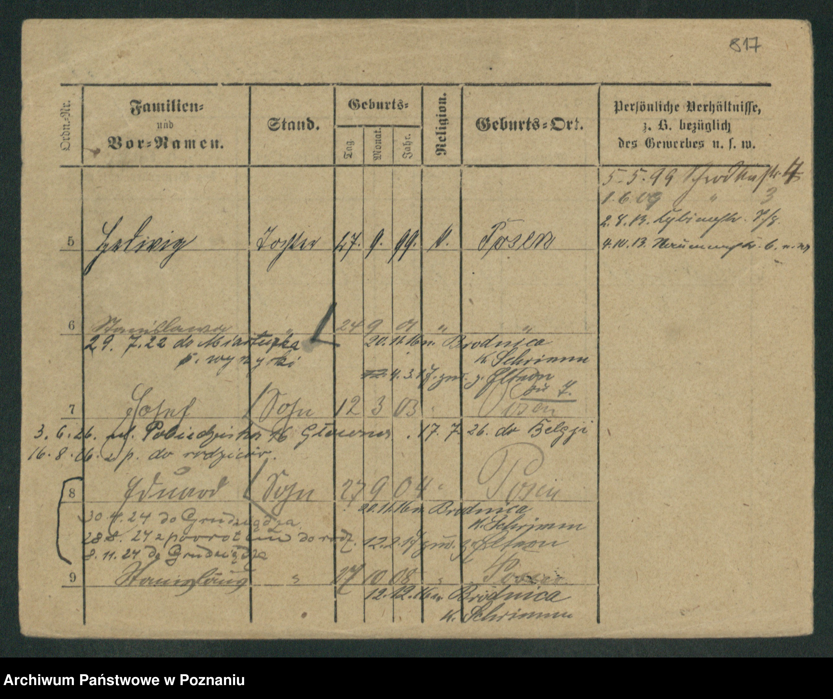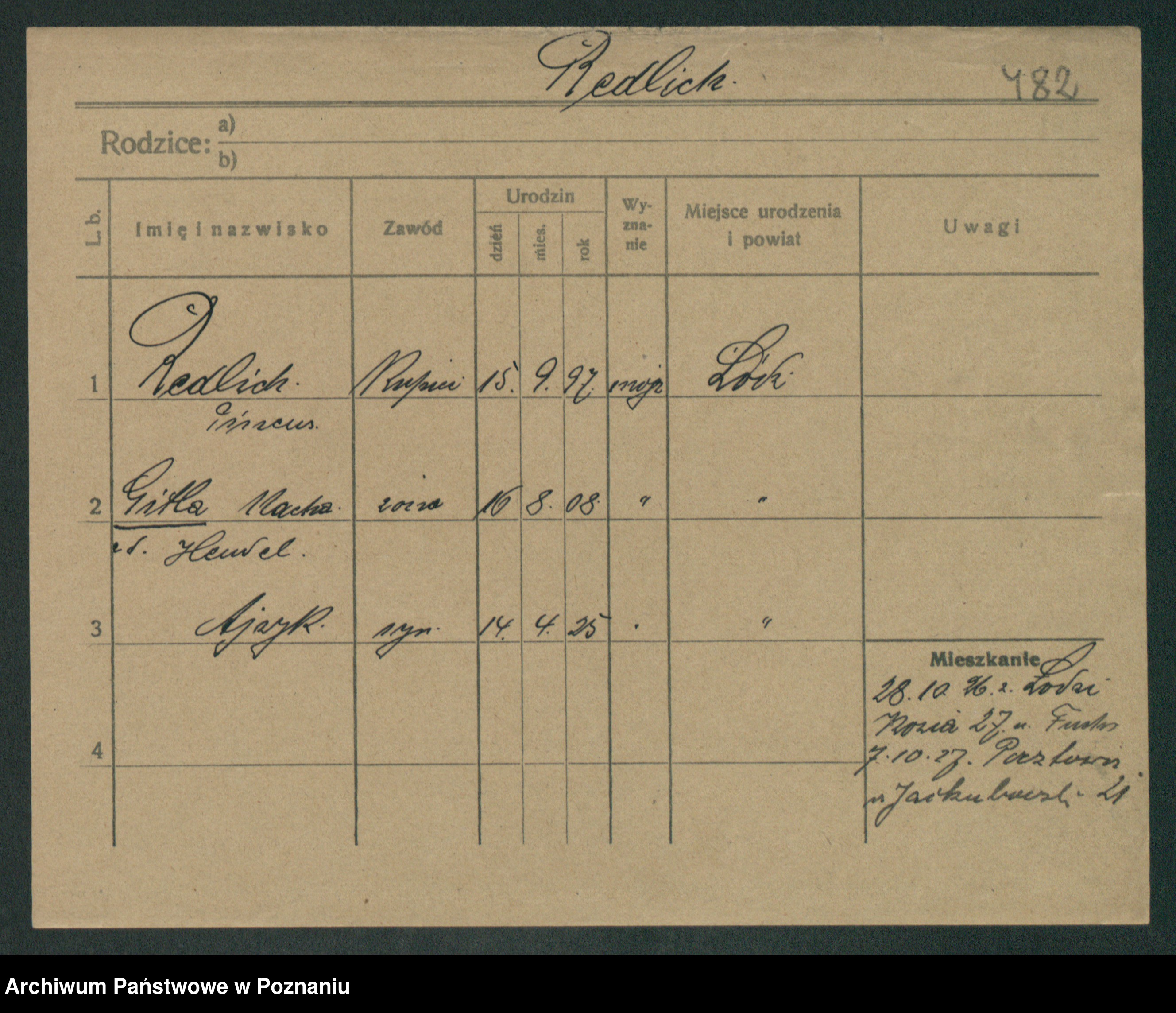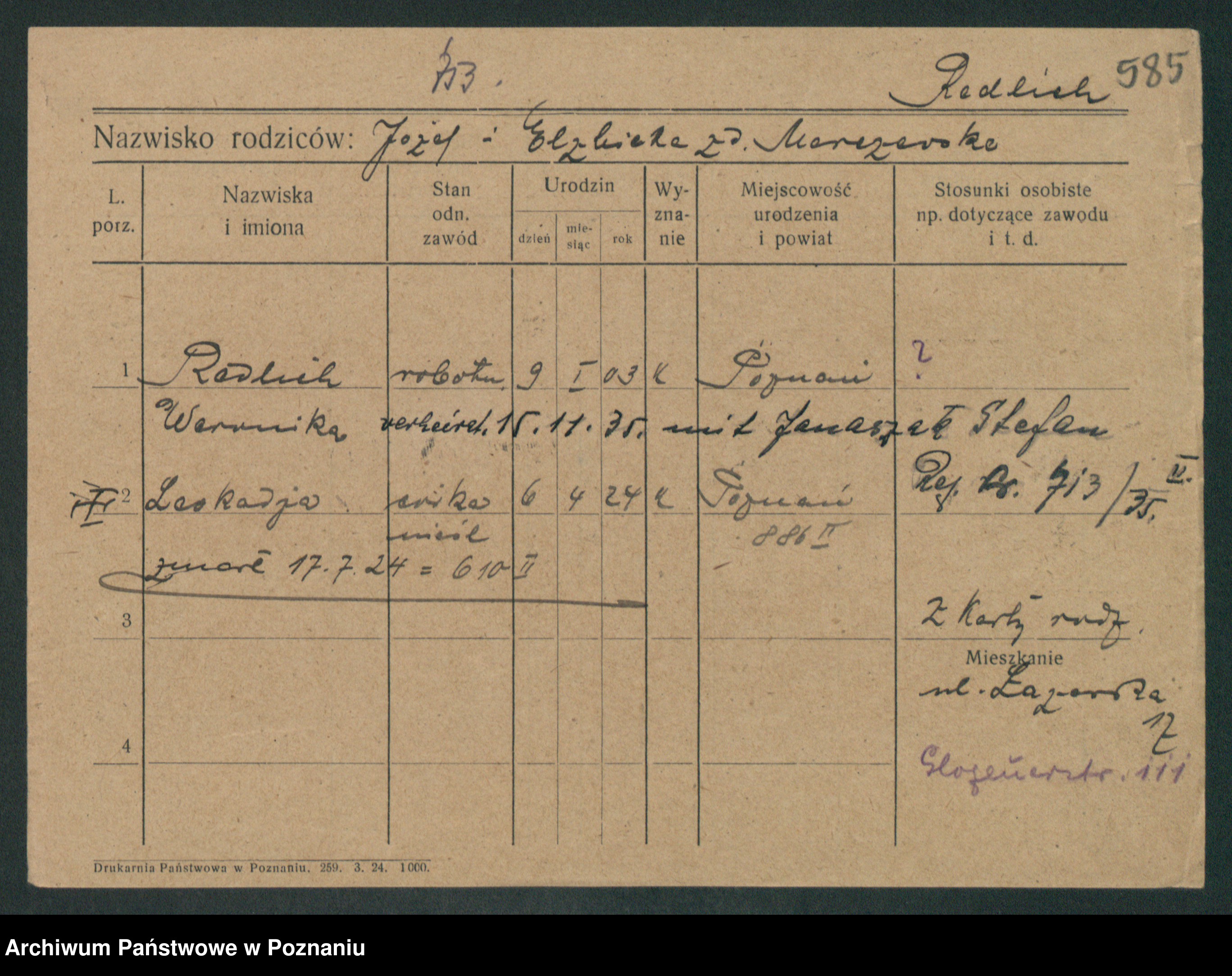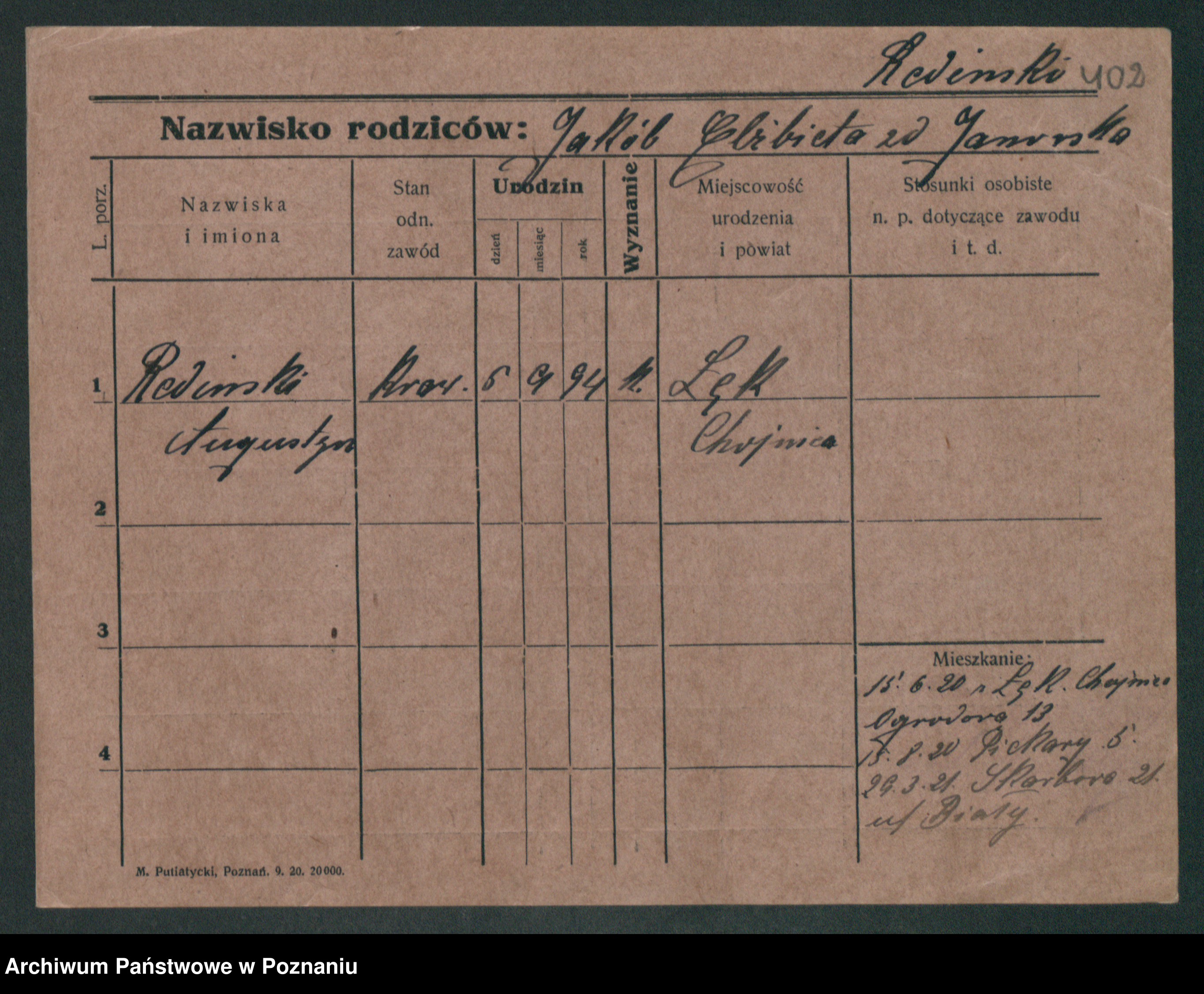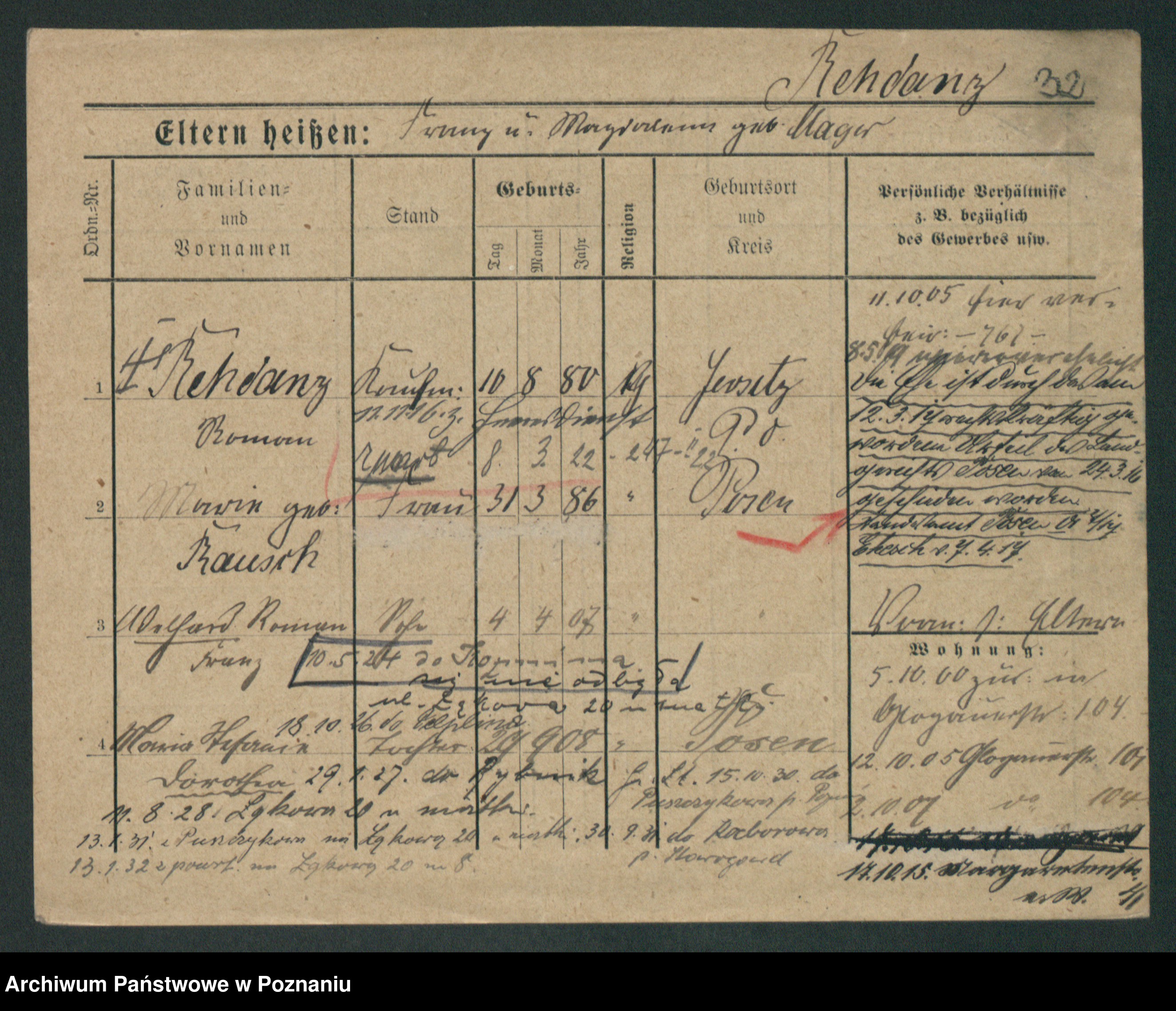 Podgląd karty osobowej dostępny jest po kliknięciu na nazwisko lub ikonkę karty. Można dokonywać powiększenia (ikony na górze) lub przechodzić między kolejnymi skanami (strzałki po bokach).