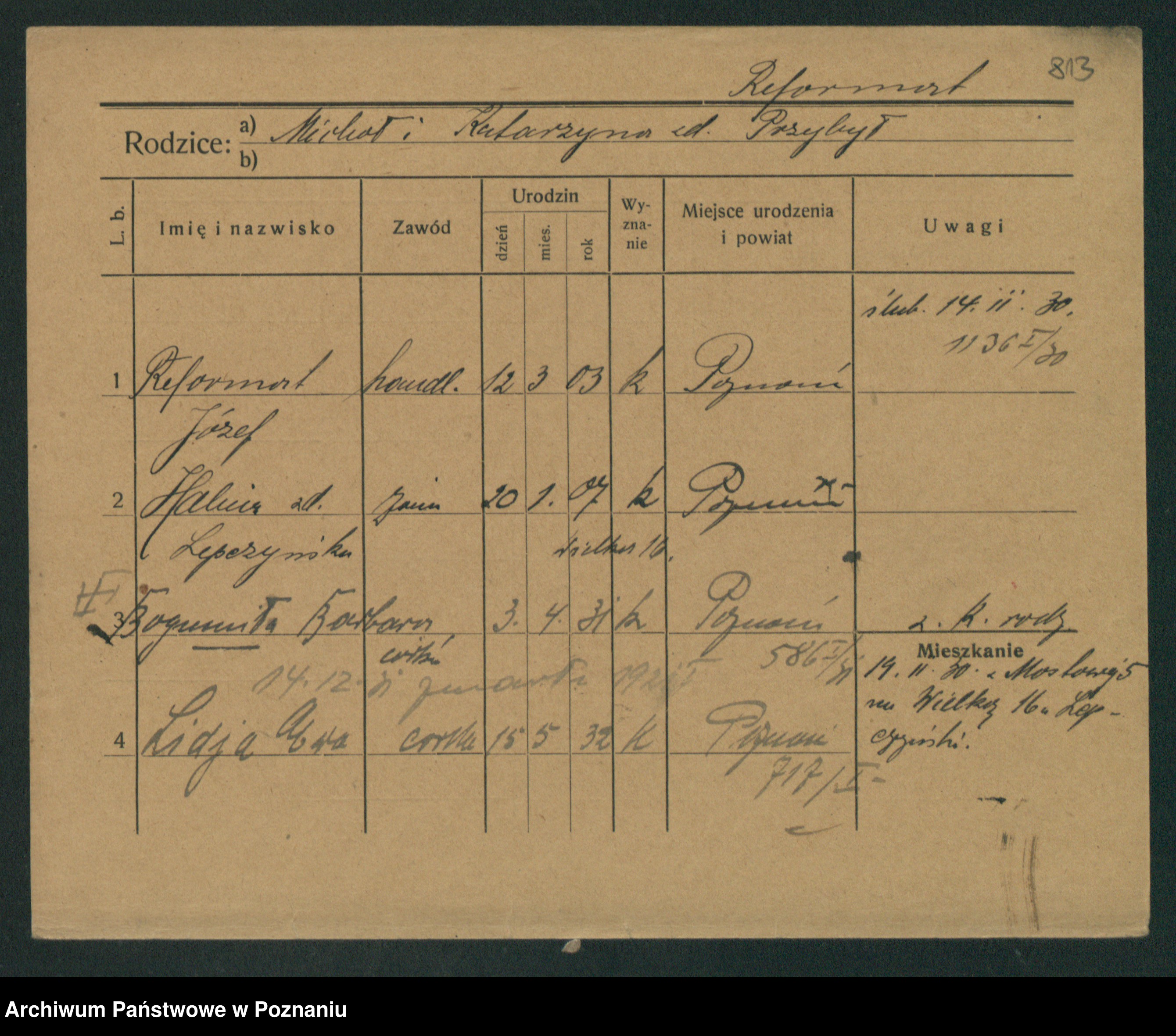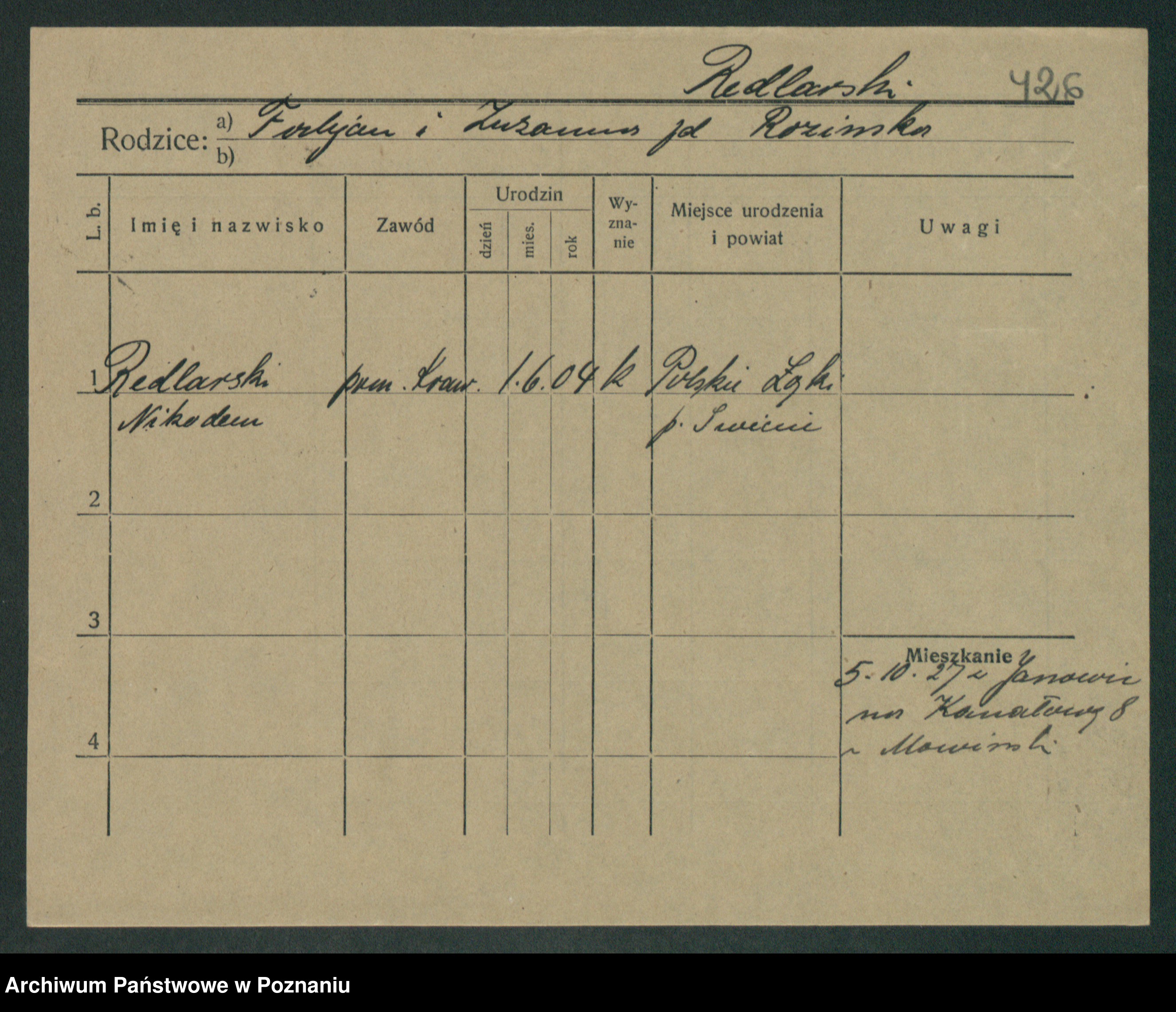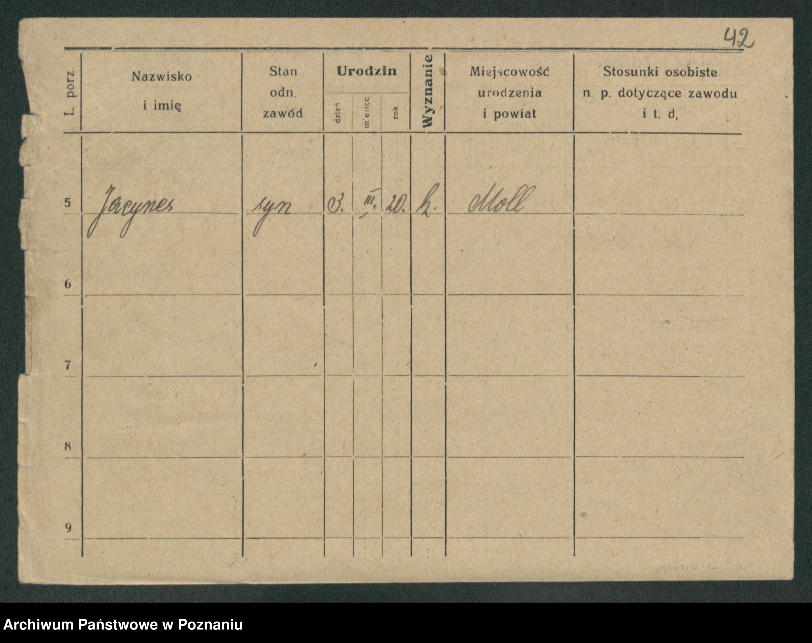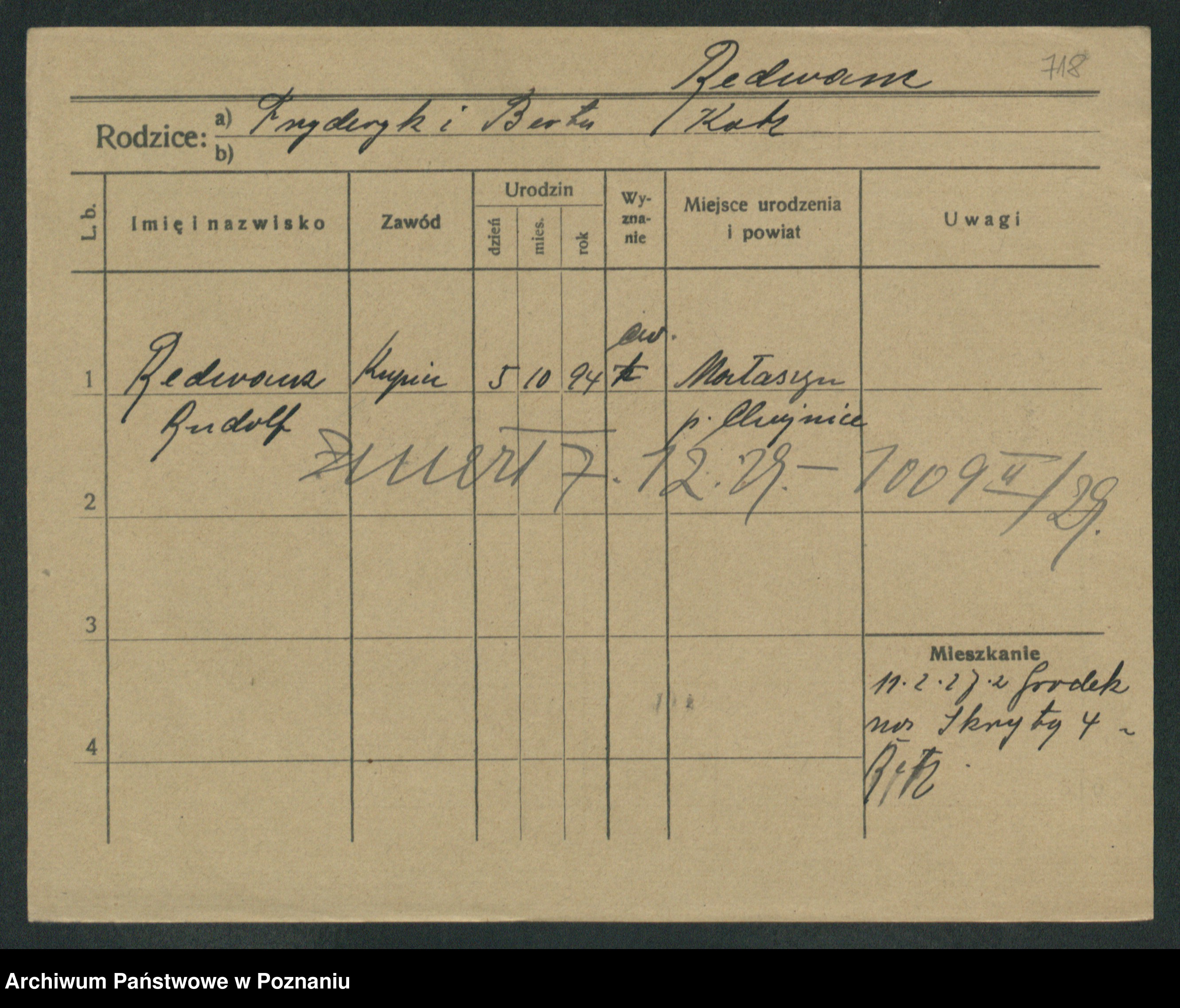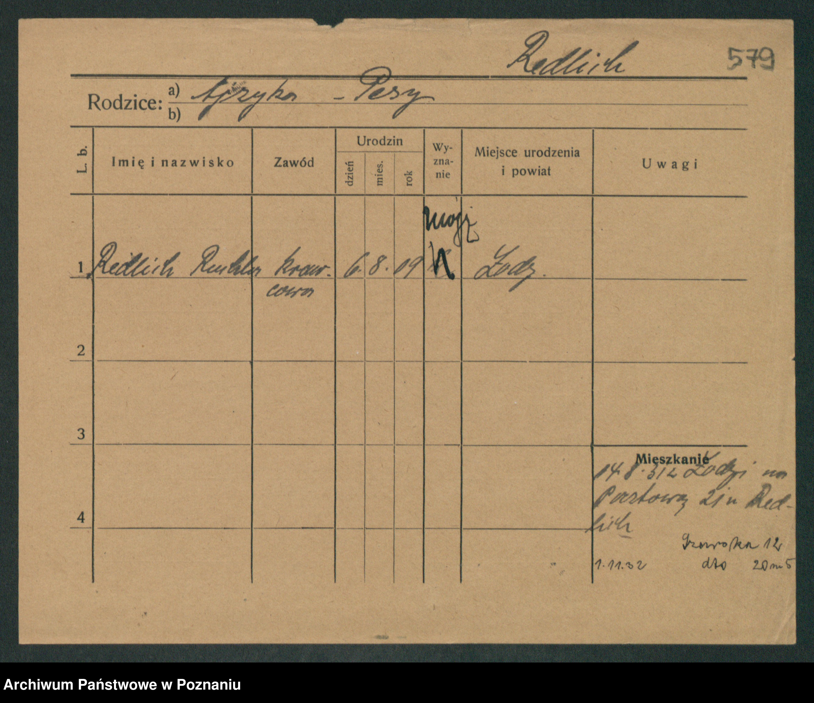 Podgląd karty osobowej dostępny jest po kliknięciu na nazwisko lub ikonkę karty. Można dokonywać powiększenia (ikony na górze) lub przechodzić między kolejnymi skanami (strzałki po bokach).