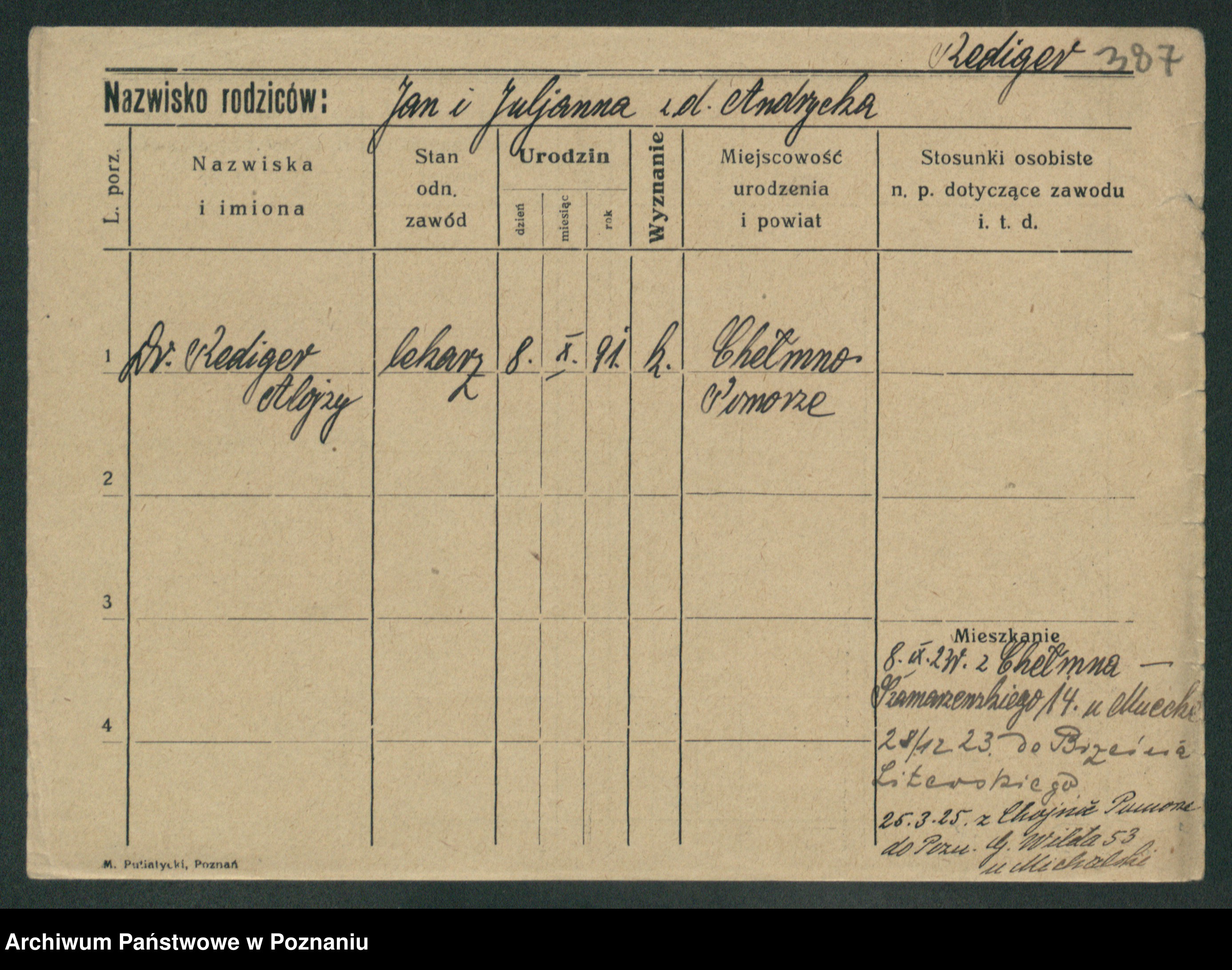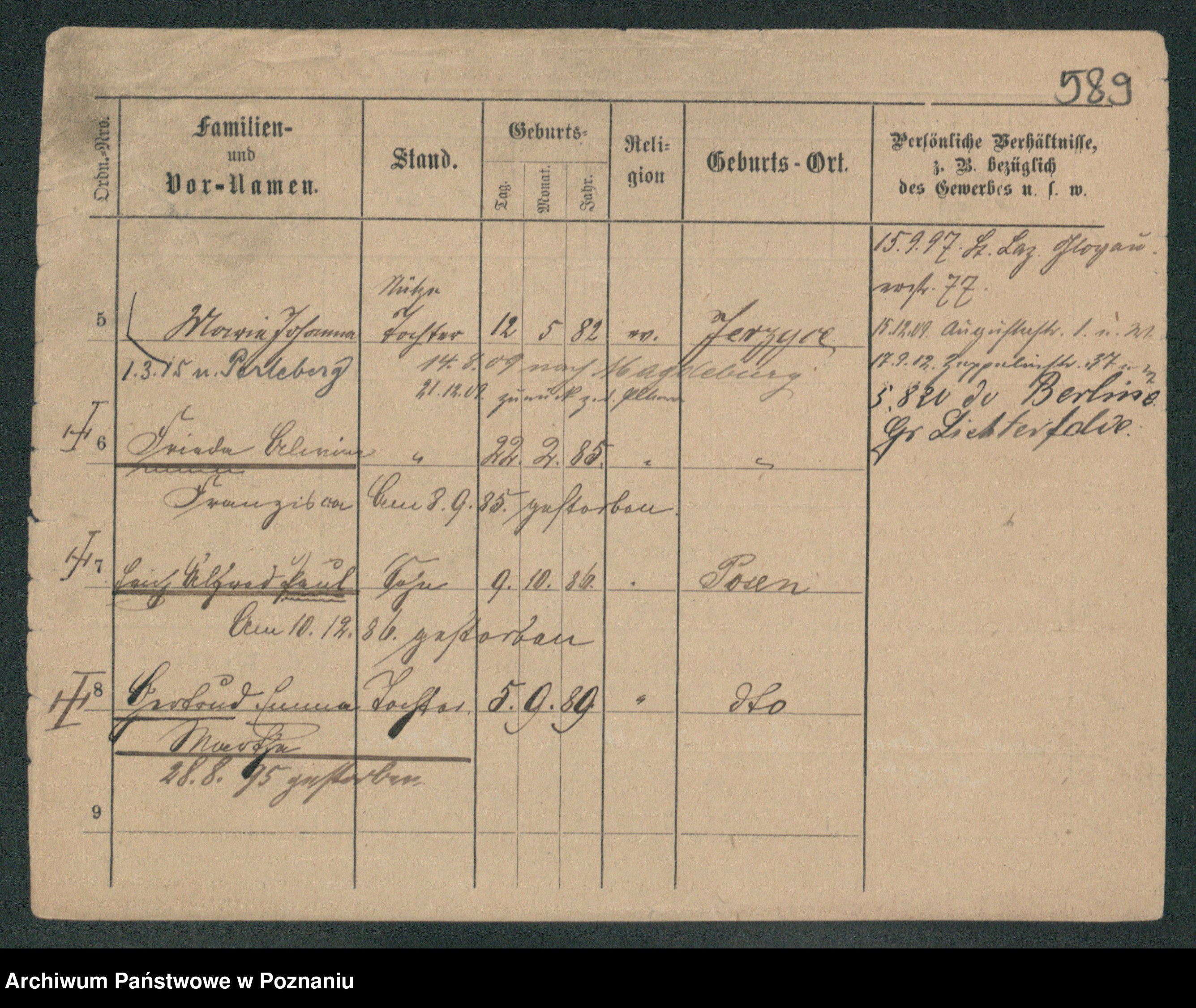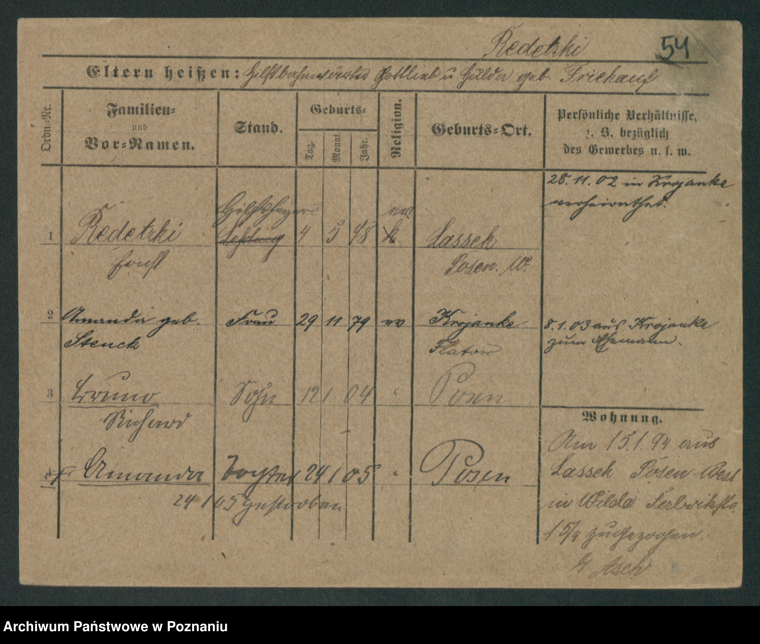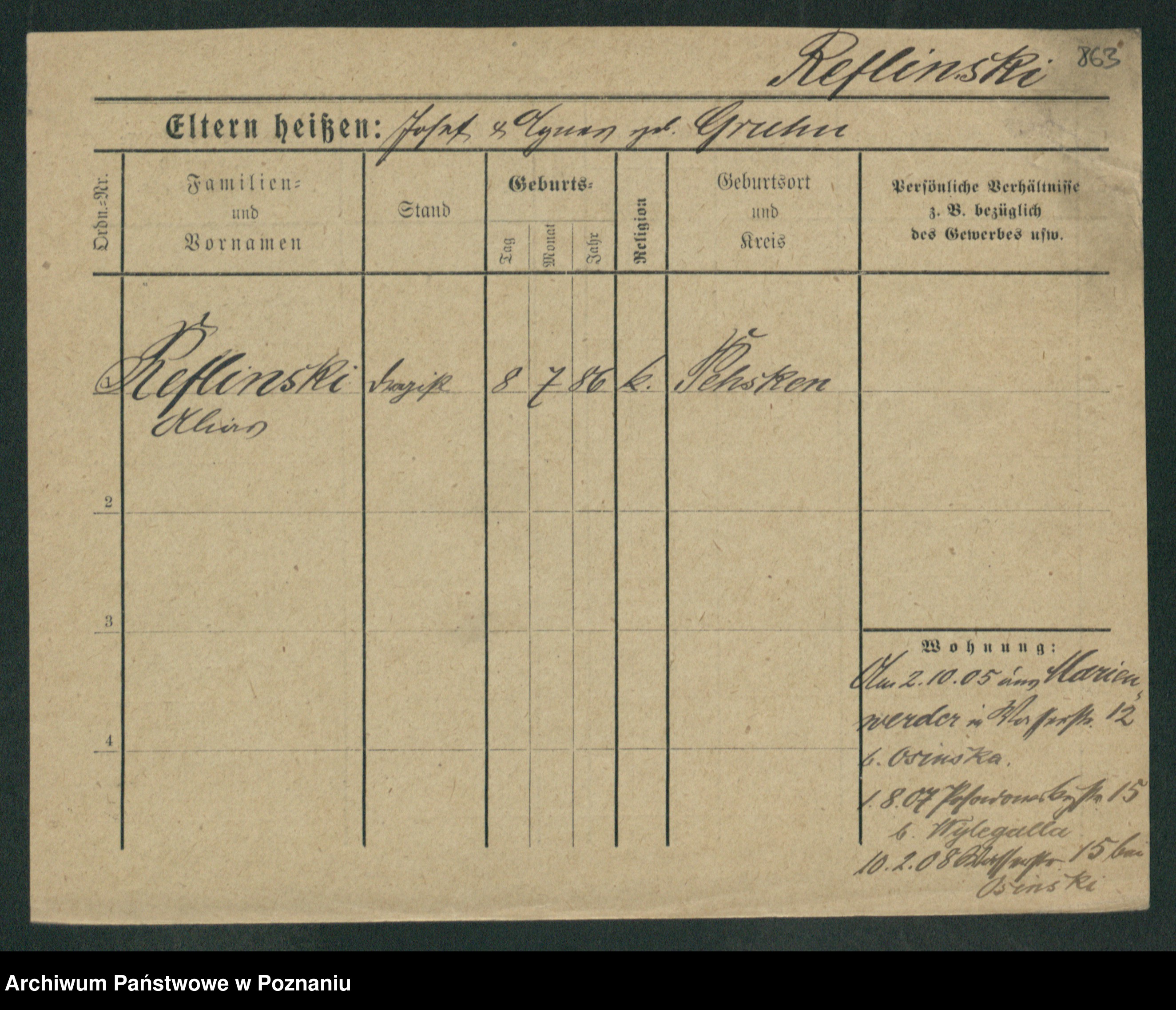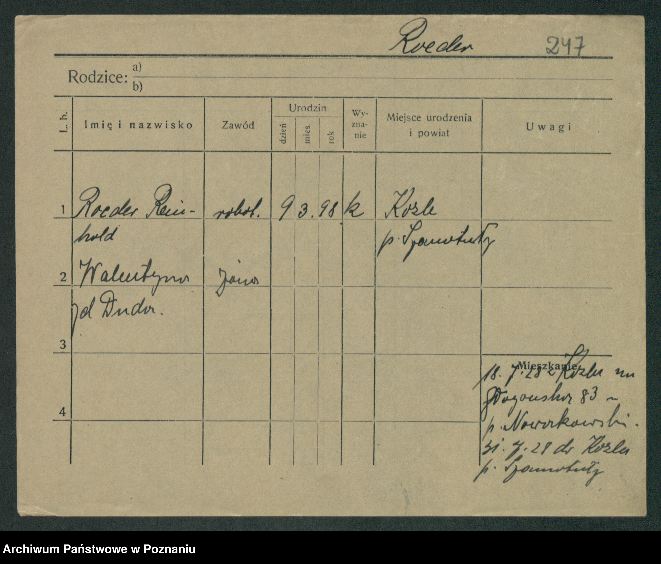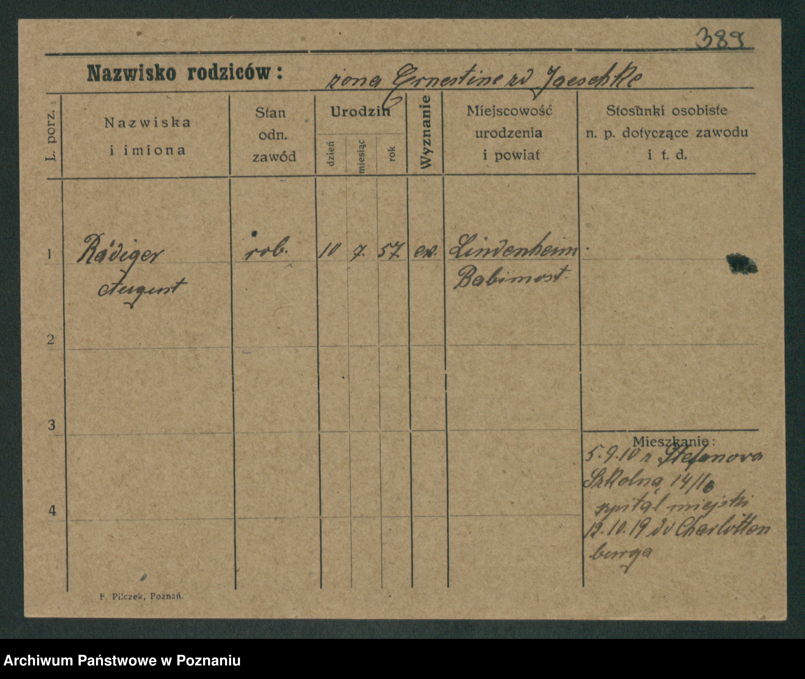 Podgląd karty osobowej dostępny jest po kliknięciu na nazwisko lub ikonkę karty. Można dokonywać powiększenia (ikony na górze) lub przechodzić między kolejnymi skanami (strzałki po bokach).