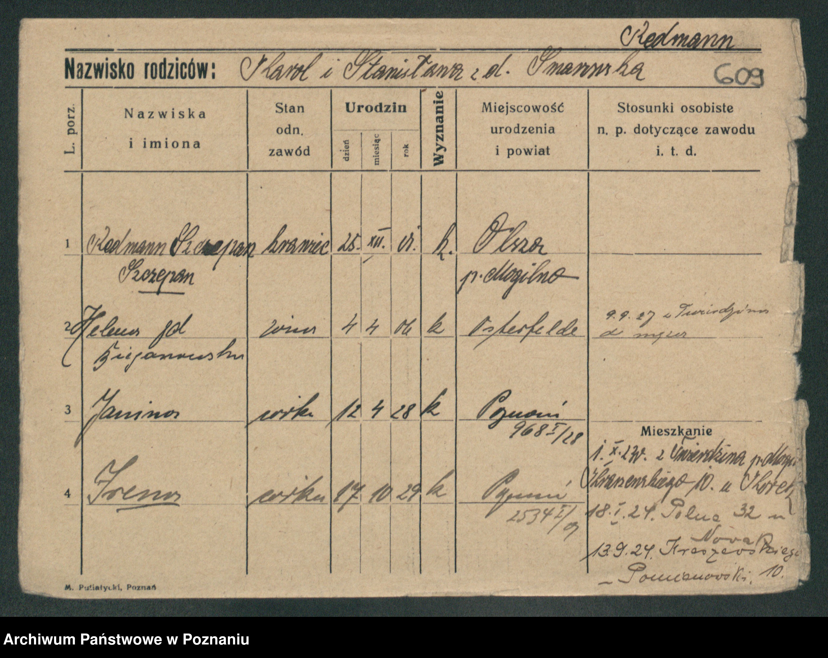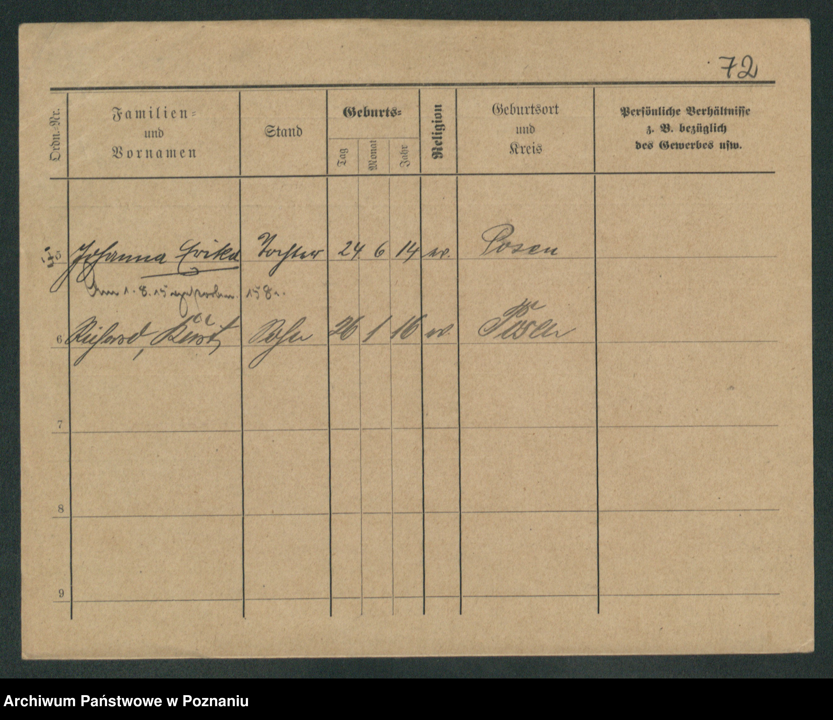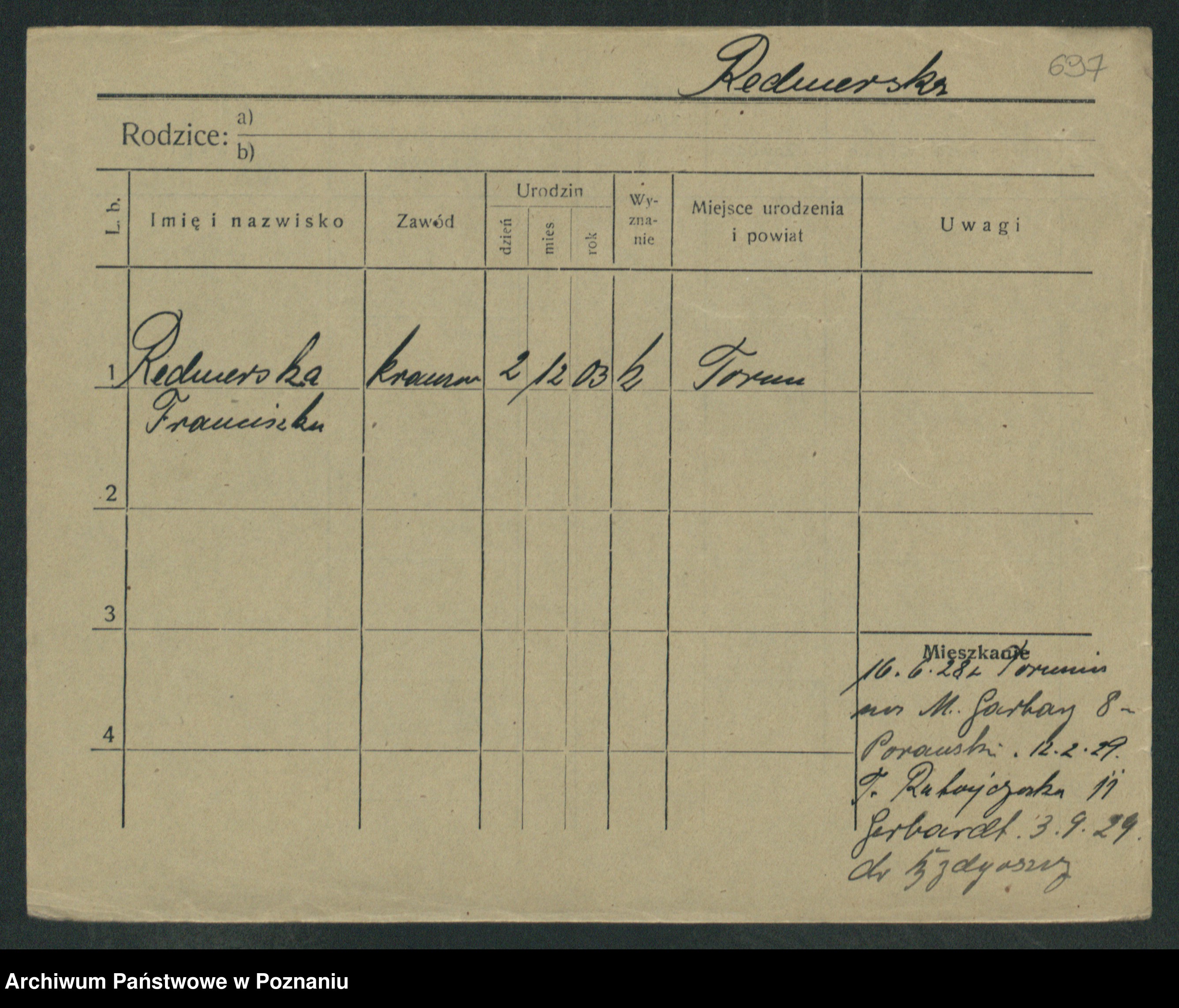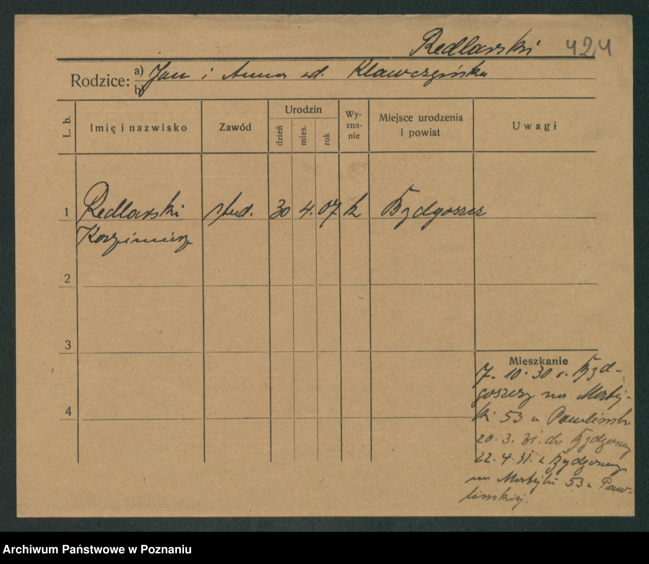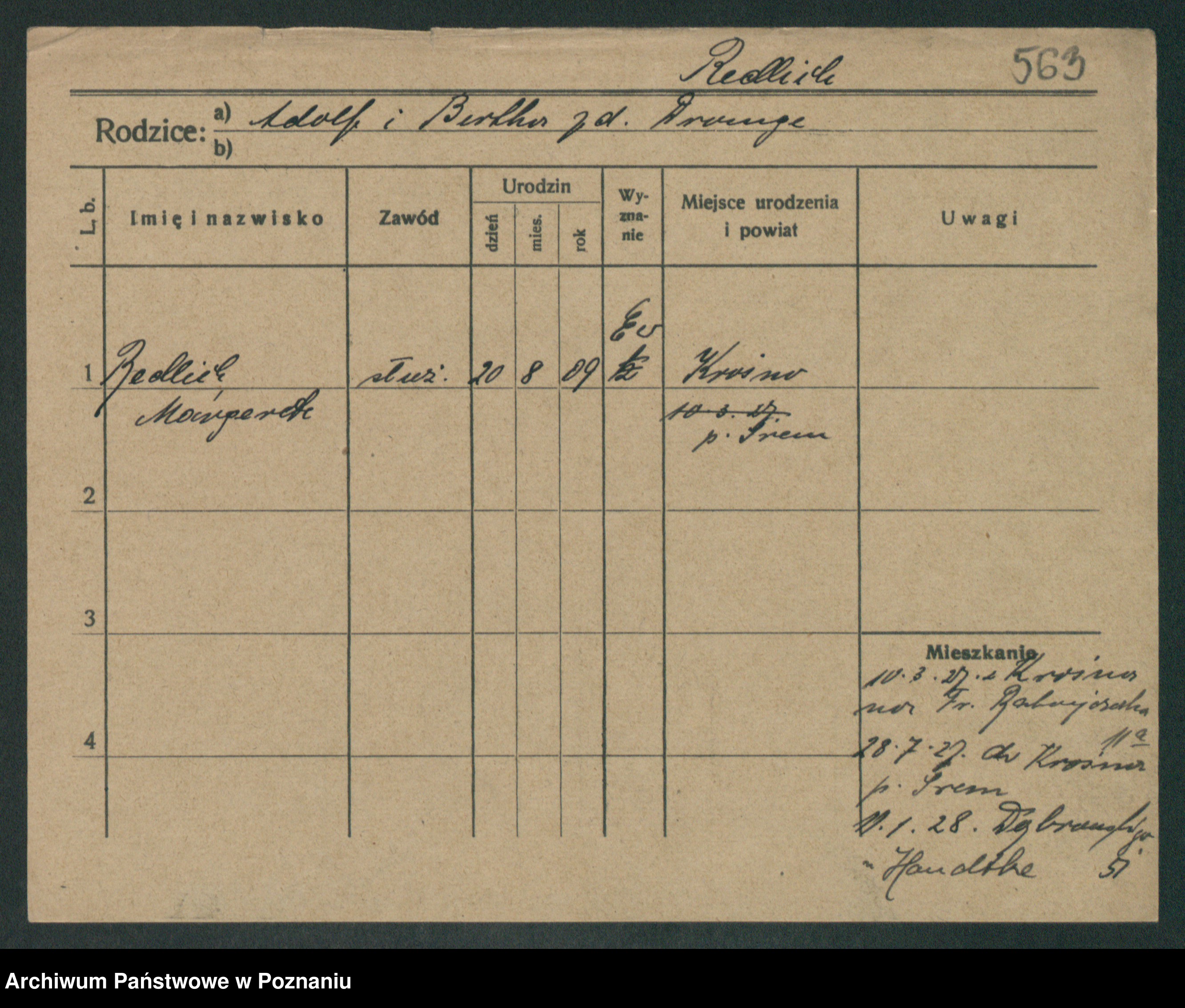 Podgląd karty osobowej dostępny jest po kliknięciu na nazwisko lub ikonkę karty. Można dokonywać powiększenia (ikony na górze) lub przechodzić między kolejnymi skanami (strzałki po bokach).
