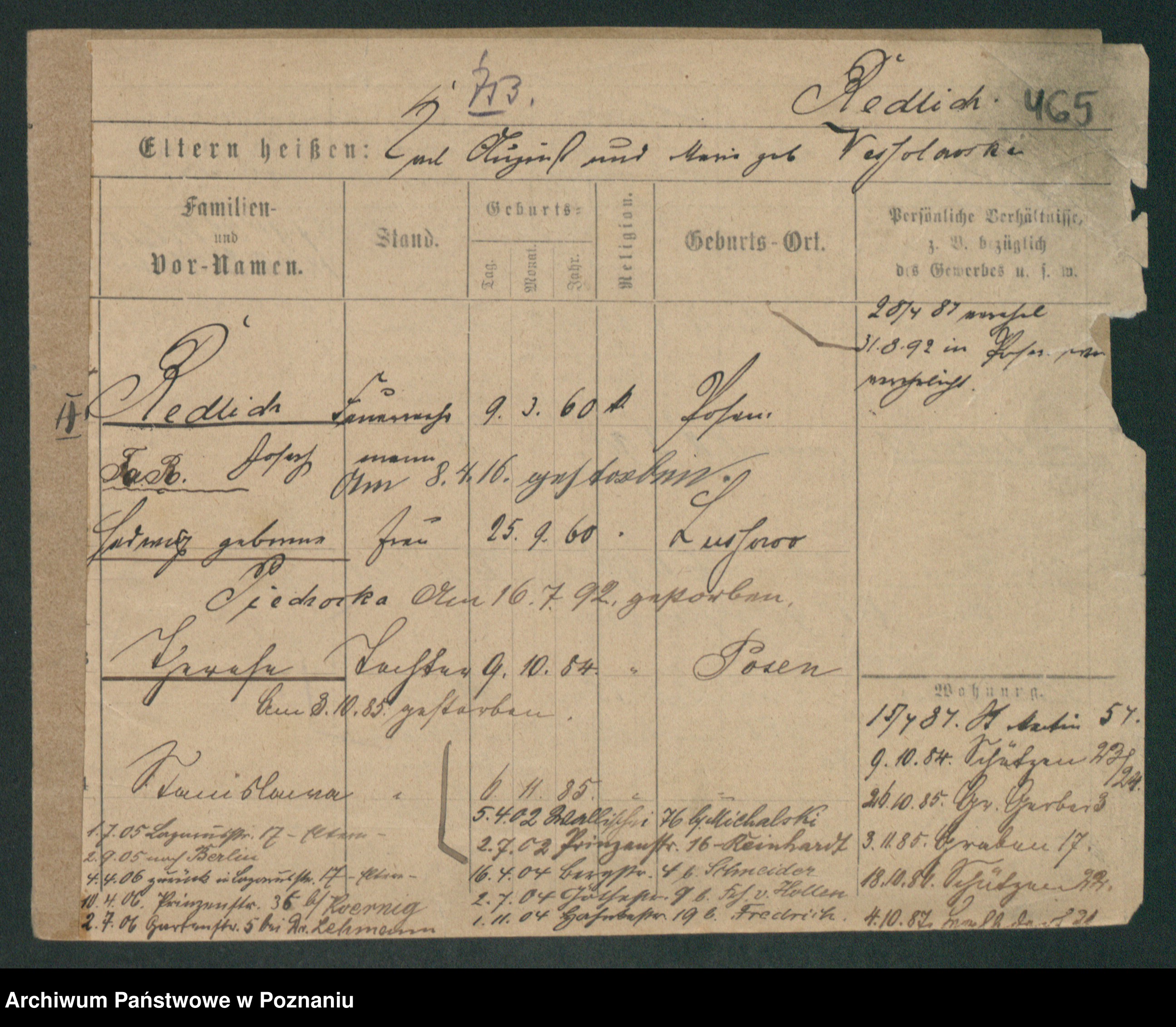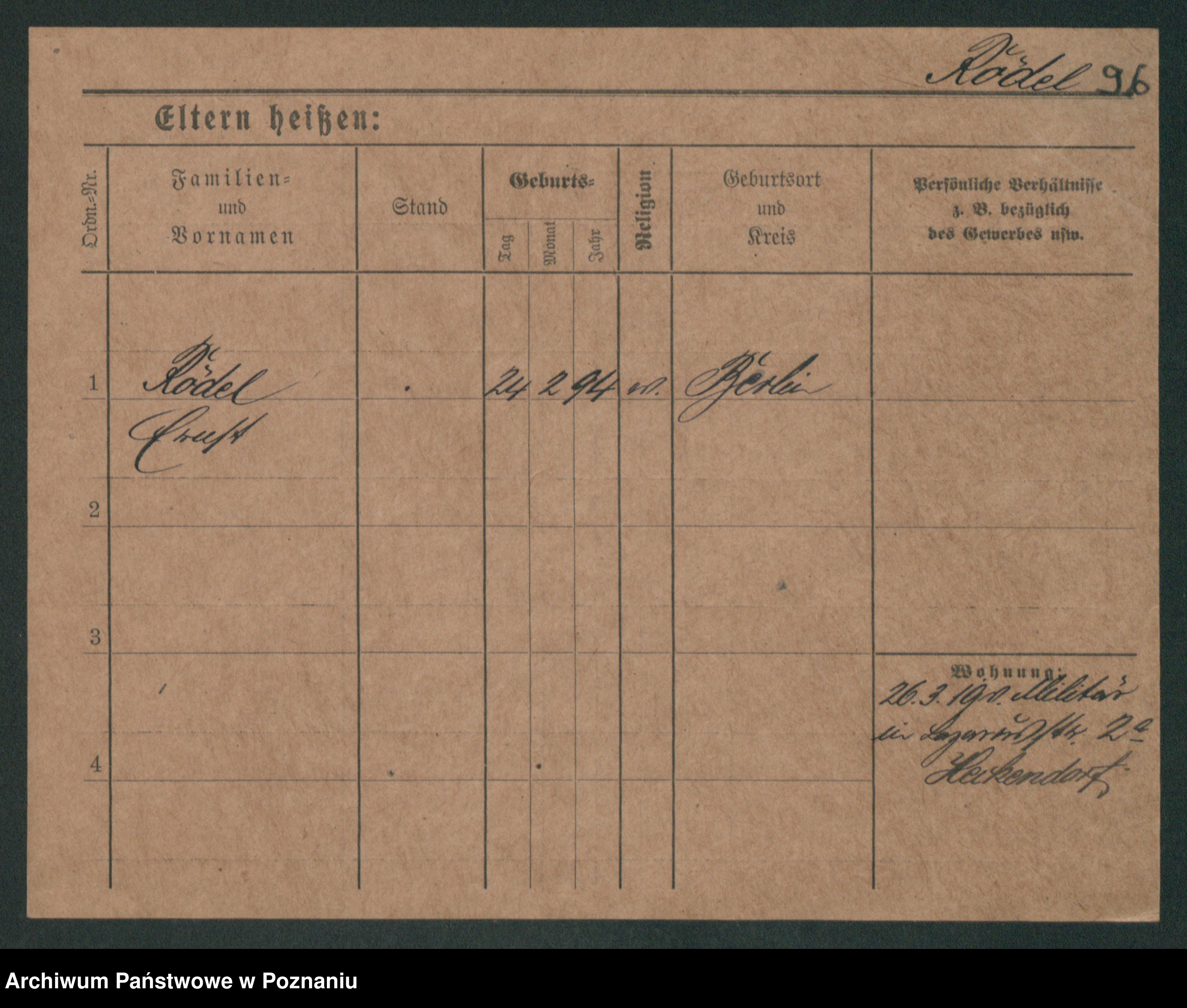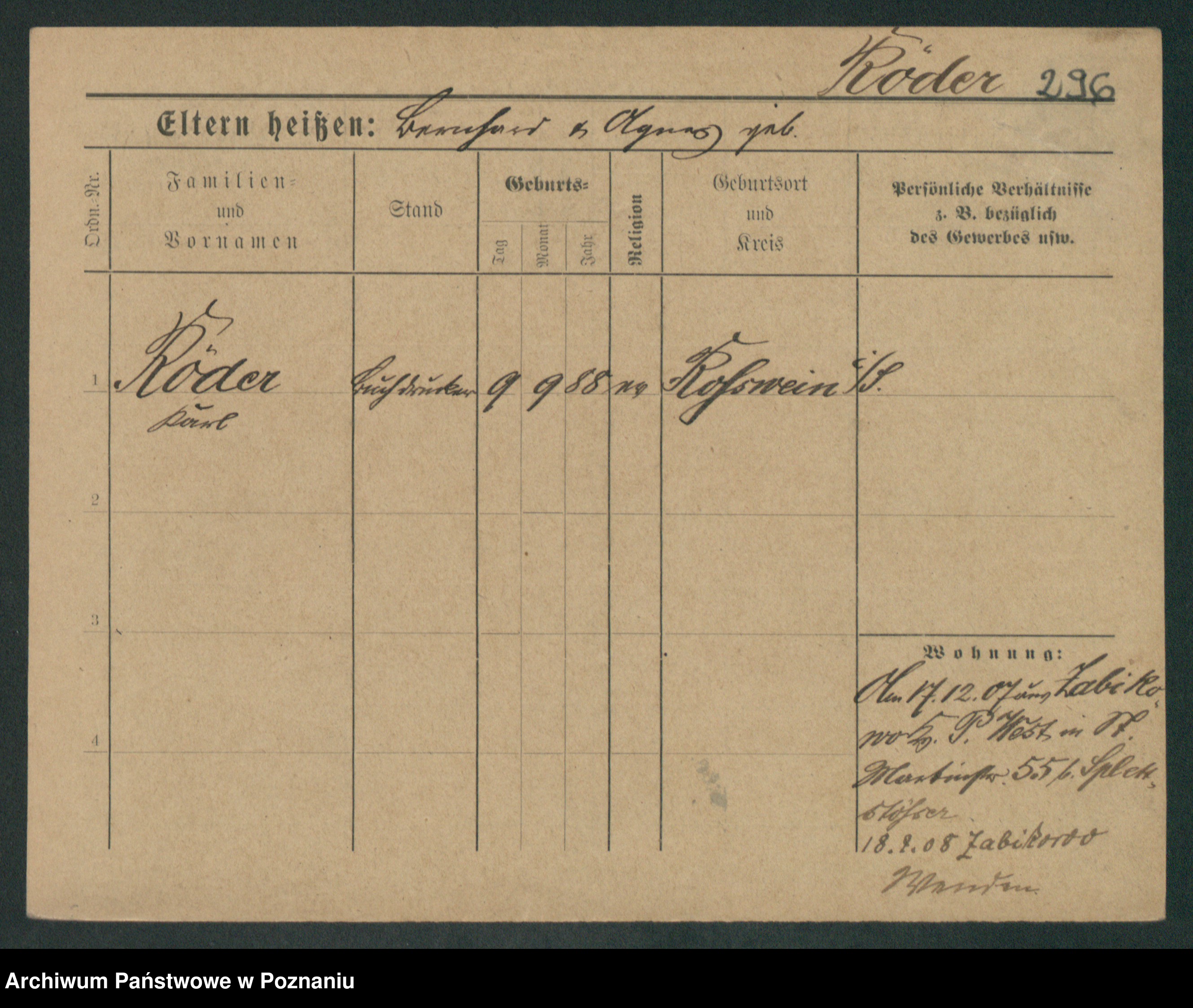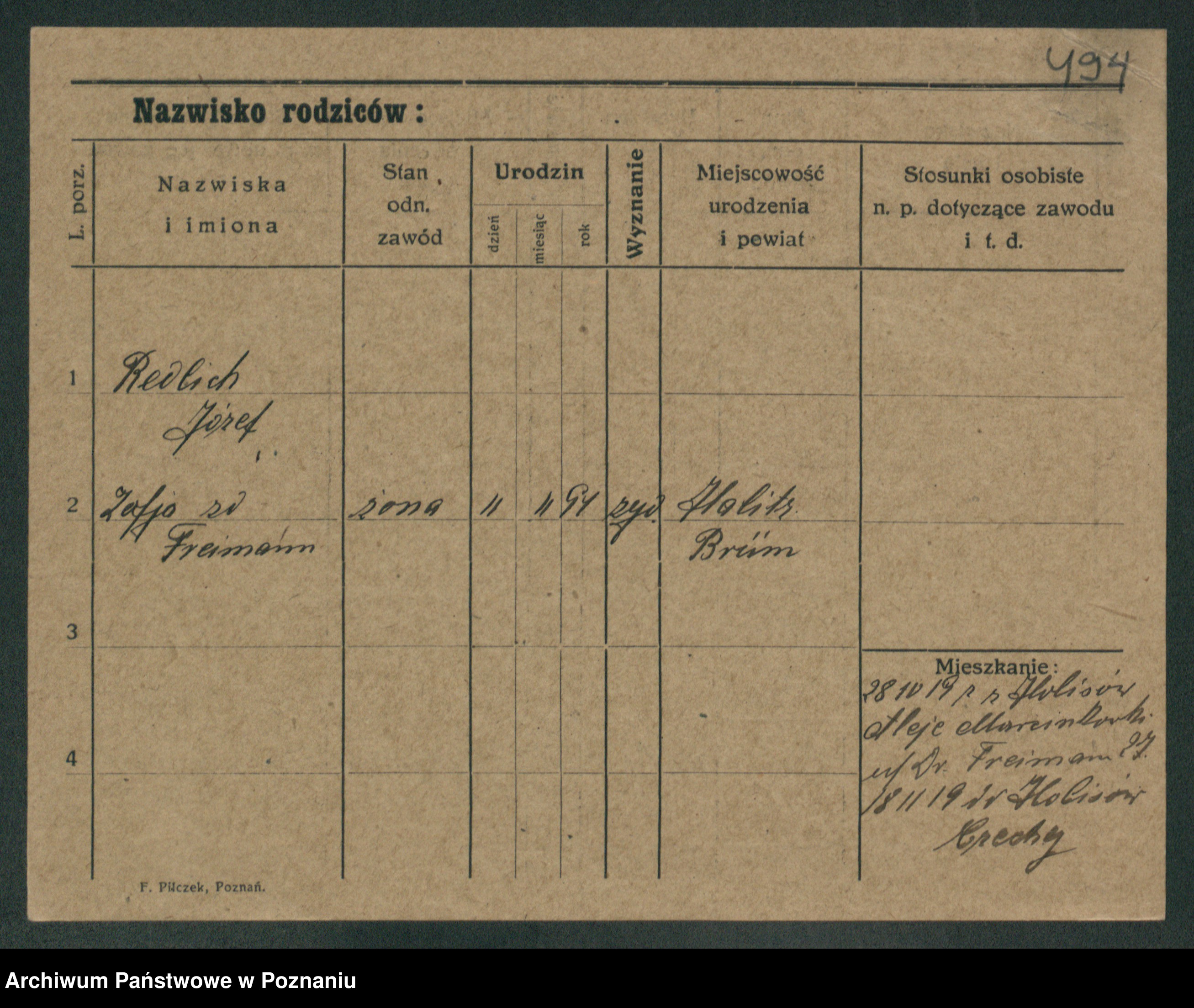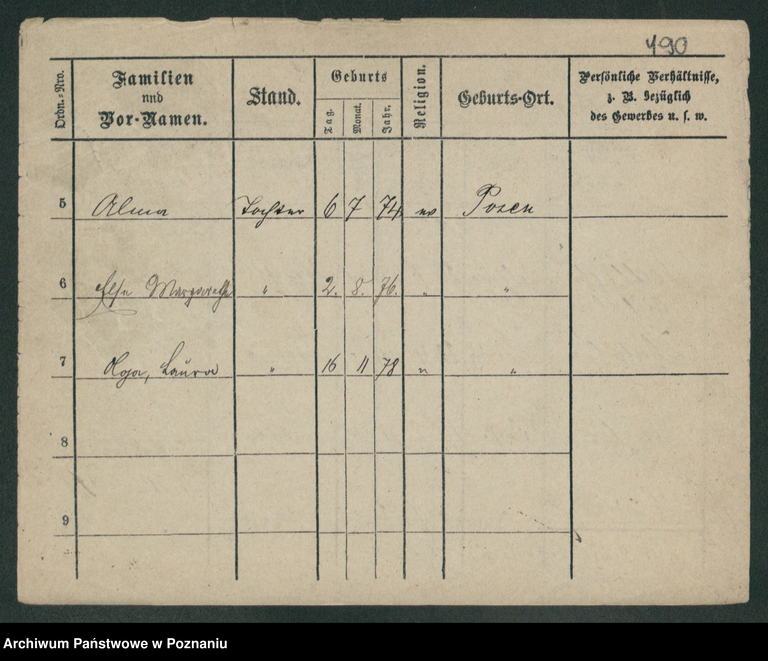 Podgląd karty osobowej dostępny jest po kliknięciu na nazwisko lub ikonkę karty. Można dokonywać powiększenia (ikony na górze) lub przechodzić między kolejnymi skanami (strzałki po bokach).