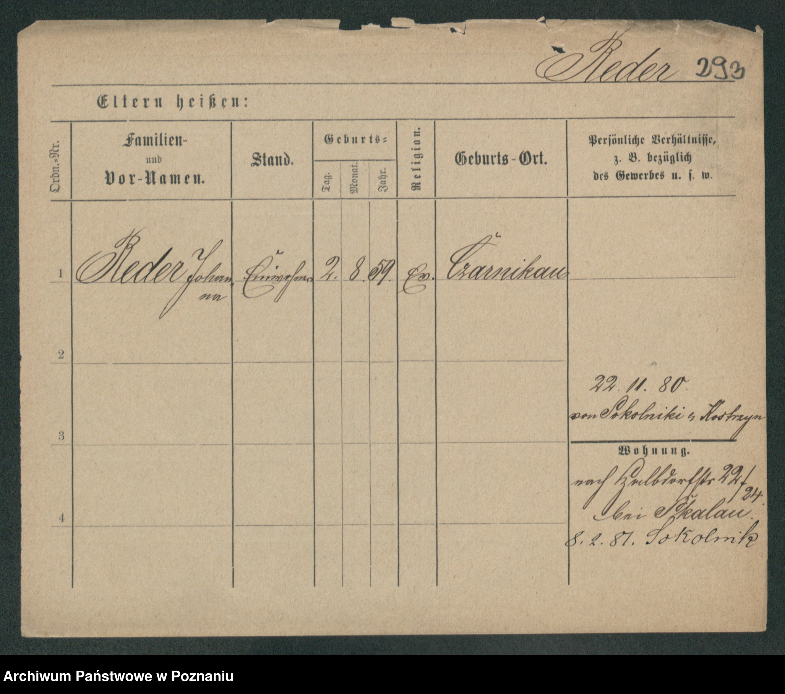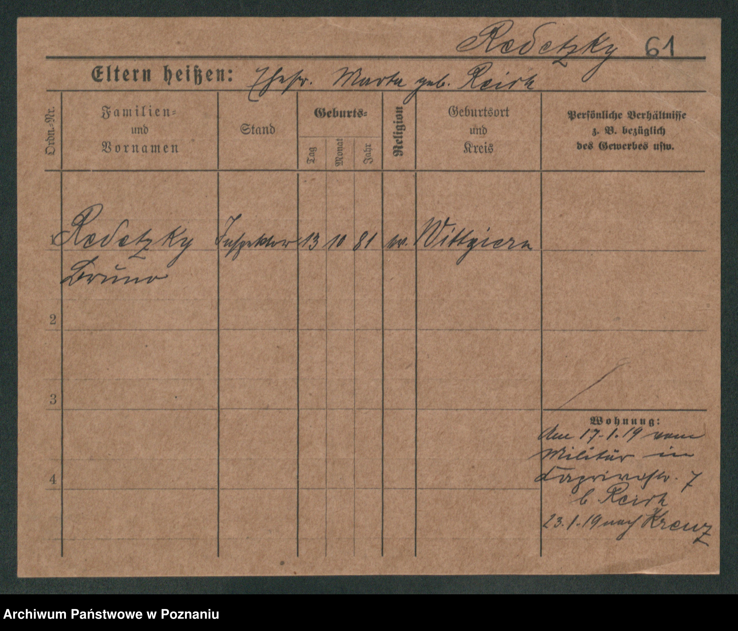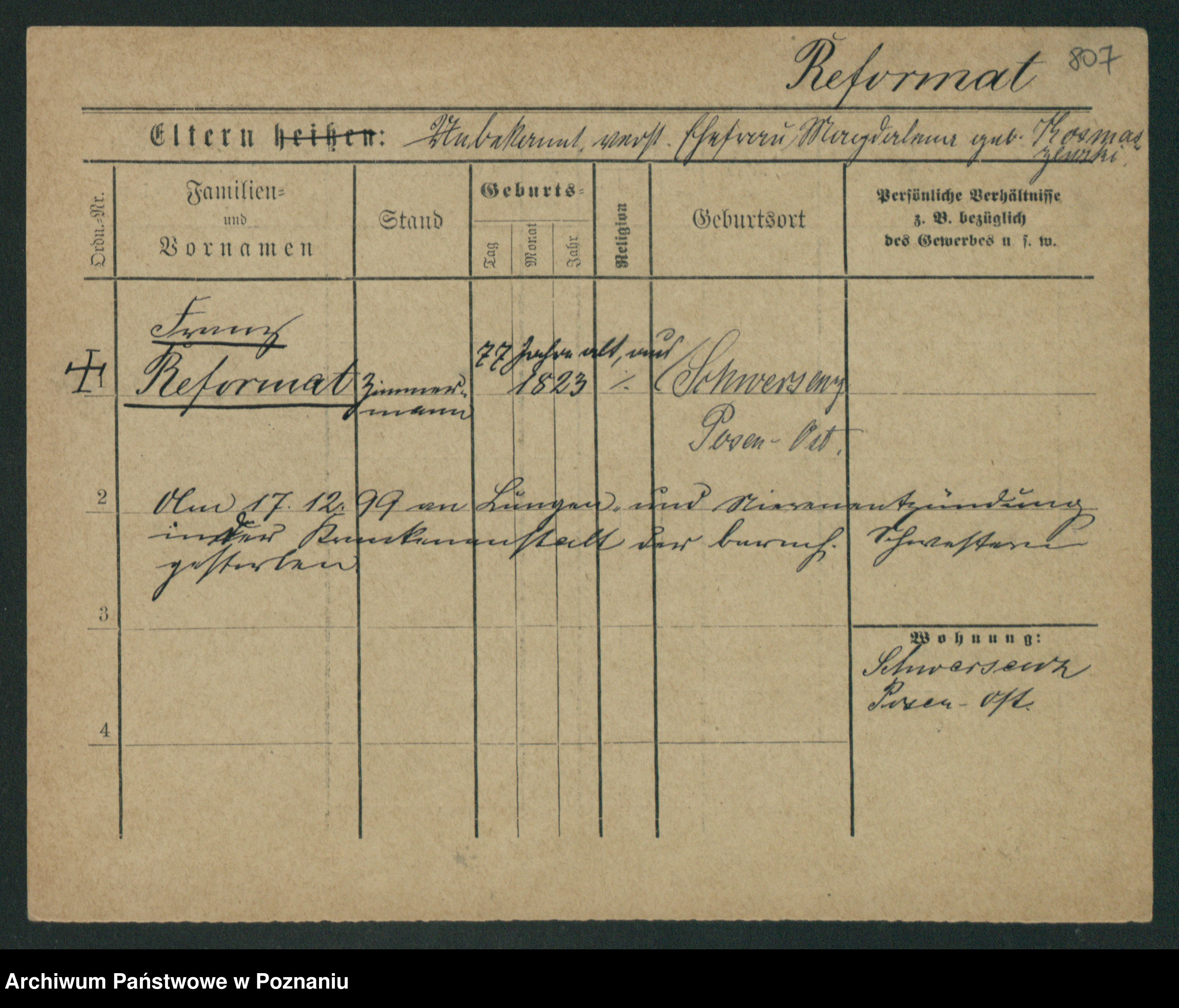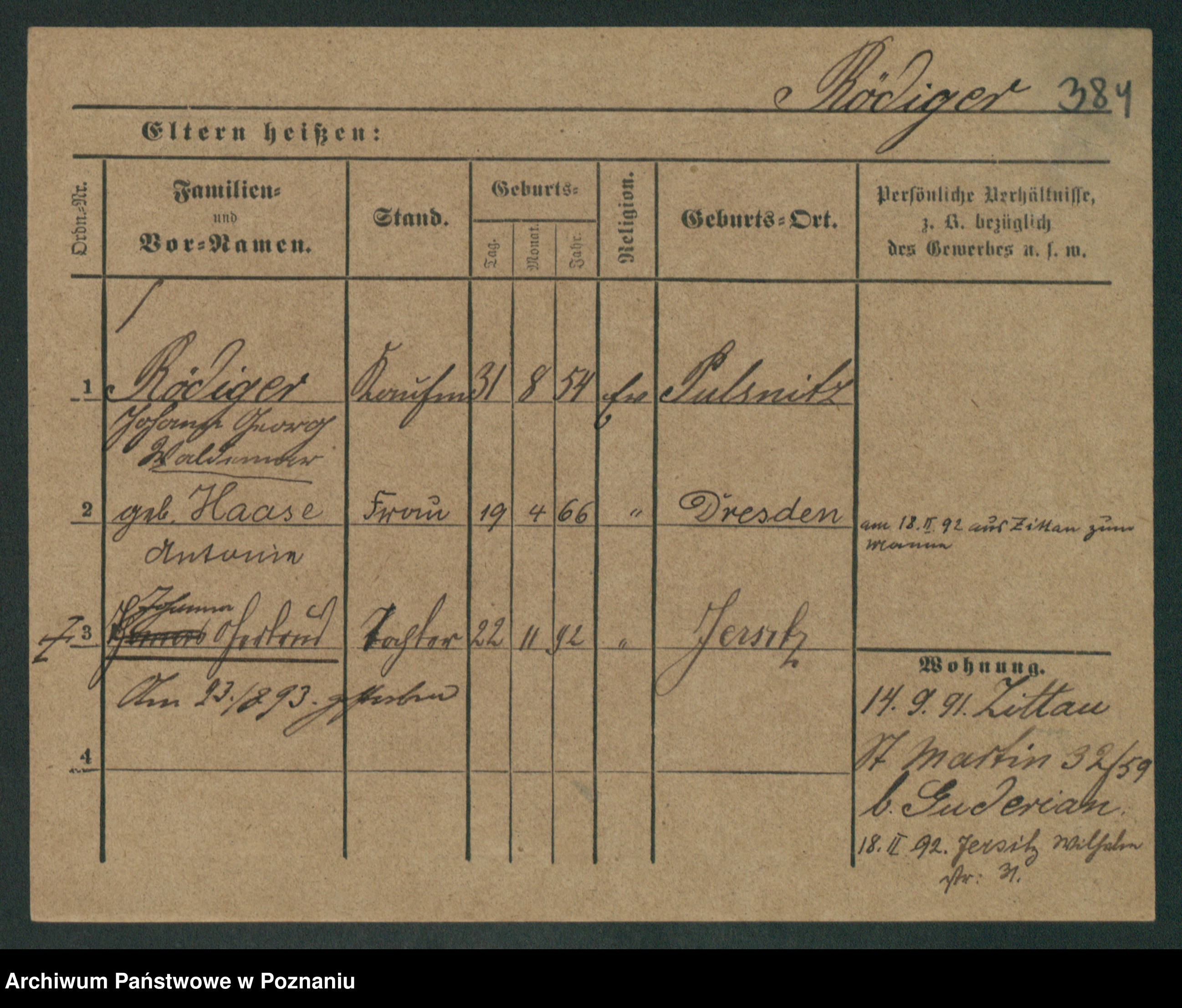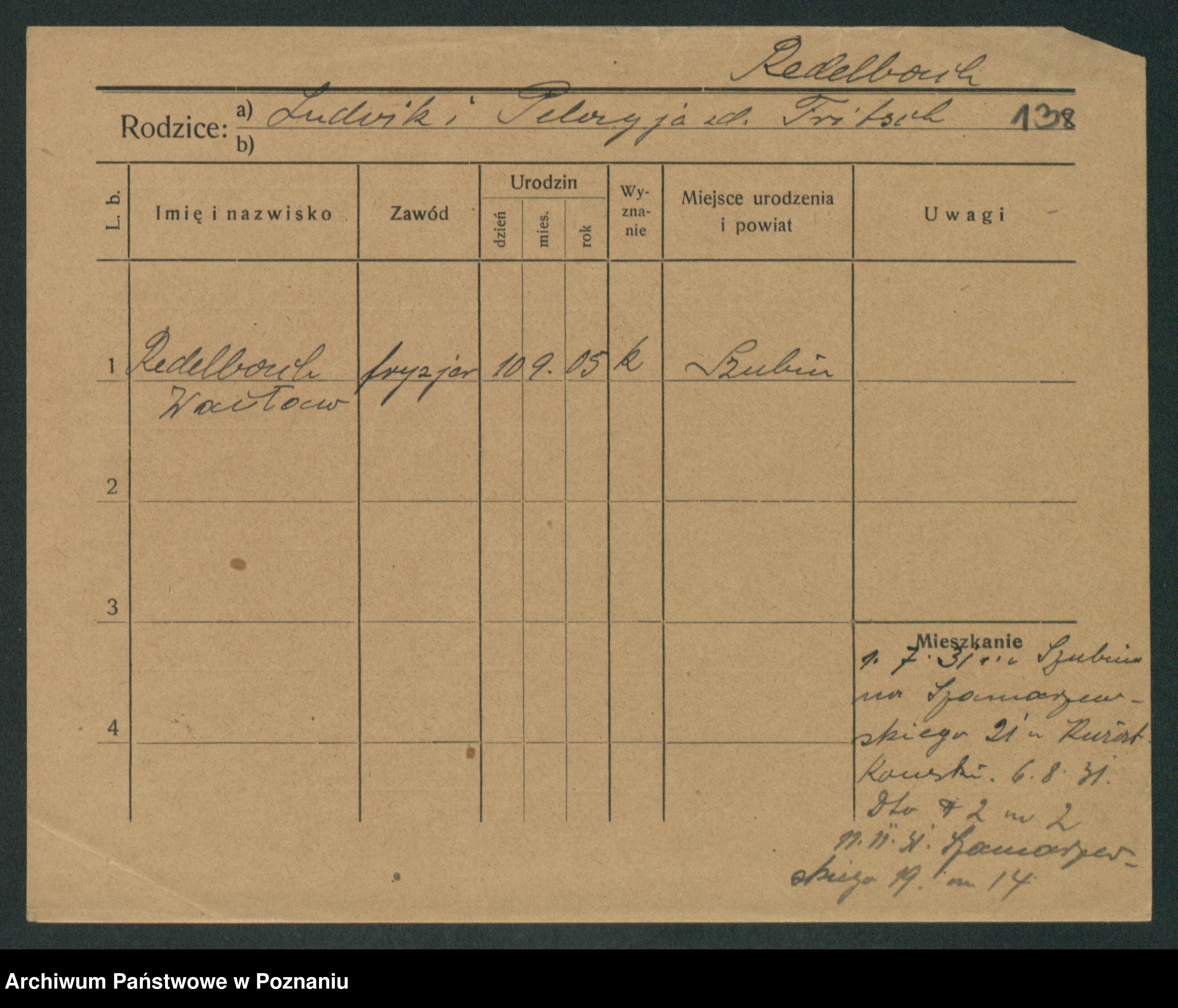 Podgląd karty osobowej dostępny jest po kliknięciu na nazwisko lub ikonkę karty. Można dokonywać powiększenia (ikony na górze) lub przechodzić między kolejnymi skanami (strzałki po bokach).
