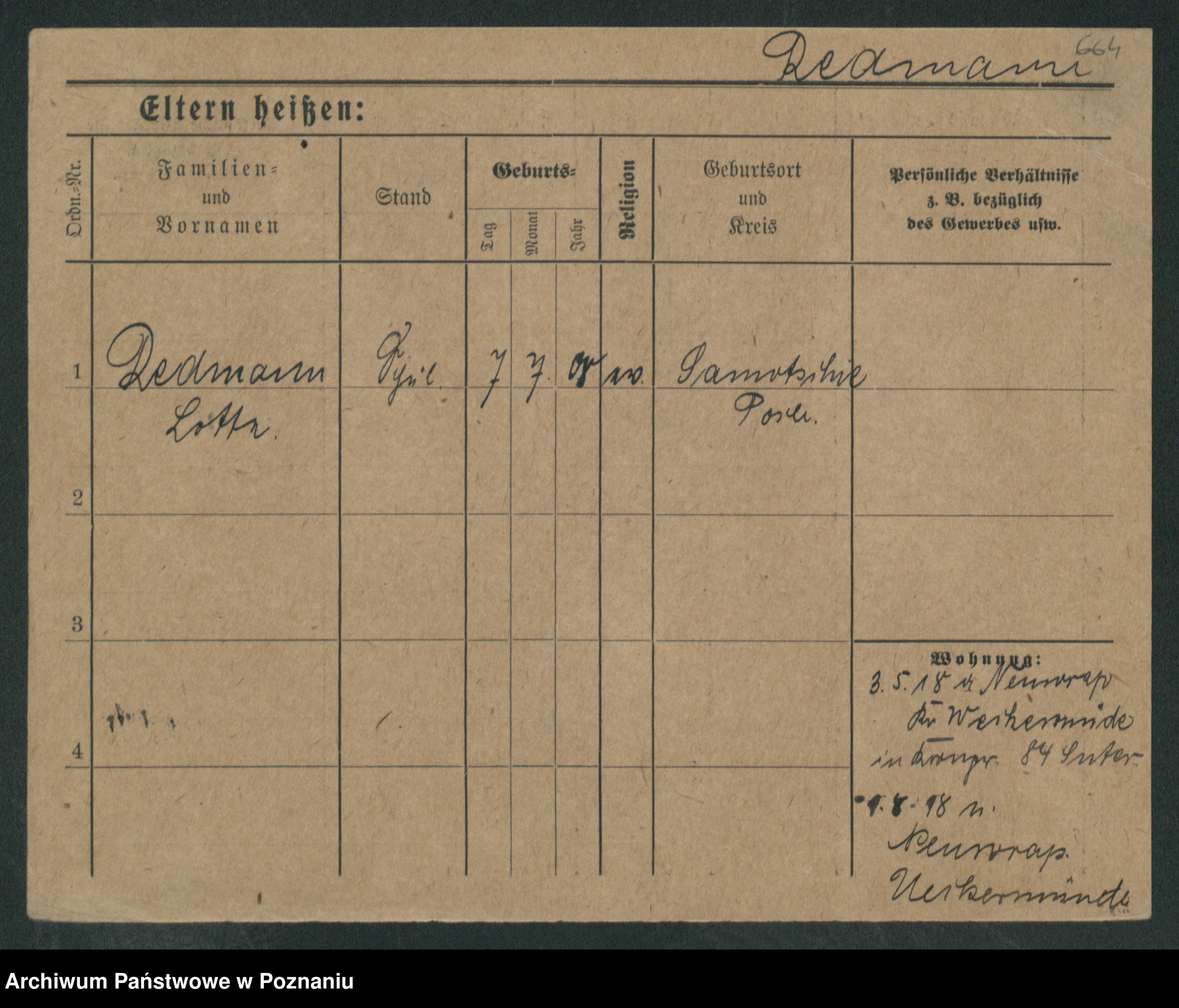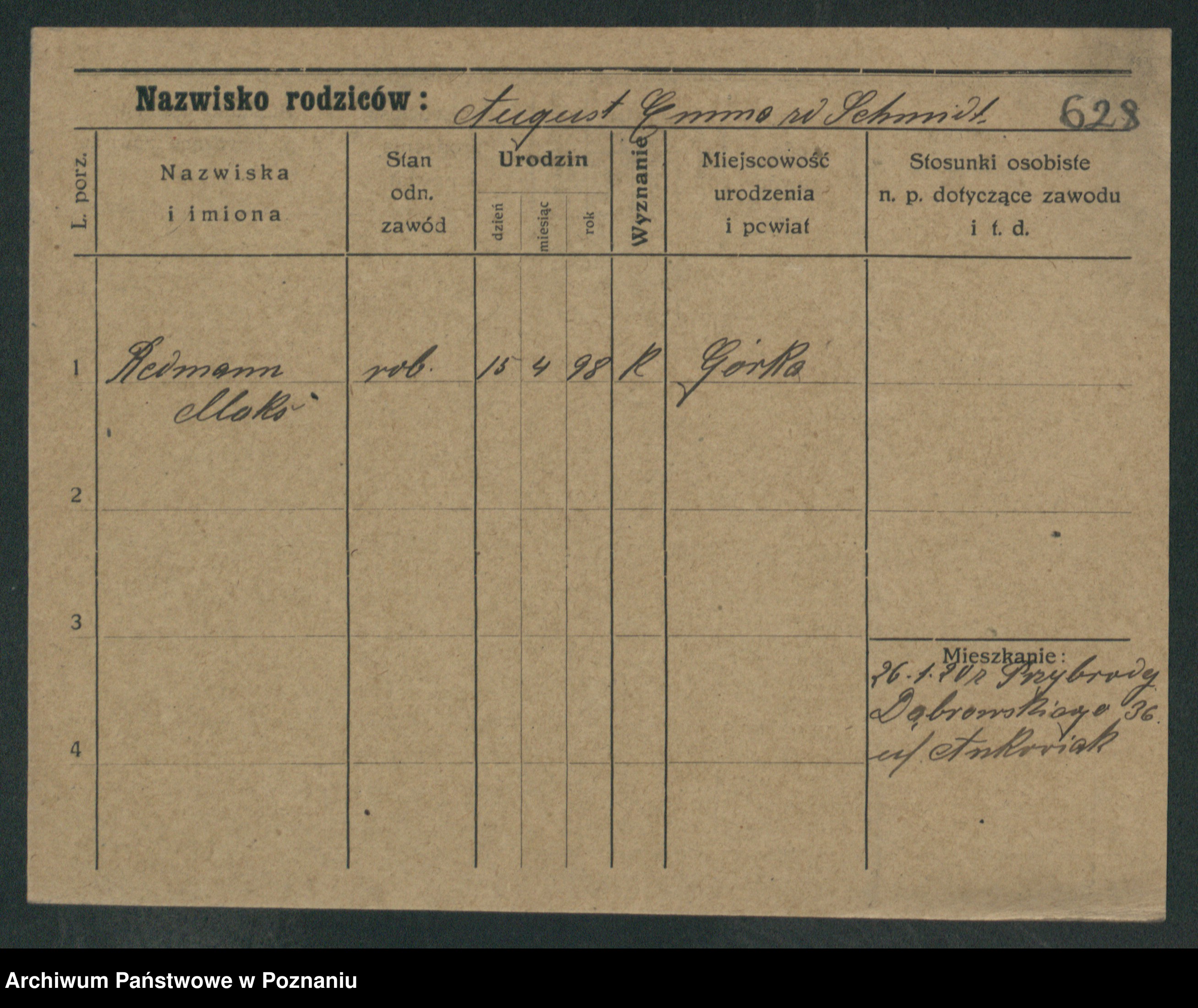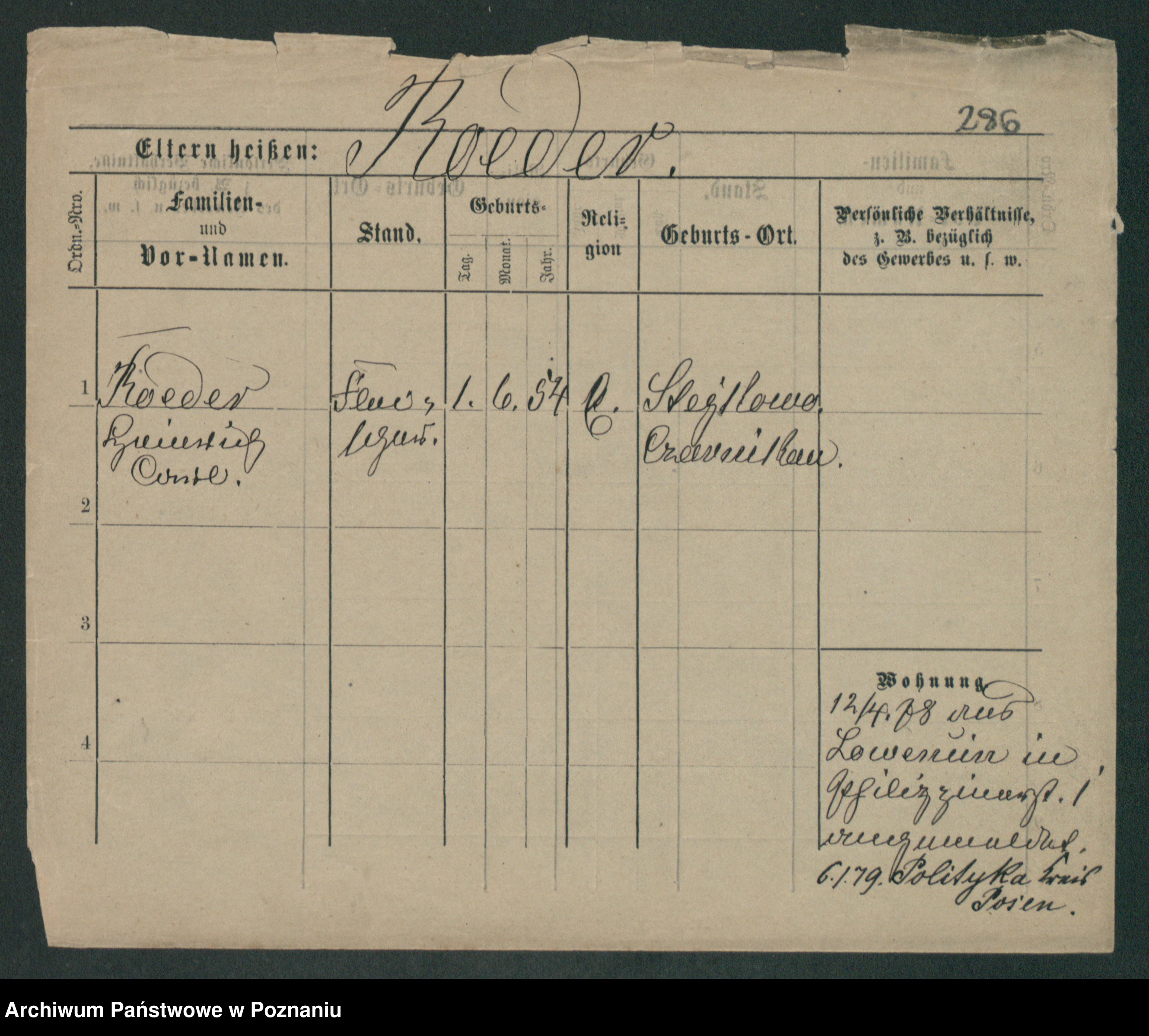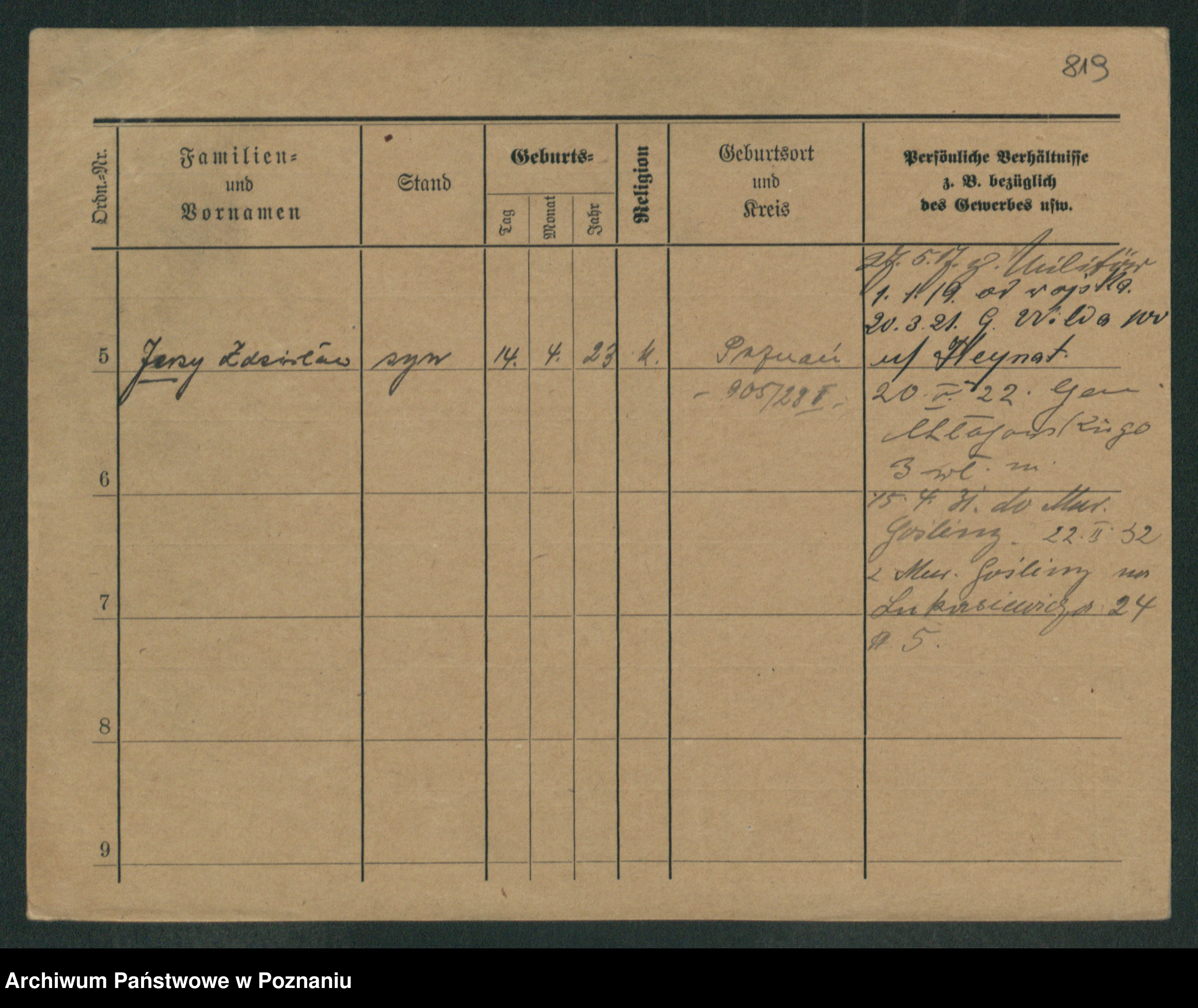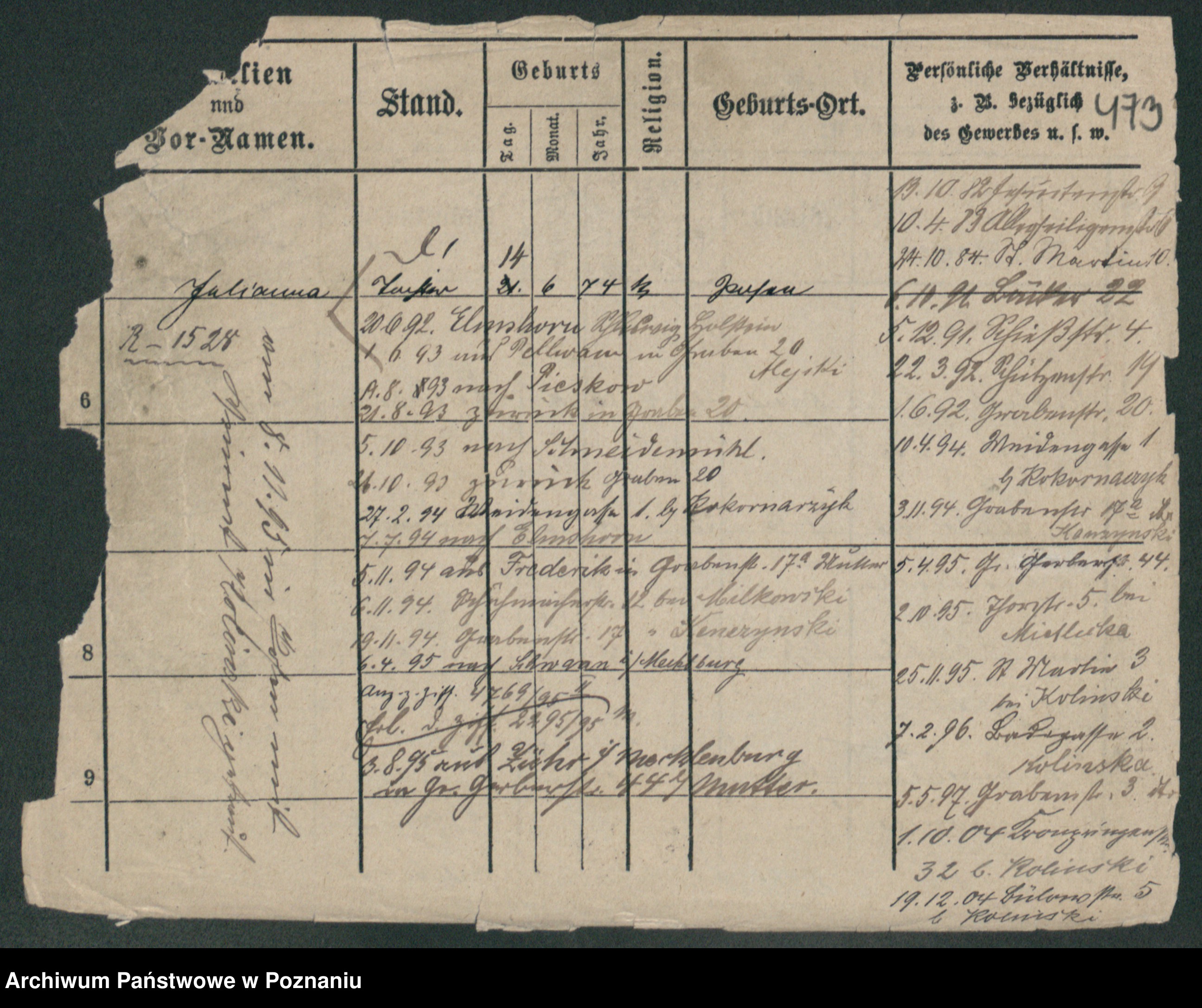 Podgląd karty osobowej dostępny jest po kliknięciu na nazwisko lub ikonkę karty. Można dokonywać powiększenia (ikony na górze) lub przechodzić między kolejnymi skanami (strzałki po bokach).