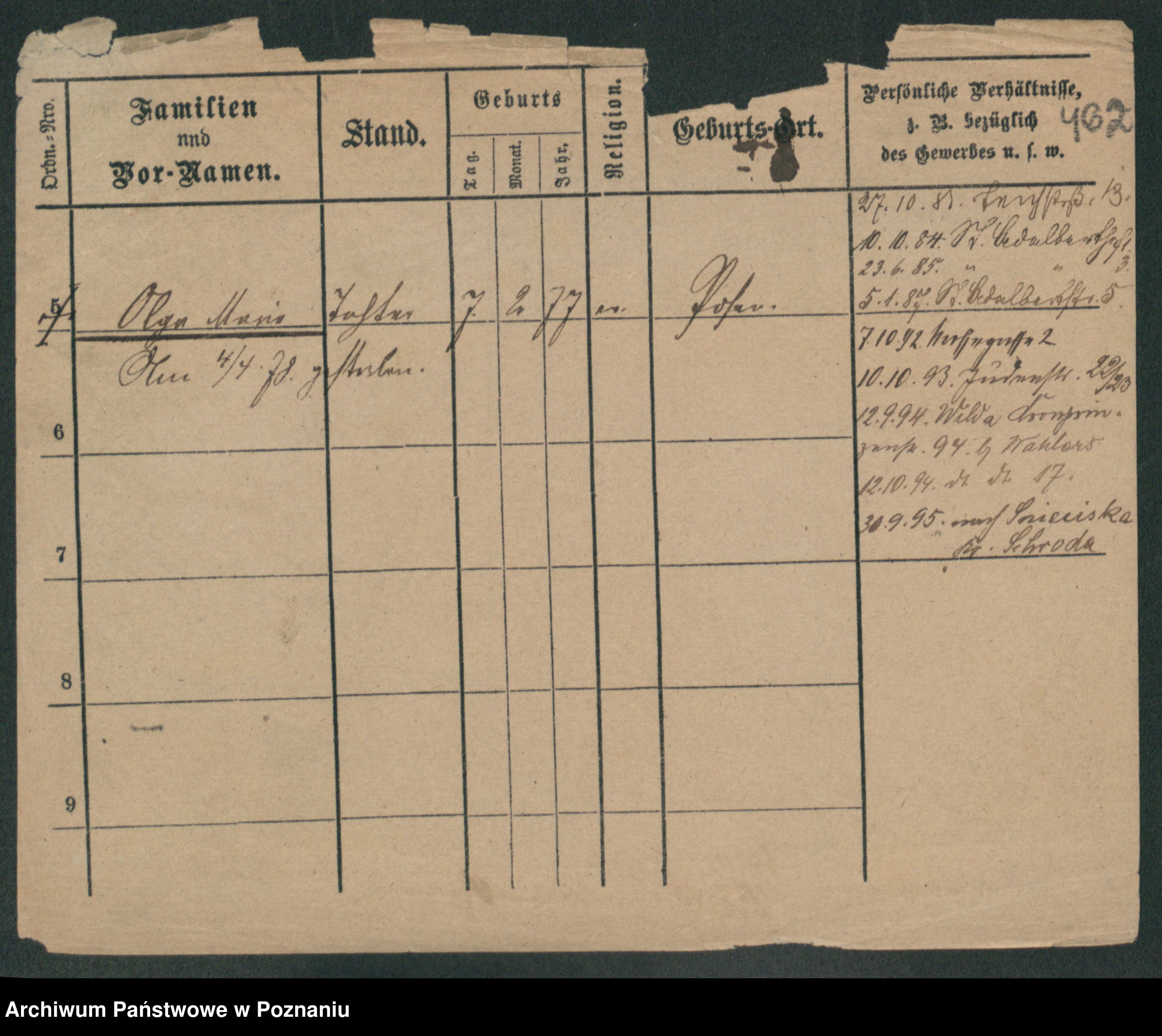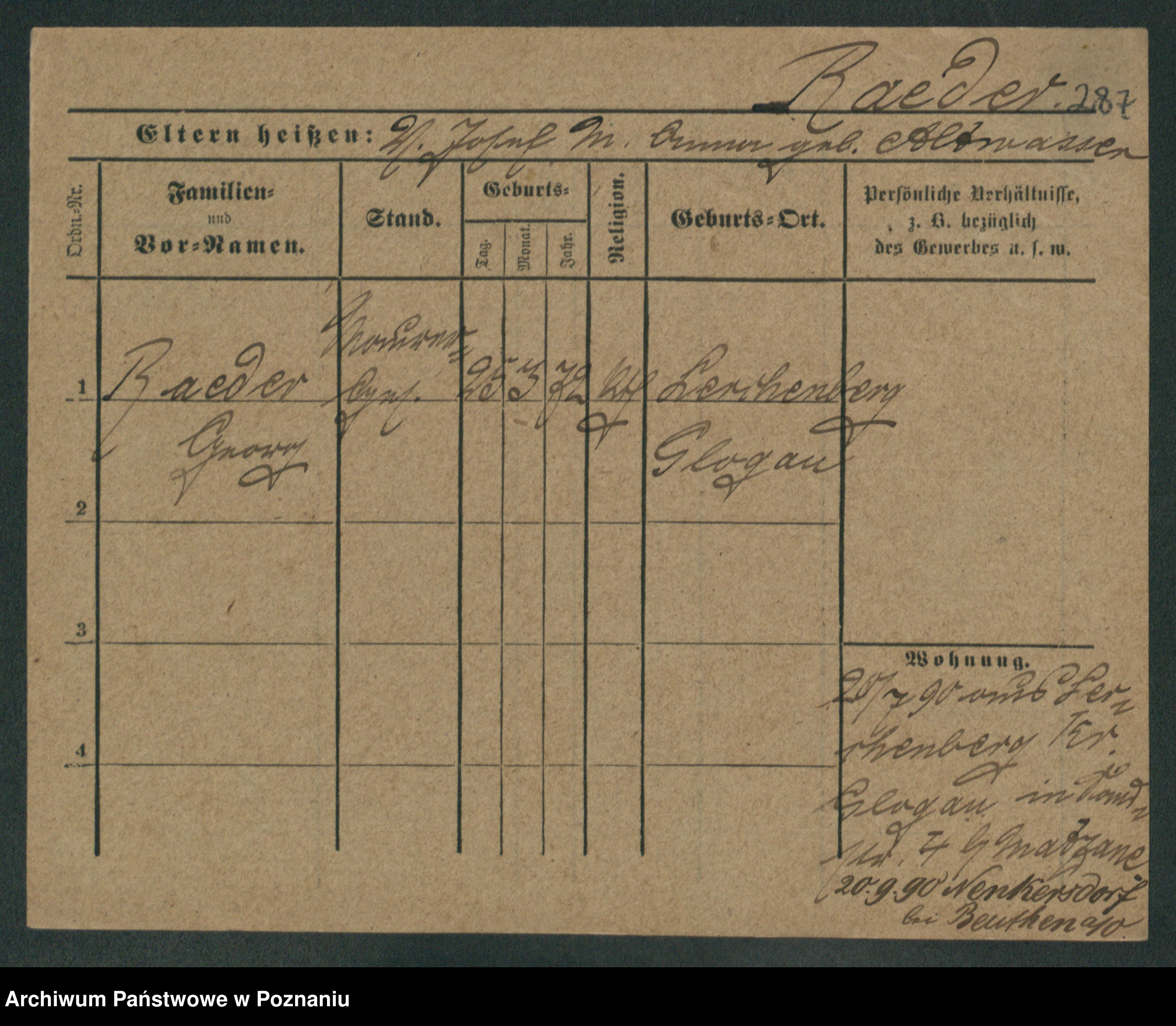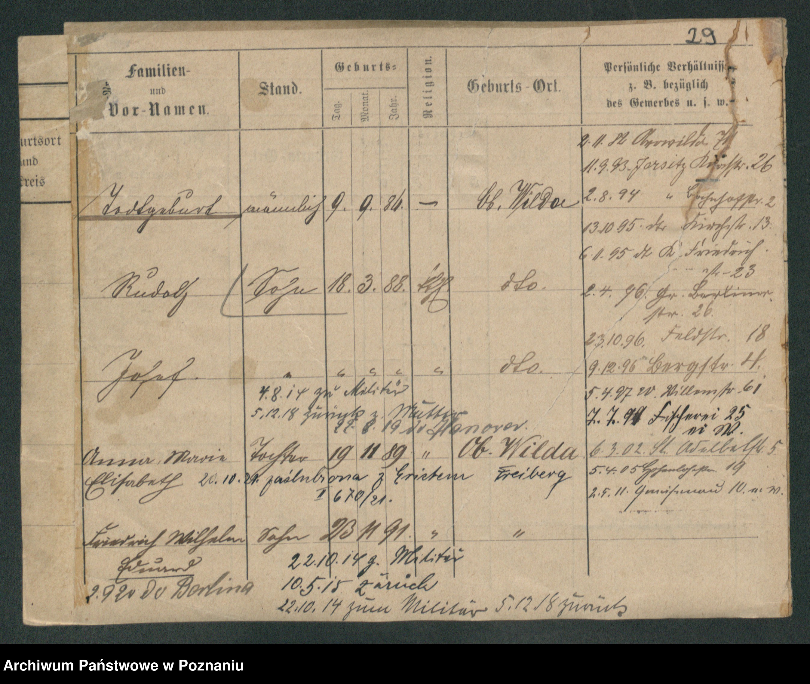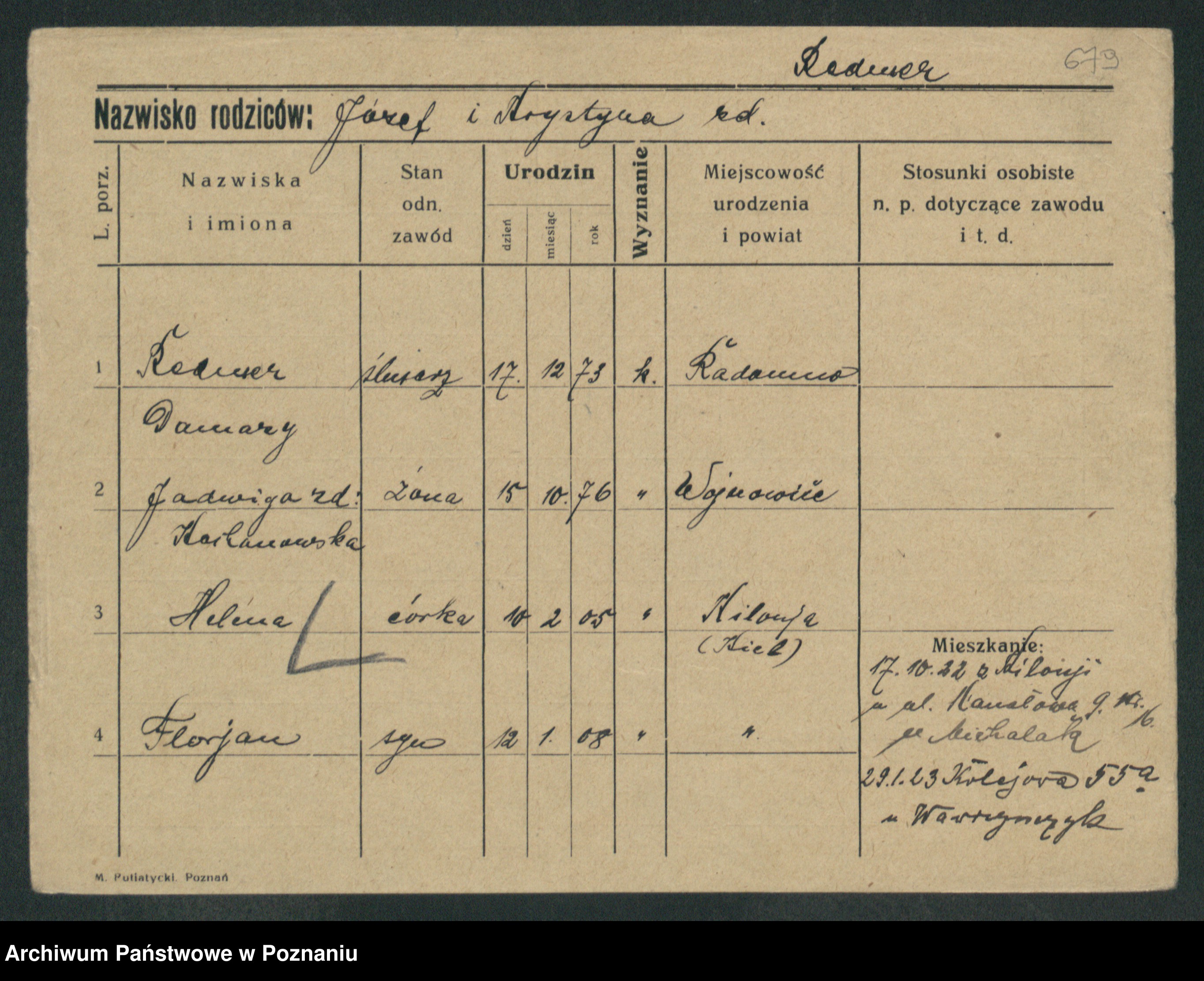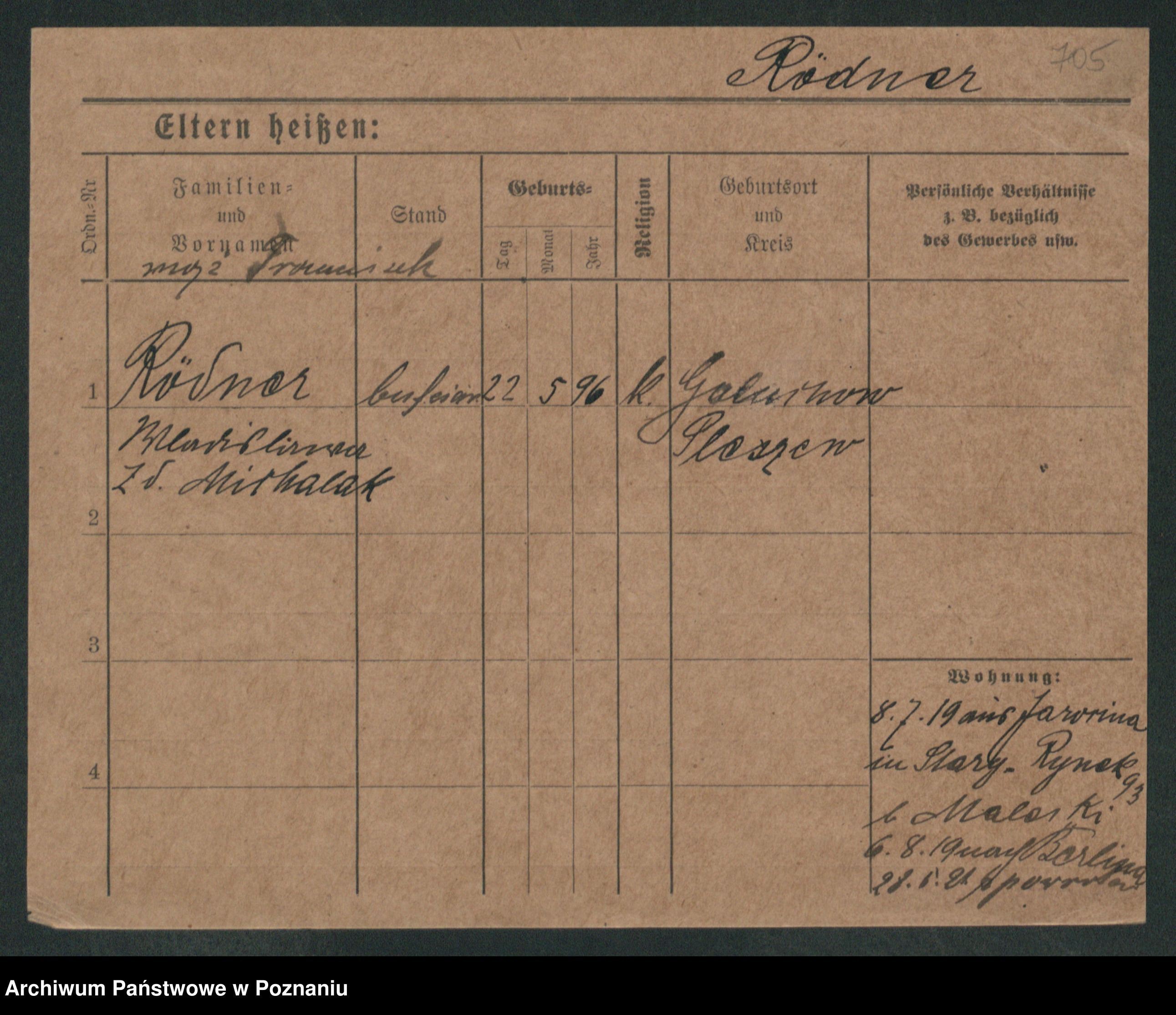 Podgląd karty osobowej dostępny jest po kliknięciu na nazwisko lub ikonkę karty. Można dokonywać powiększenia (ikony na górze) lub przechodzić między kolejnymi skanami (strzałki po bokach).