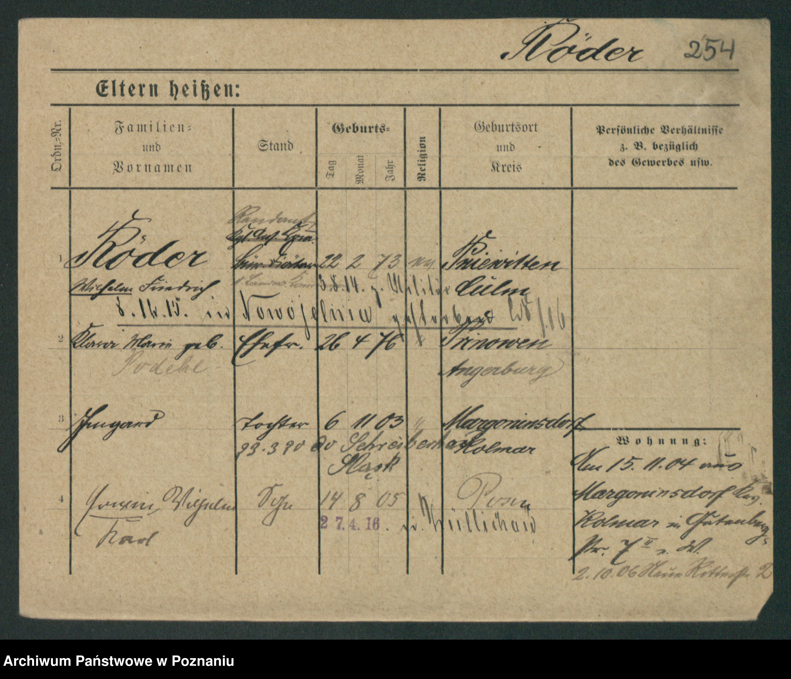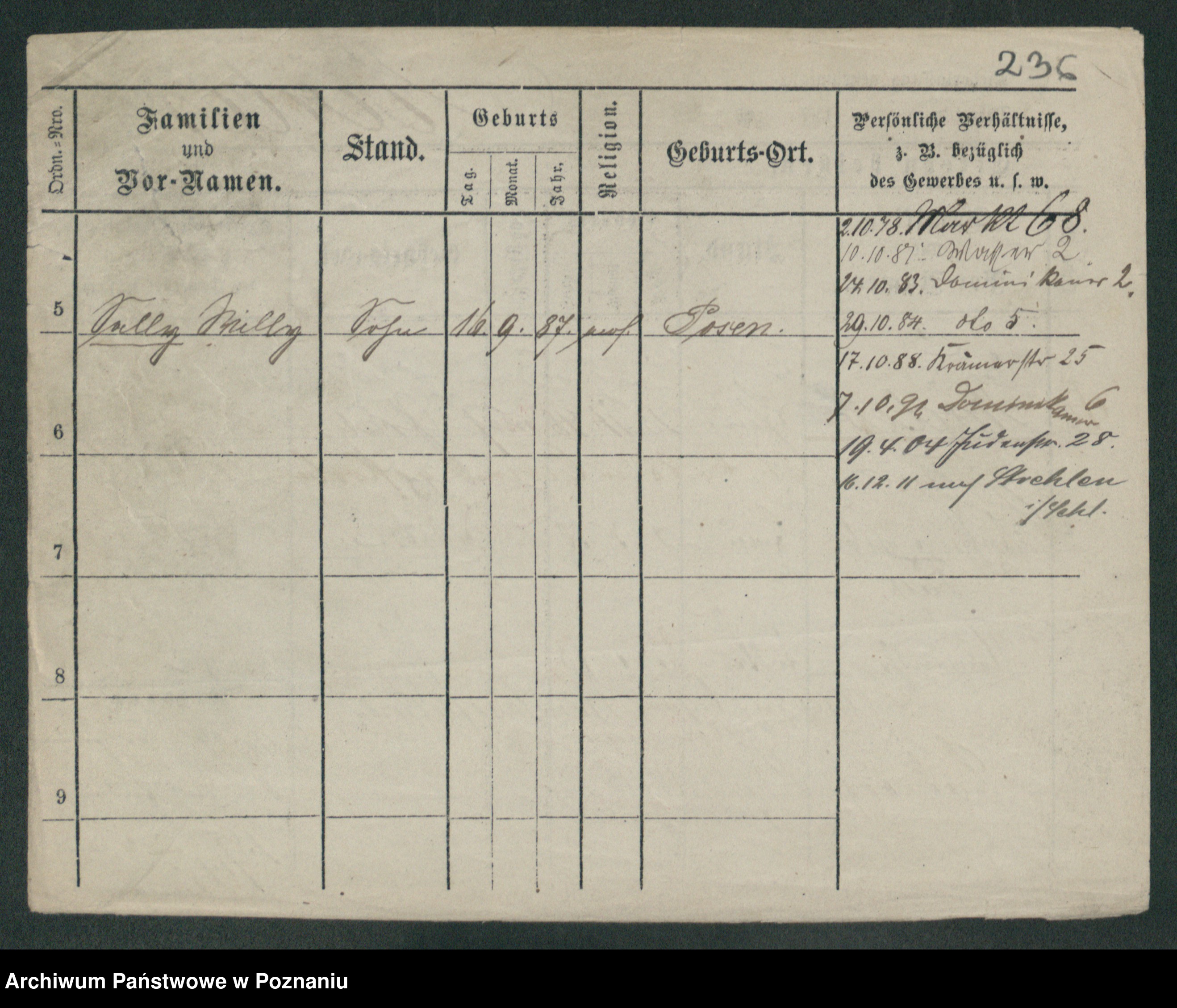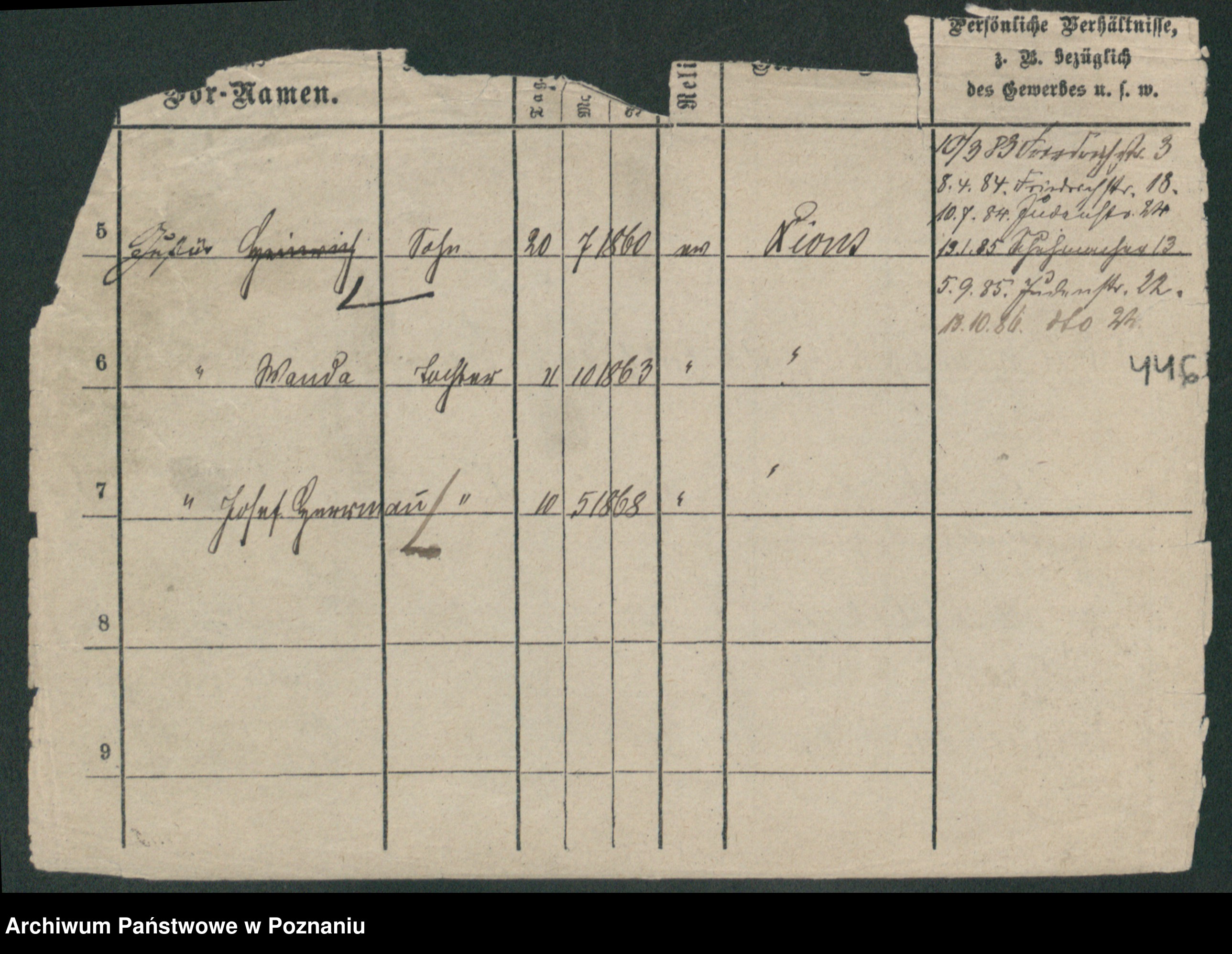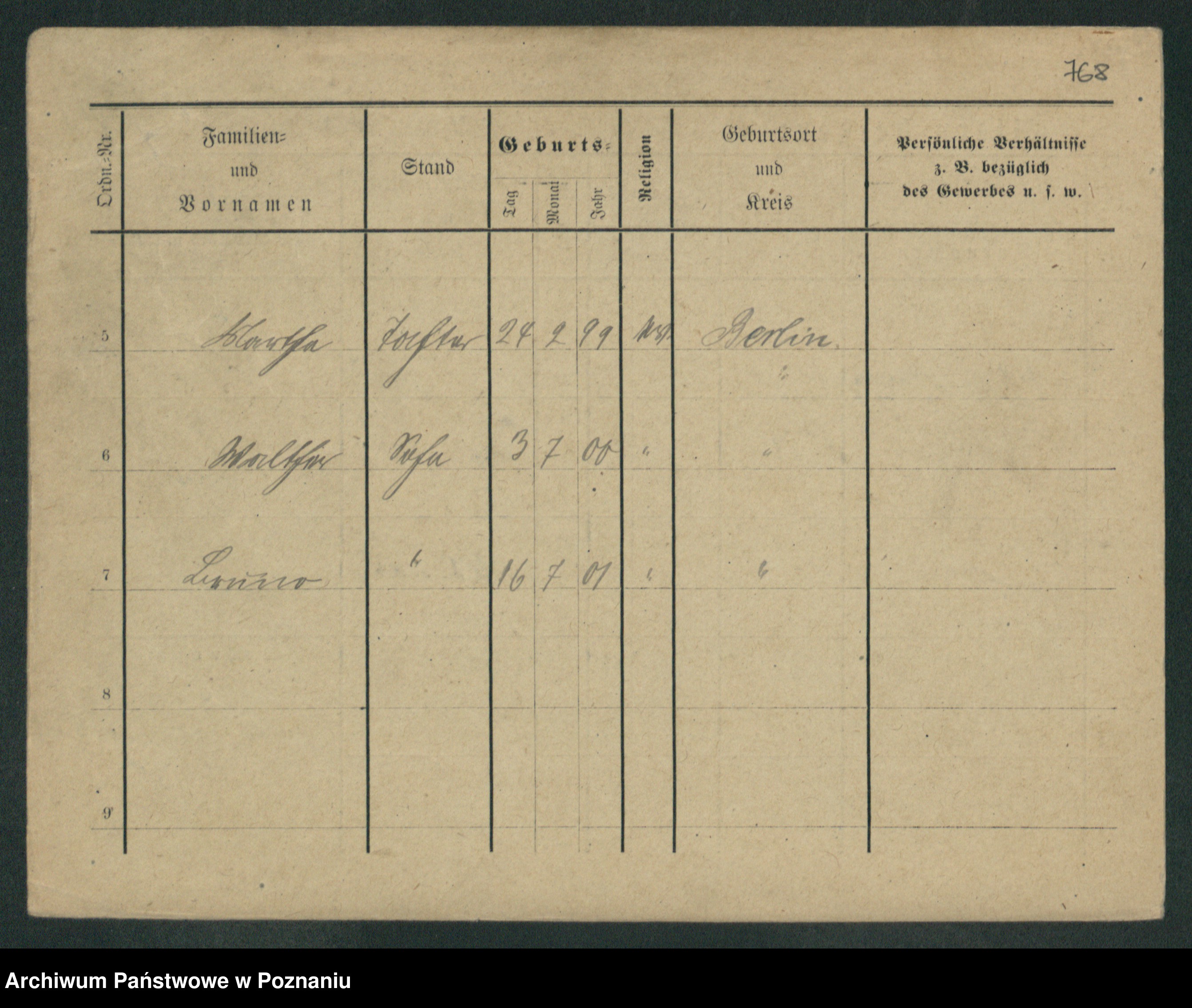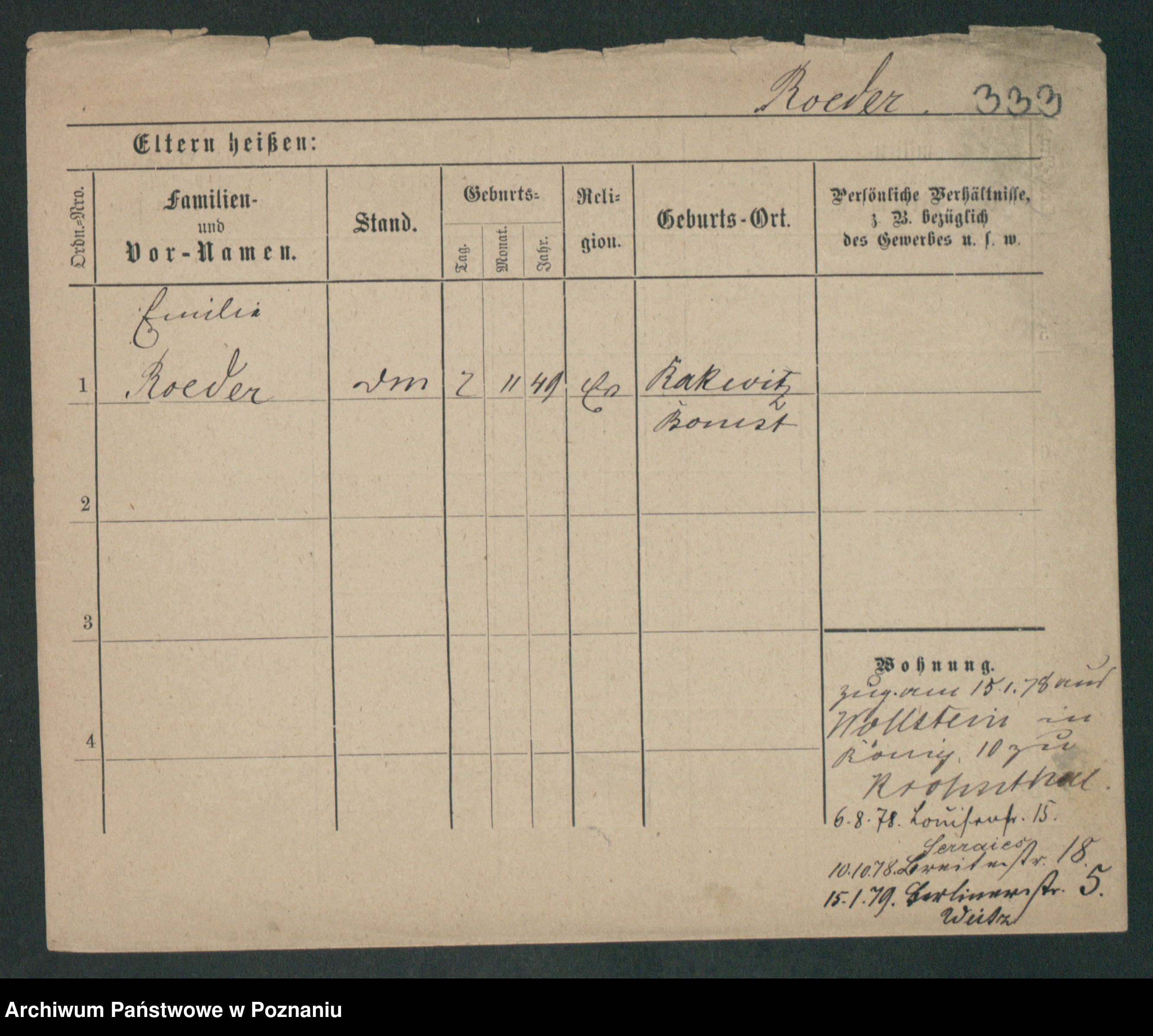Podgląd karty osobowej dostępny jest po kliknięciu na nazwisko lub ikonkę karty. Można dokonywać powiększenia (ikony na górze) lub przechodzić między kolejnymi skanami (strzałki po bokach).