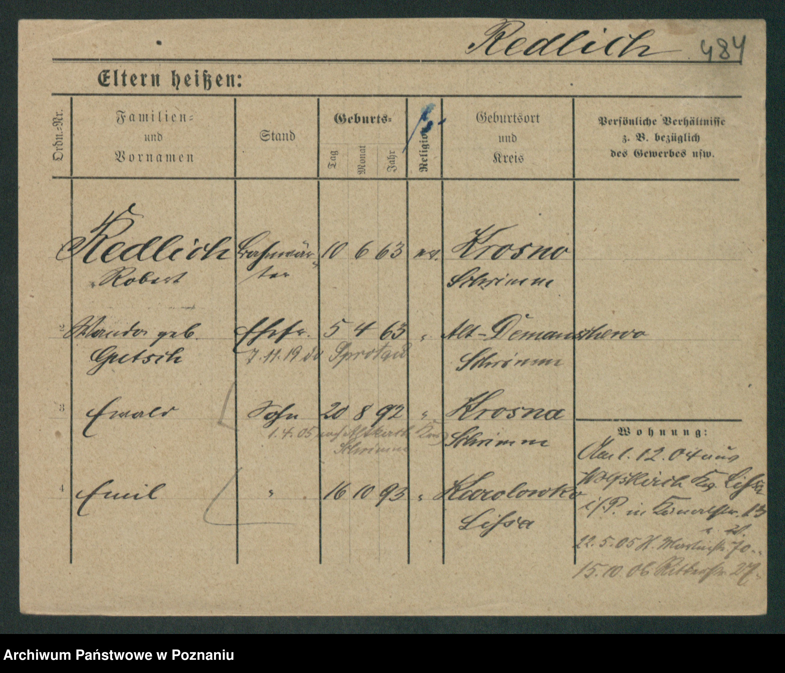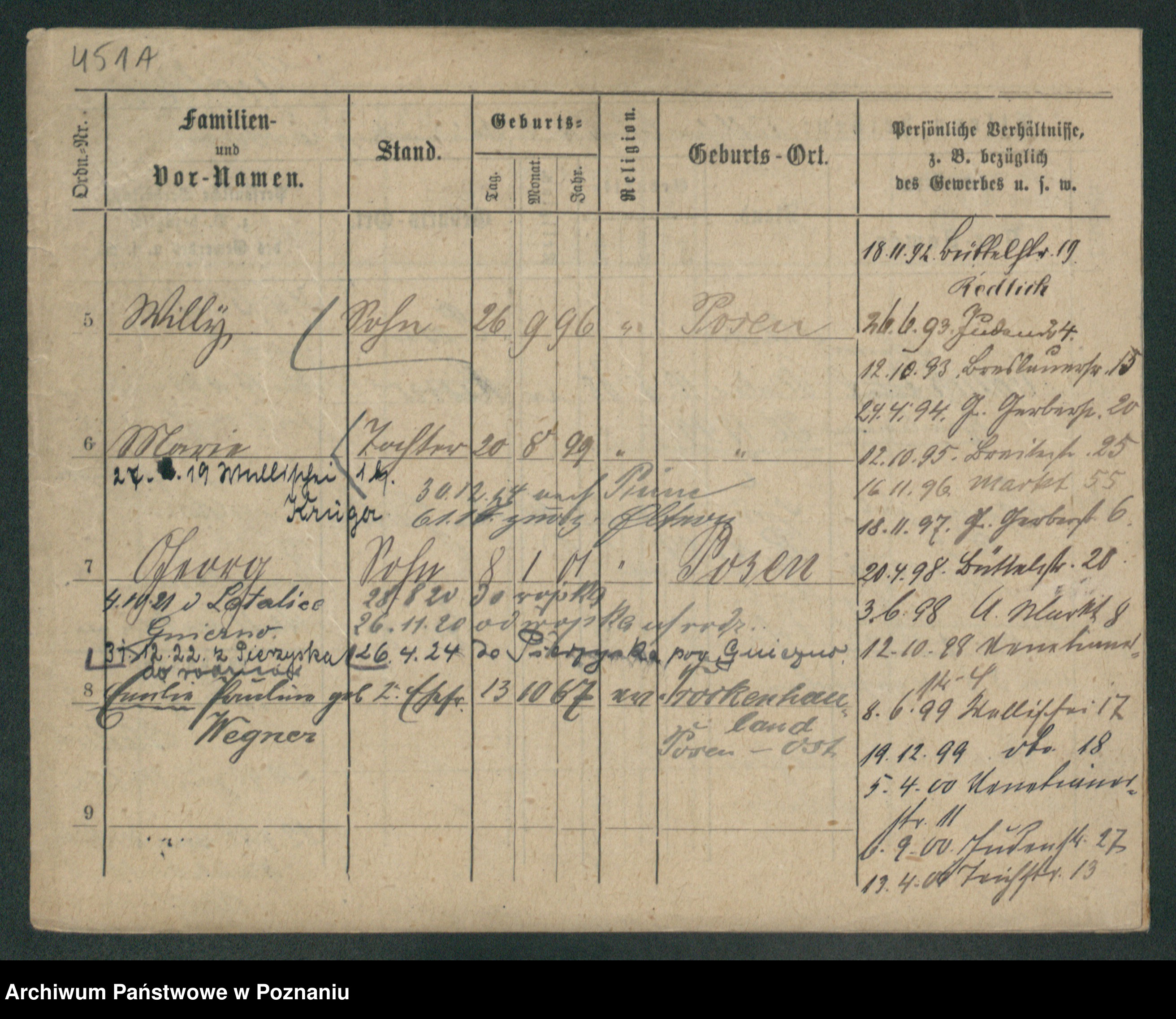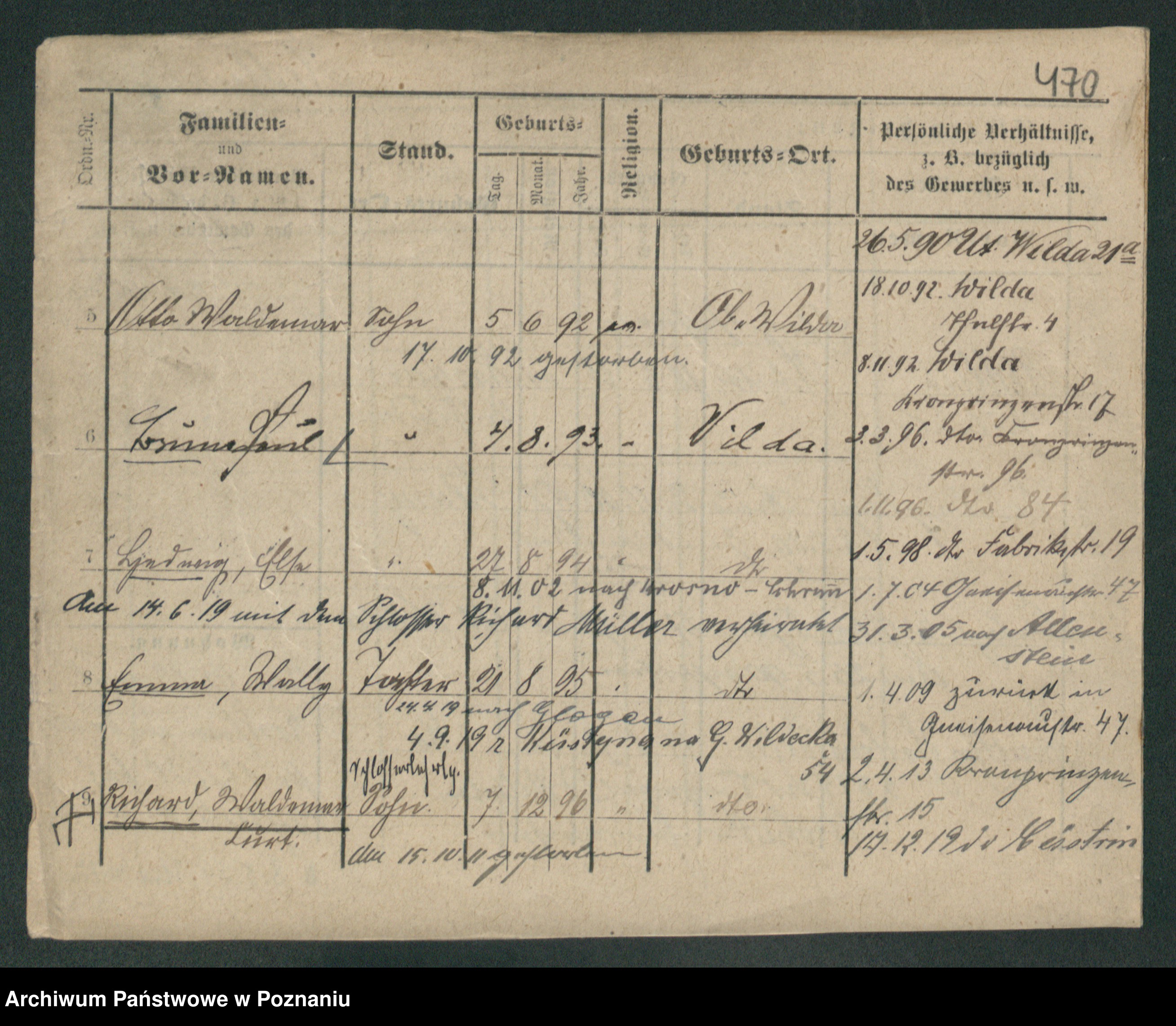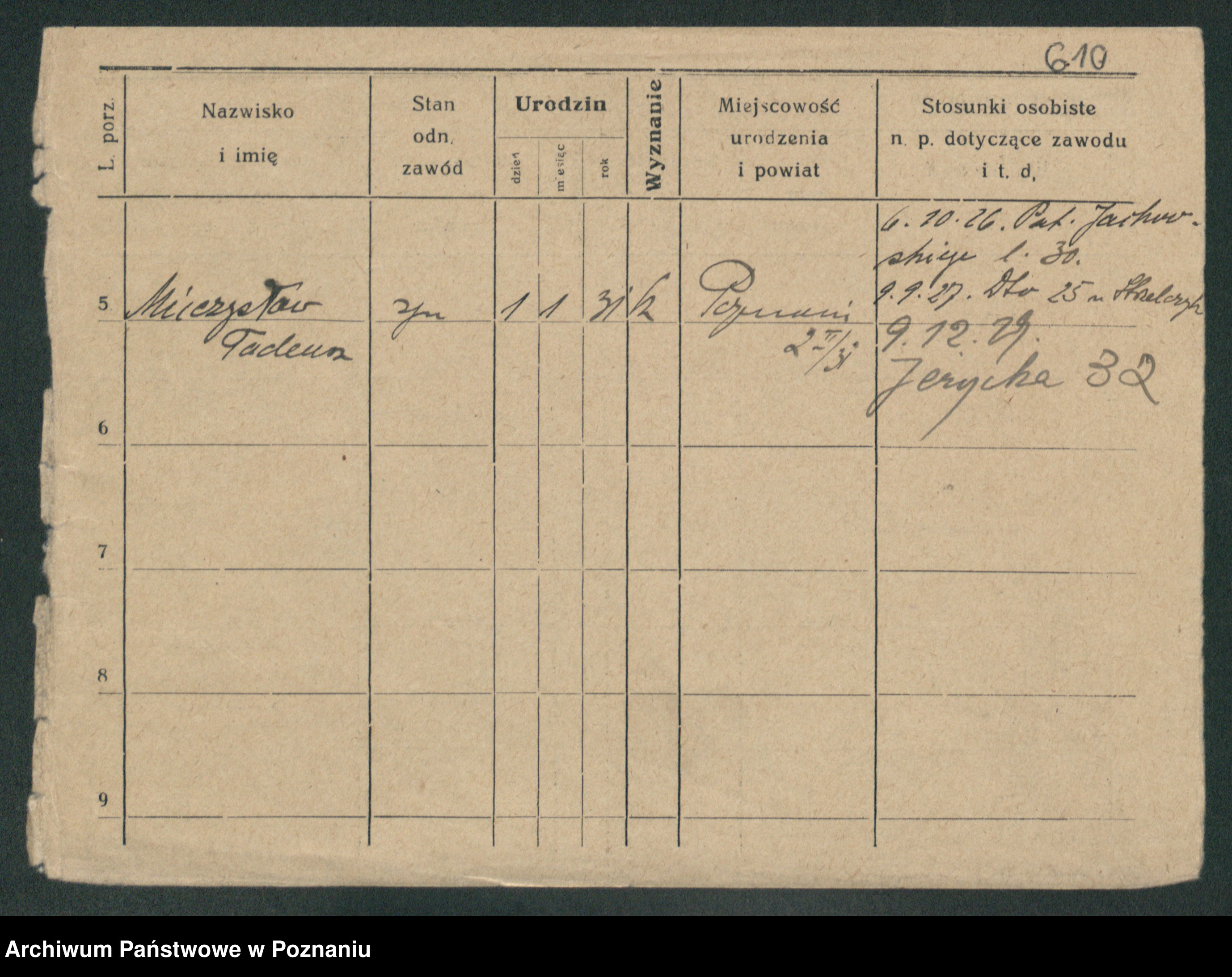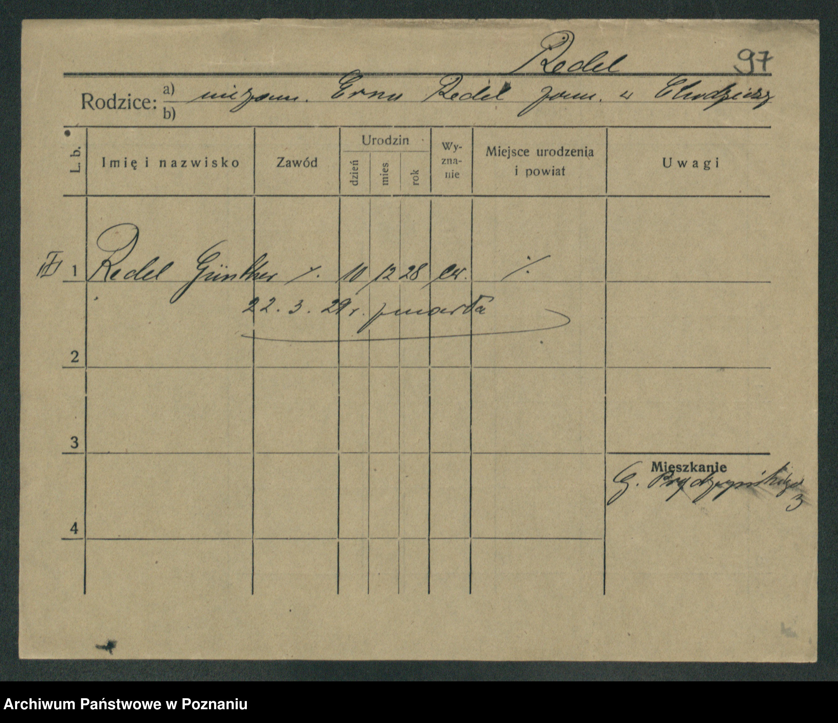 Podgląd karty osobowej dostępny jest po kliknięciu na nazwisko lub ikonkę karty. Można dokonywać powiększenia (ikony na górze) lub przechodzić między kolejnymi skanami (strzałki po bokach).