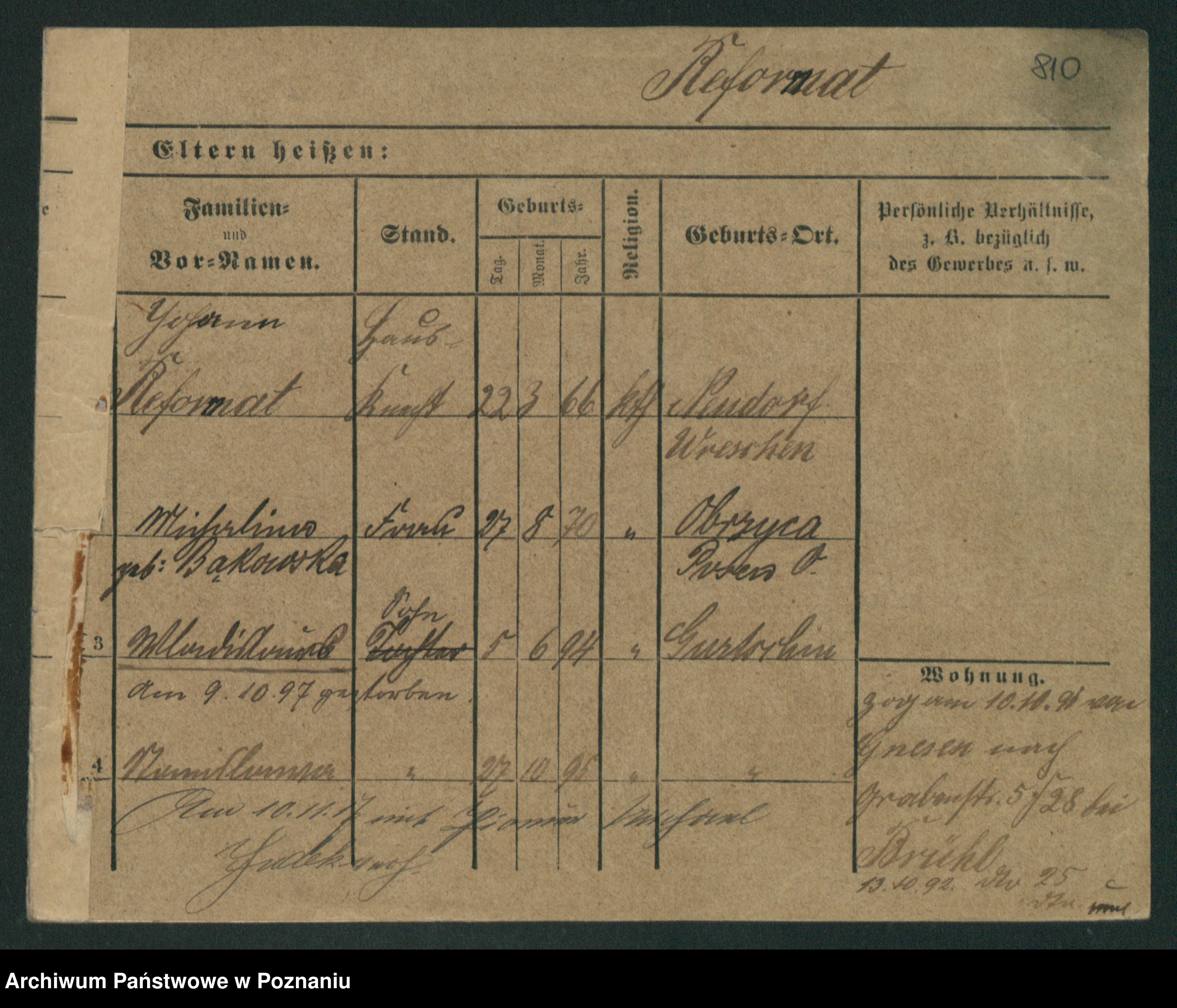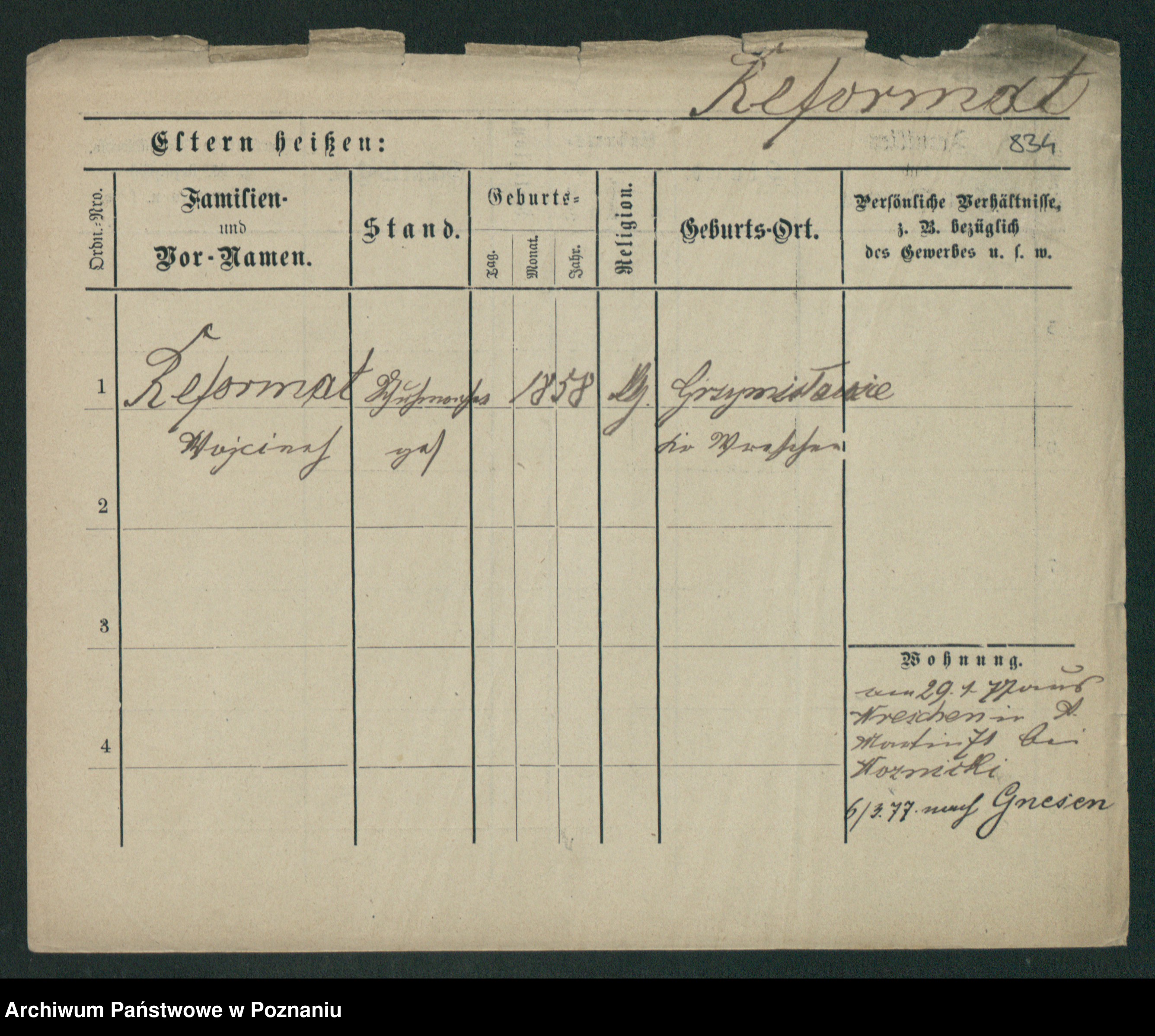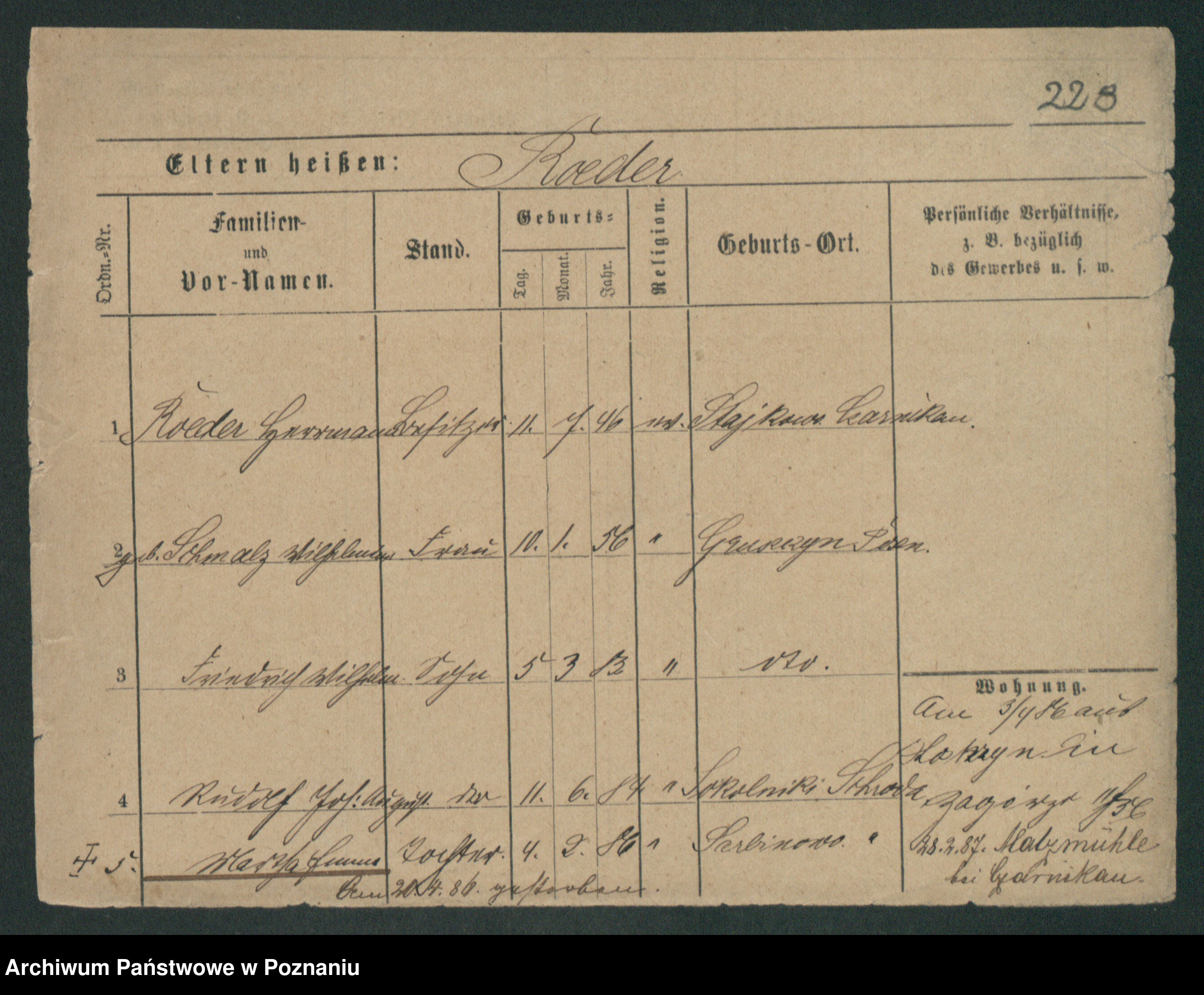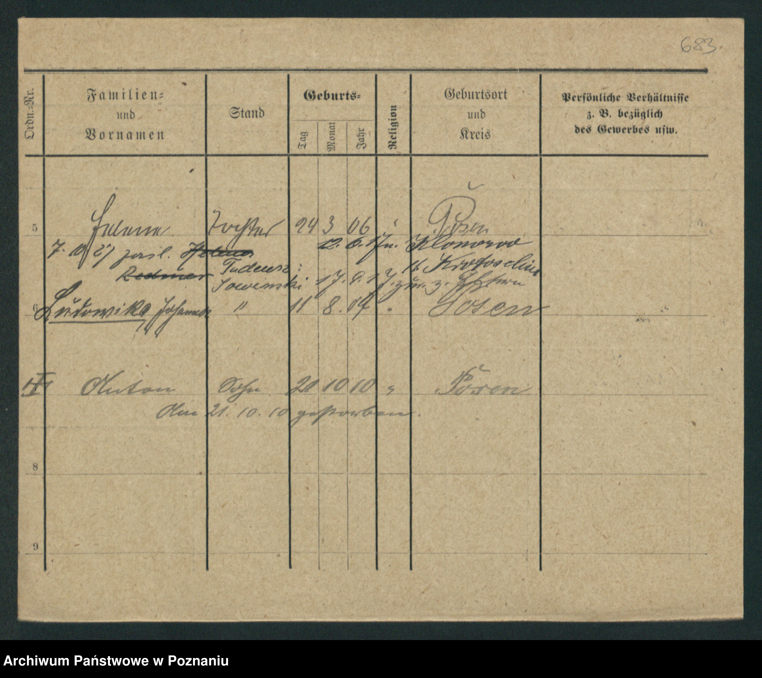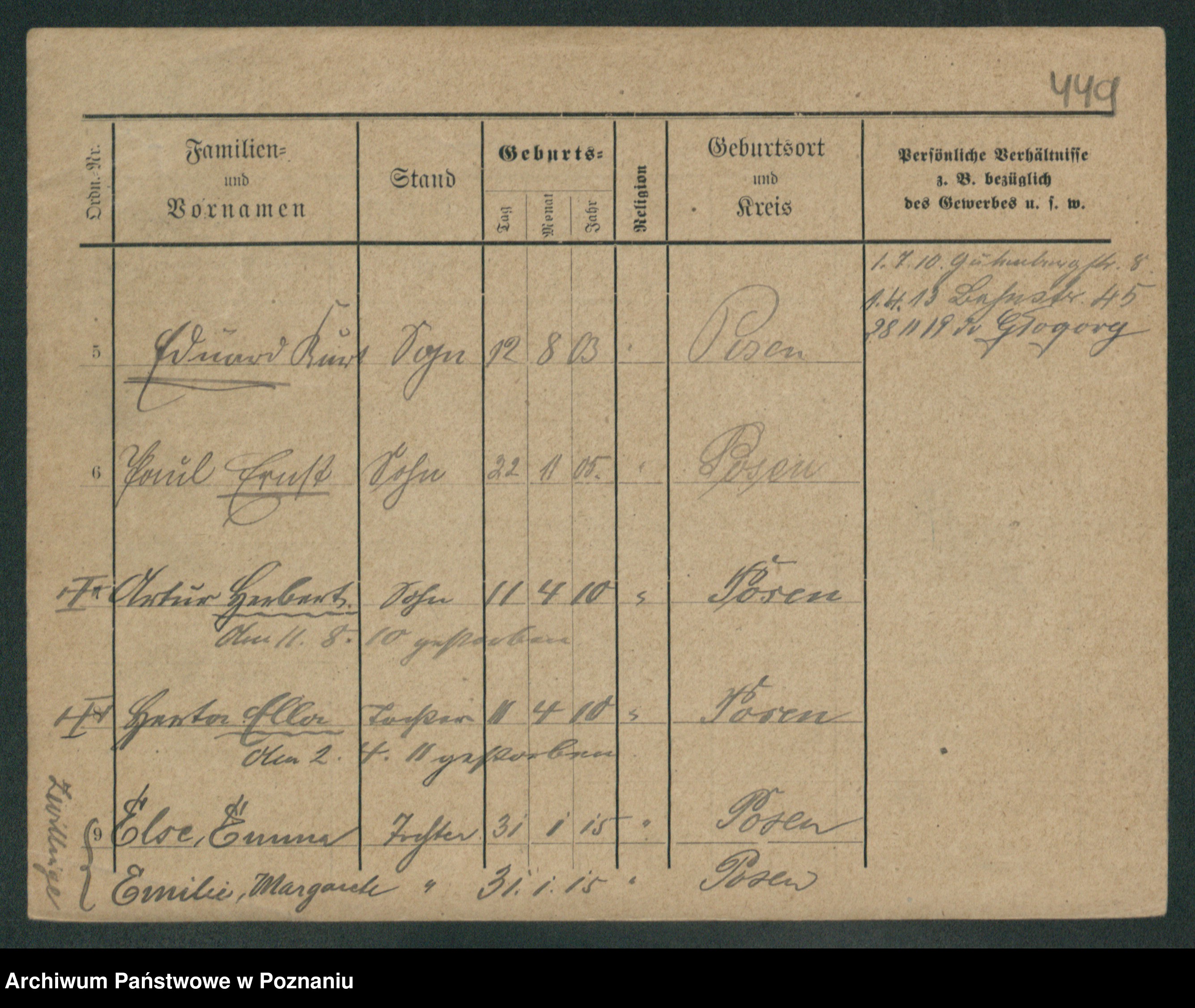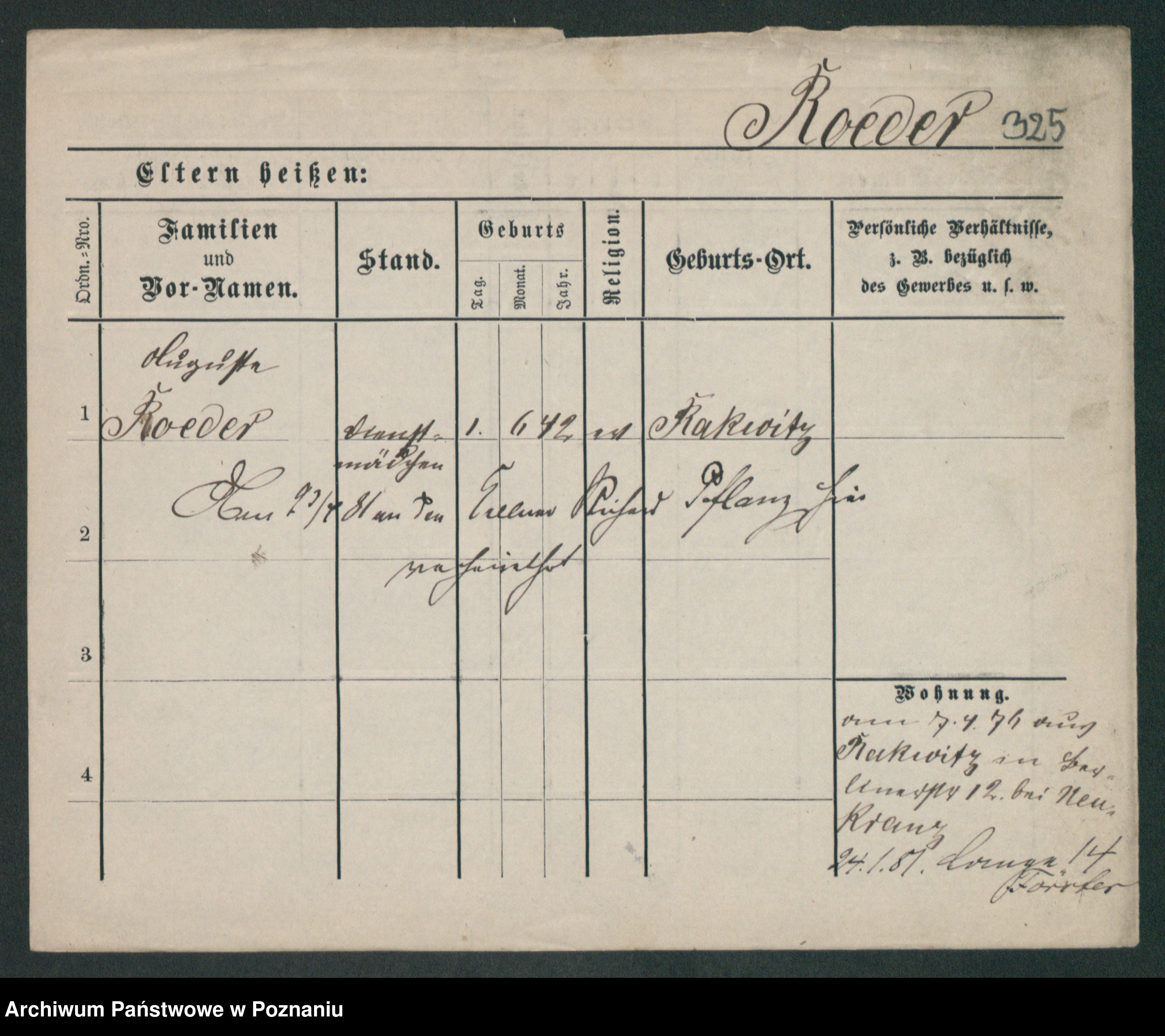 Podgląd karty osobowej dostępny jest po kliknięciu na nazwisko lub ikonkę karty. Można dokonywać powiększenia (ikony na górze) lub przechodzić między kolejnymi skanami (strzałki po bokach).