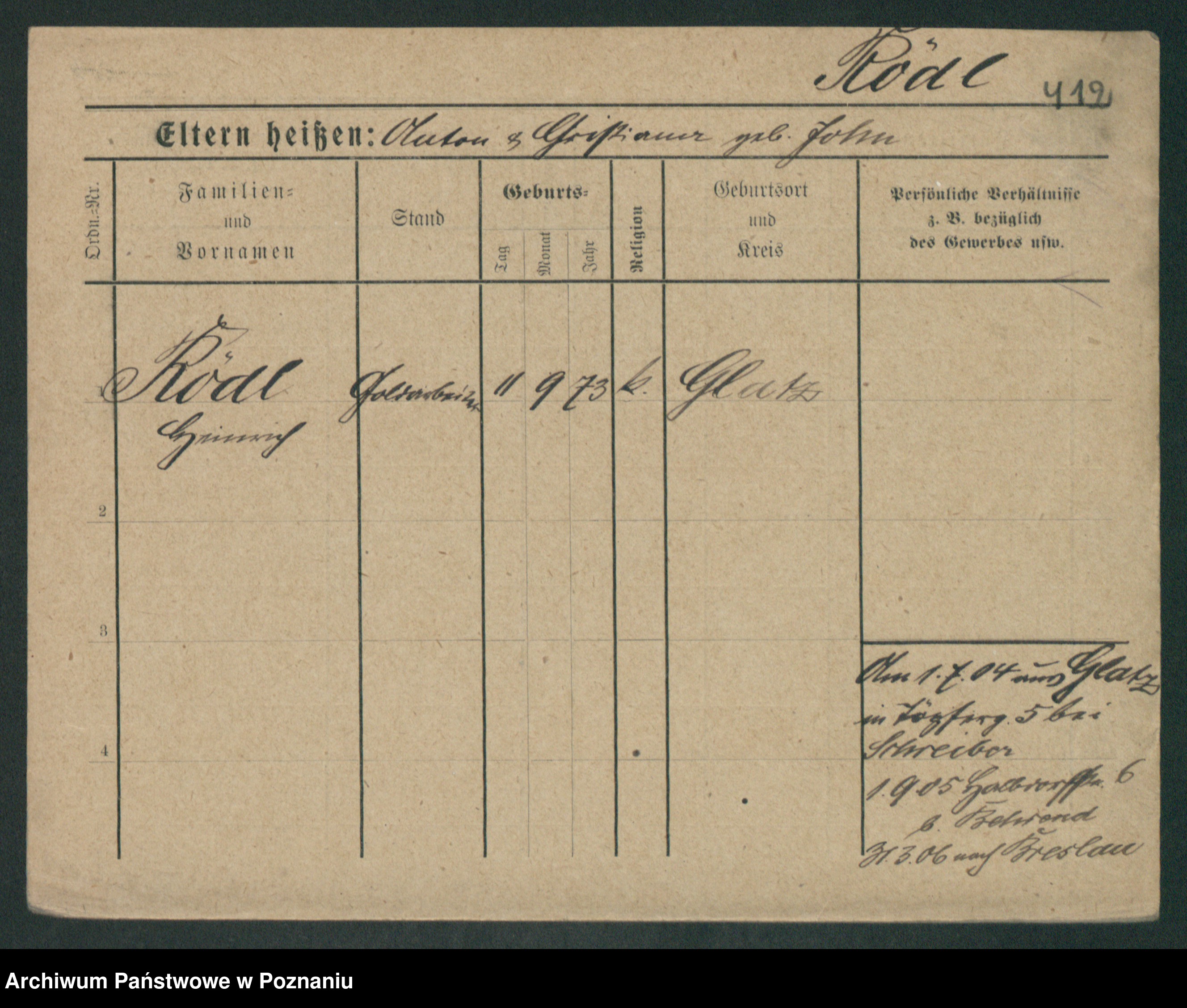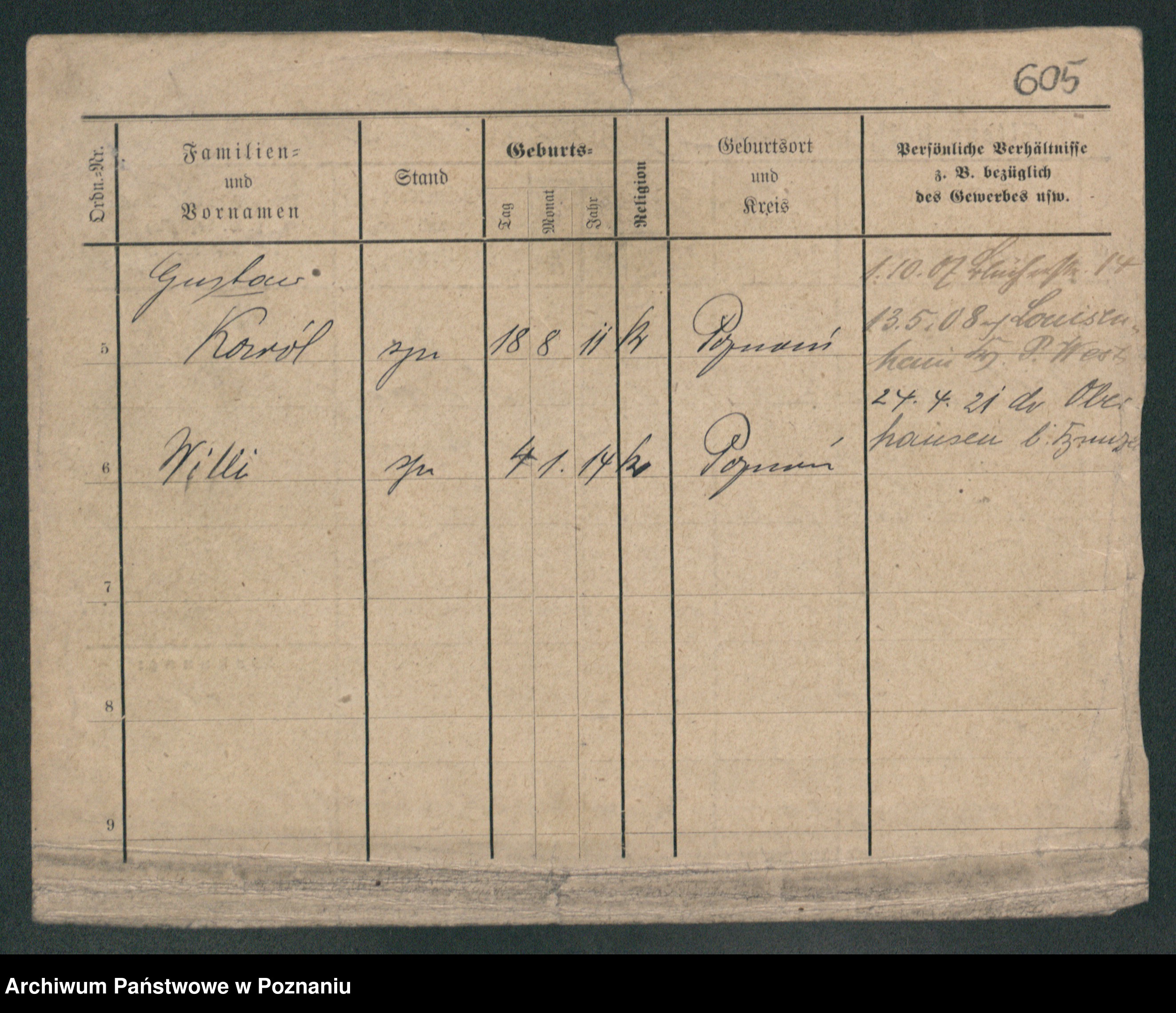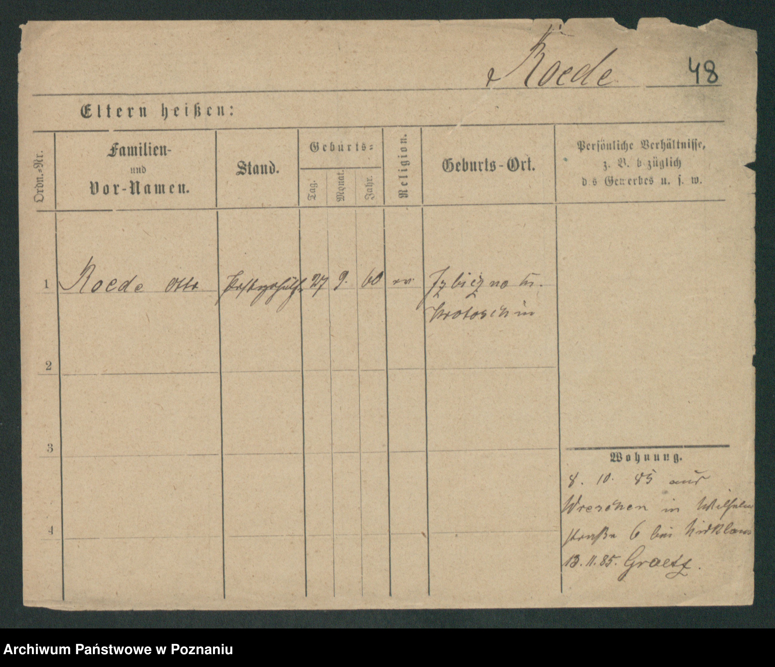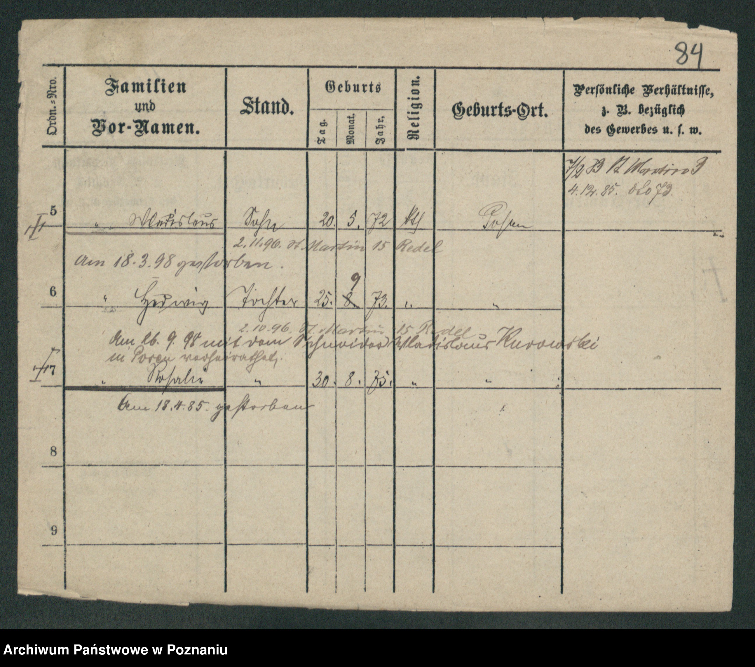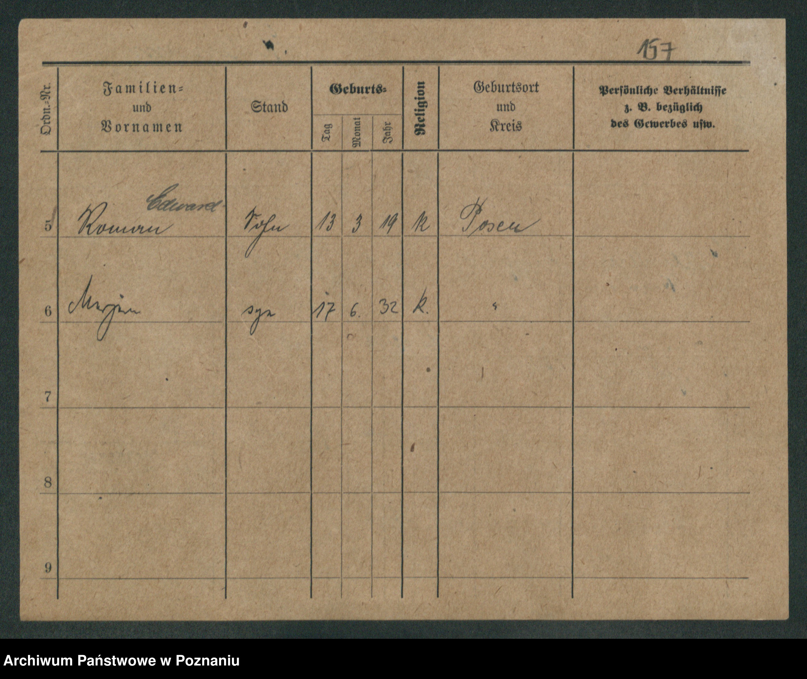 Podgląd karty osobowej dostępny jest po kliknięciu na nazwisko lub ikonkę karty. Można dokonywać powiększenia (ikony na górze) lub przechodzić między kolejnymi skanami (strzałki po bokach).