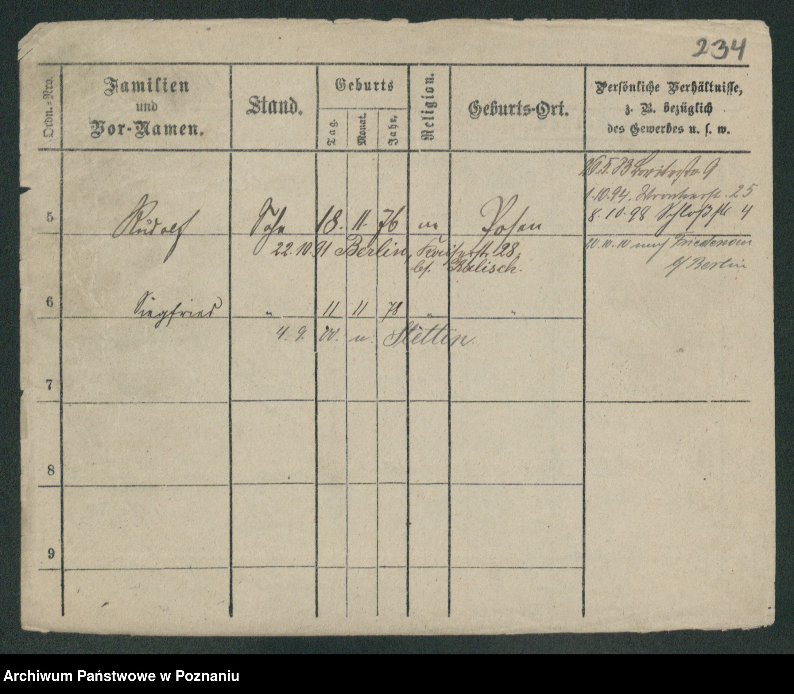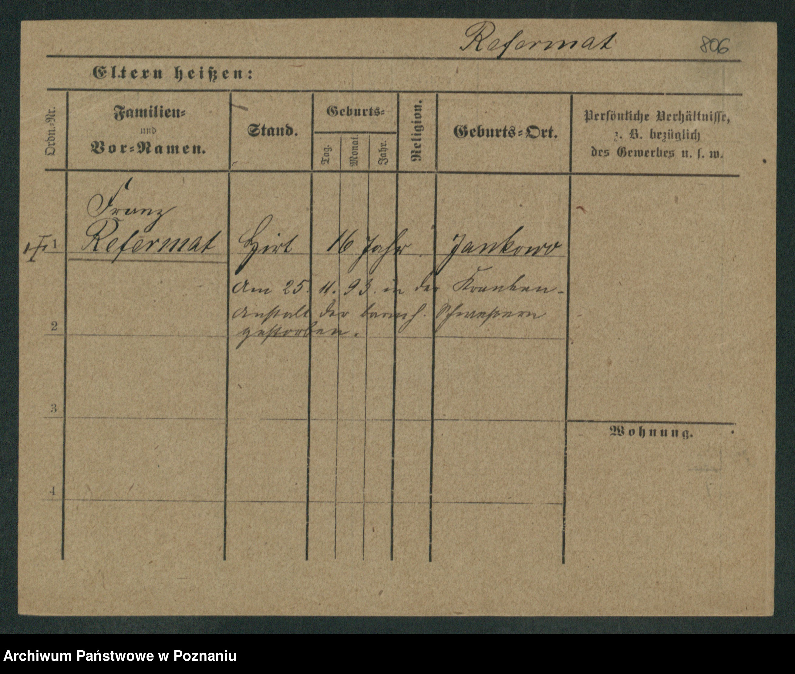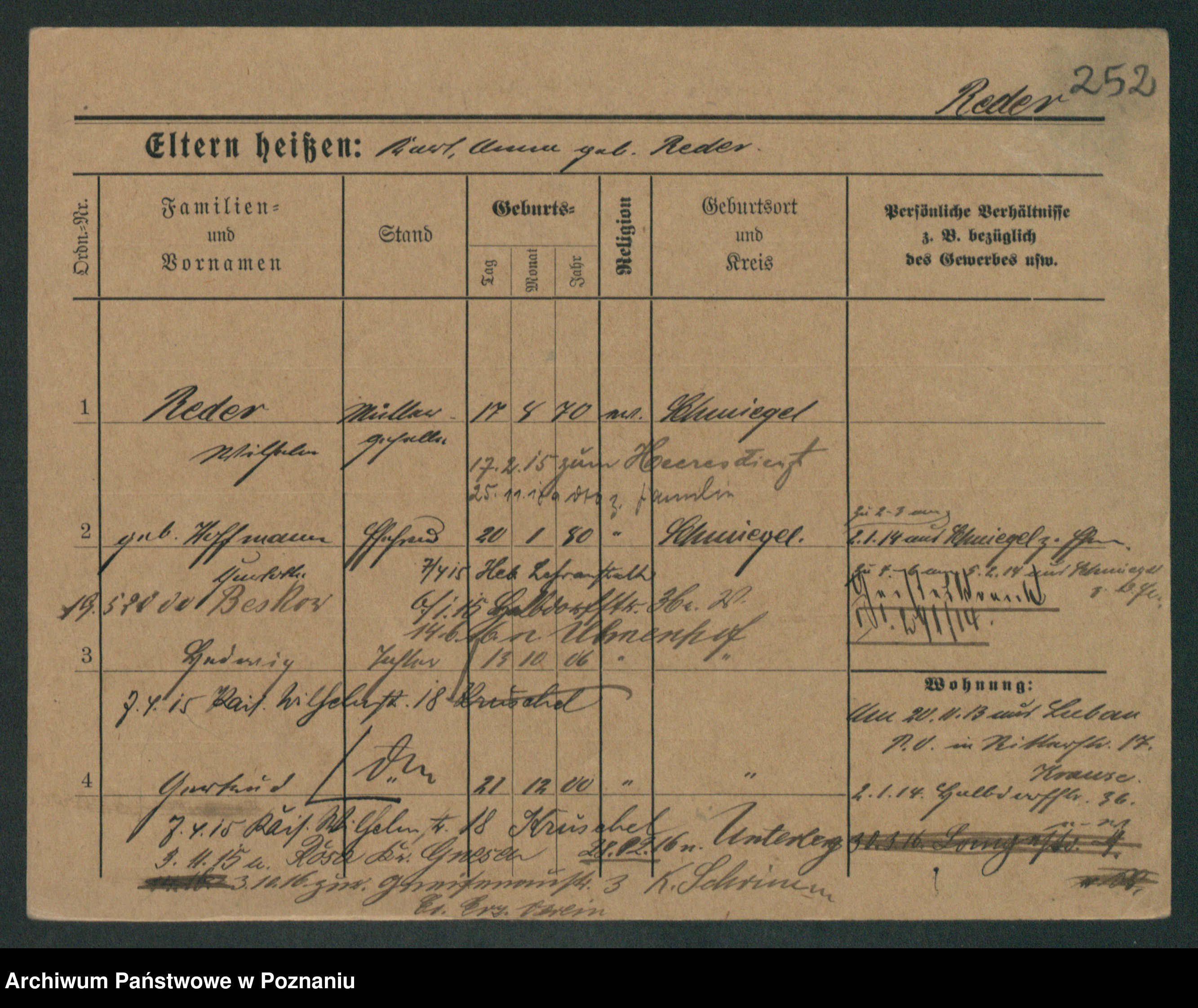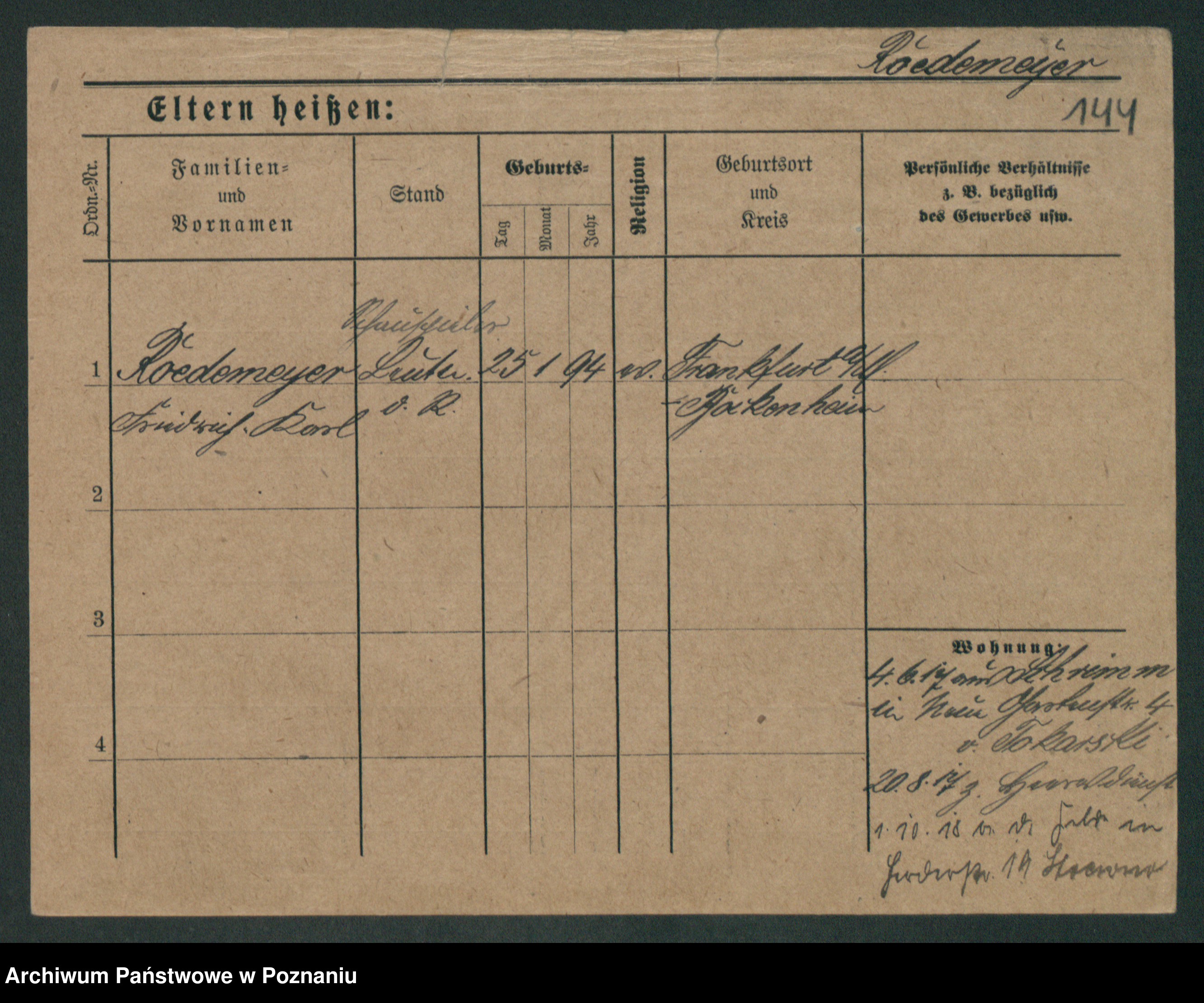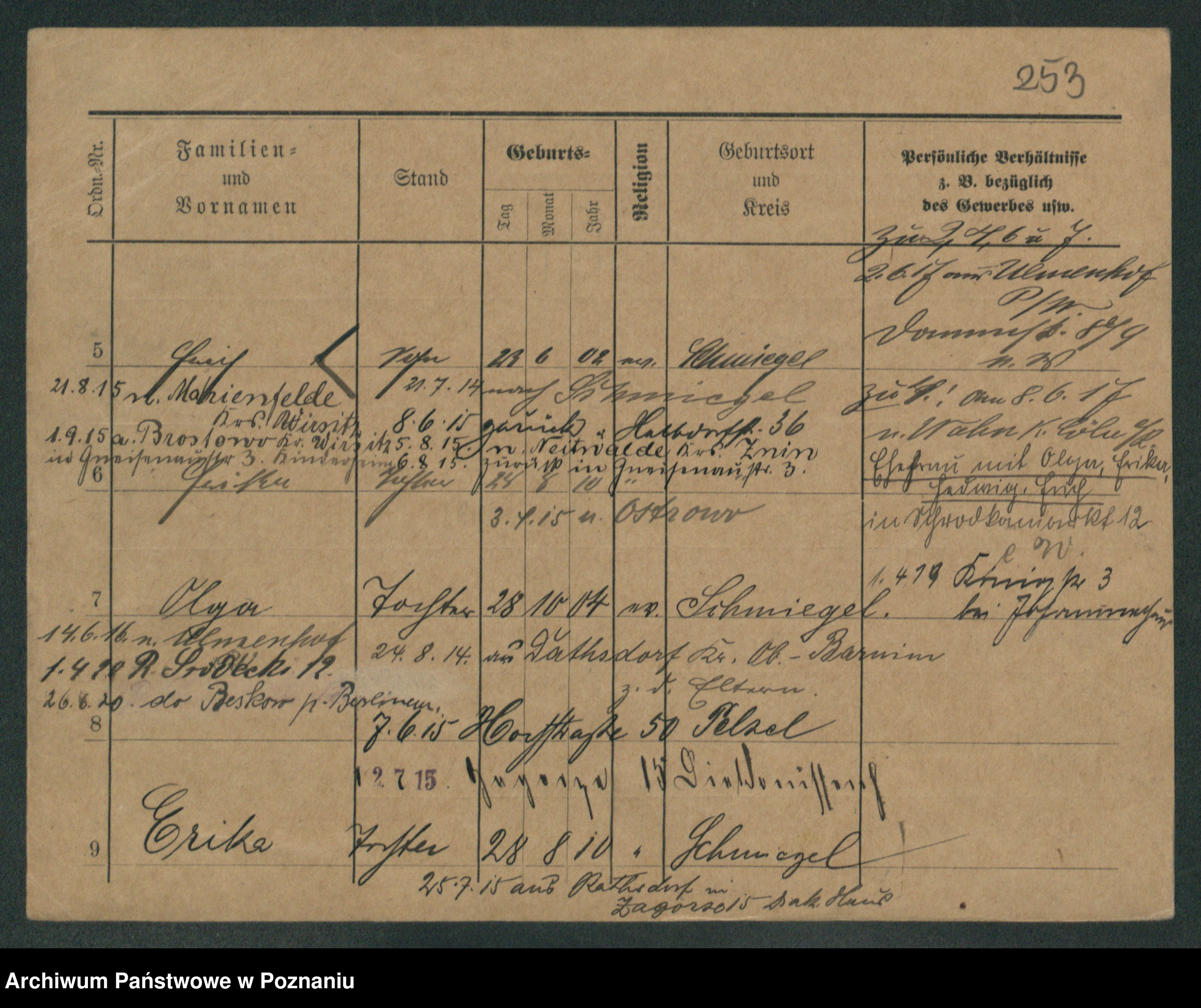 Podgląd karty osobowej dostępny jest po kliknięciu na nazwisko lub ikonkę karty. Można dokonywać powiększenia (ikony na górze) lub przechodzić między kolejnymi skanami (strzałki po bokach).