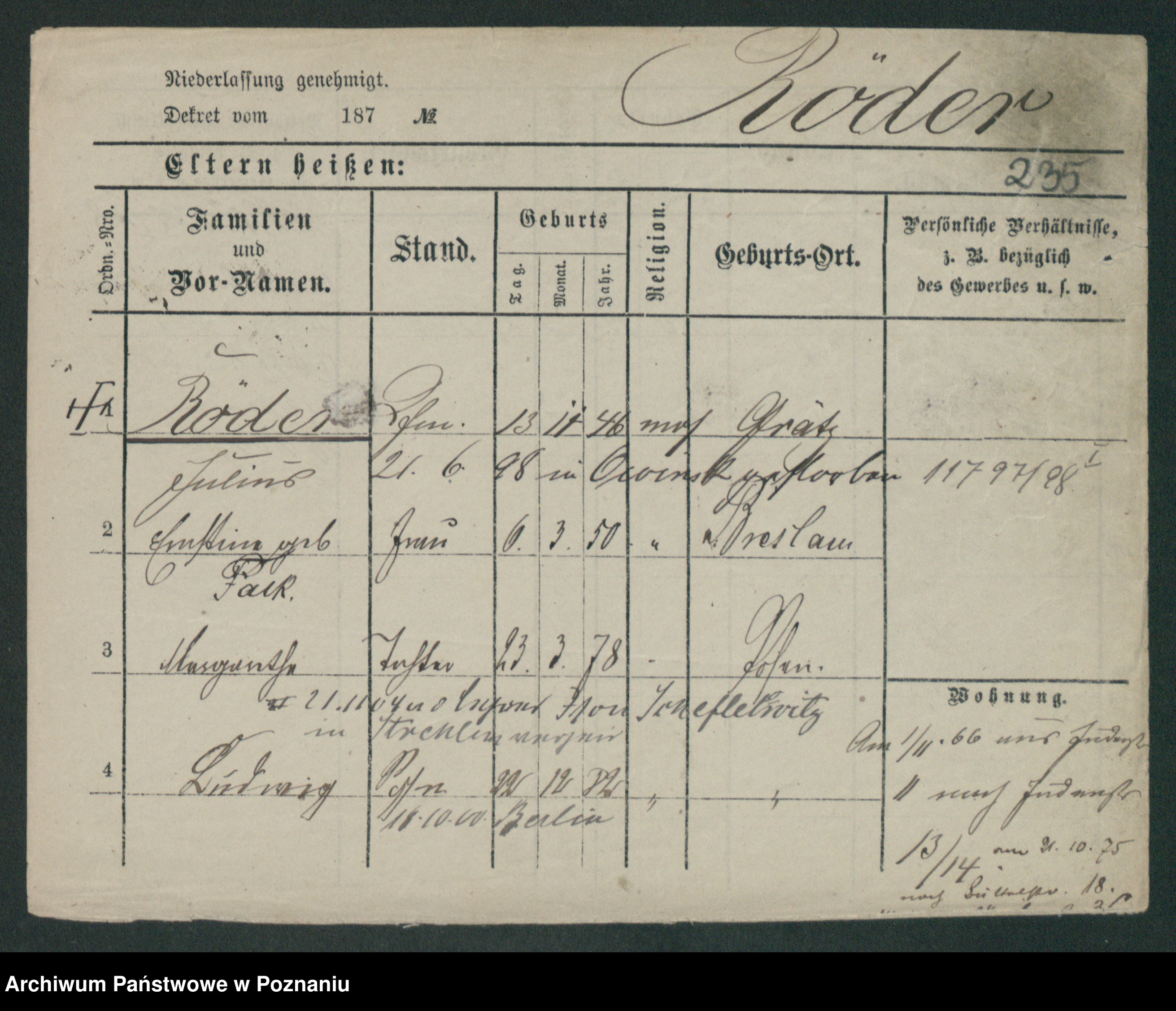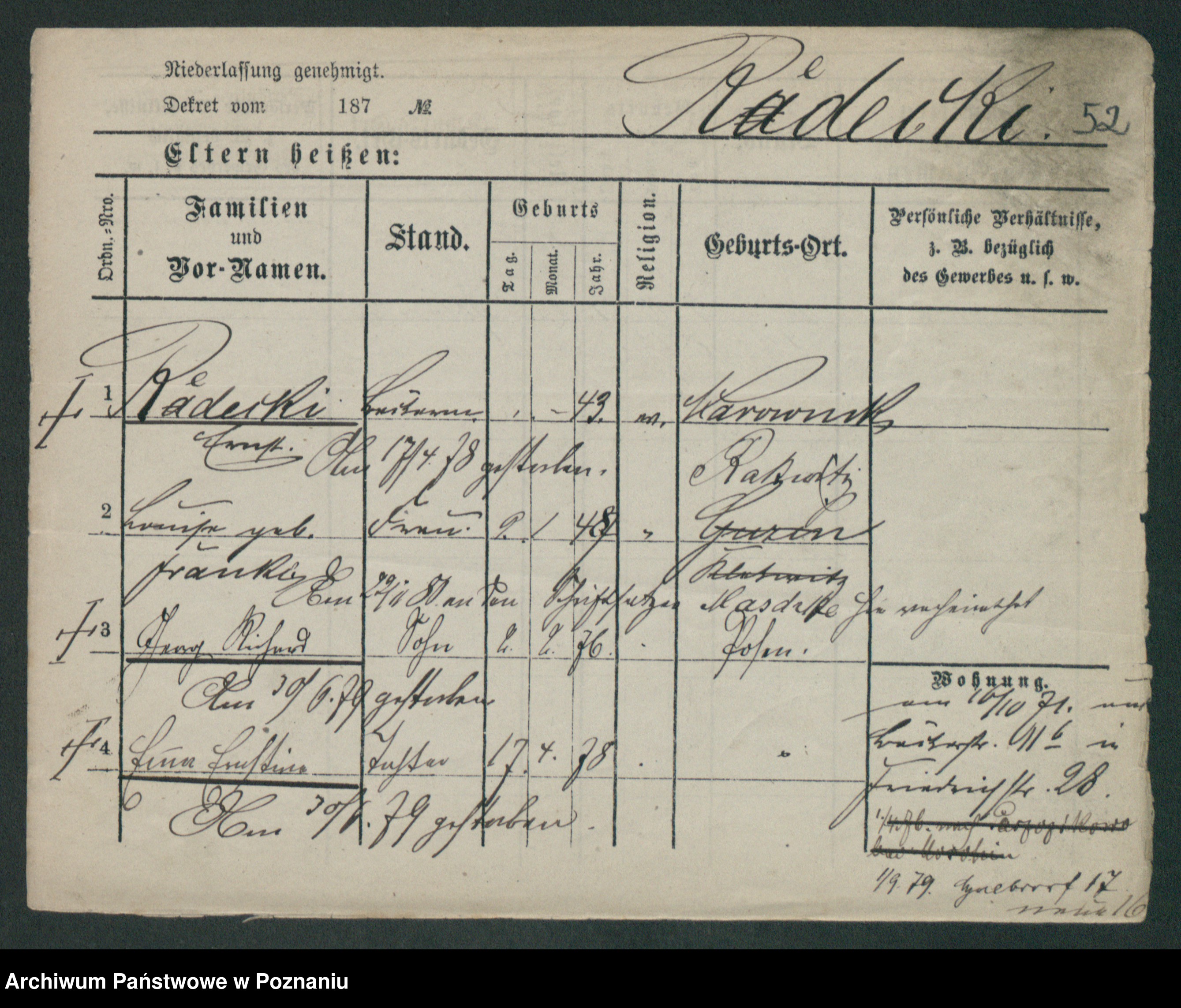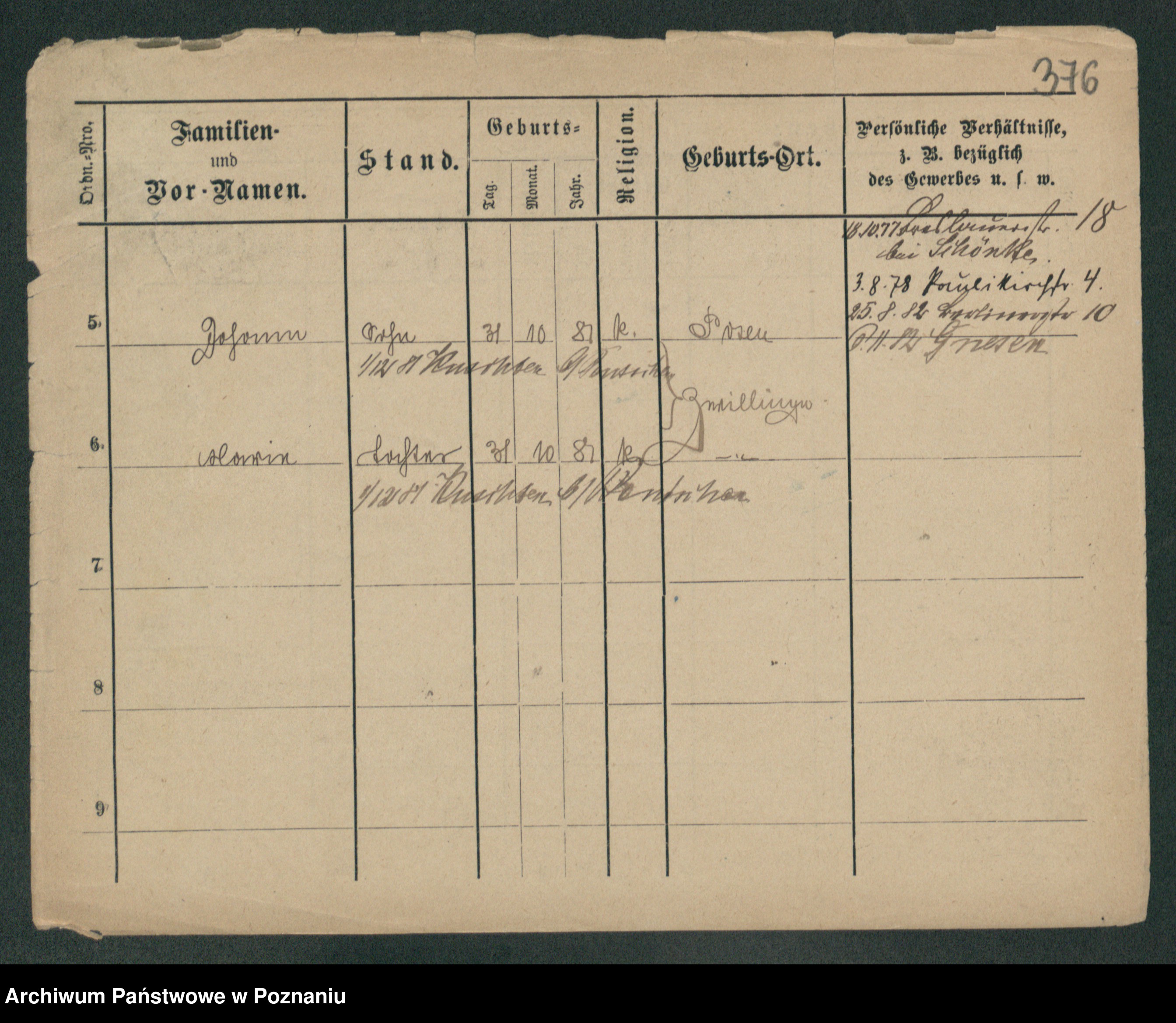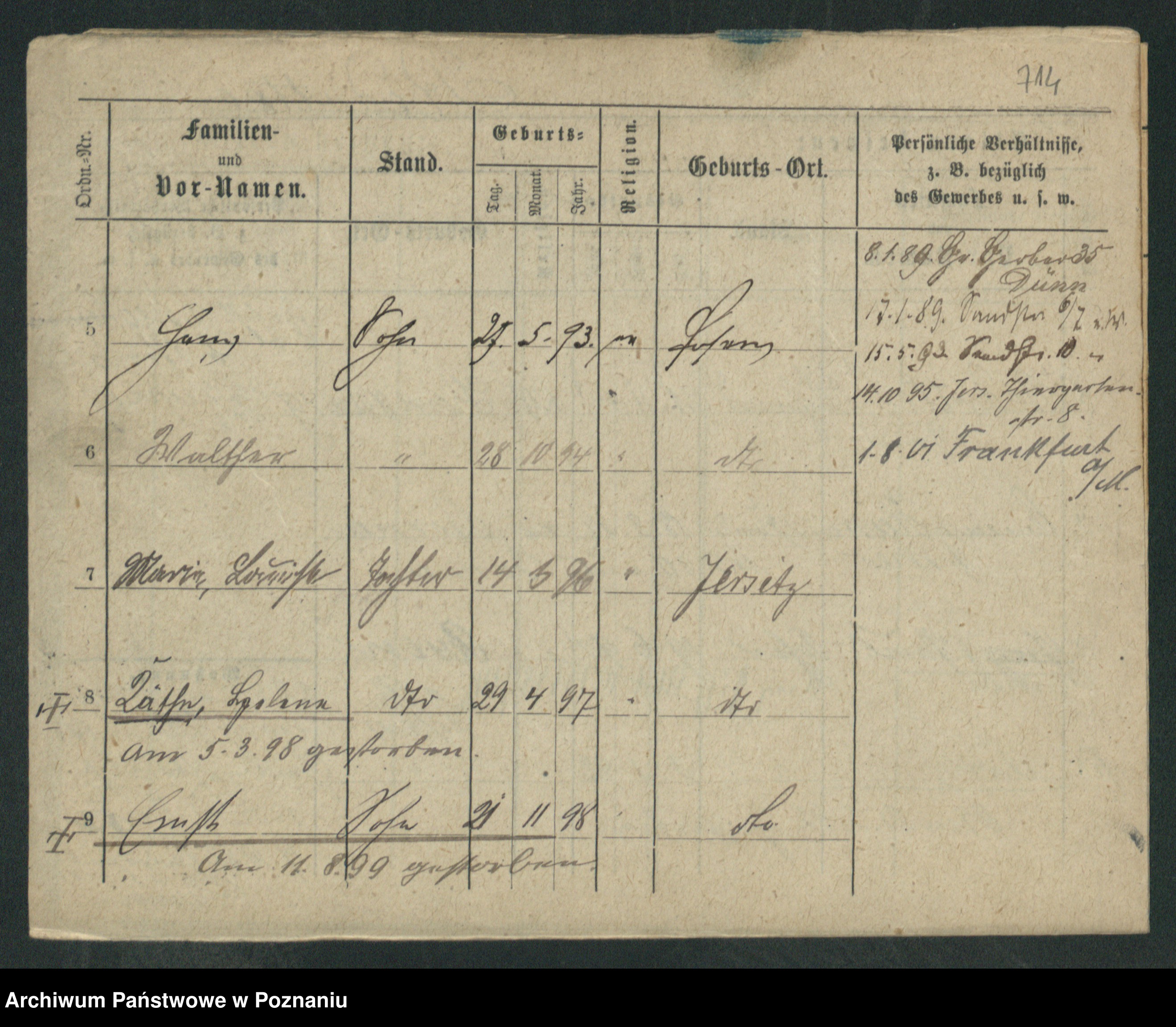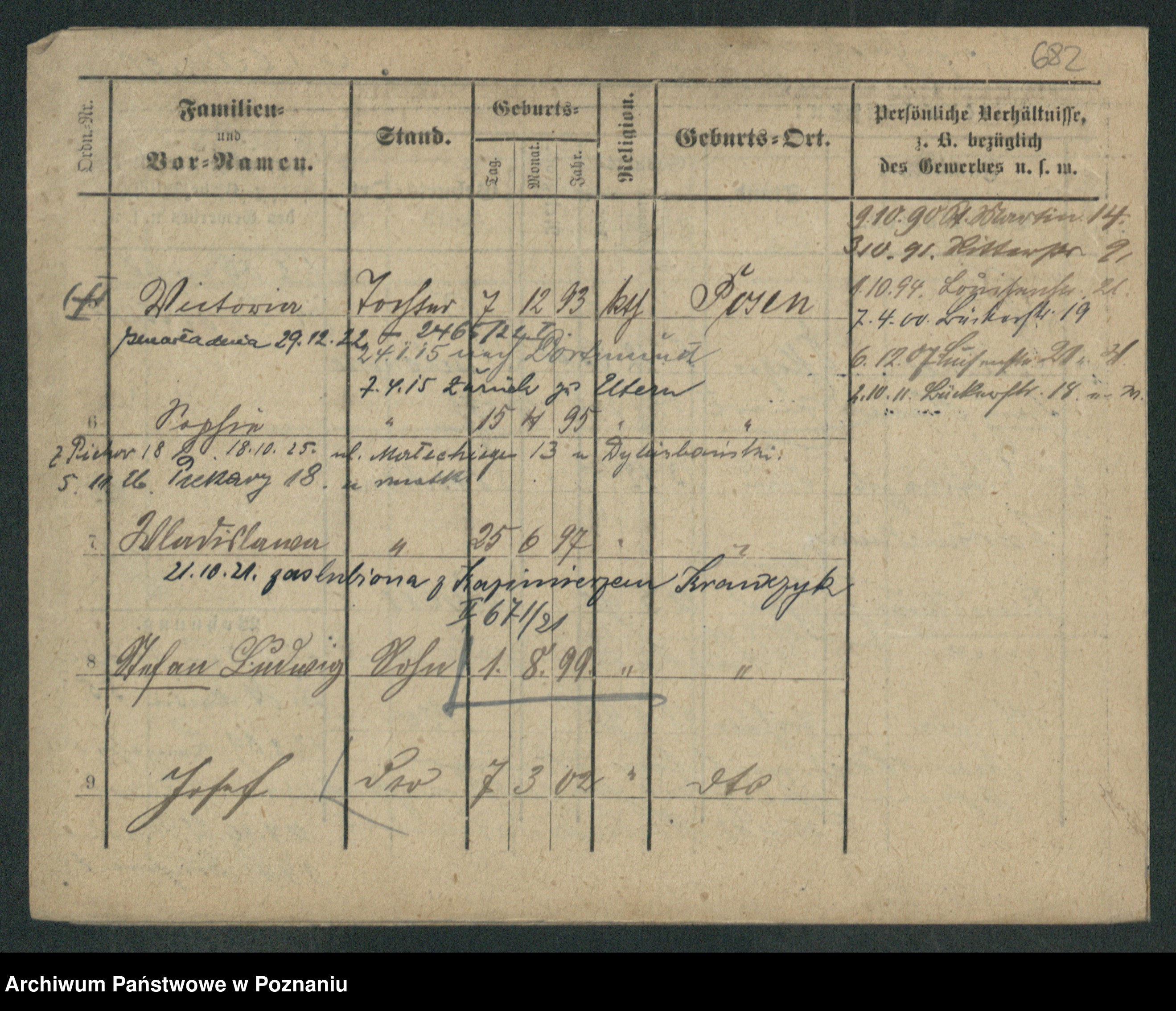 Podgląd karty osobowej dostępny jest po kliknięciu na nazwisko lub ikonkę karty. Można dokonywać powiększenia (ikony na górze) lub przechodzić między kolejnymi skanami (strzałki po bokach).