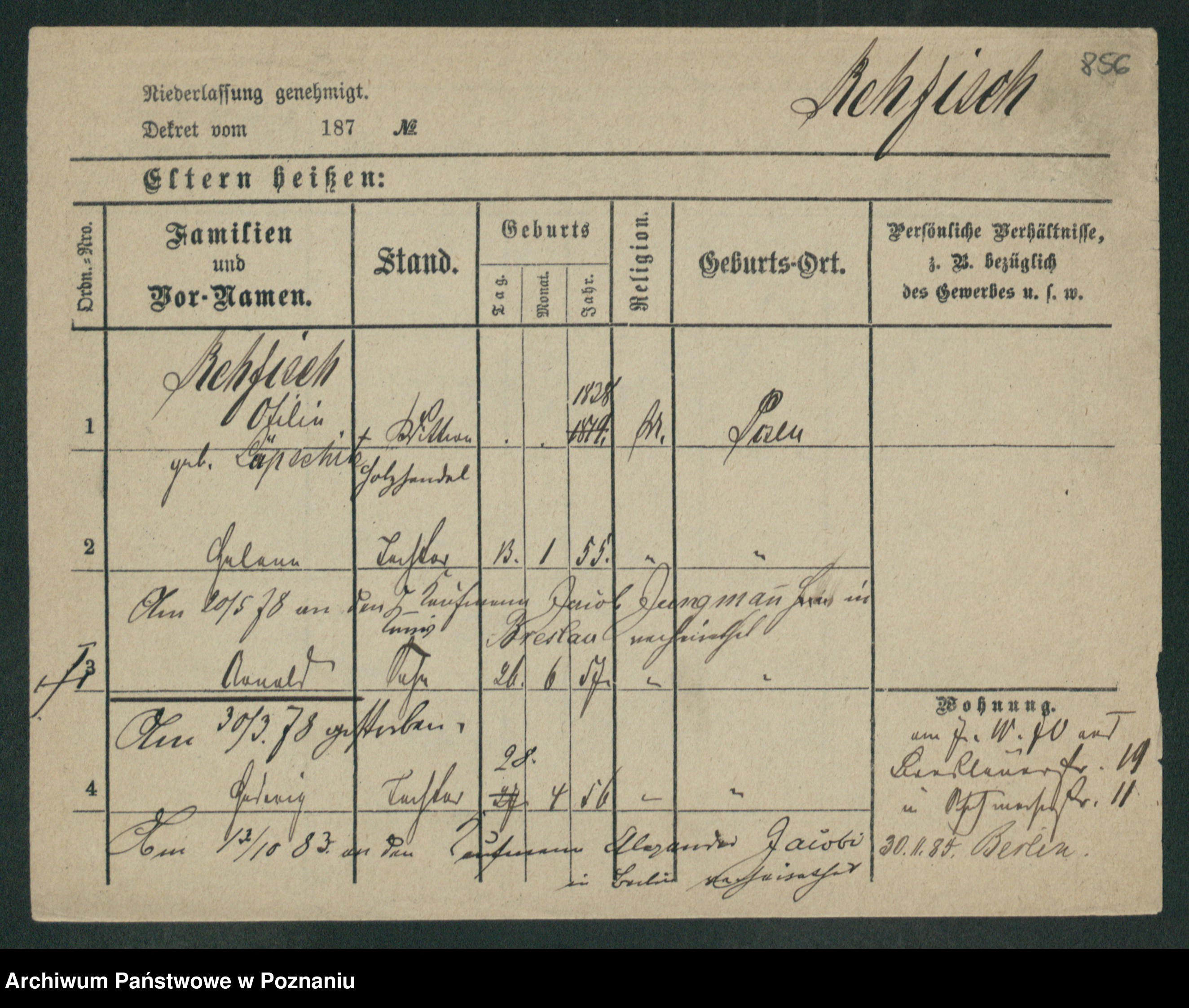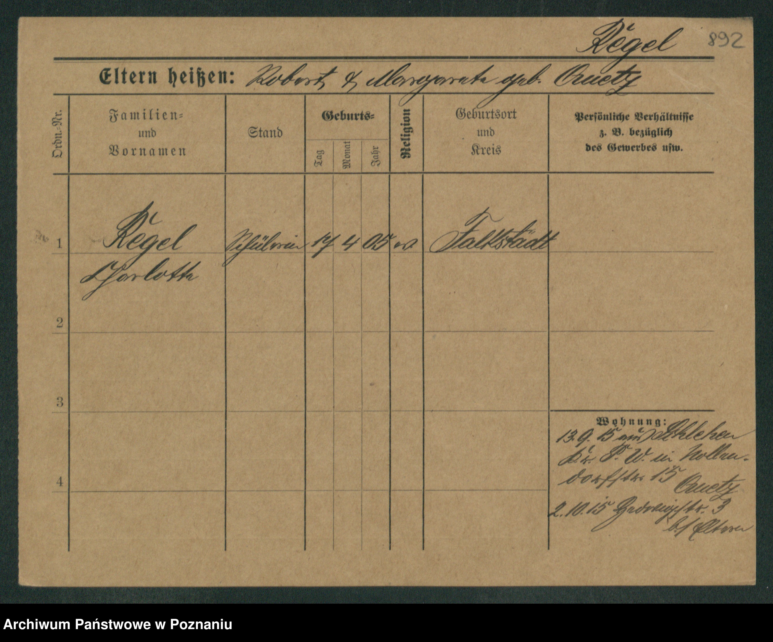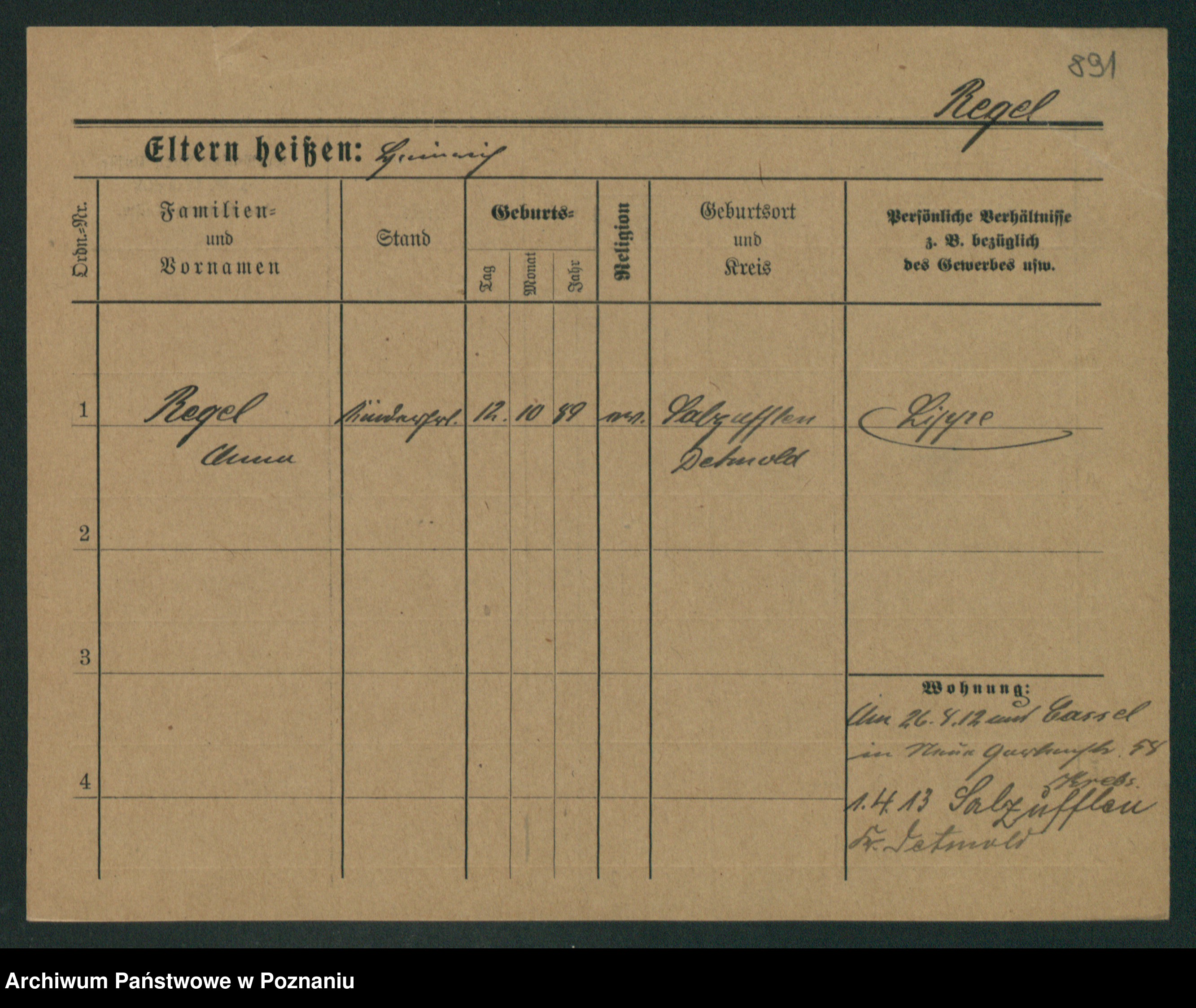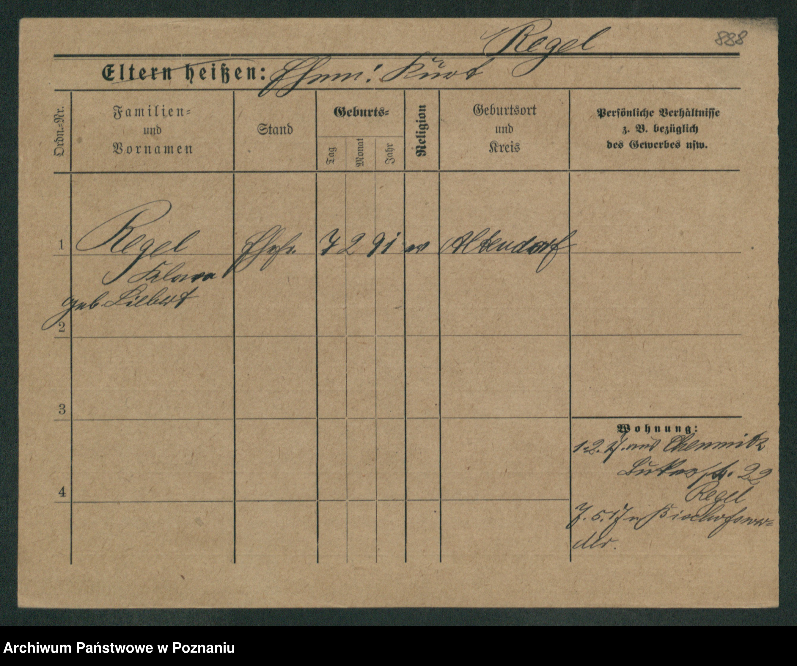 Regel z.d. Schwarz I v. Skeide, Auguste