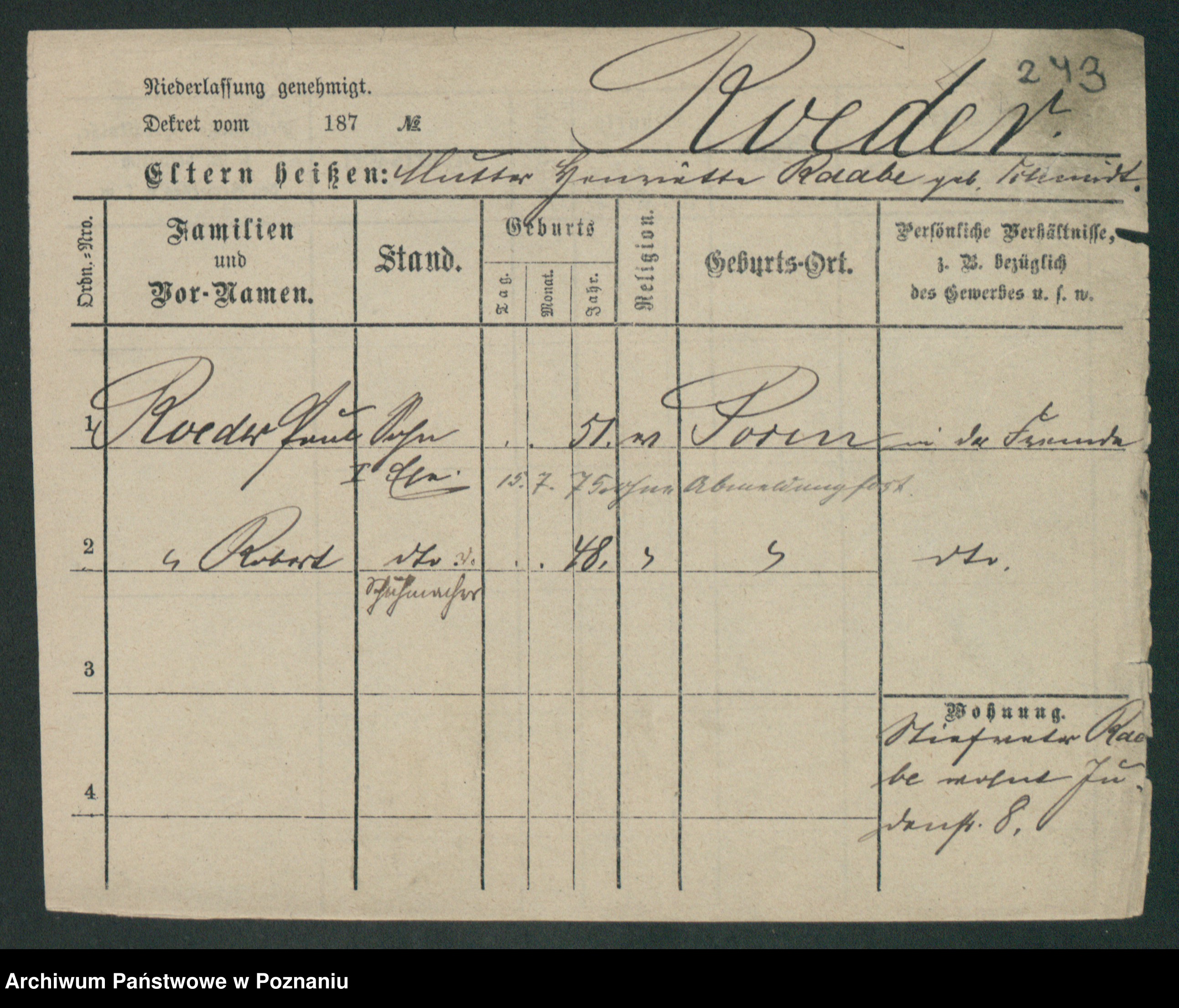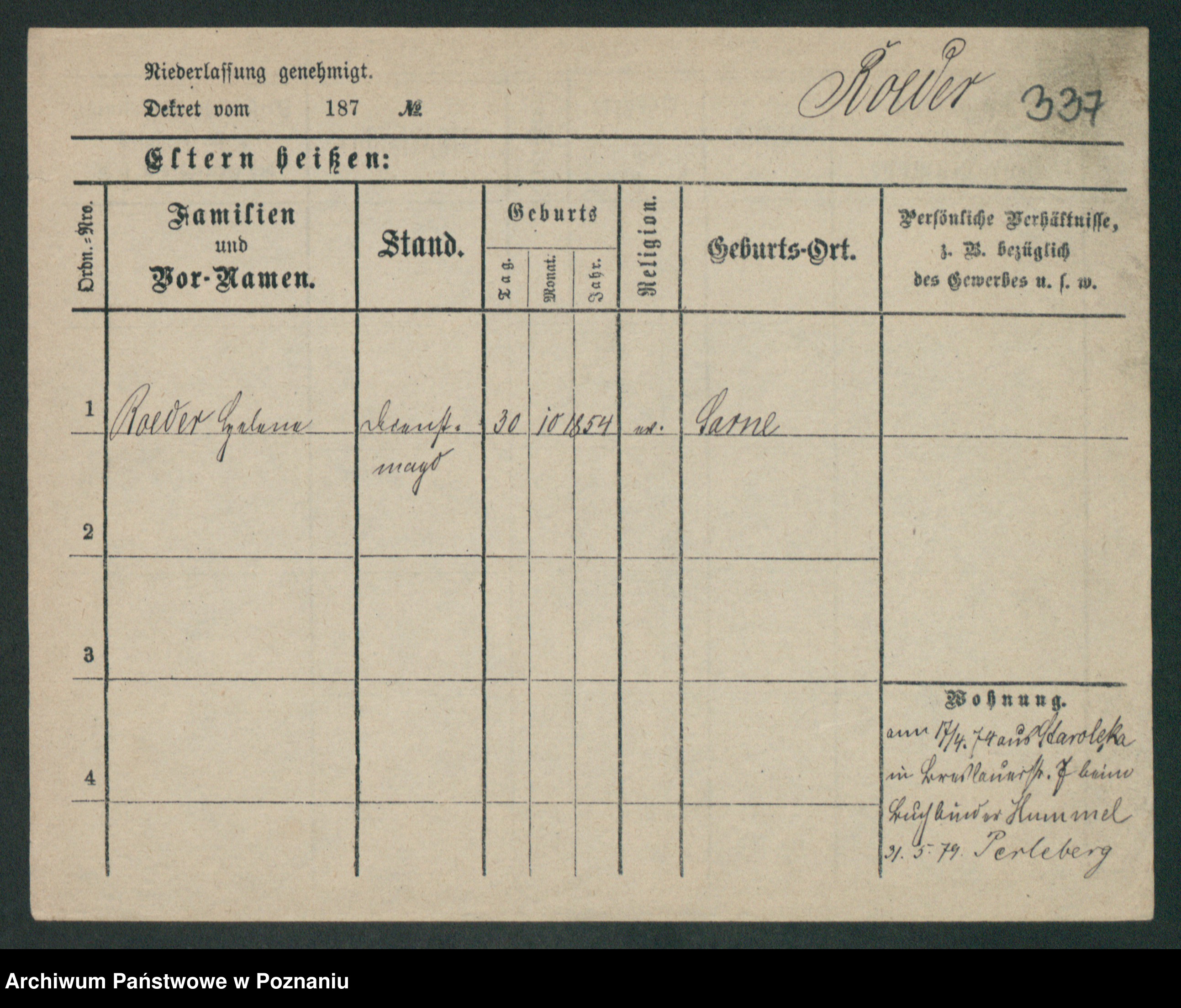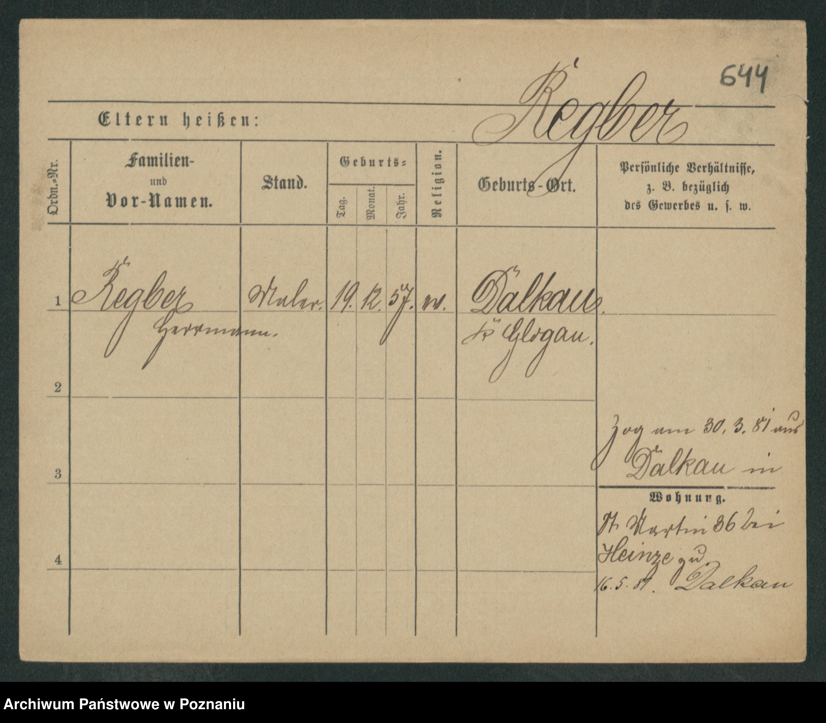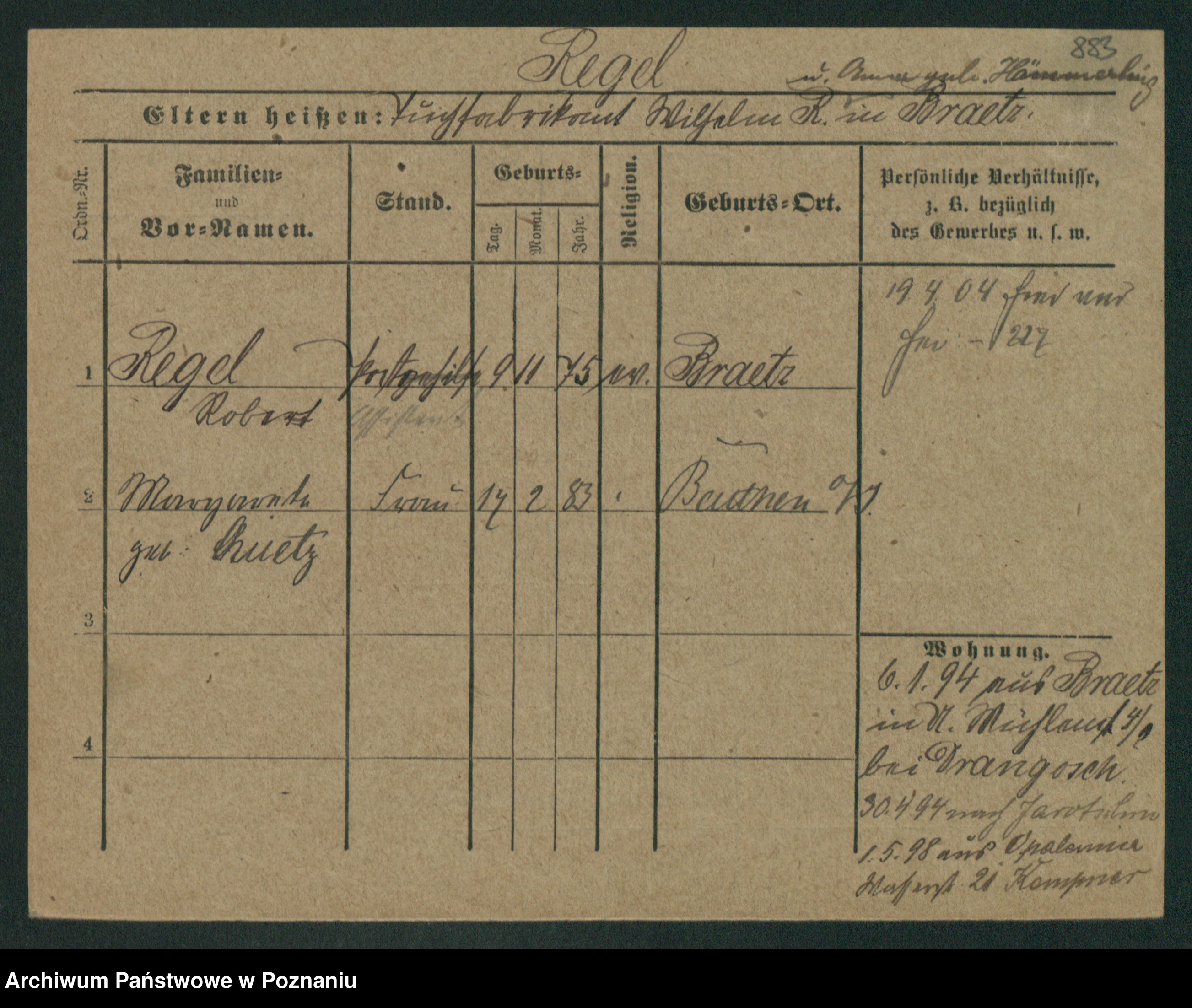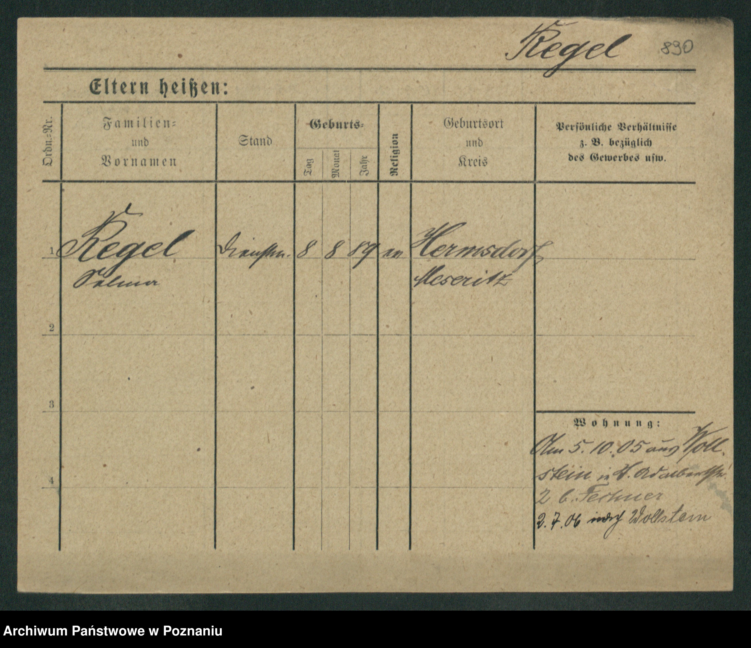Regel z.d. Schwarz I v. Skeide, Auguste