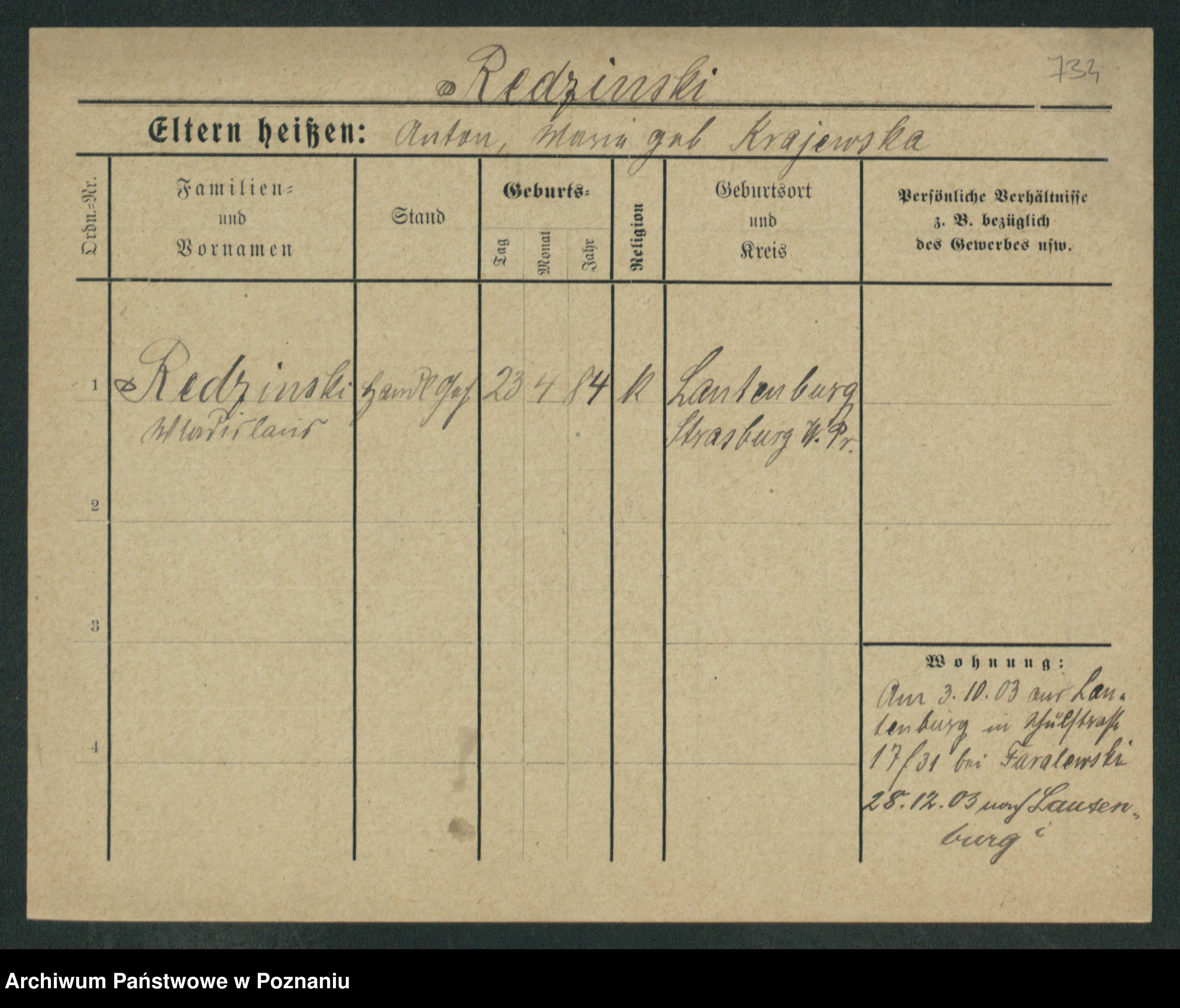 Rehdanz, Franz Wladislaus