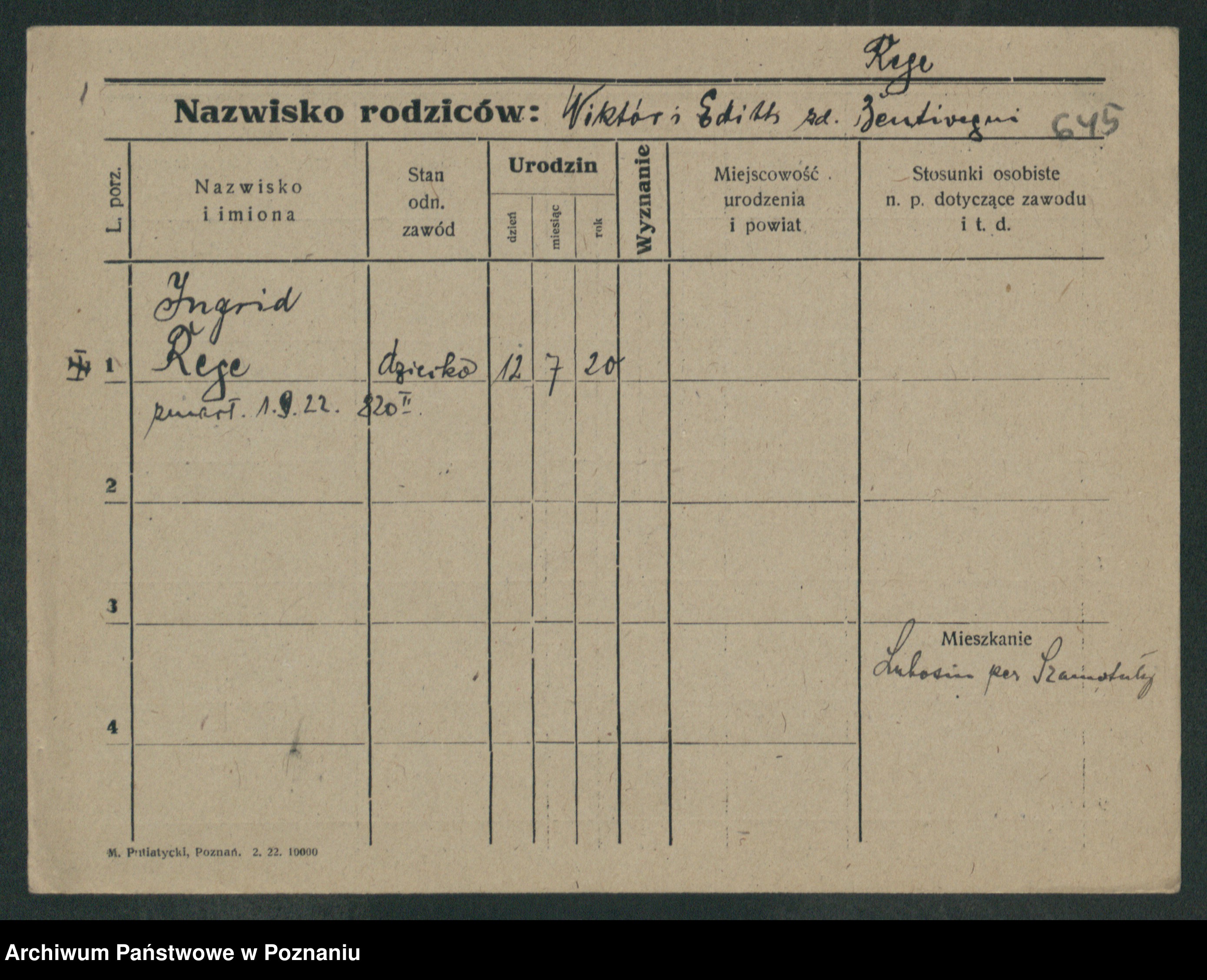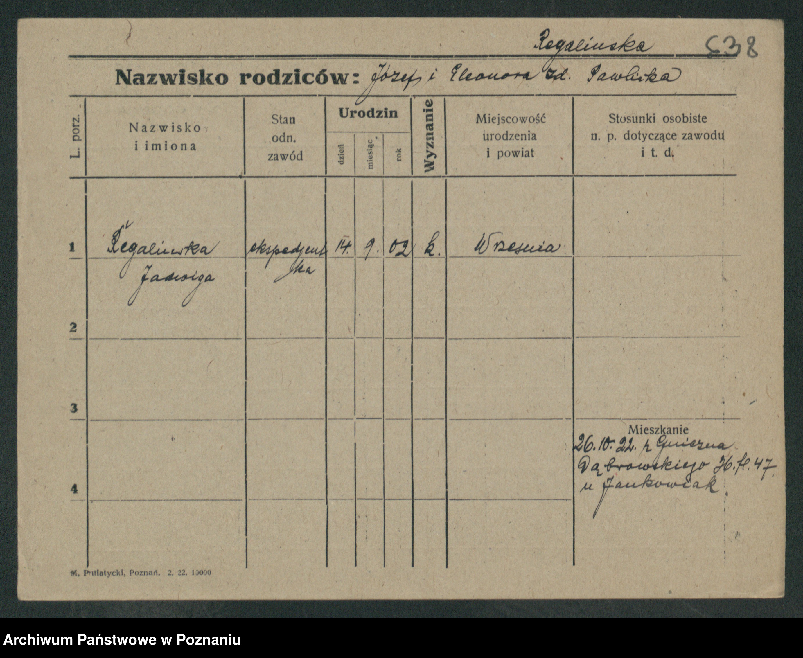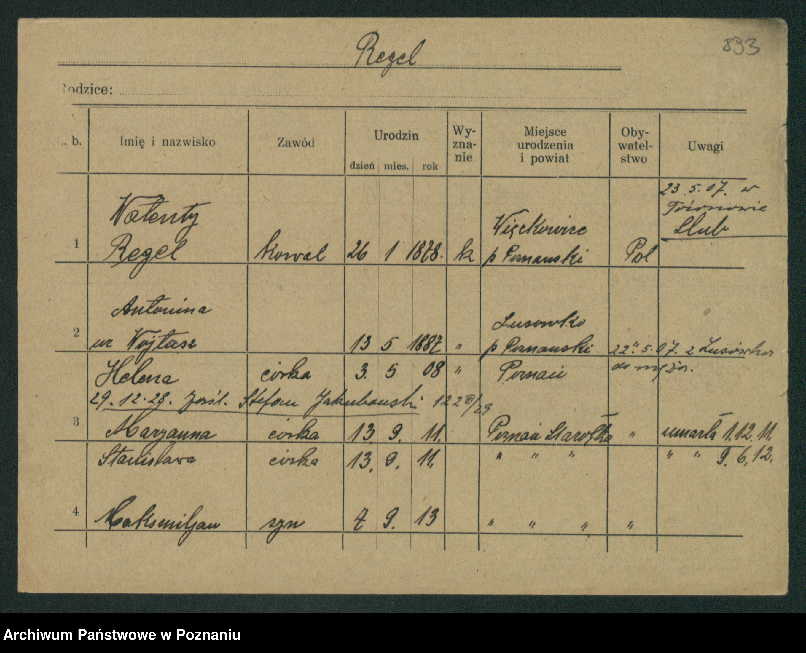 Regel z.d. Wojtasz, Antonina
