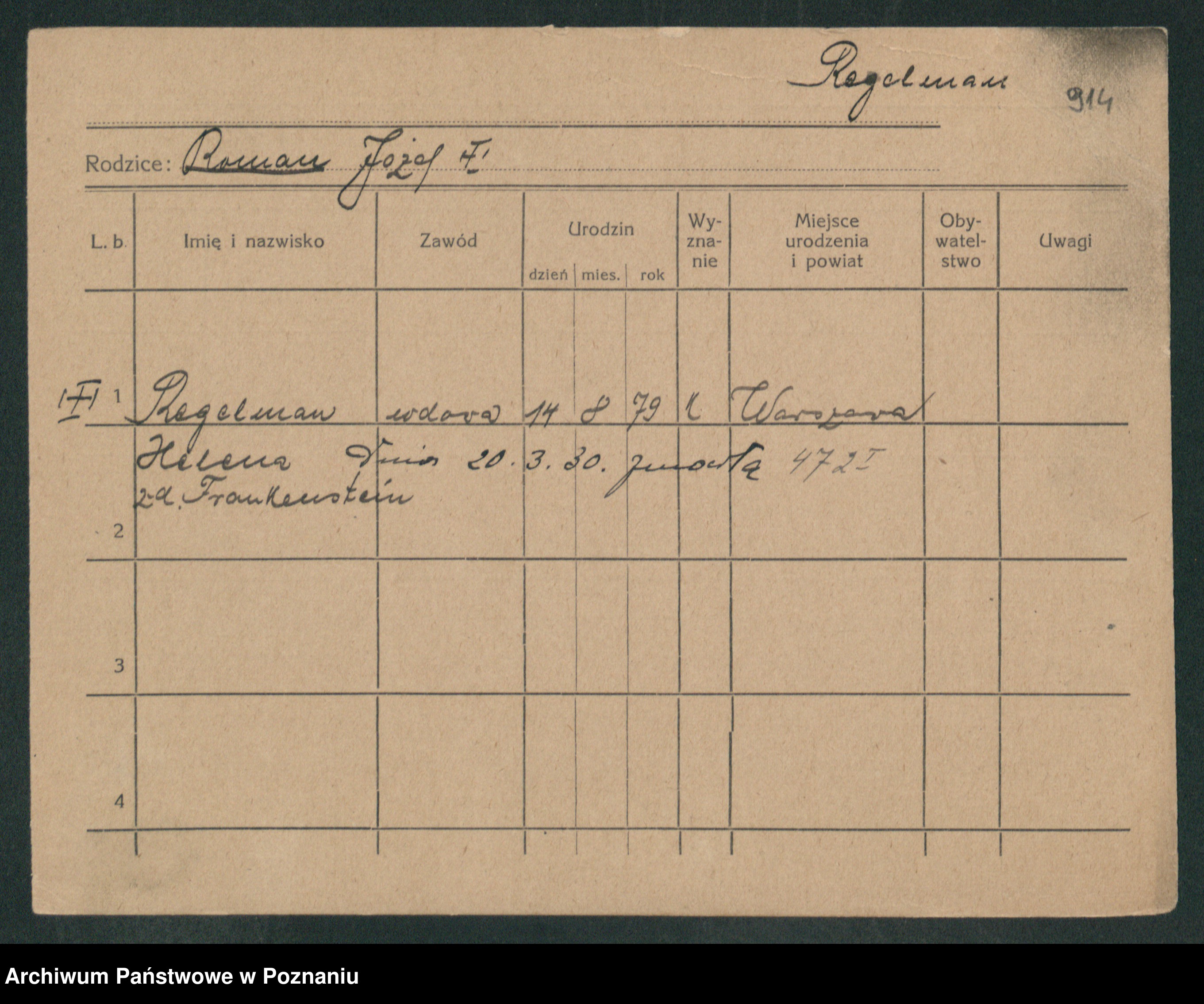 Regelman z.d. Frankenstein, Helena