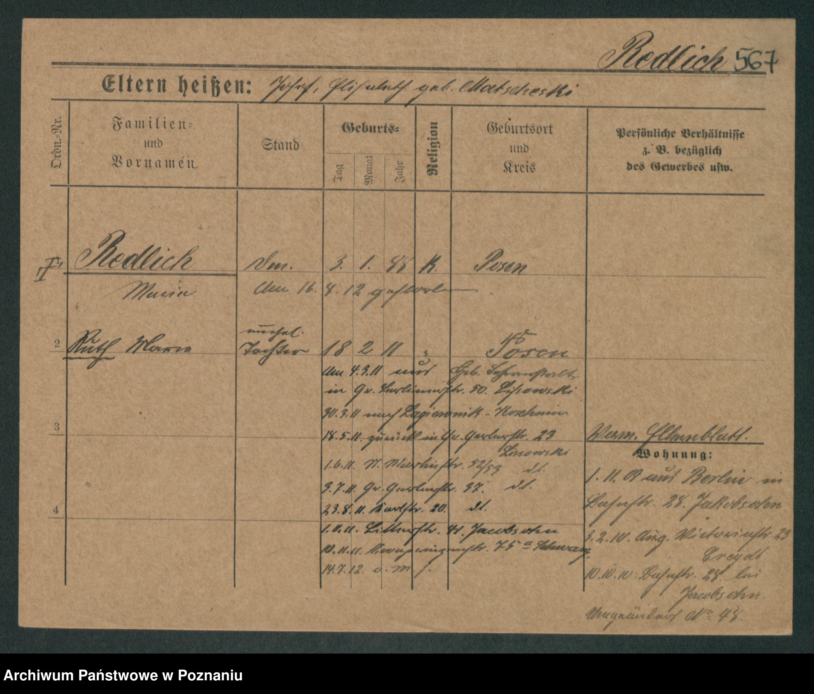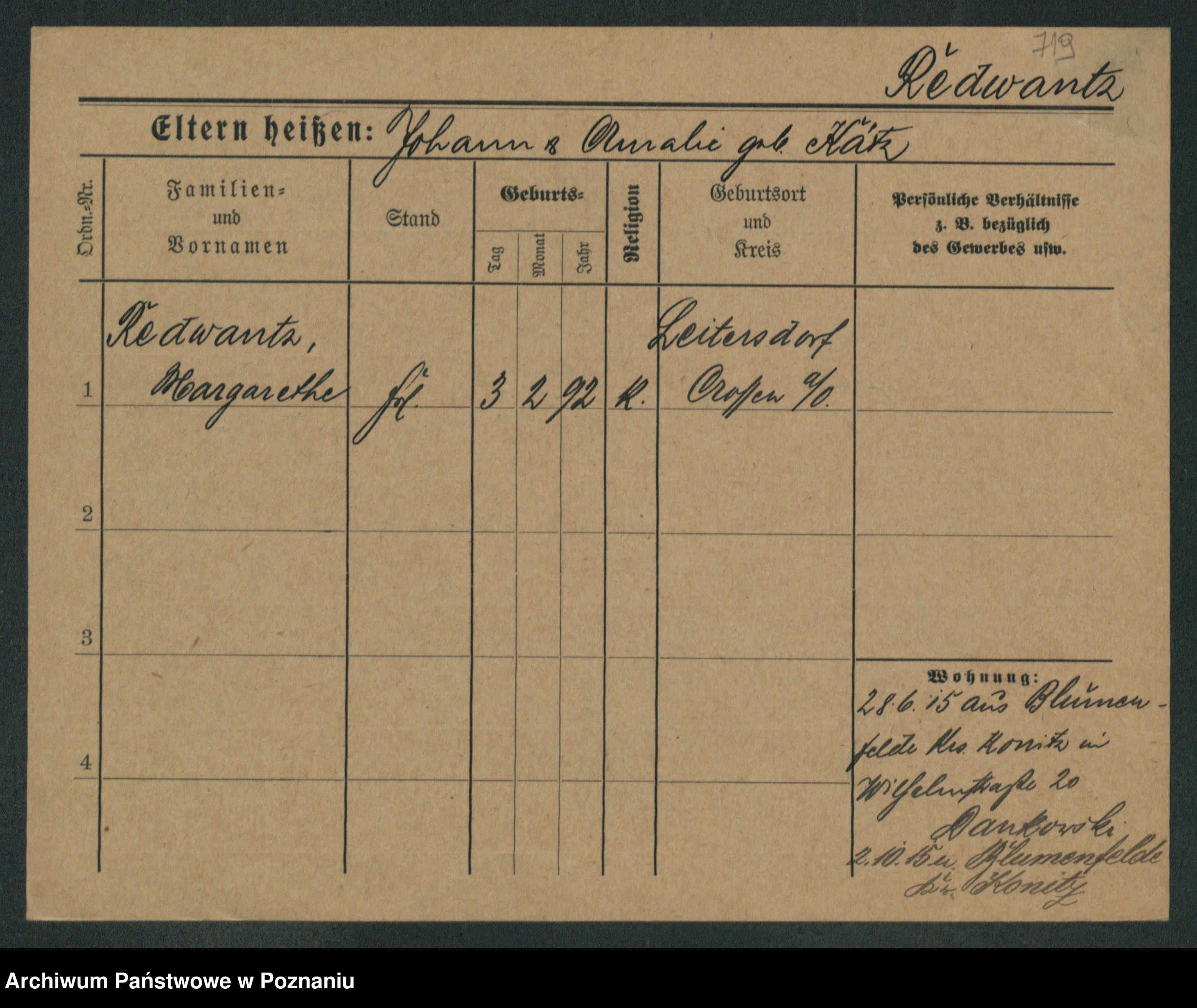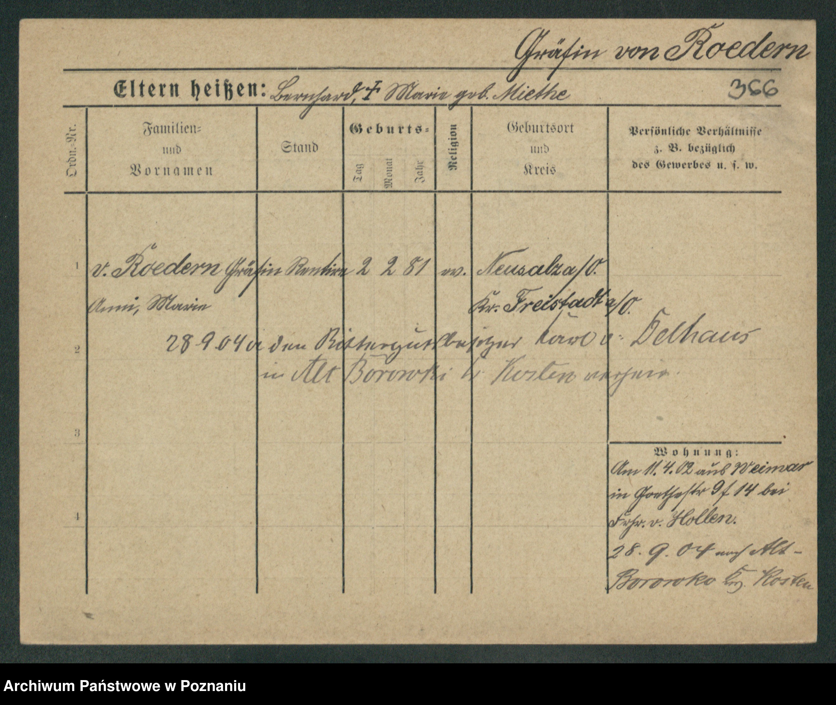 Rehdanz z.d. Sauer I v. Polinska, Marie Amelie