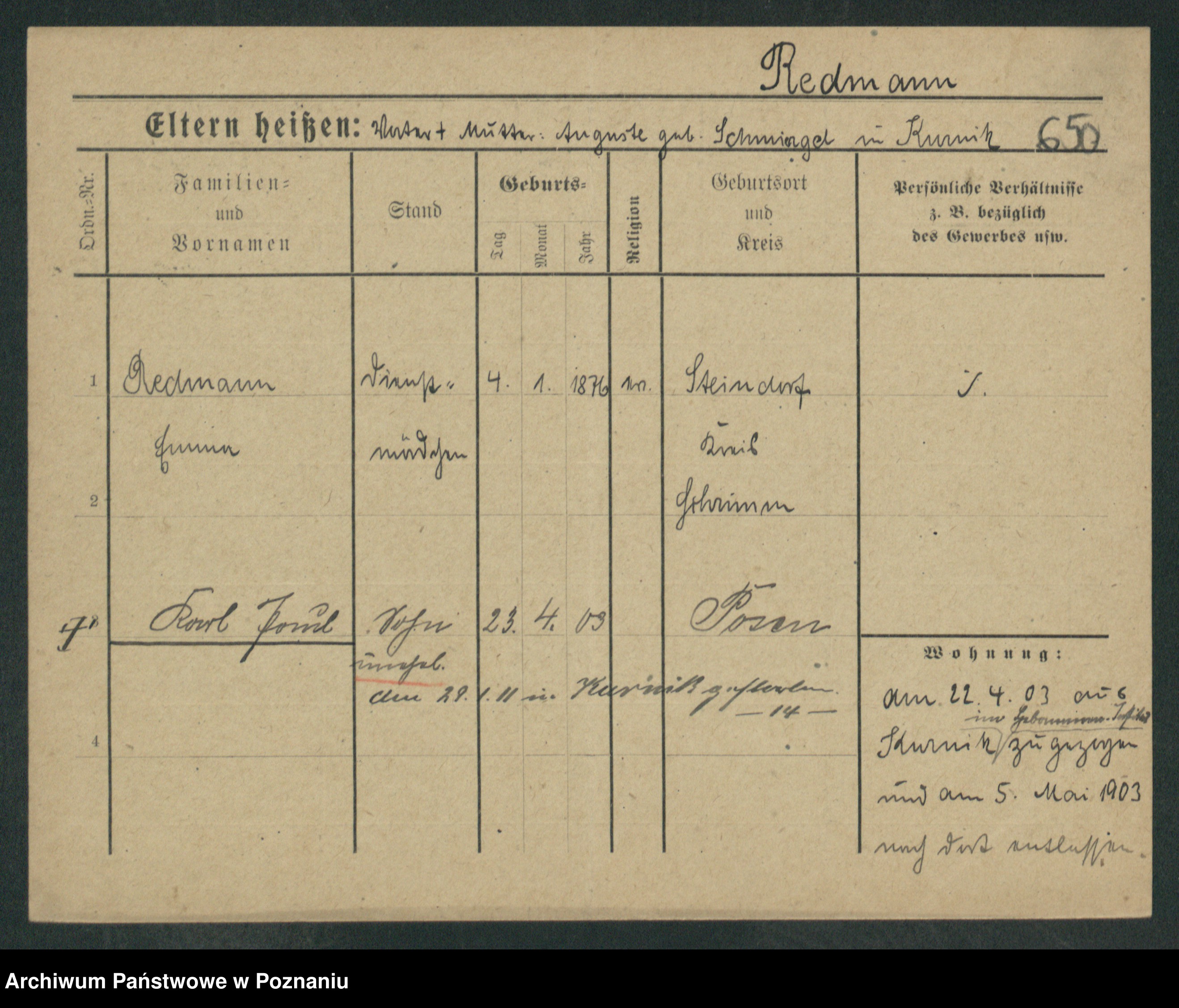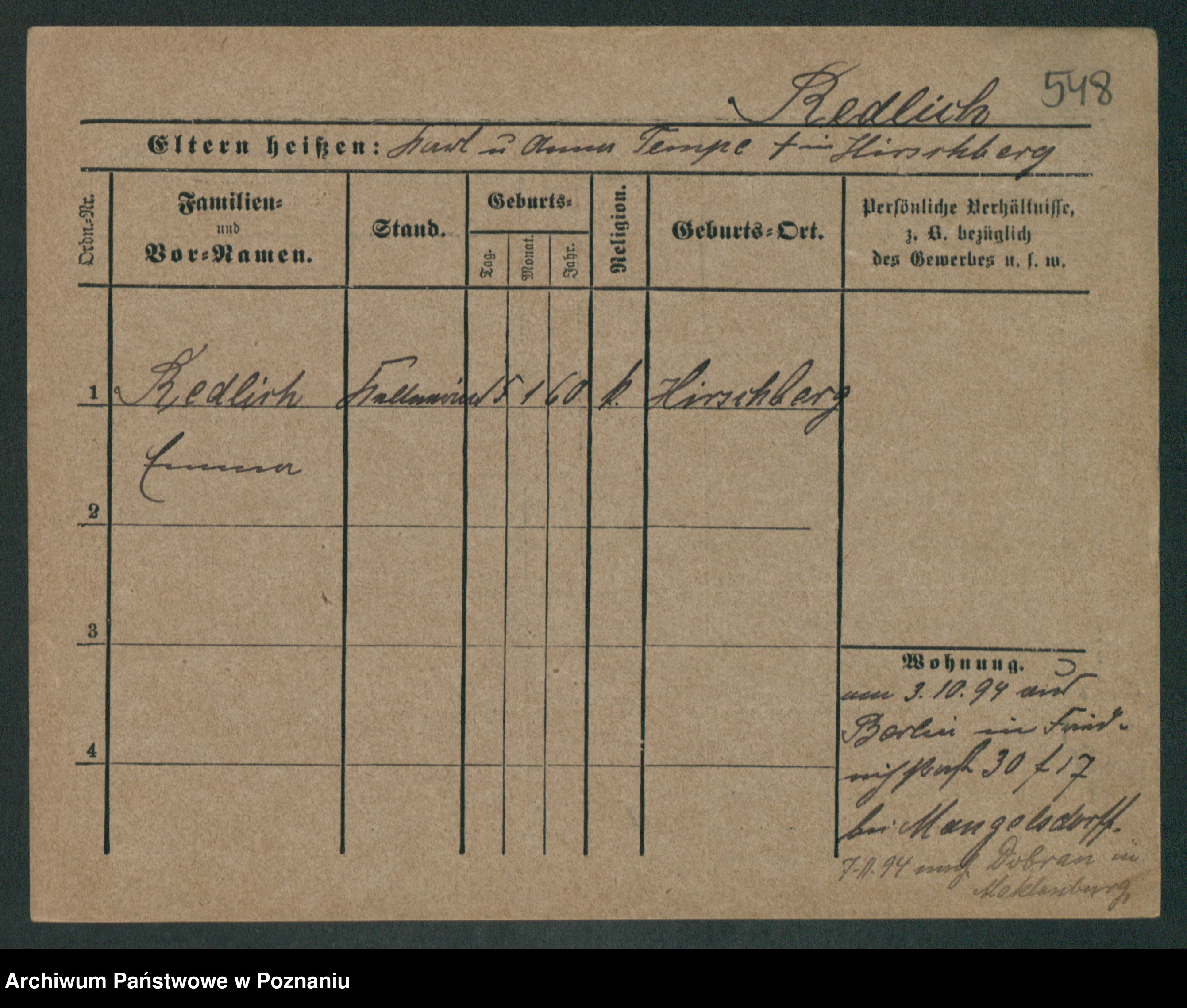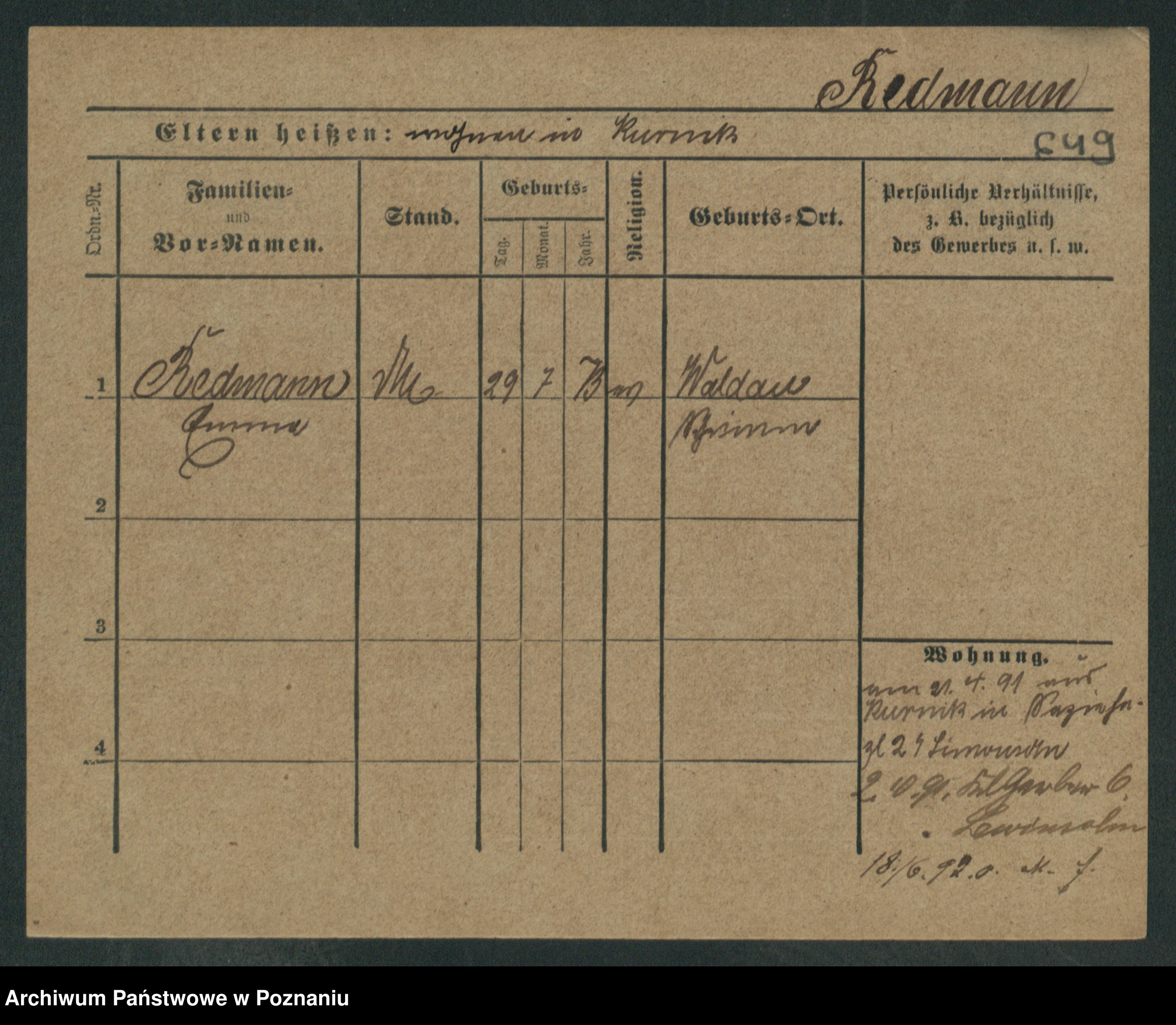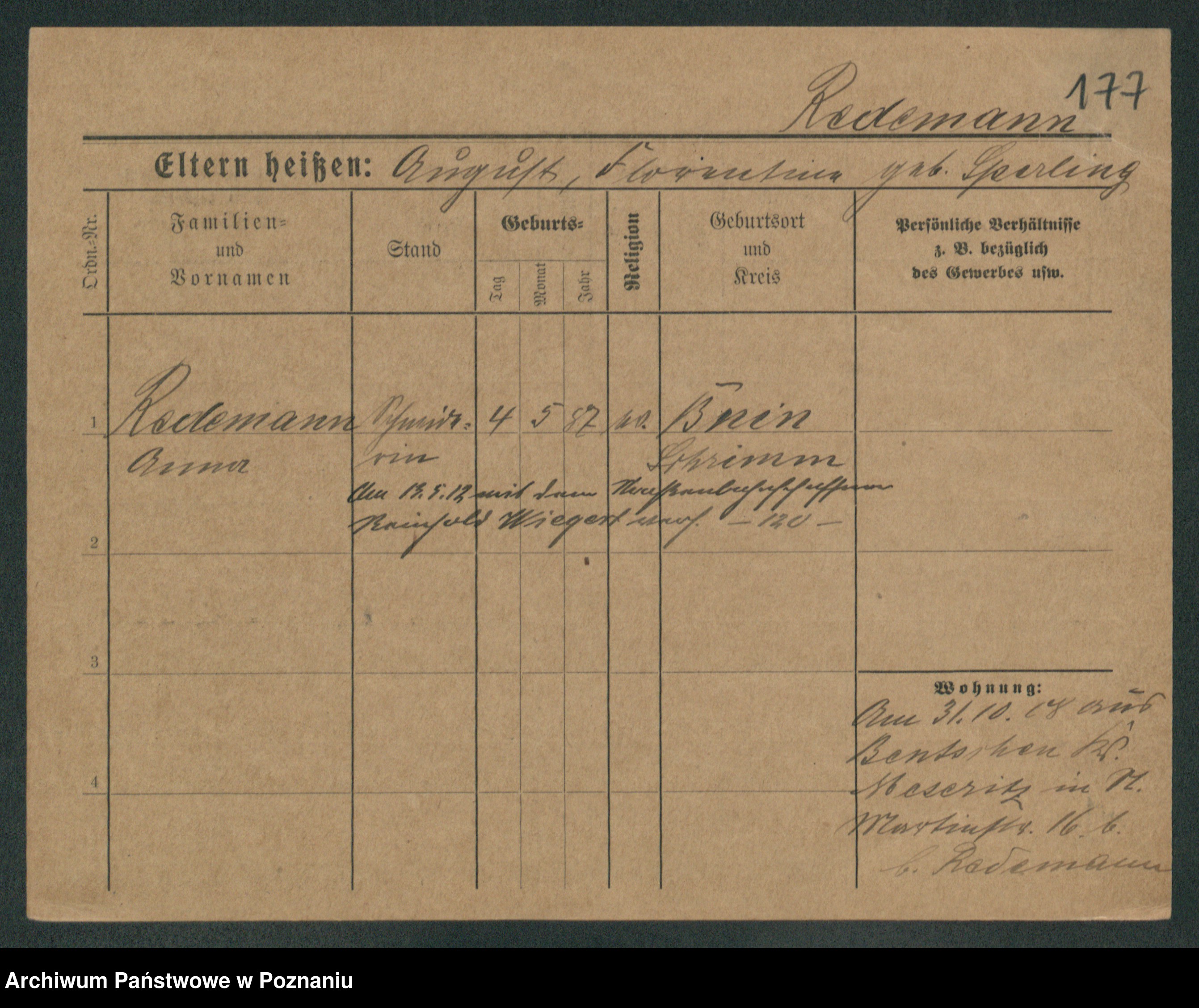 Rehdanz z.d. Sauer I v. Polinska, Marie Amelie