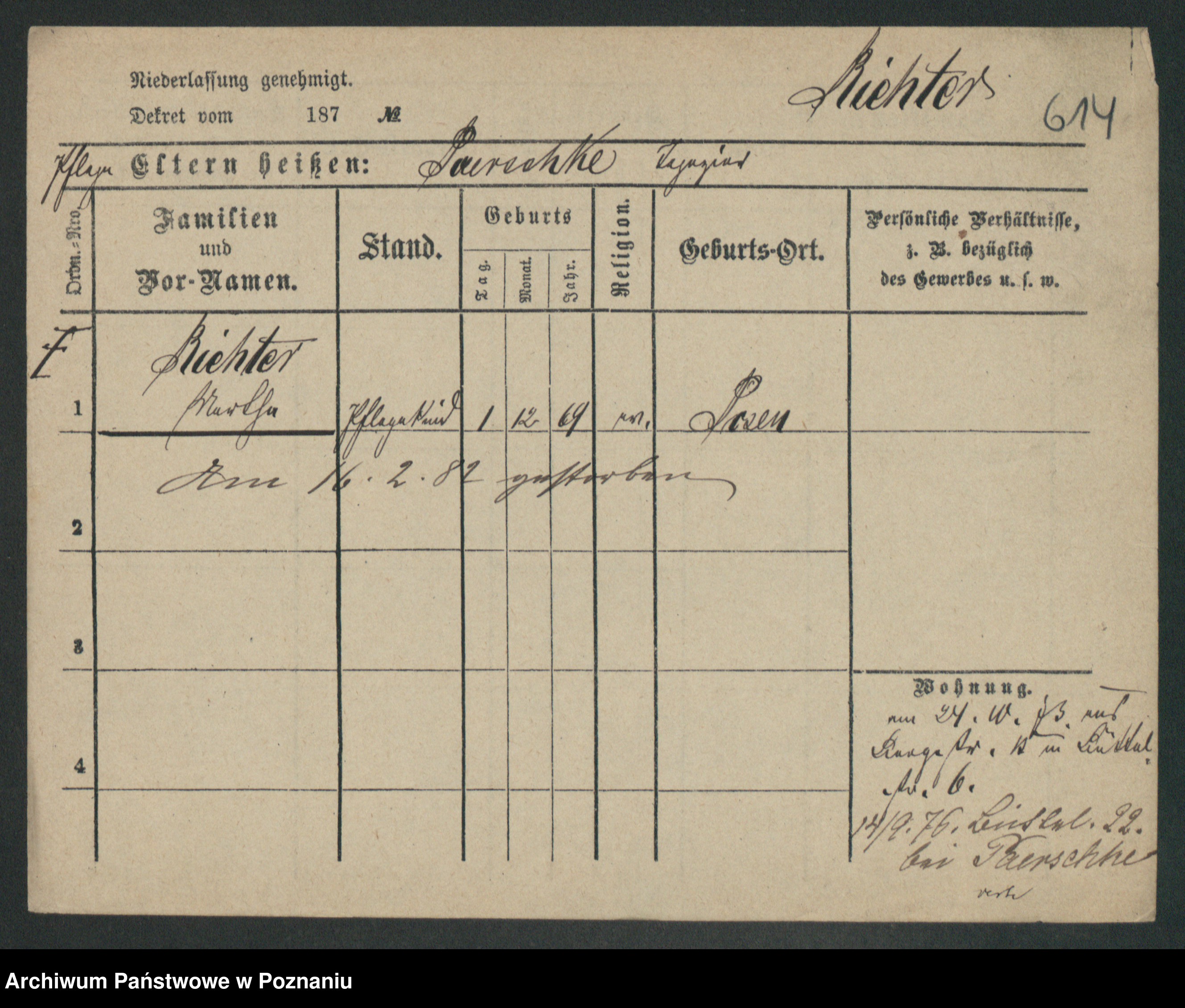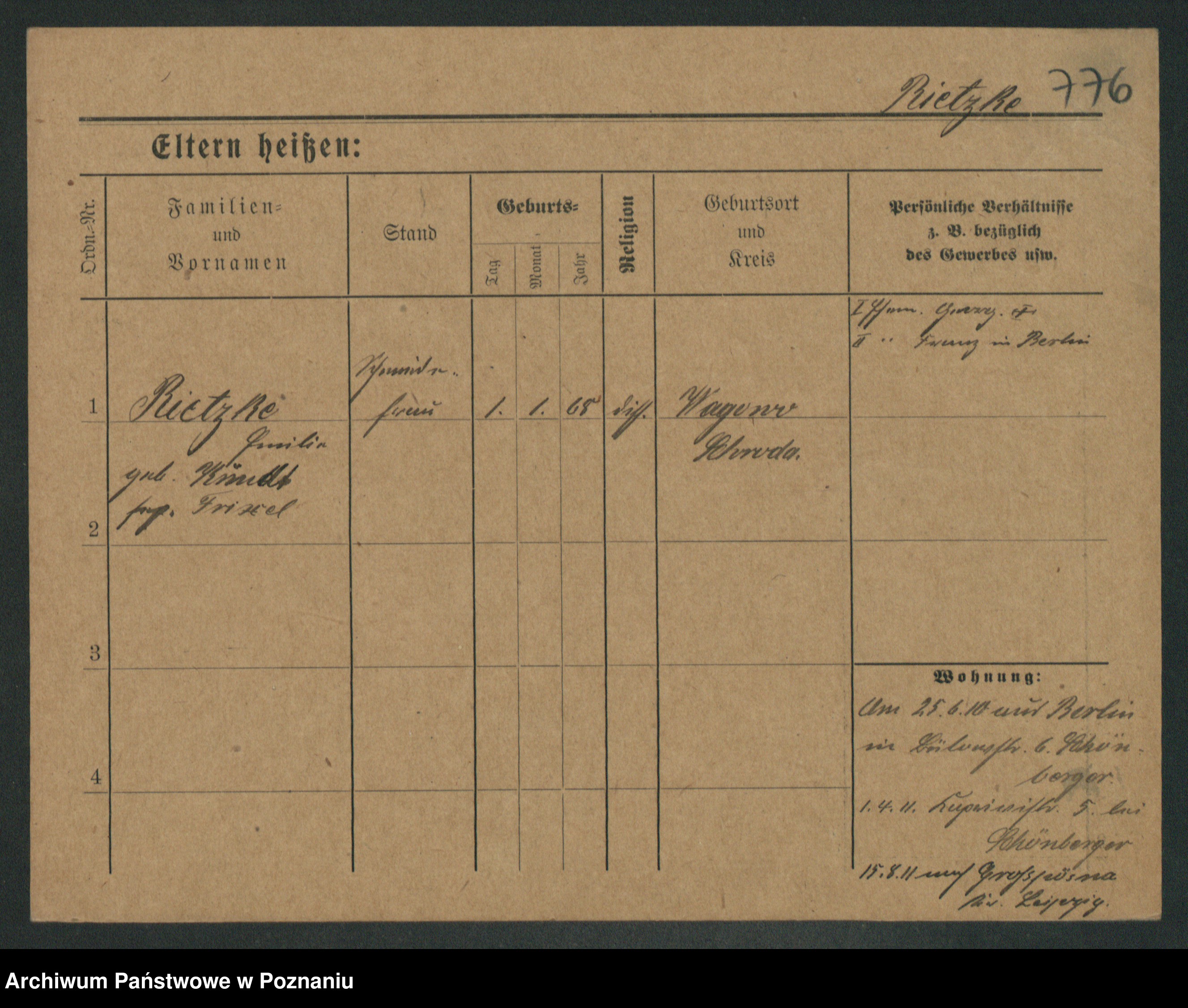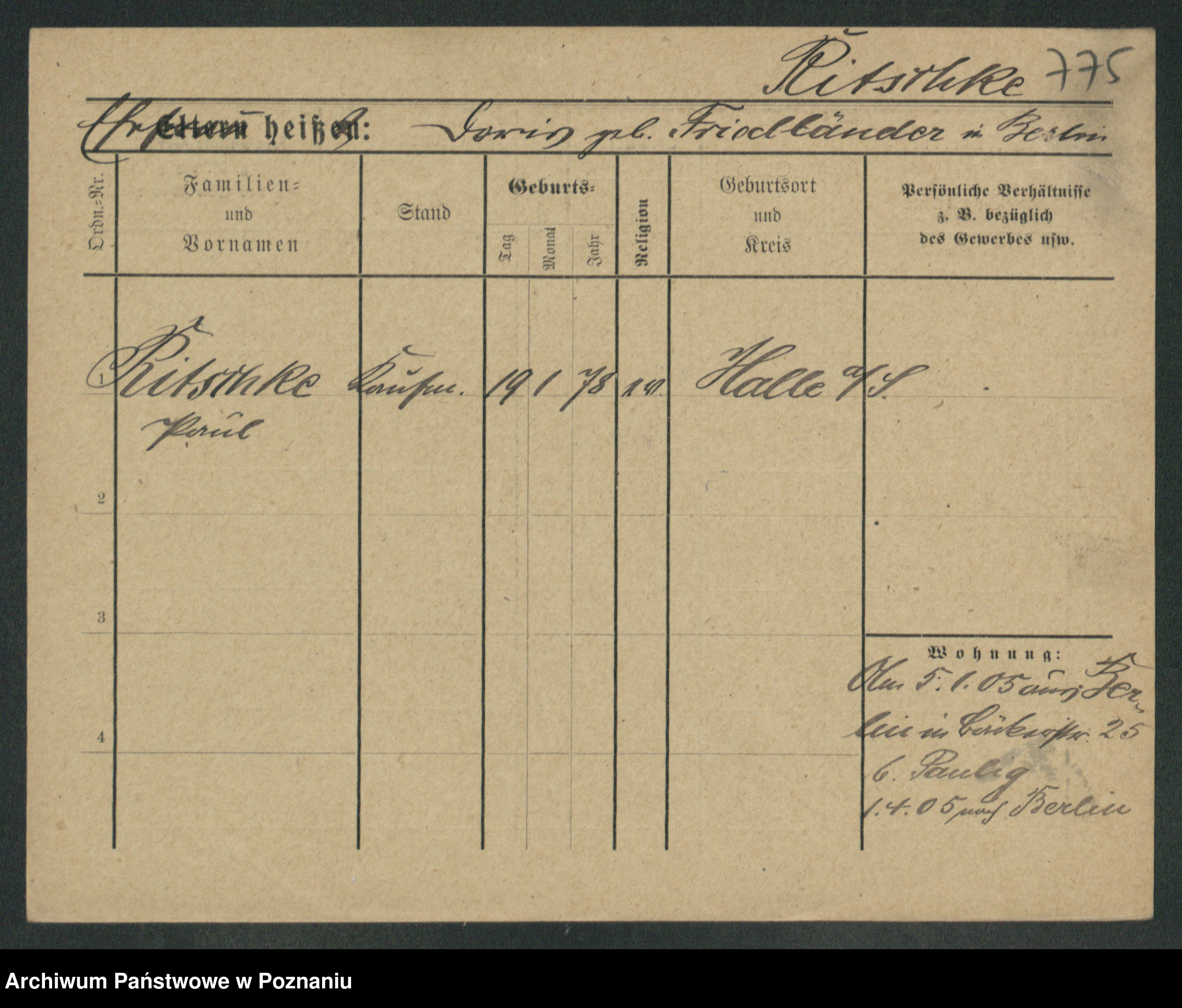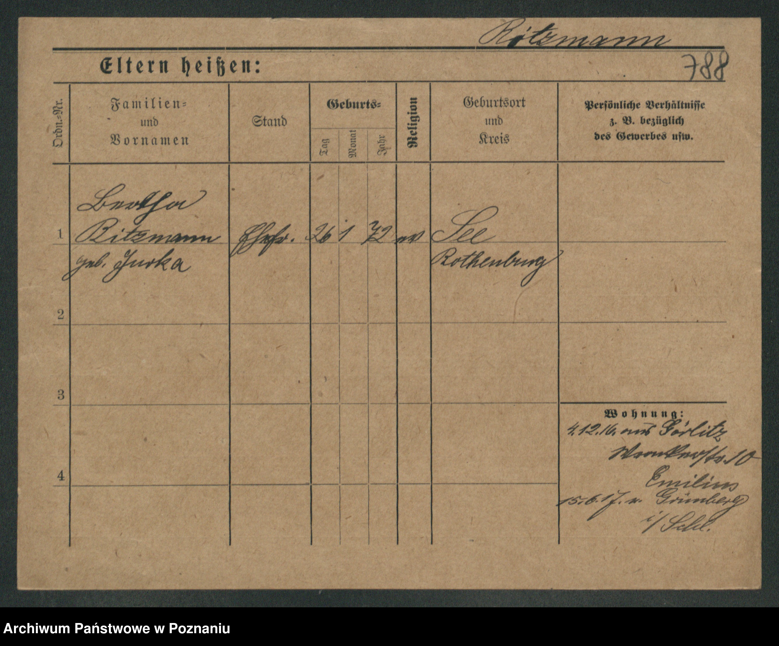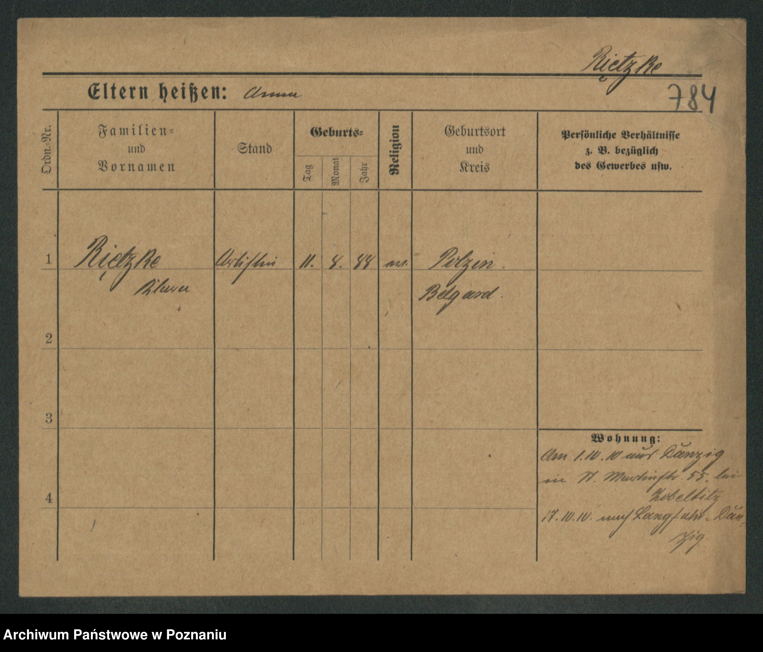 Ritzenhoff zd. Kraatz, Martha Anna Minna