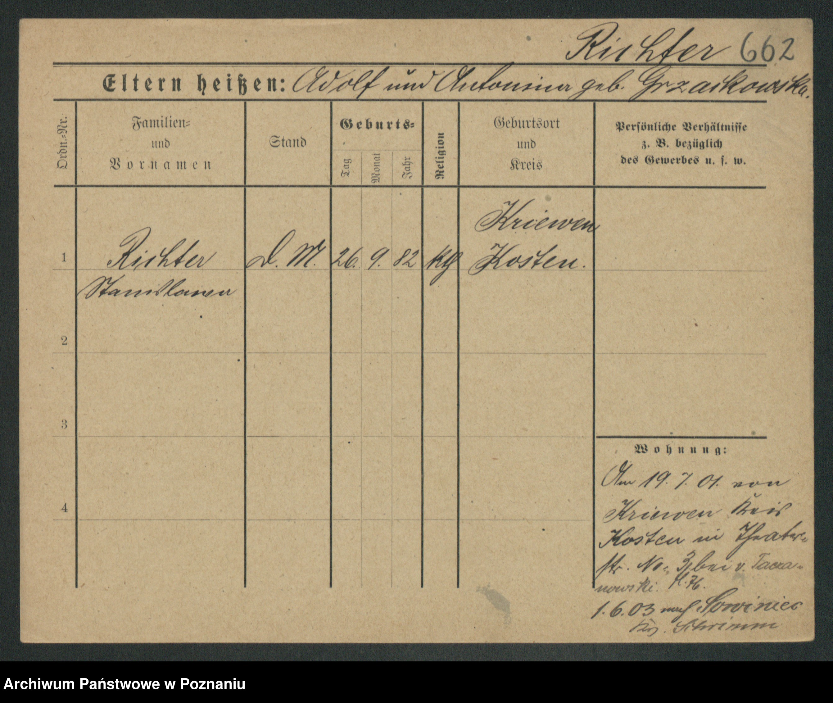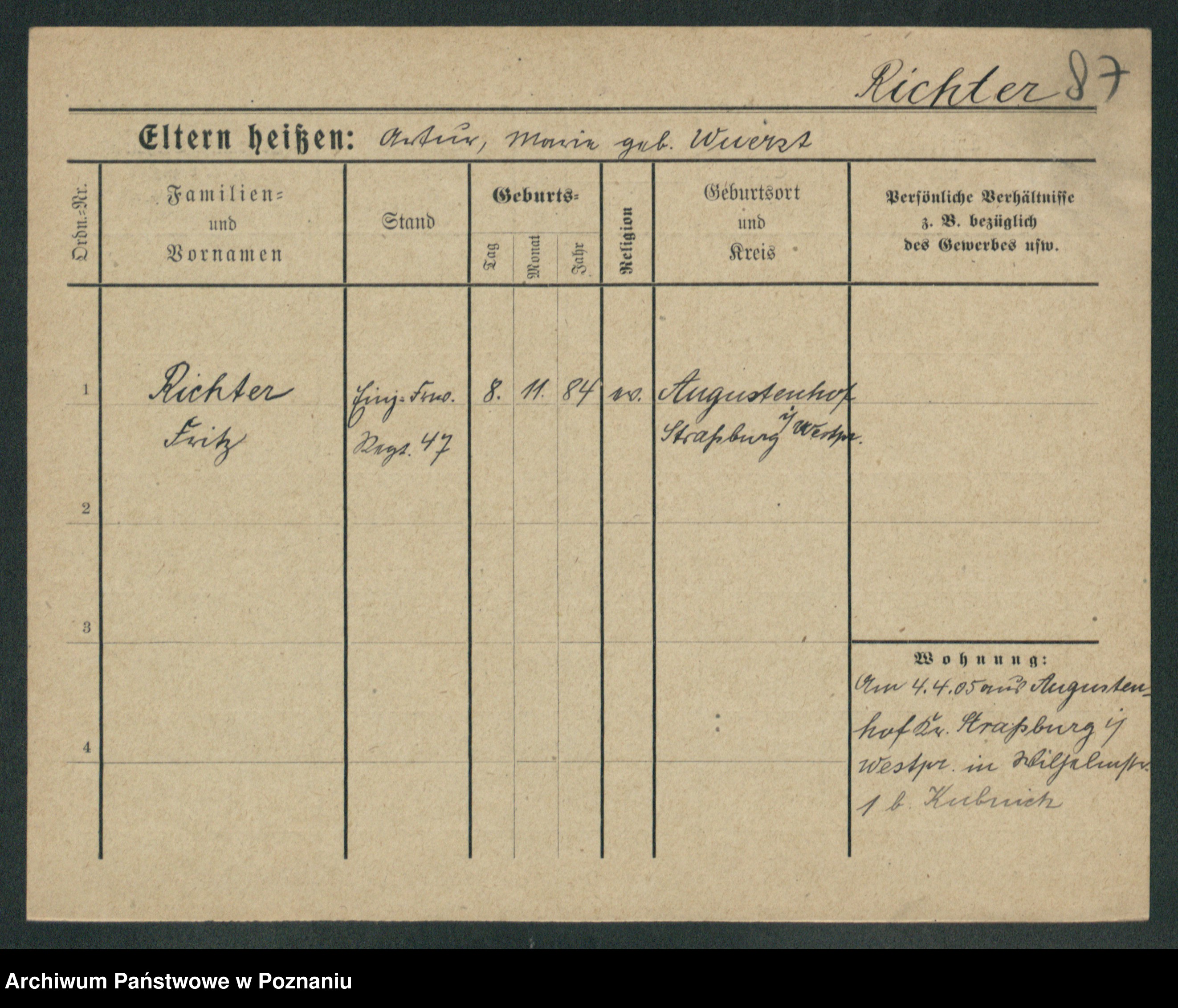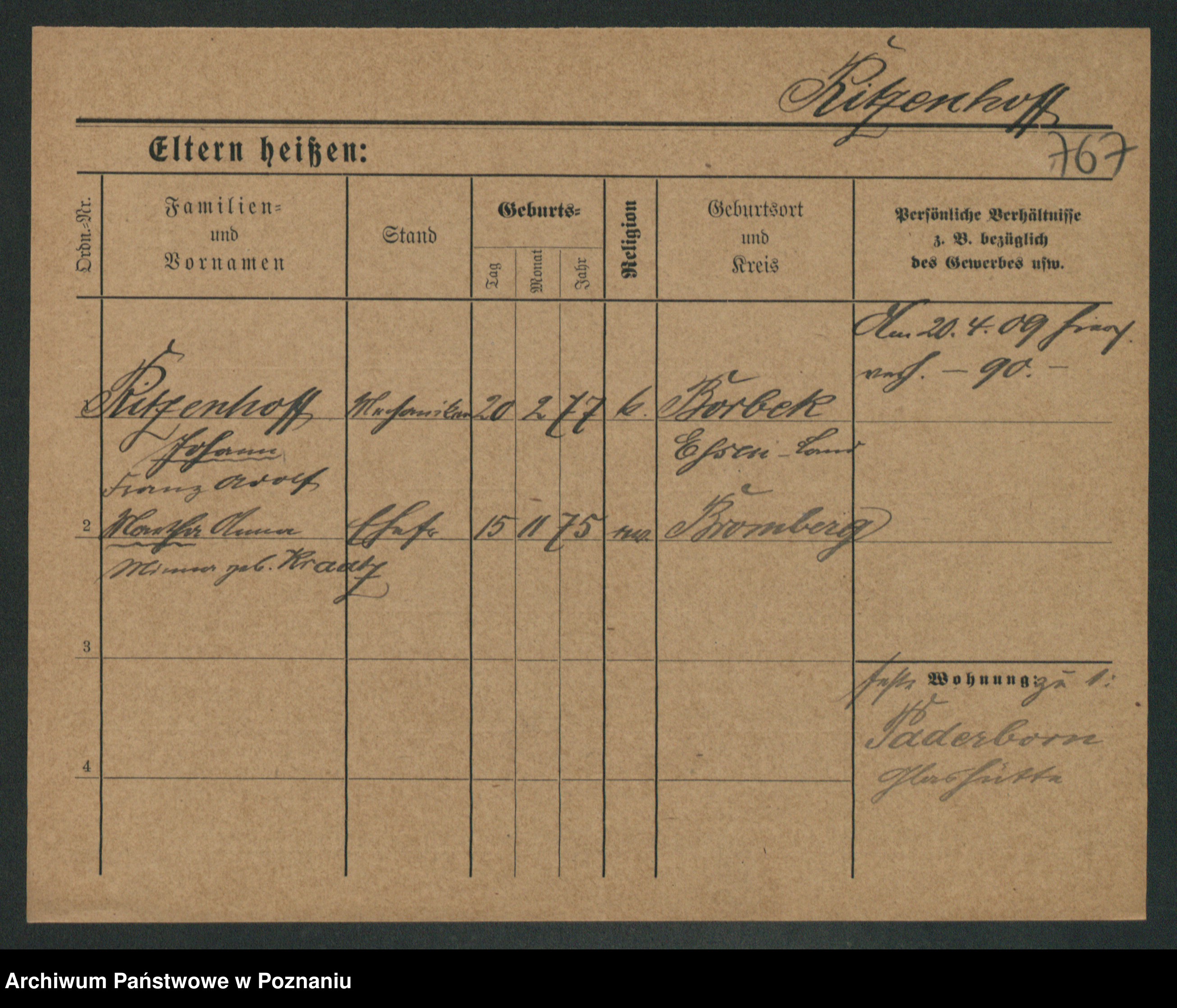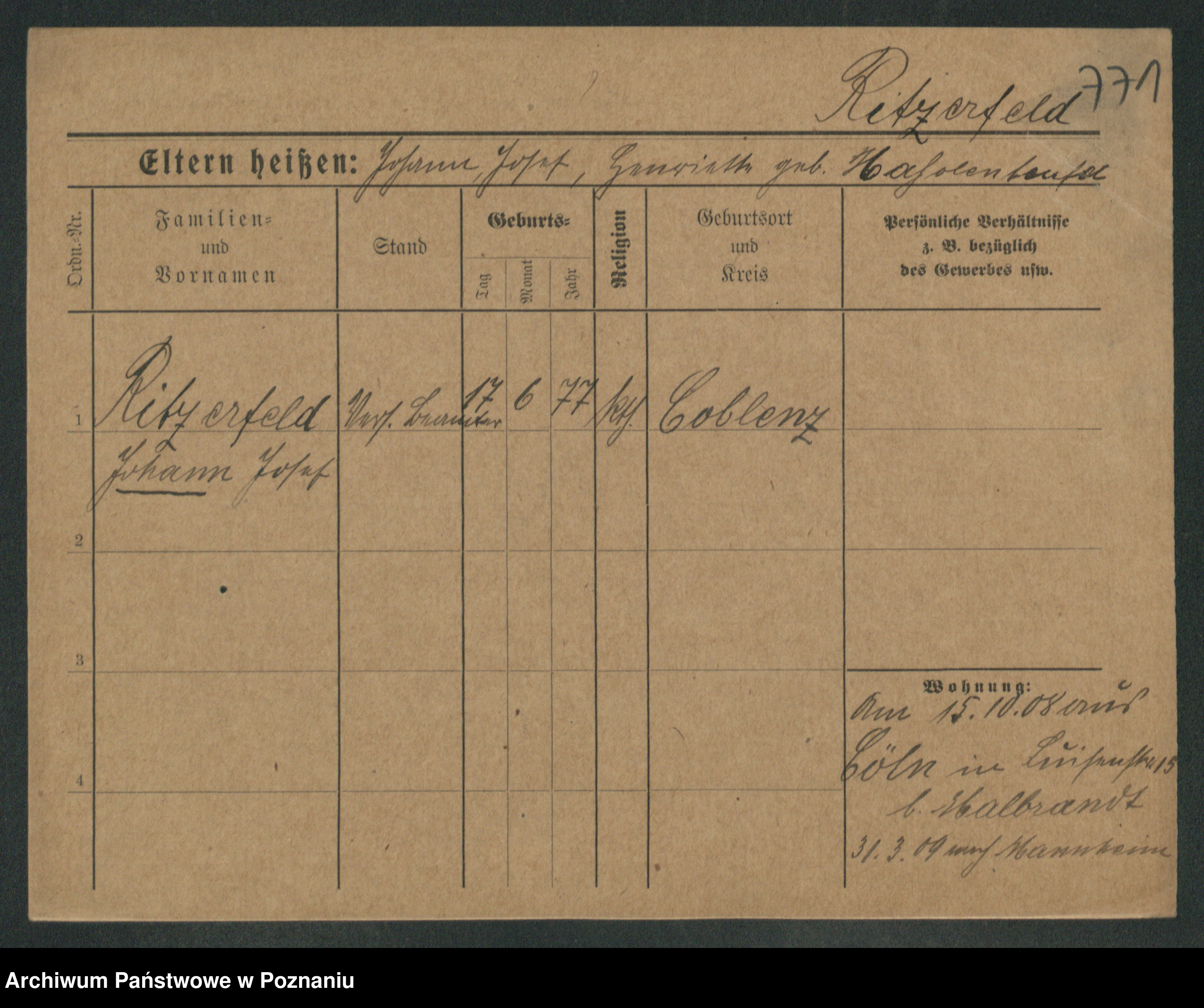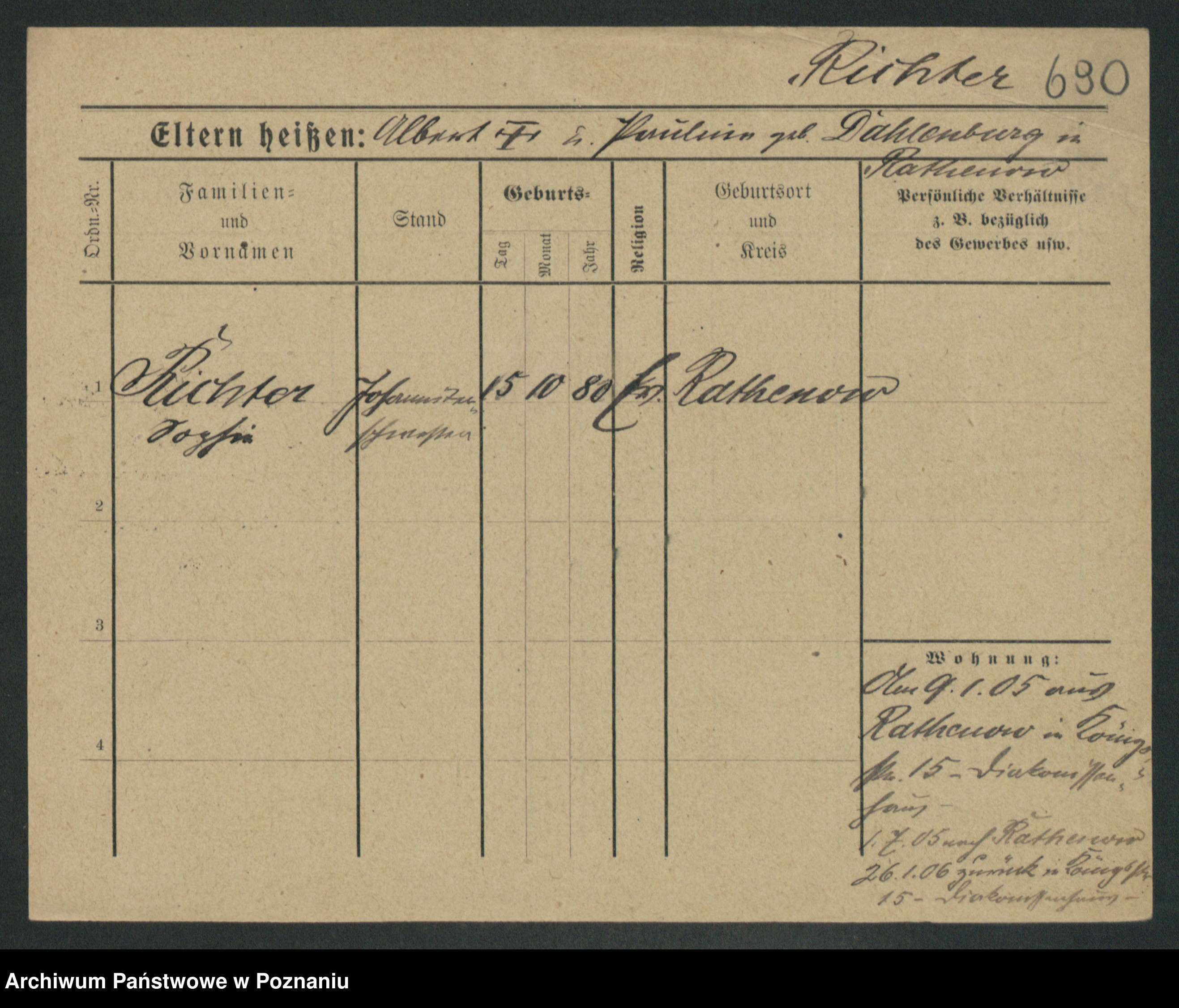 Ritzenhoff zd. Kraatz, Martha Anna Minna