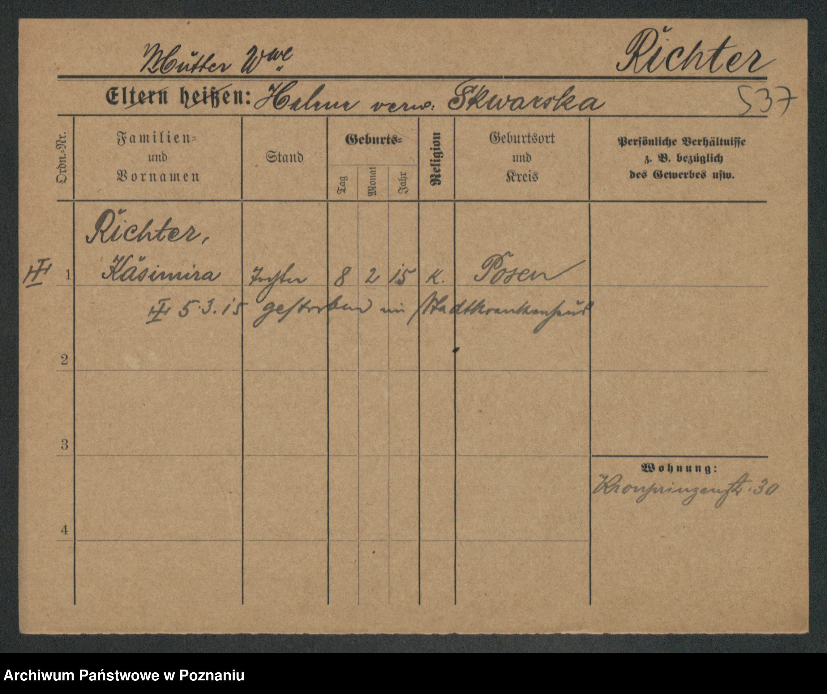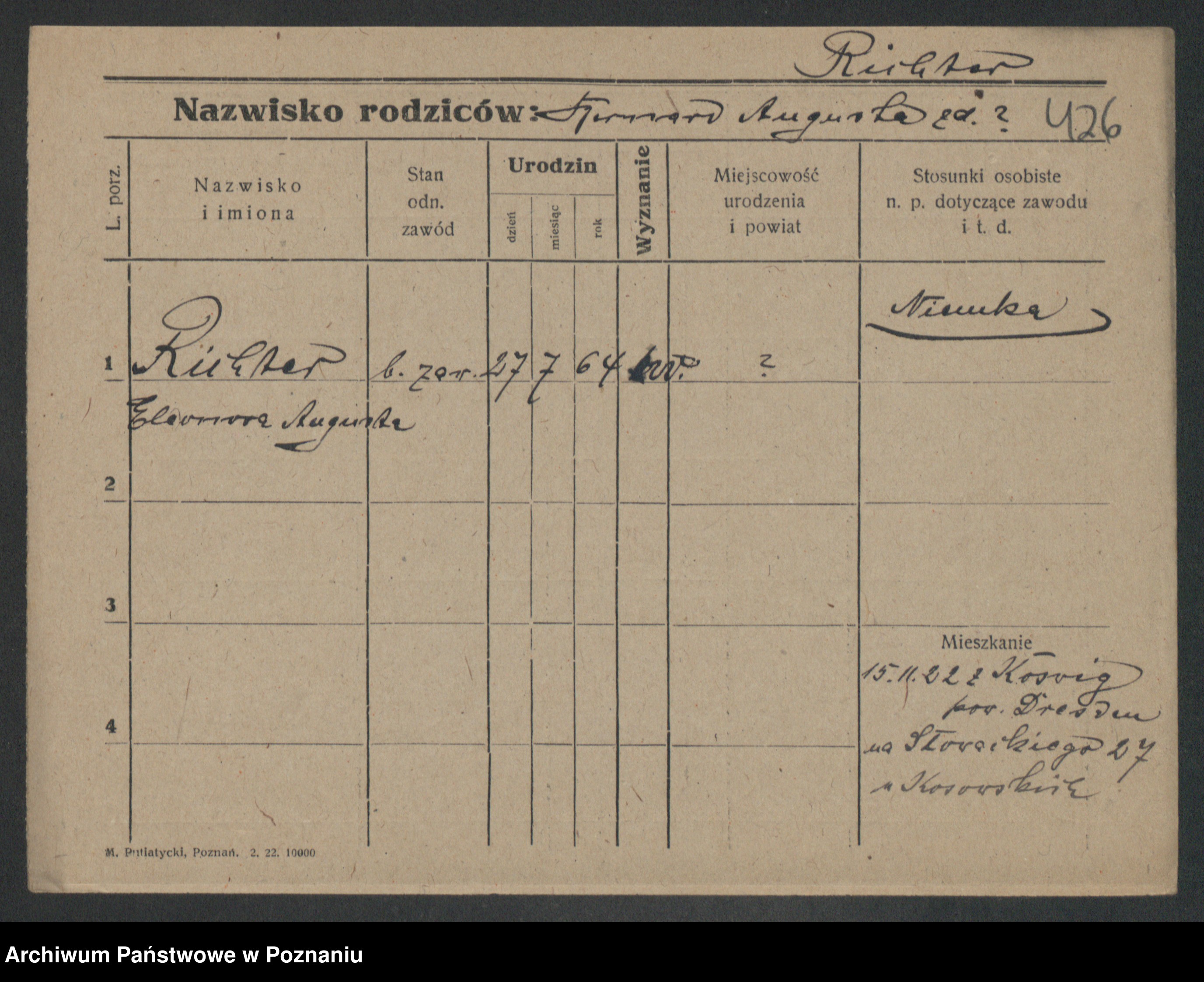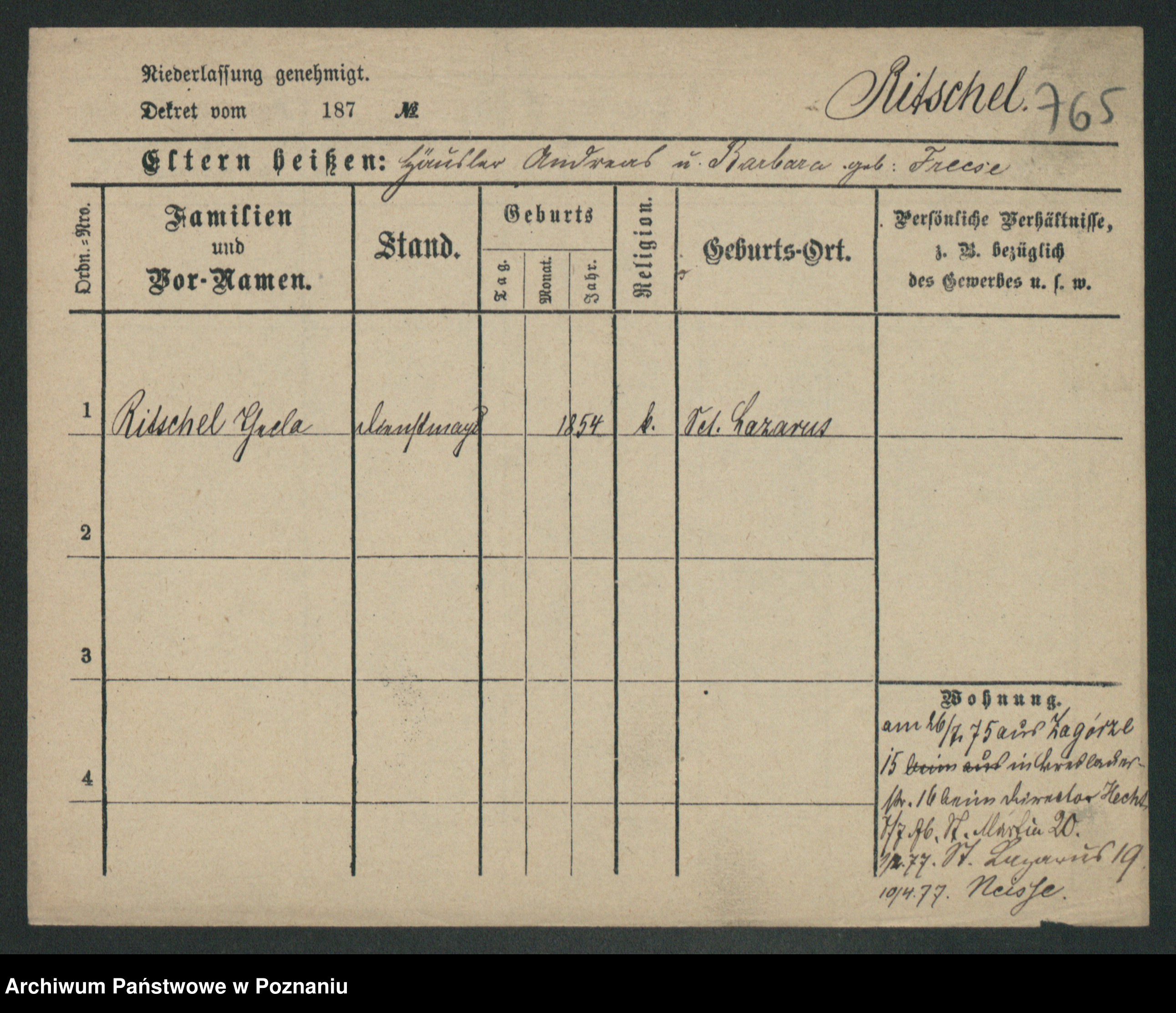 Ritschel zd. Klyszynska Iv.Cudera, Magdalena Stanislawa
