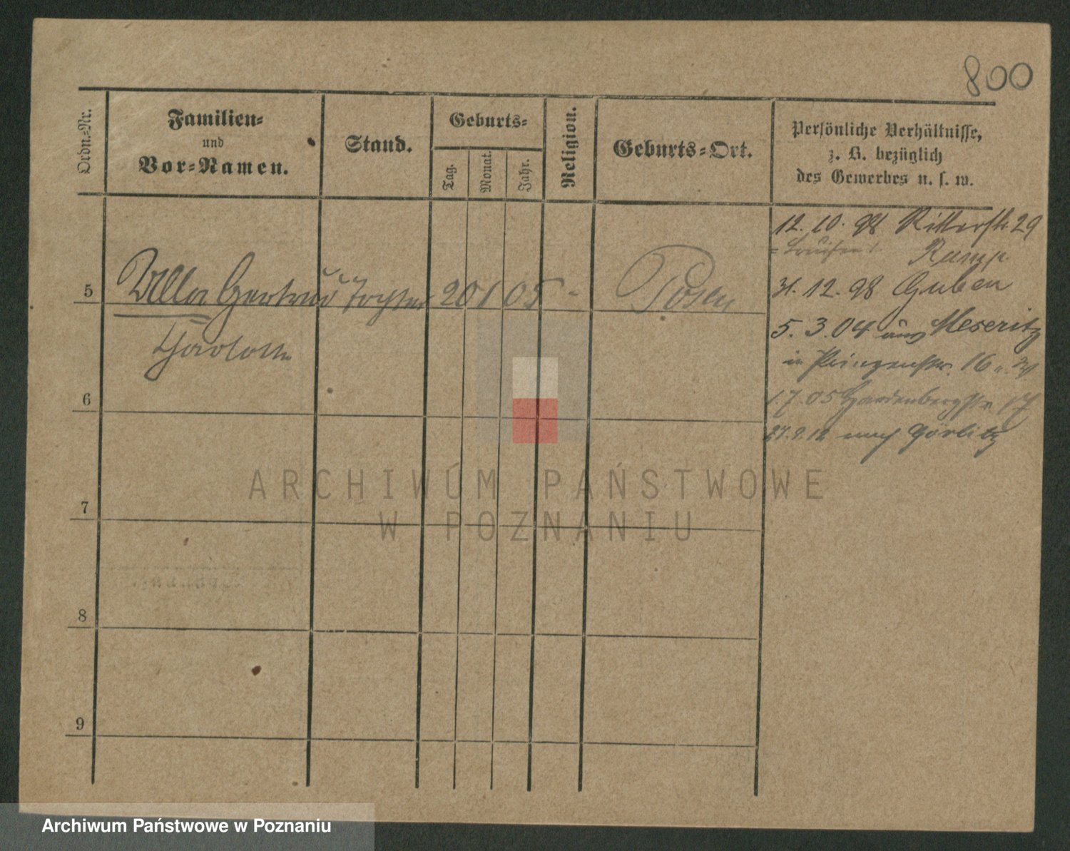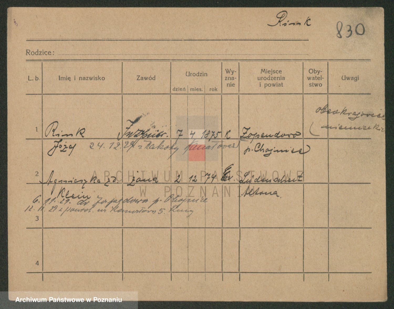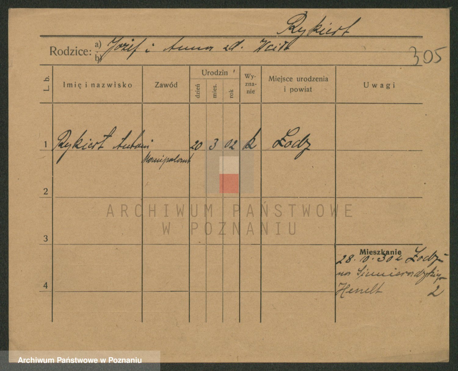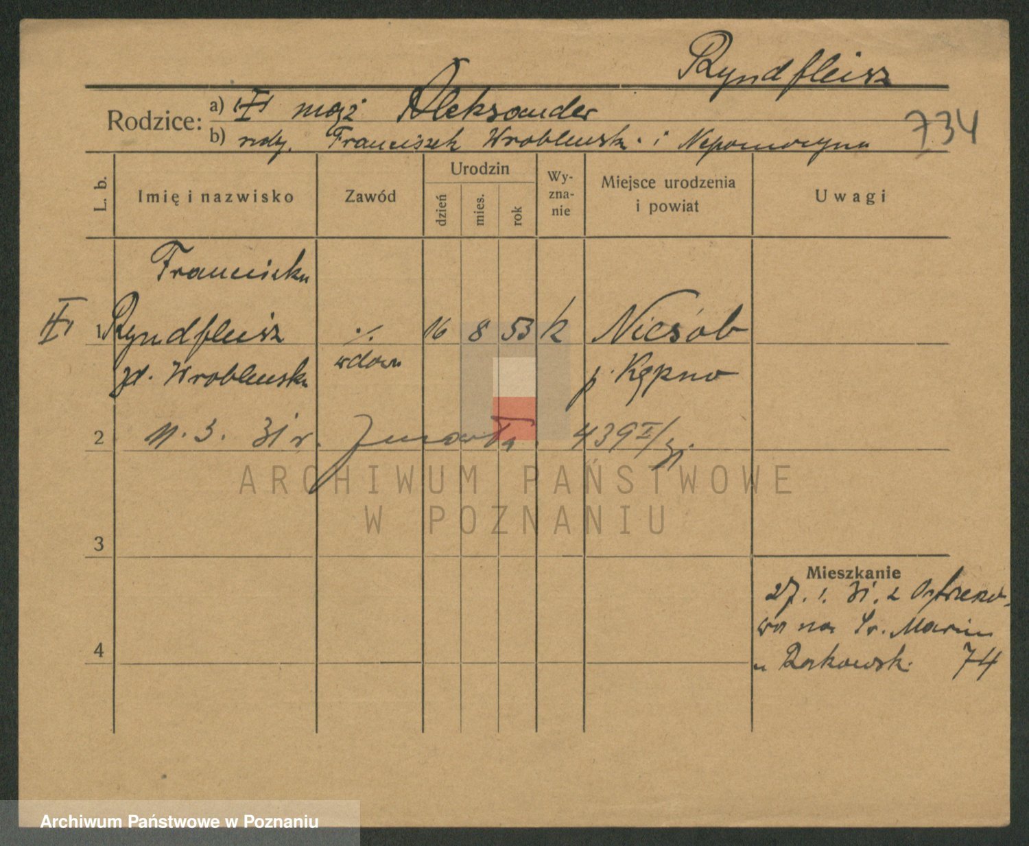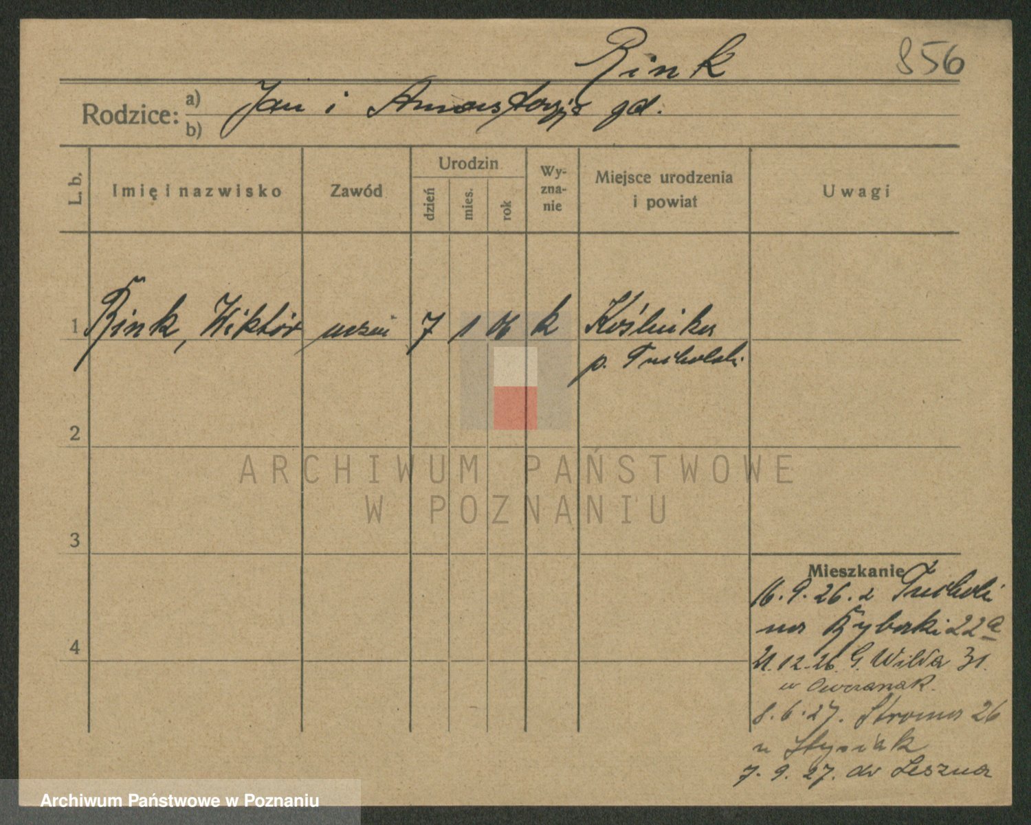 Podgląd karty osobowej dostępny jest po kliknięciu na nazwisko lub ikonkę karty. Można dokonywać powiększenia (ikony na górze) lub przechodzić między kolejnymi skanami (strzałki po bokach).