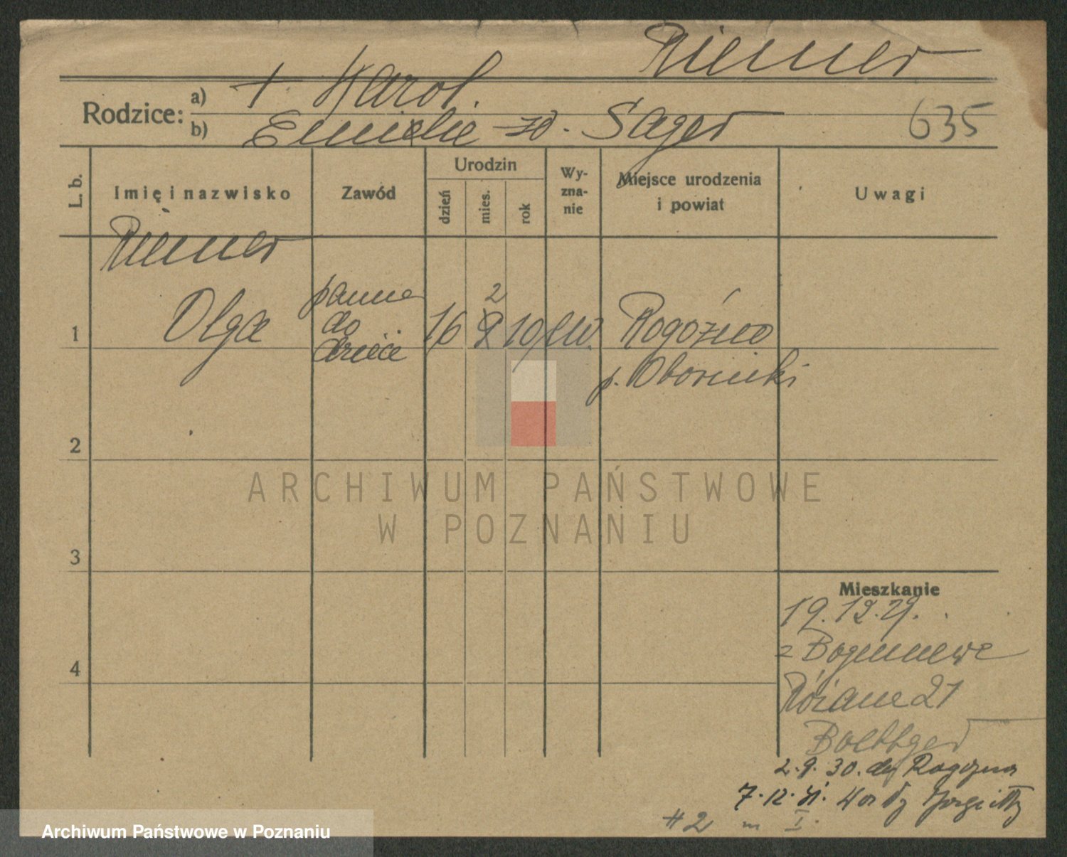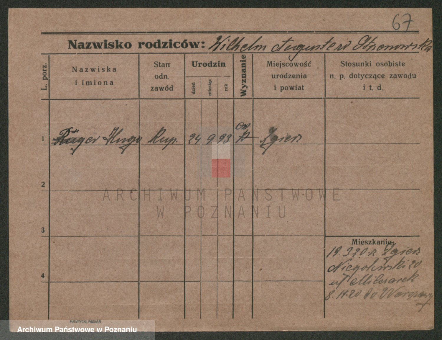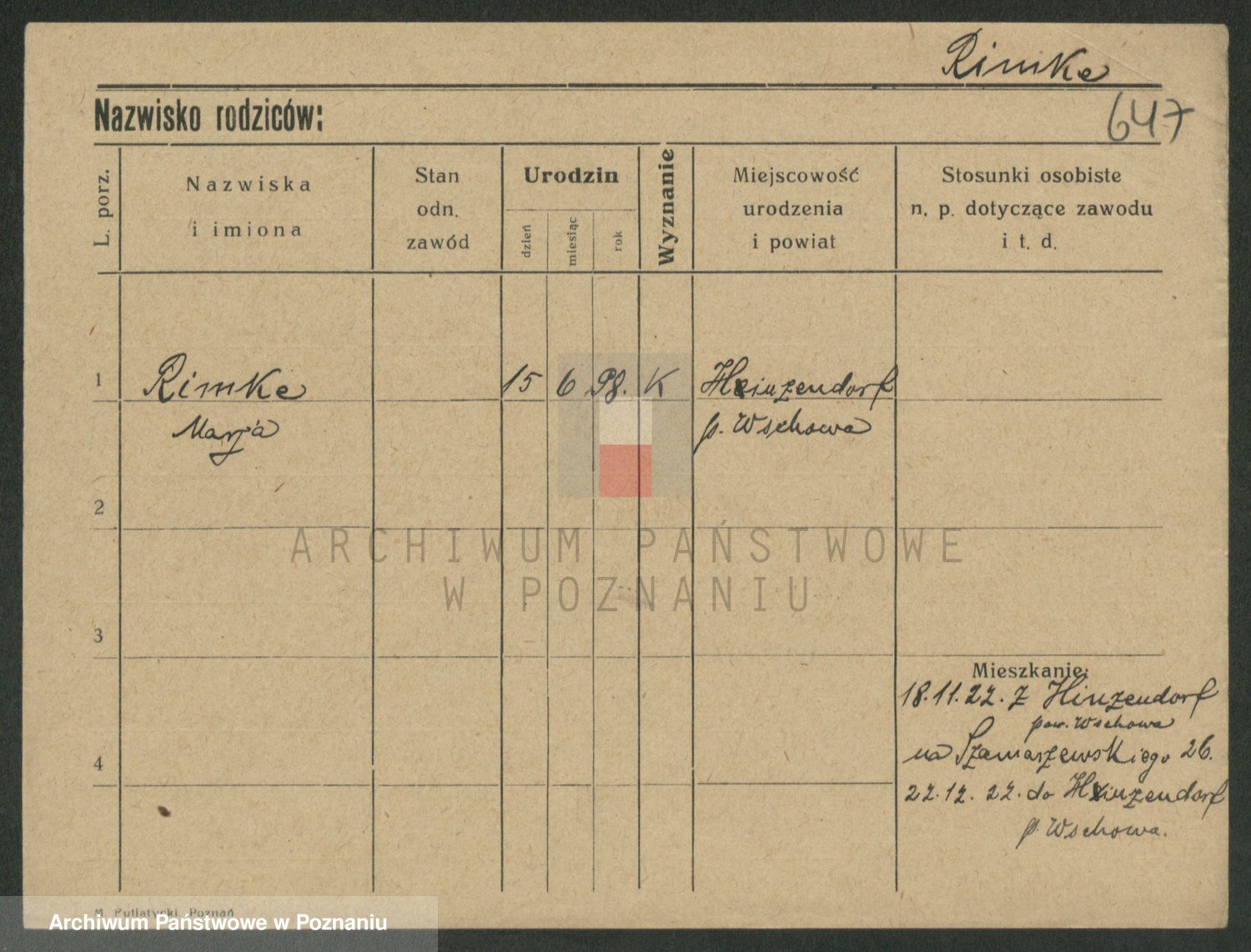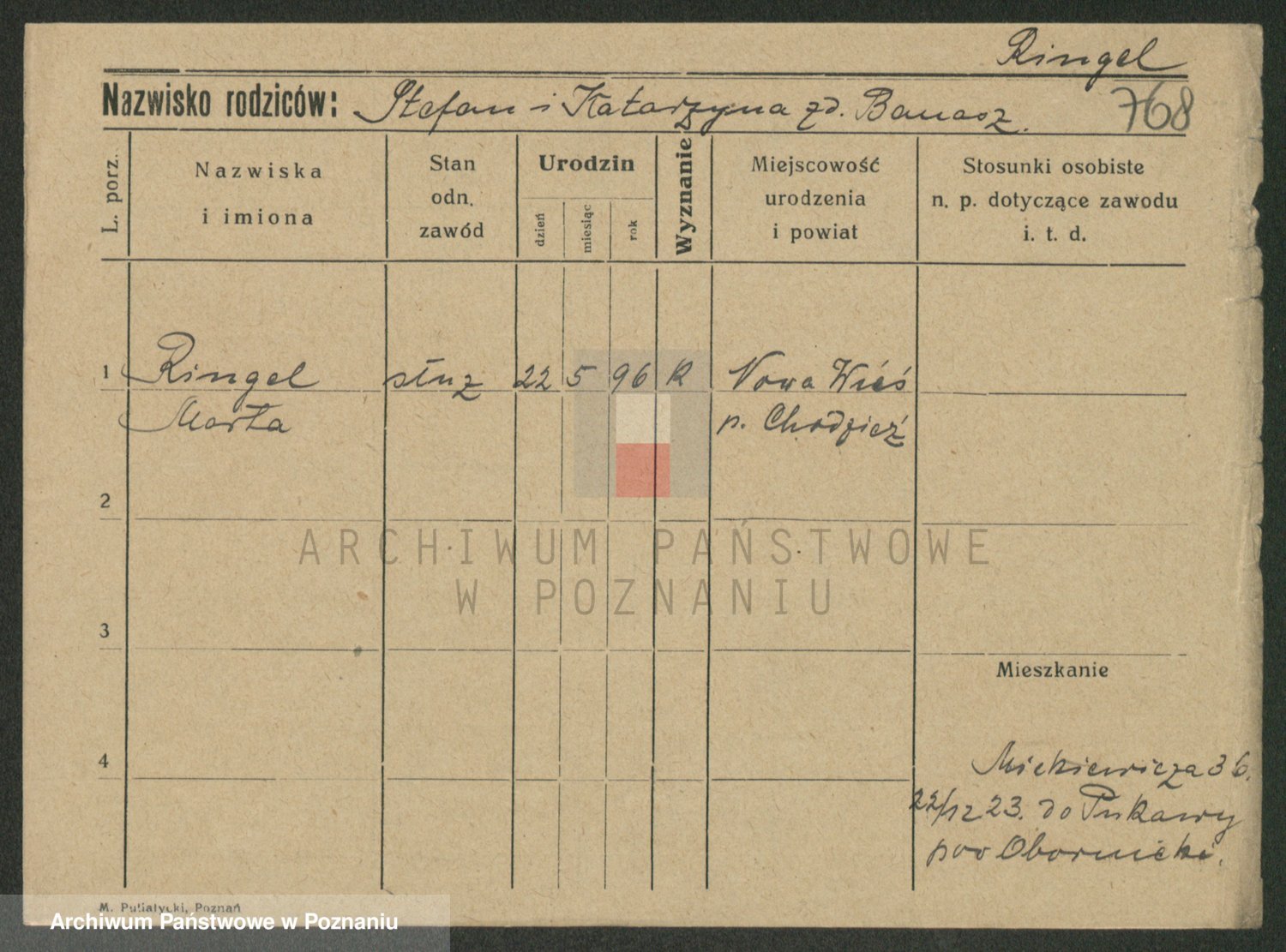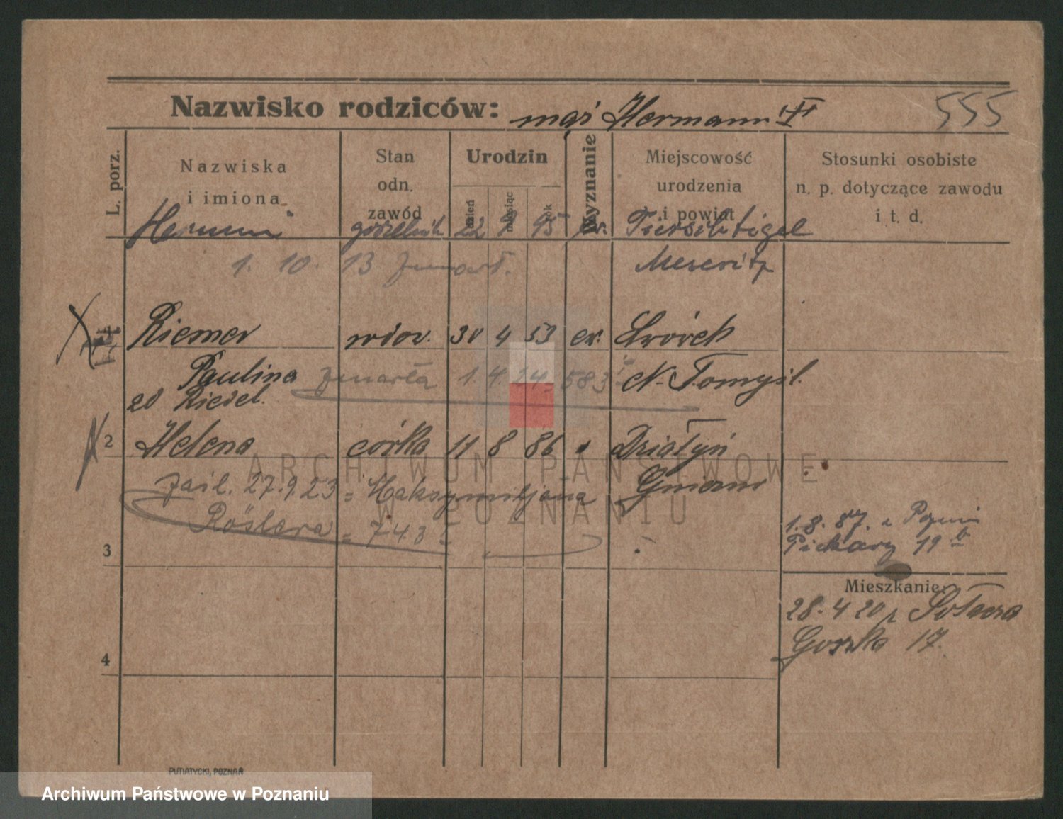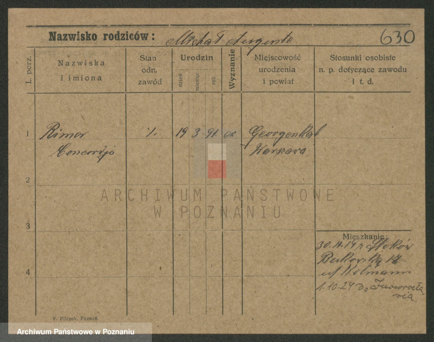 Podgląd karty osobowej dostępny jest po kliknięciu na nazwisko lub ikonkę karty. Można dokonywać powiększenia (ikony na górze) lub przechodzić między kolejnymi skanami (strzałki po bokach).