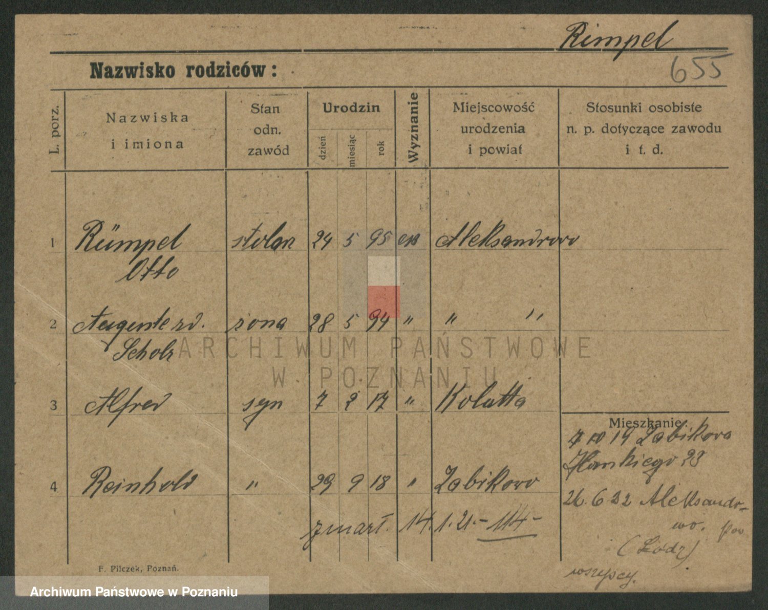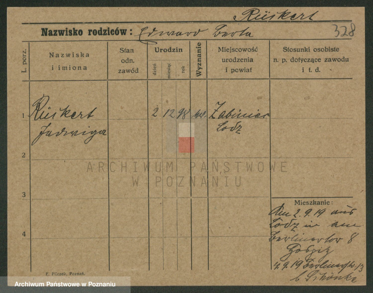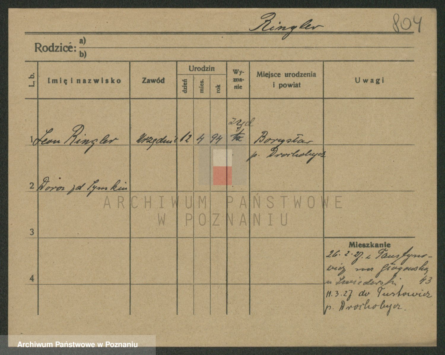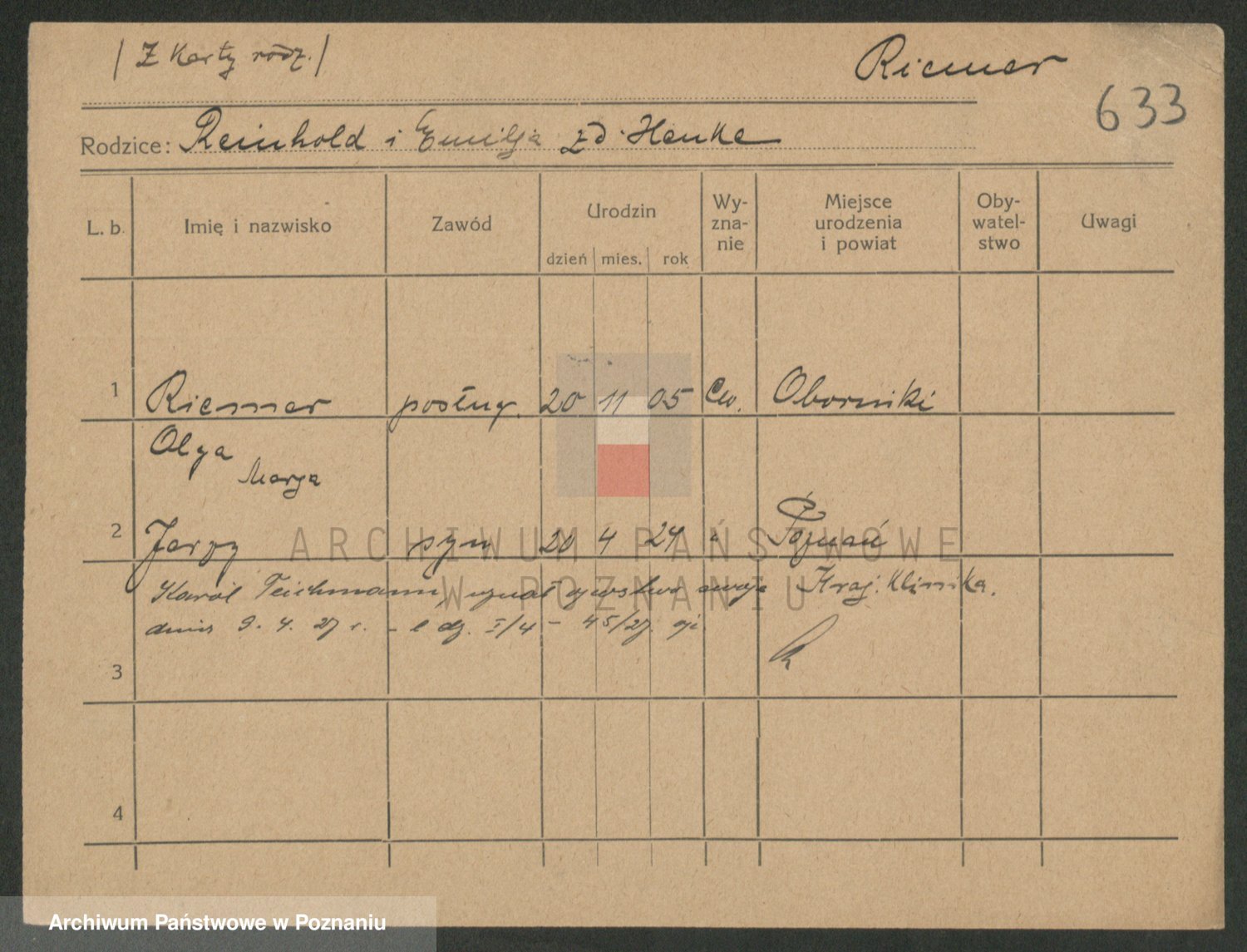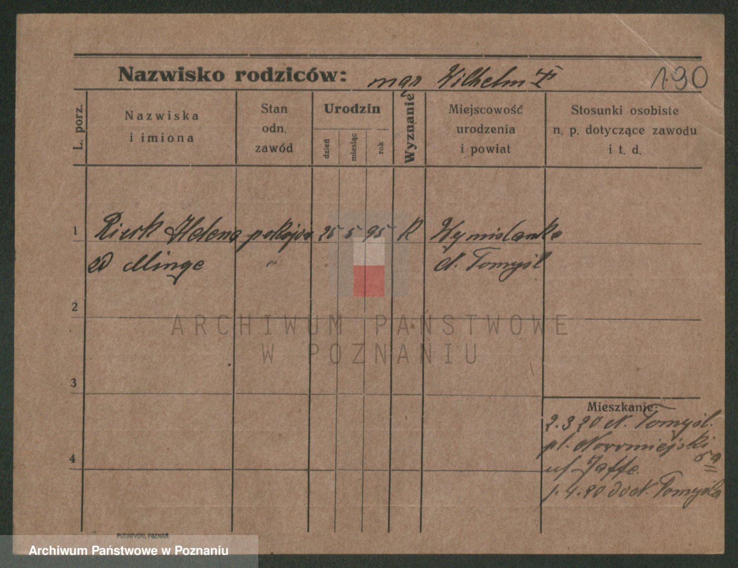 Podgląd karty osobowej dostępny jest po kliknięciu na nazwisko lub ikonkę karty. Można dokonywać powiększenia (ikony na górze) lub przechodzić między kolejnymi skanami (strzałki po bokach).