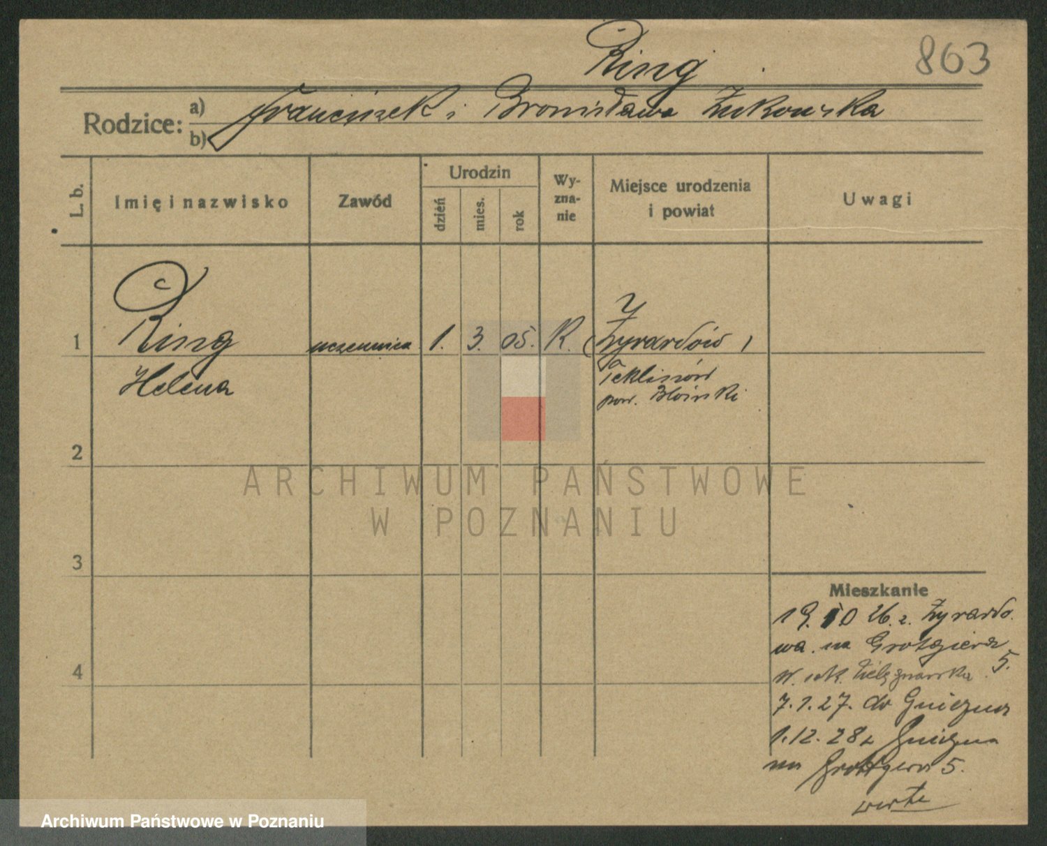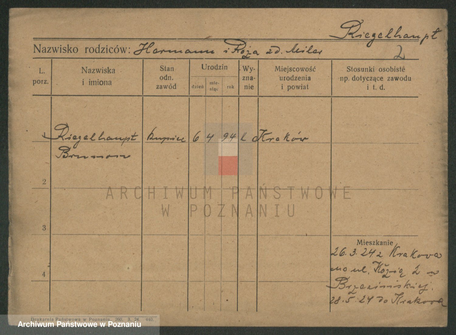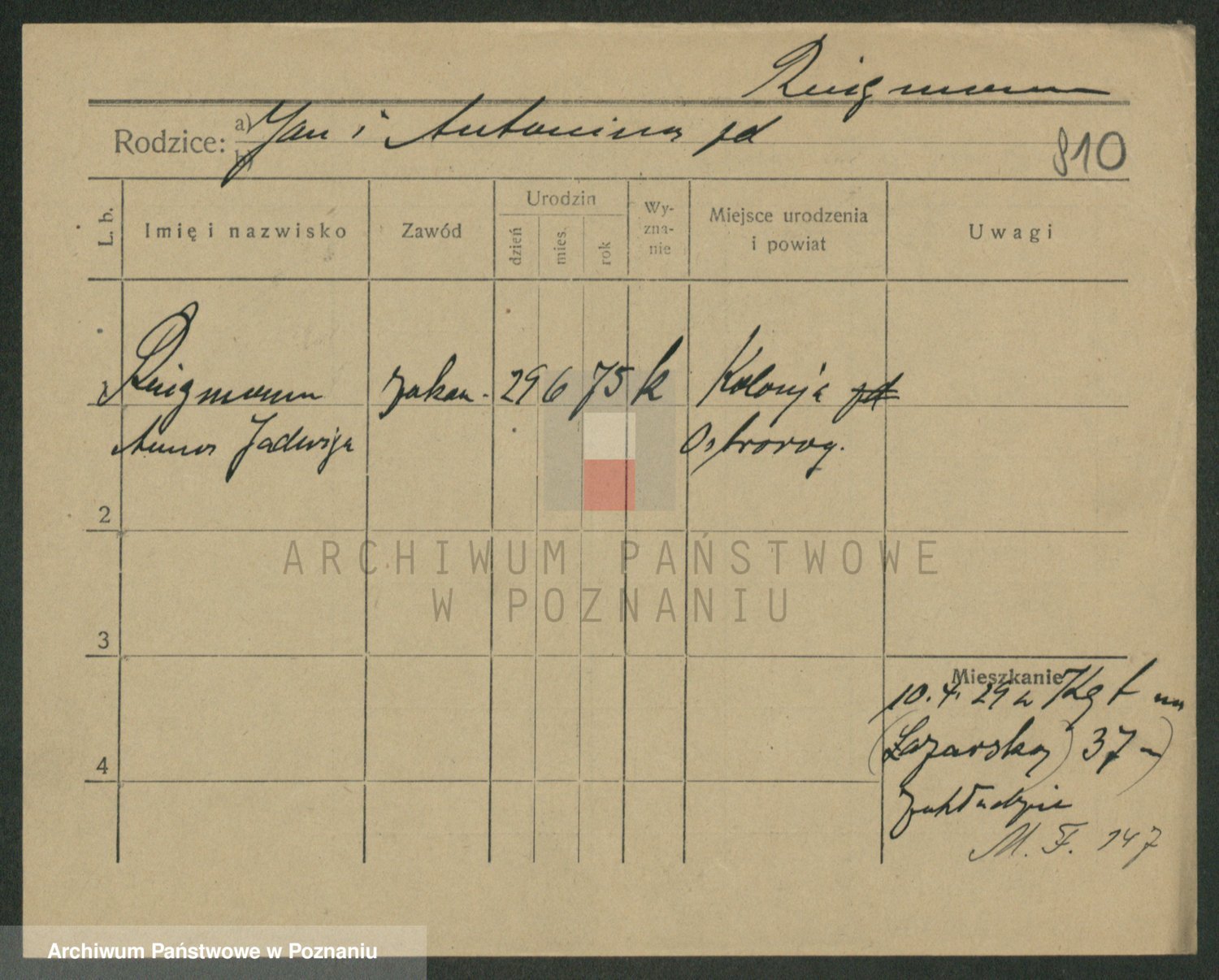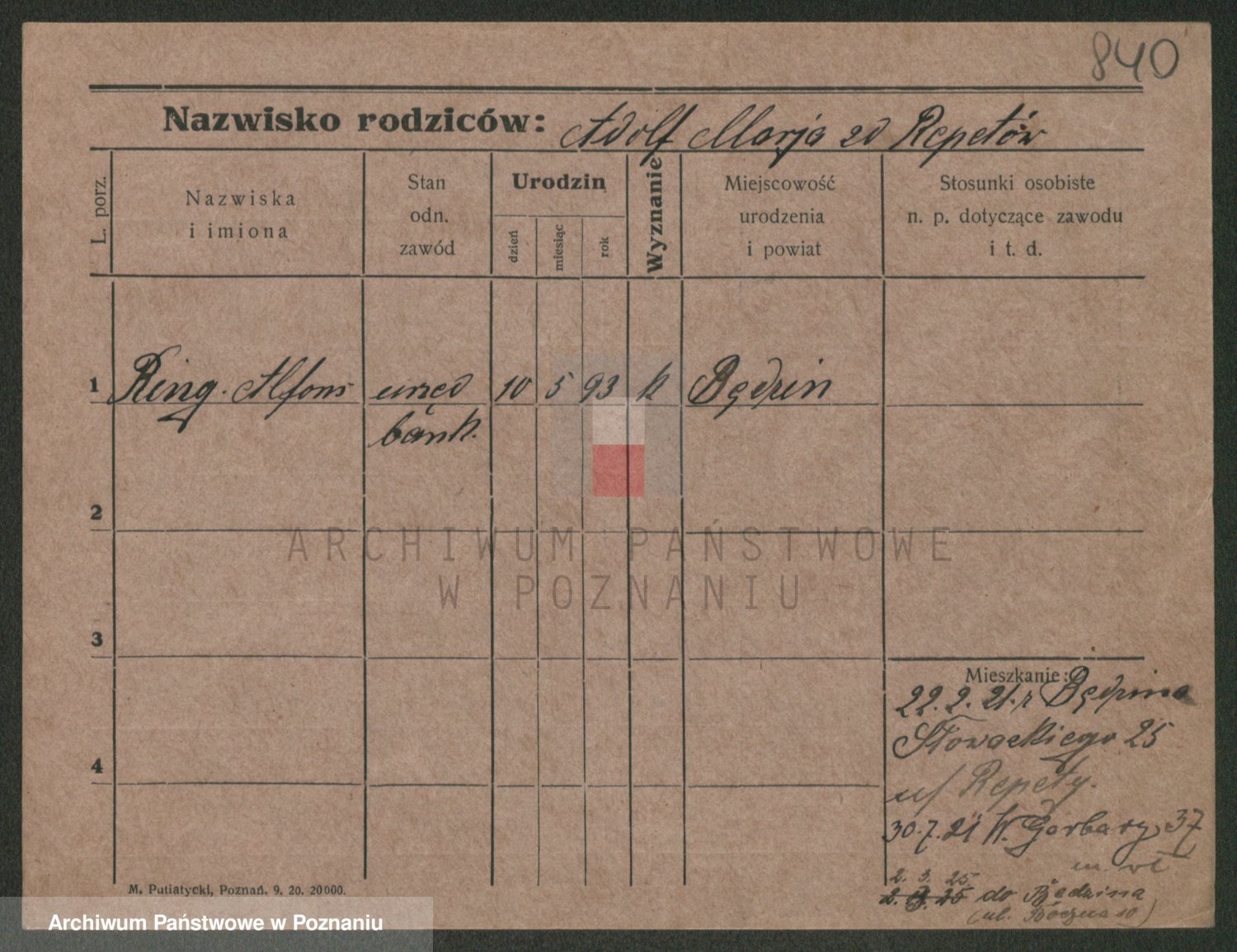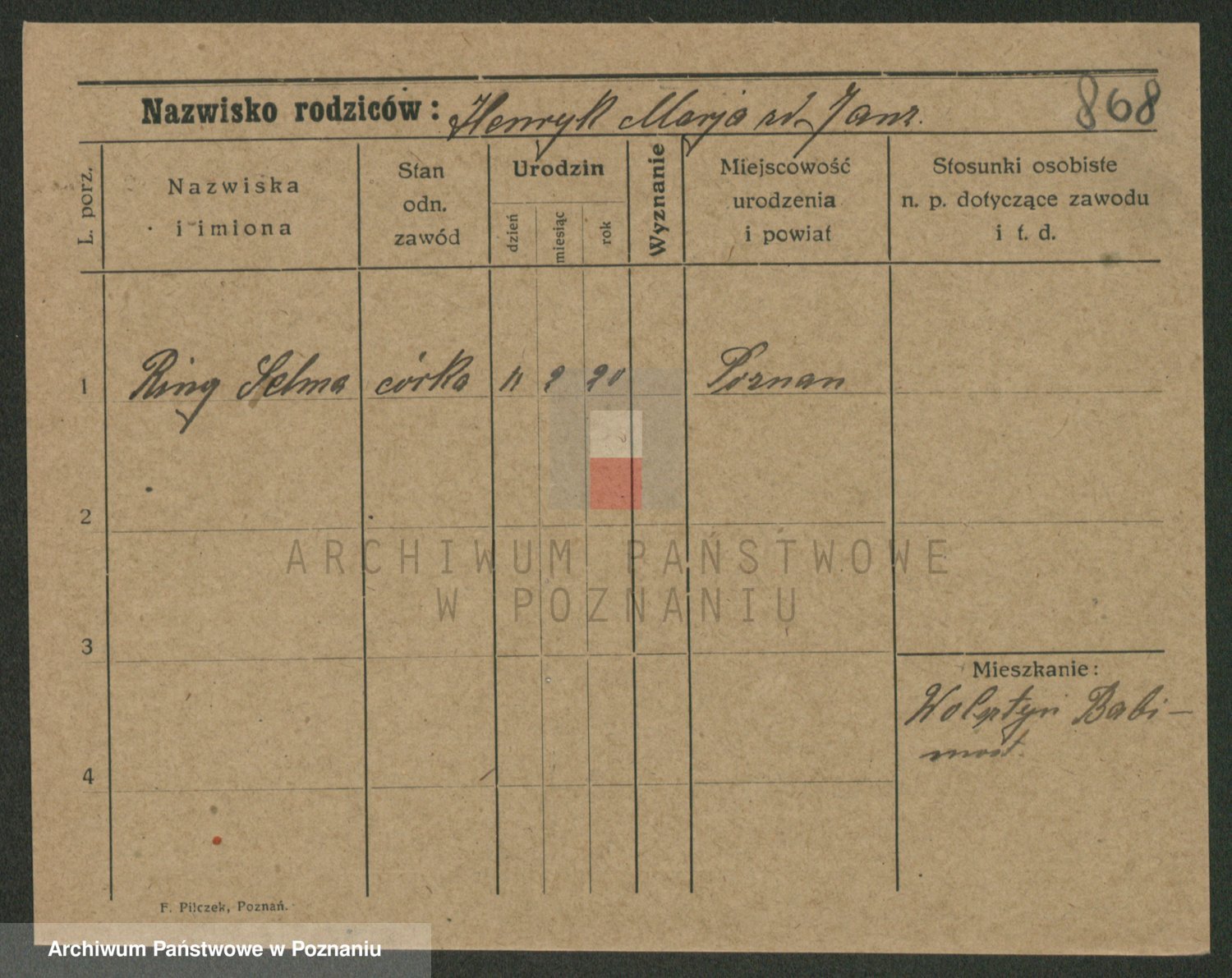 Podgląd karty osobowej dostępny jest po kliknięciu na nazwisko lub ikonkę karty. Można dokonywać powiększenia (ikony na górze) lub przechodzić między kolejnymi skanami (strzałki po bokach).