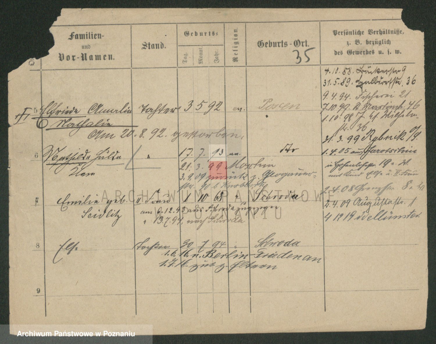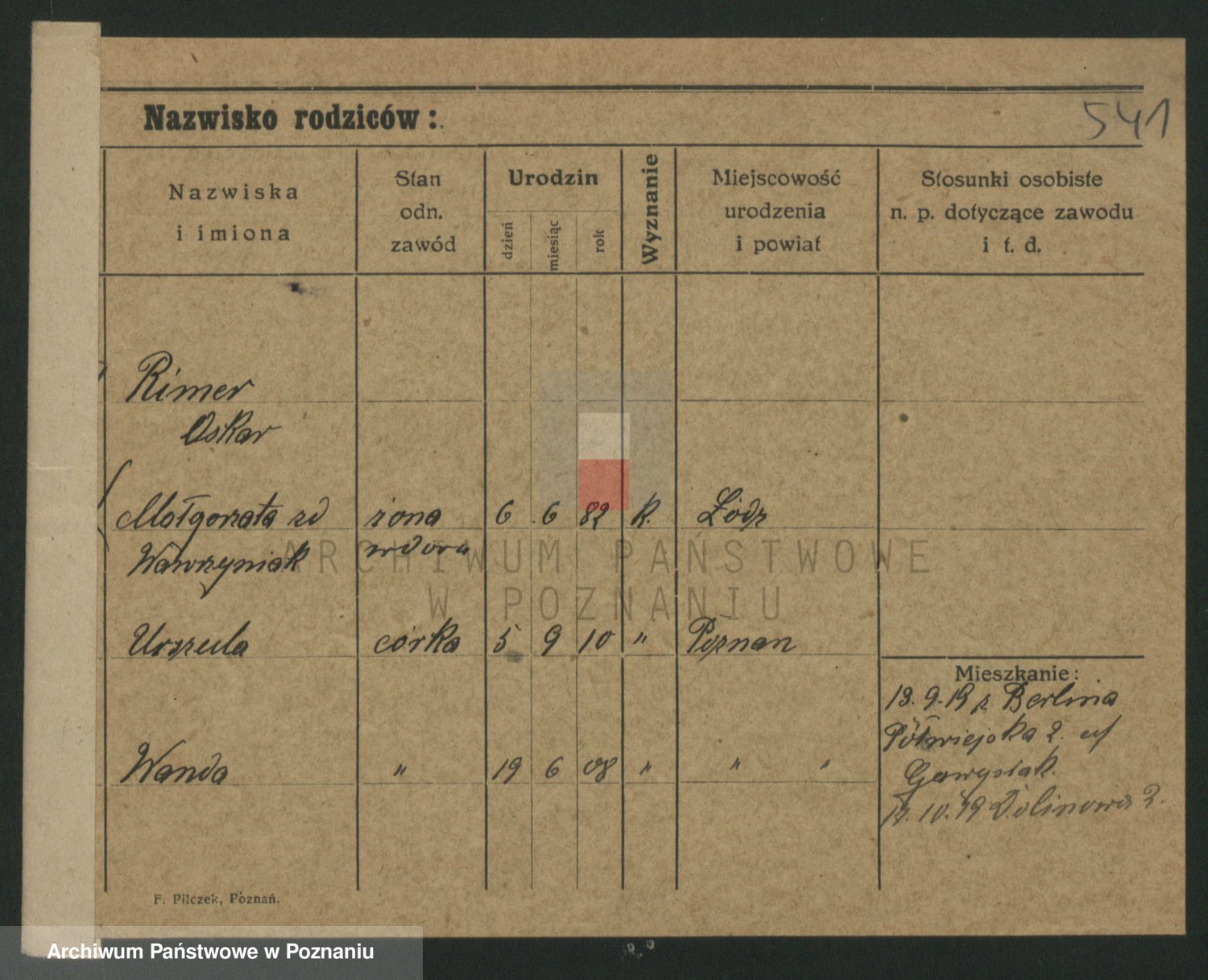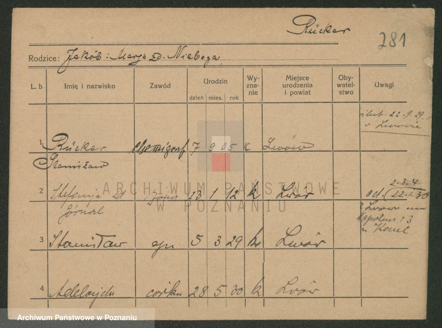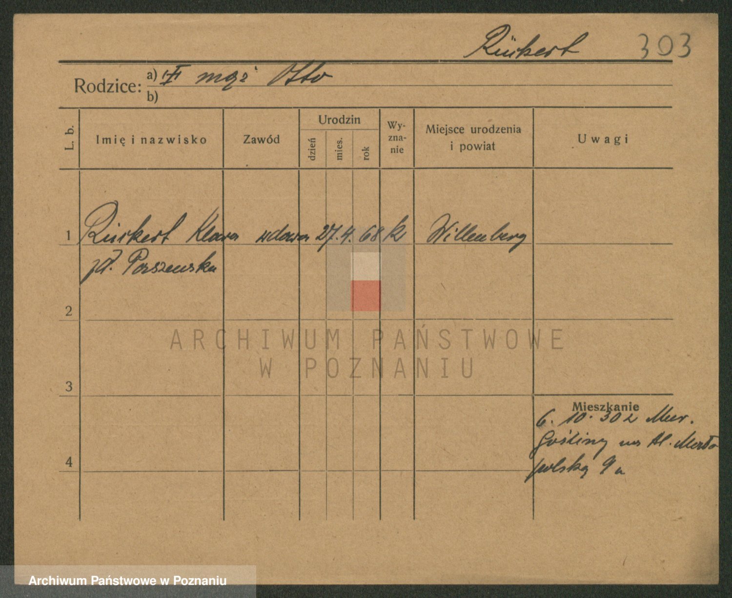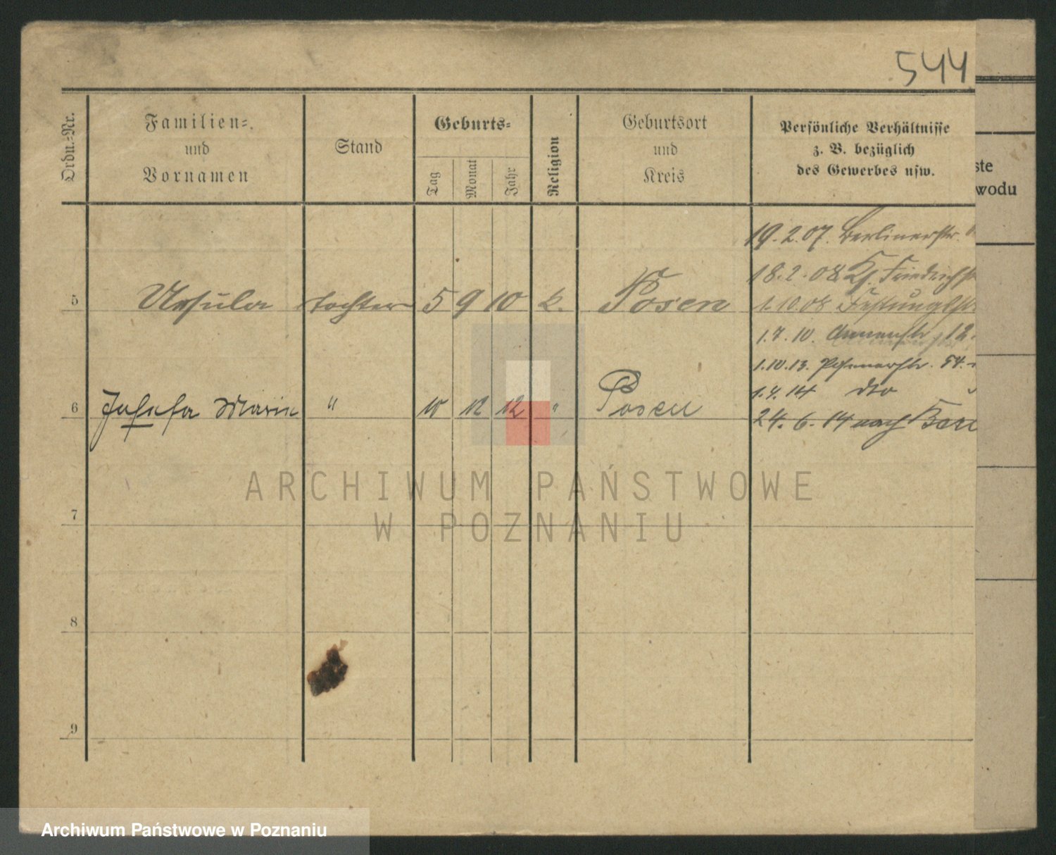 Podgląd karty osobowej dostępny jest po kliknięciu na nazwisko lub ikonkę karty. Można dokonywać powiększenia (ikony na górze) lub przechodzić między kolejnymi skanami (strzałki po bokach).