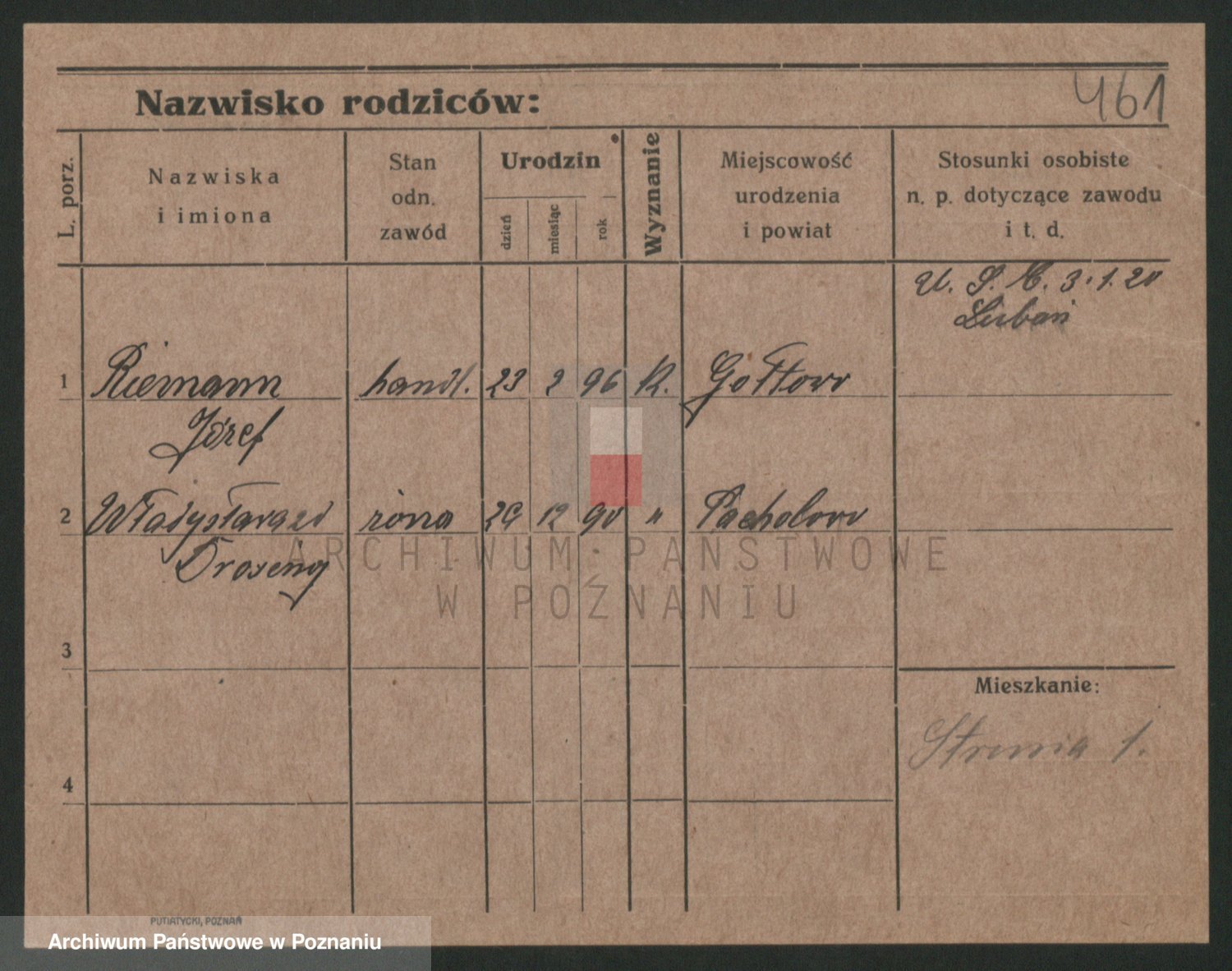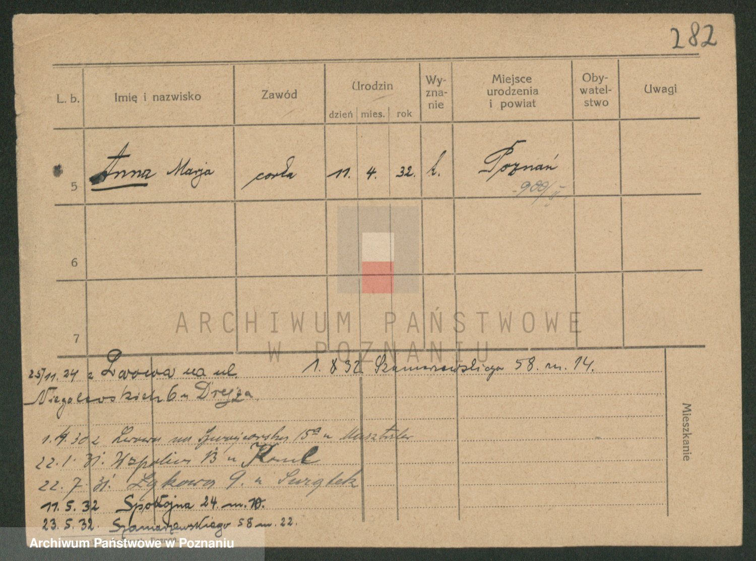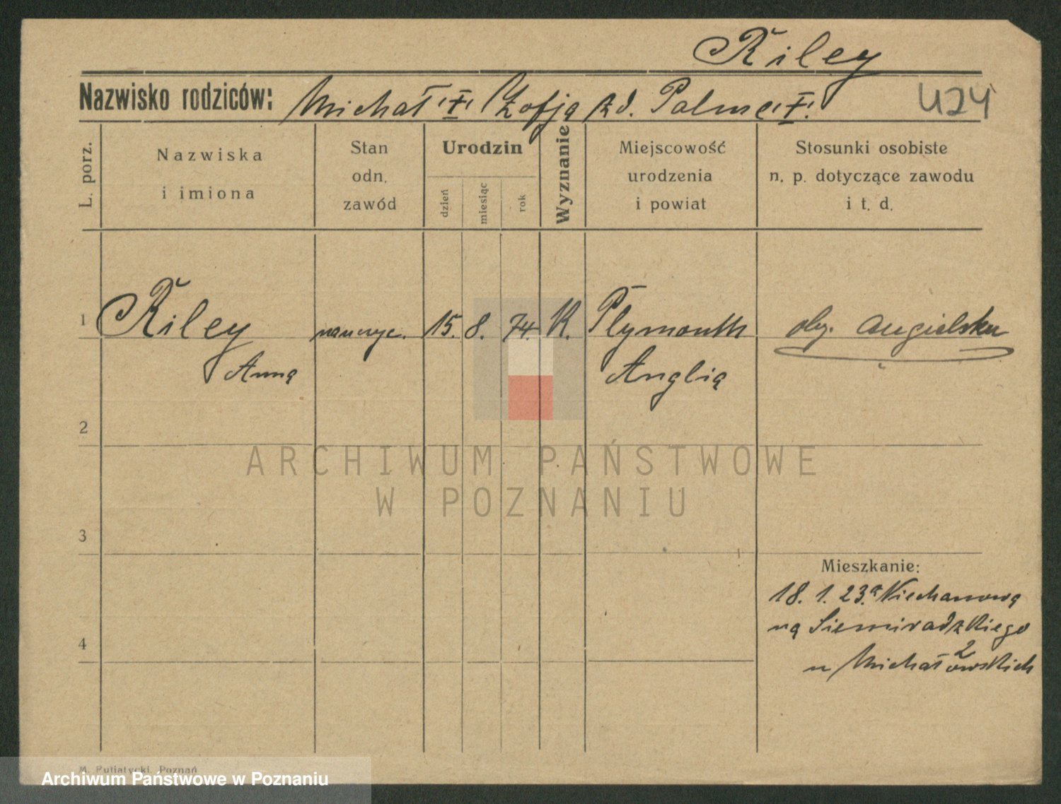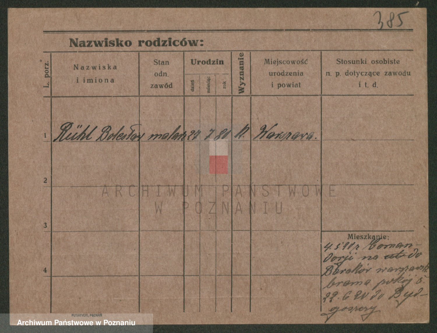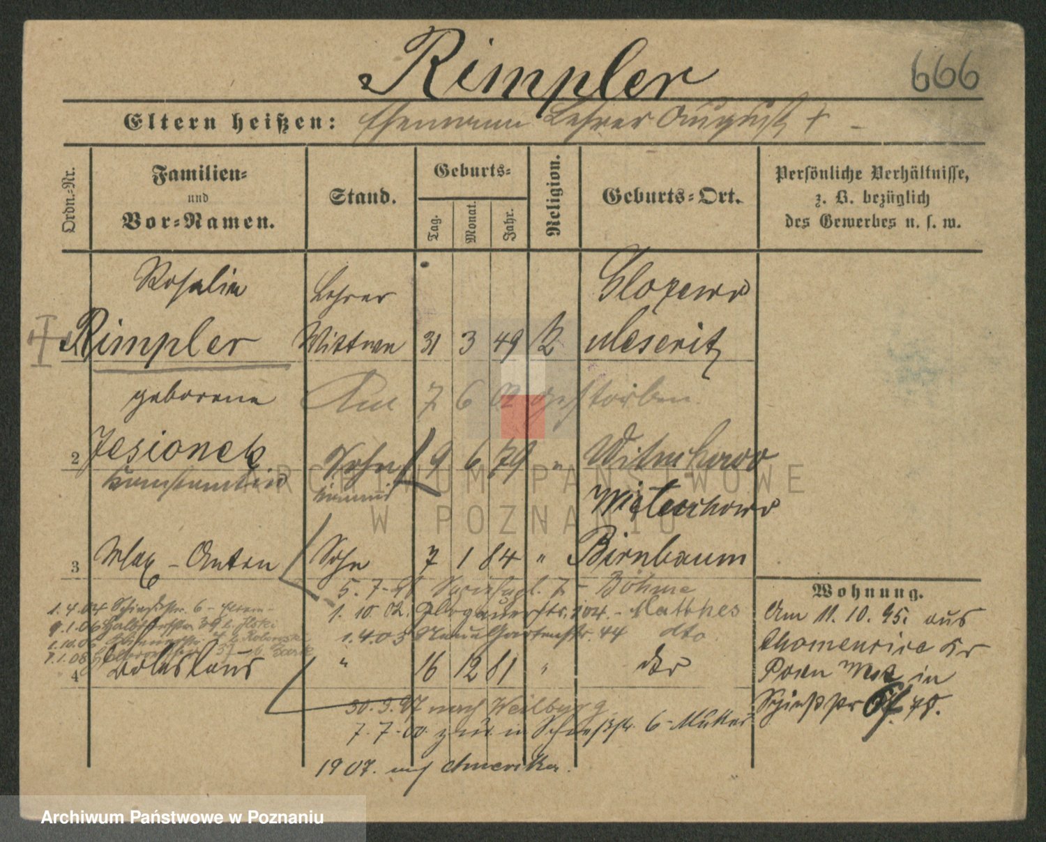 Podgląd karty osobowej dostępny jest po kliknięciu na nazwisko lub ikonkę karty. Można dokonywać powiększenia (ikony na górze) lub przechodzić między kolejnymi skanami (strzałki po bokach).