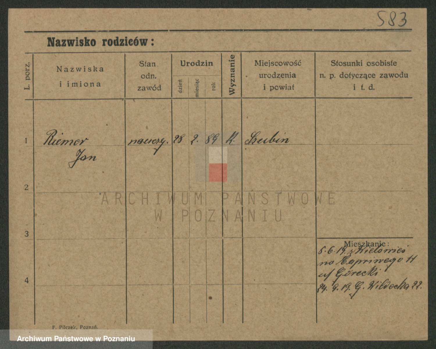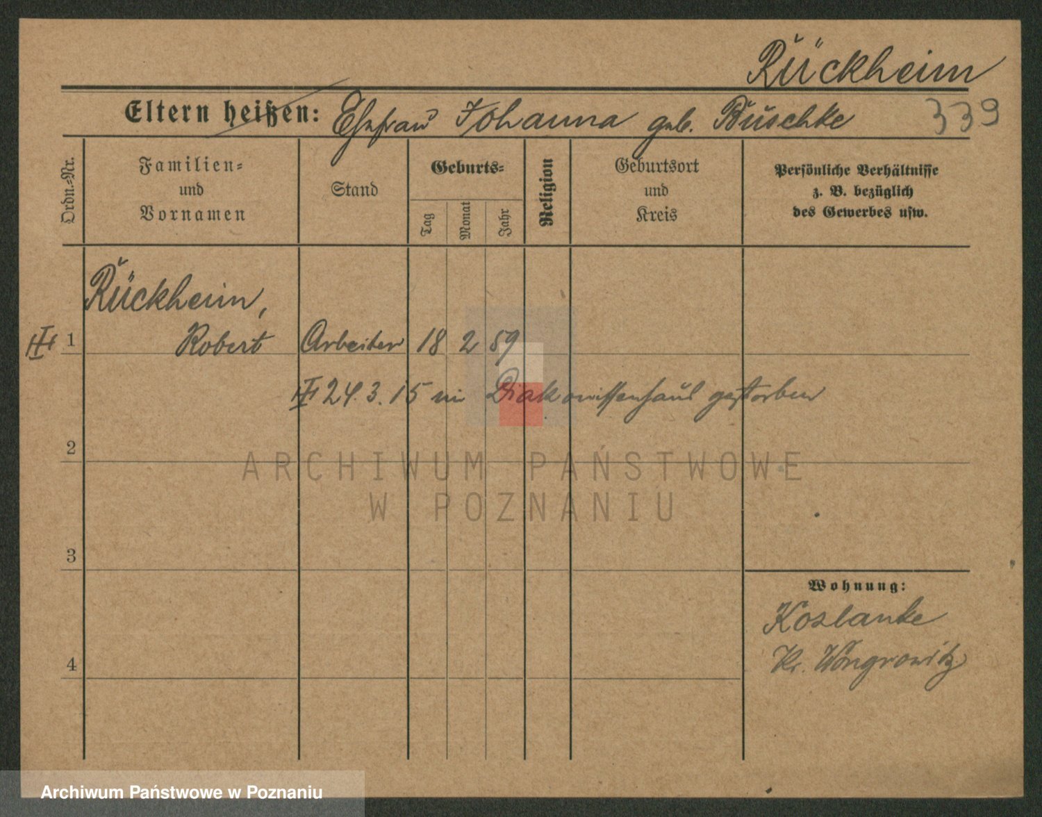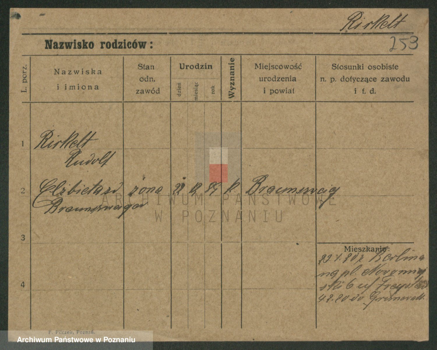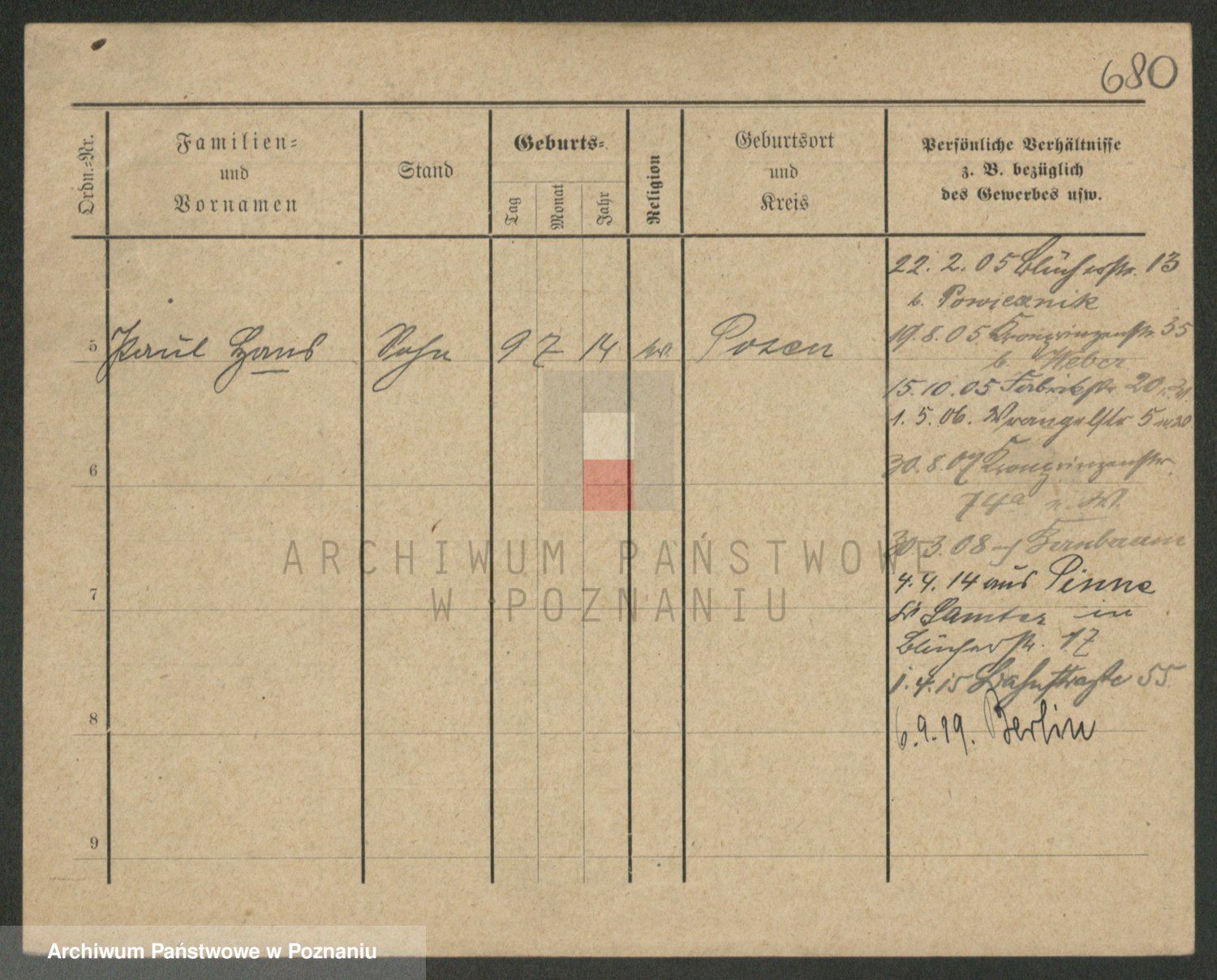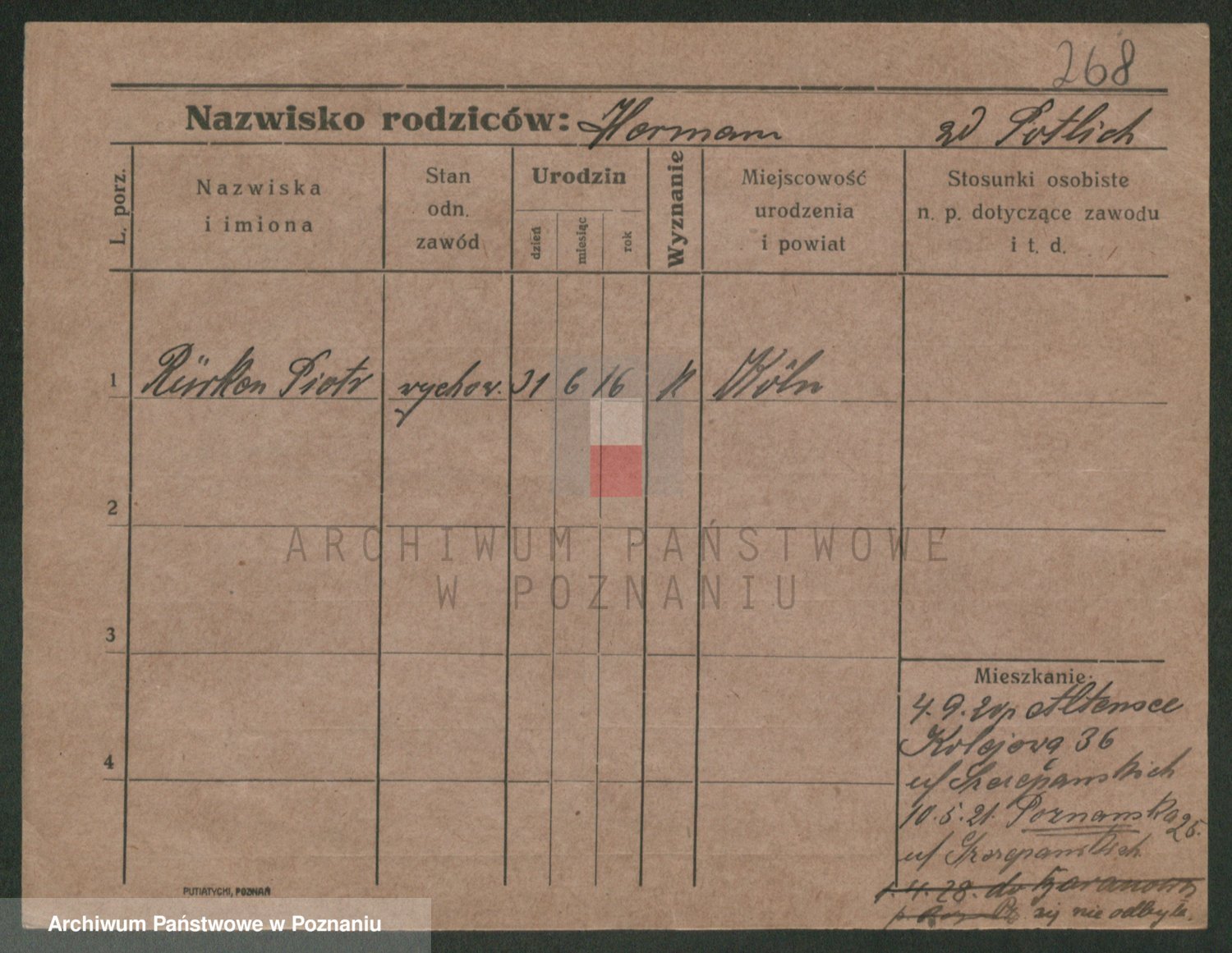 Podgląd karty osobowej dostępny jest po kliknięciu na nazwisko lub ikonkę karty. Można dokonywać powiększenia (ikony na górze) lub przechodzić między kolejnymi skanami (strzałki po bokach).