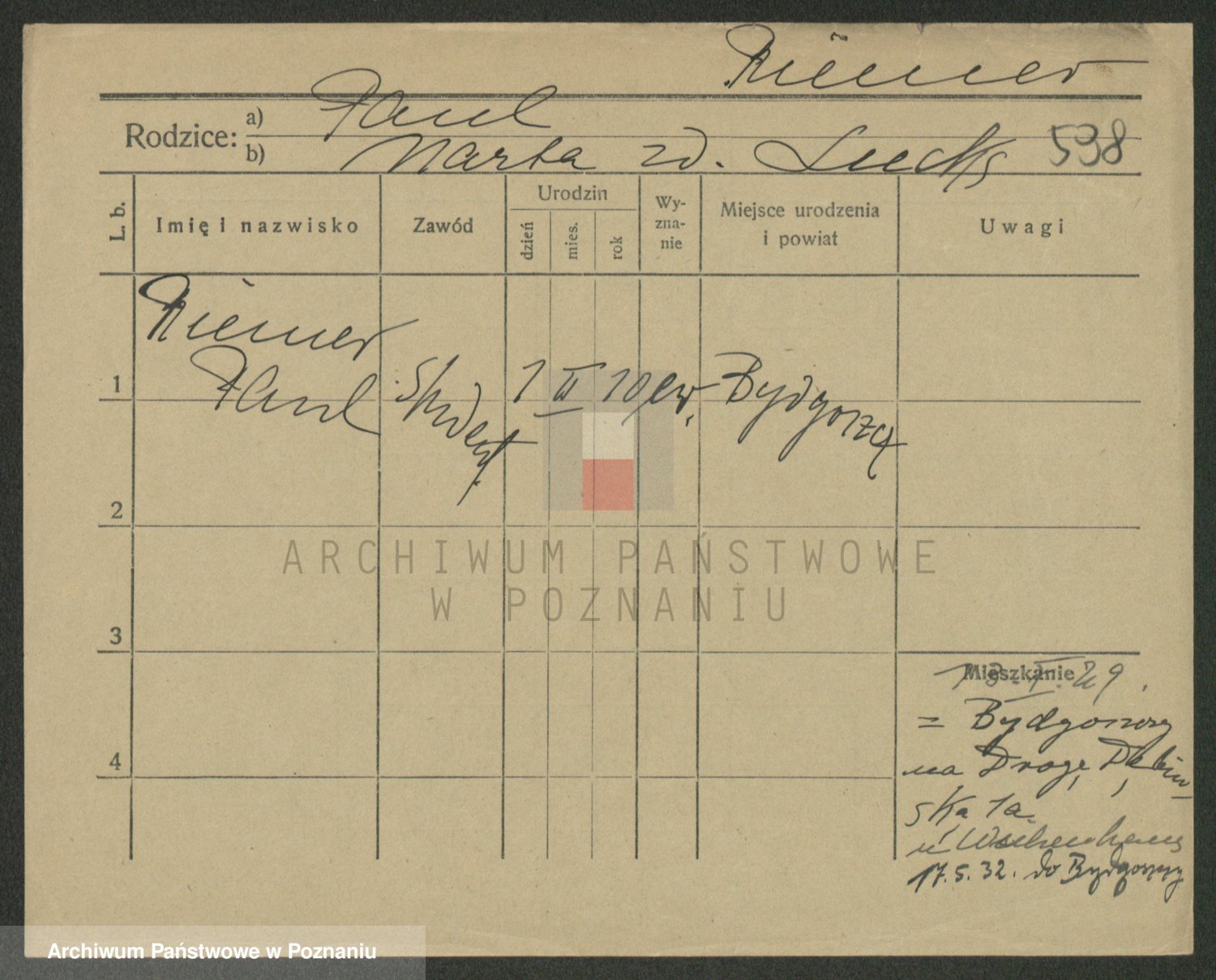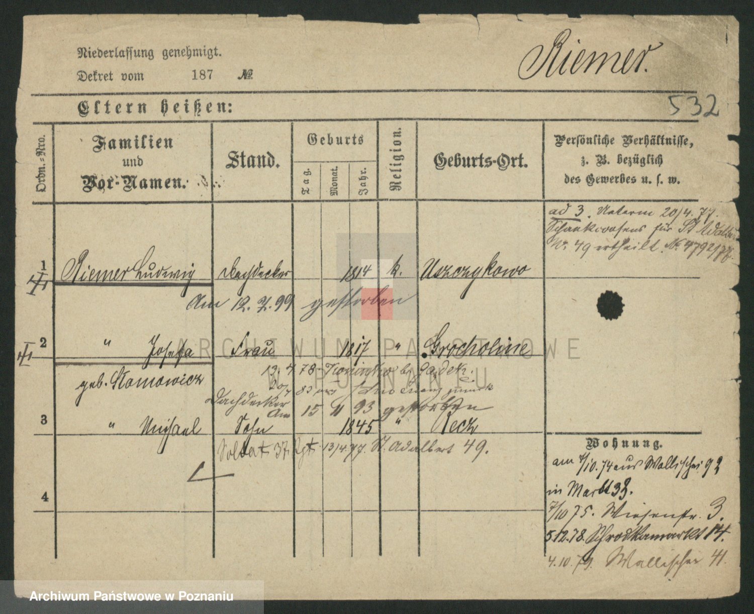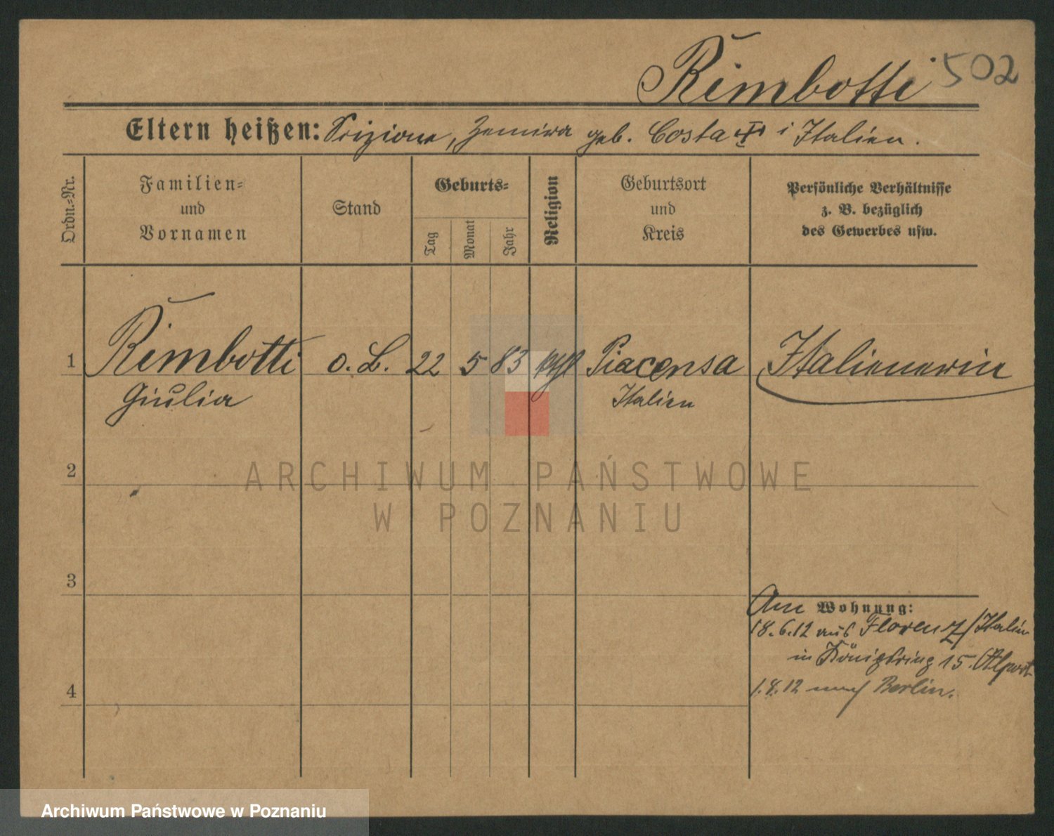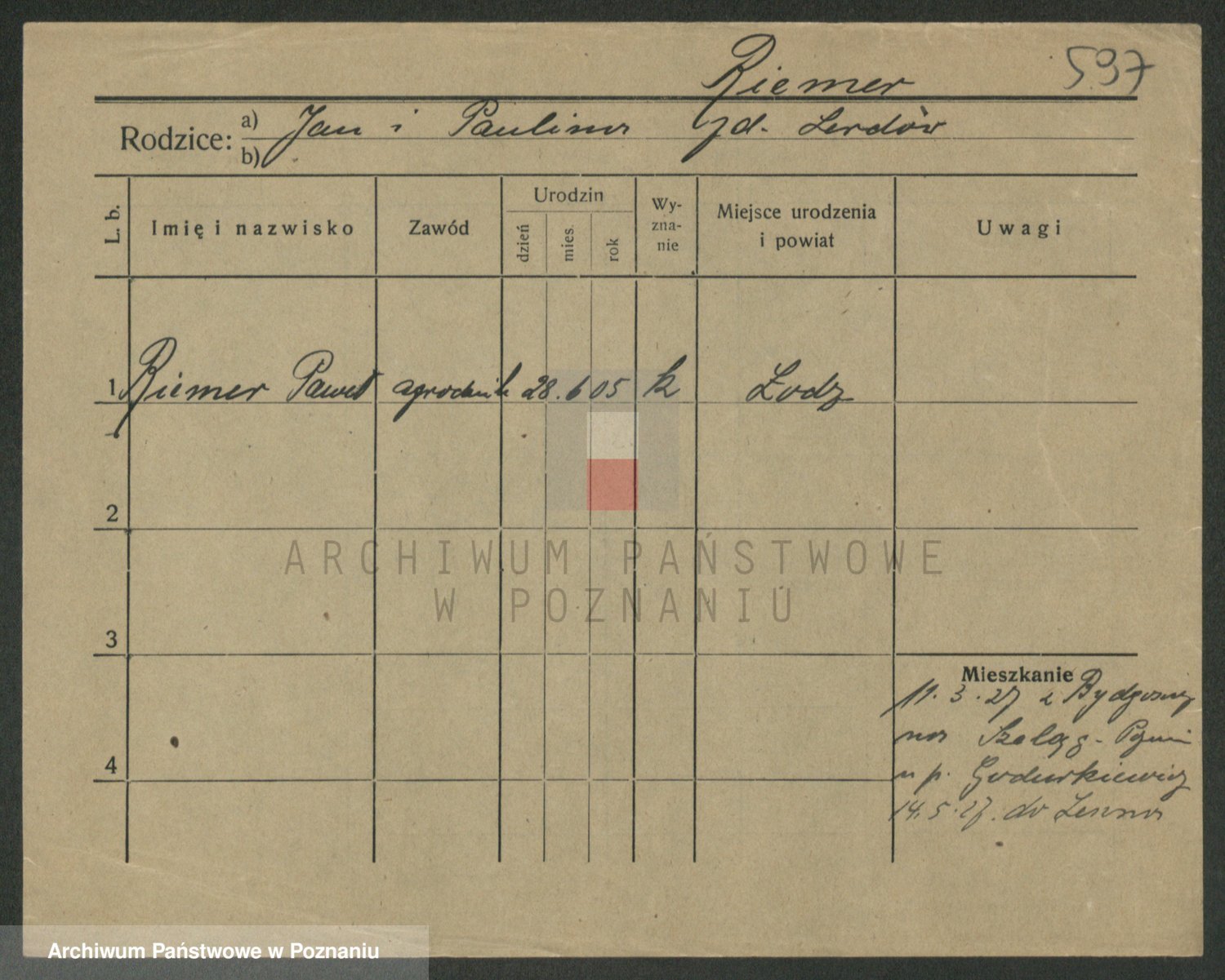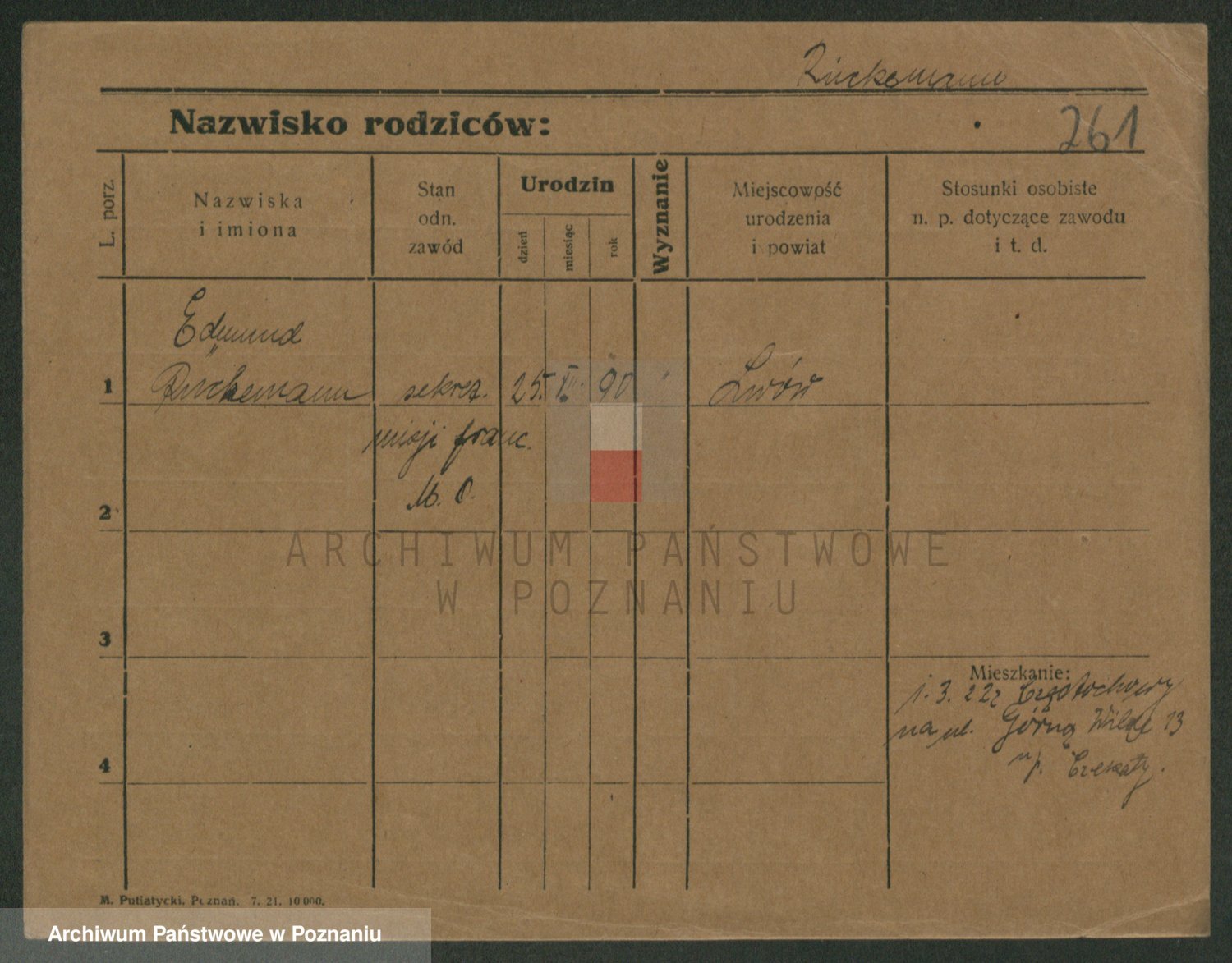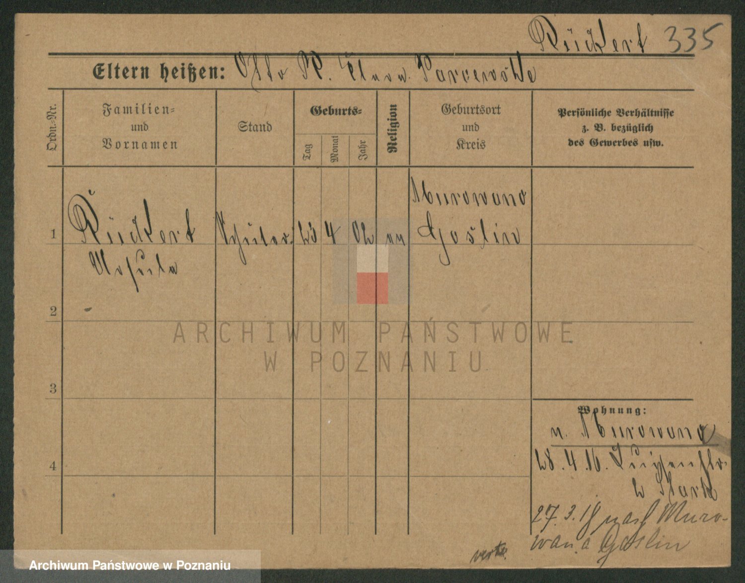 Podgląd karty osobowej dostępny jest po kliknięciu na nazwisko lub ikonkę karty. Można dokonywać powiększenia (ikony na górze) lub przechodzić między kolejnymi skanami (strzałki po bokach).