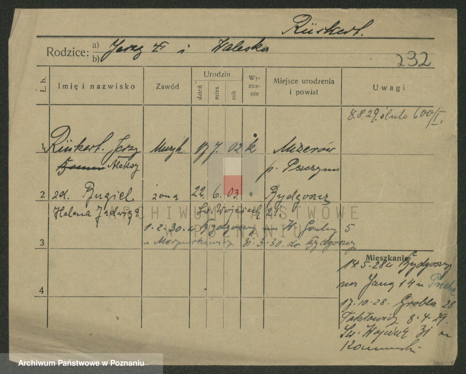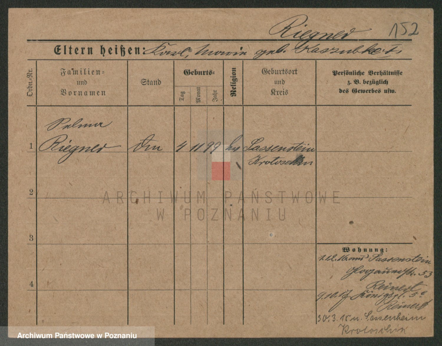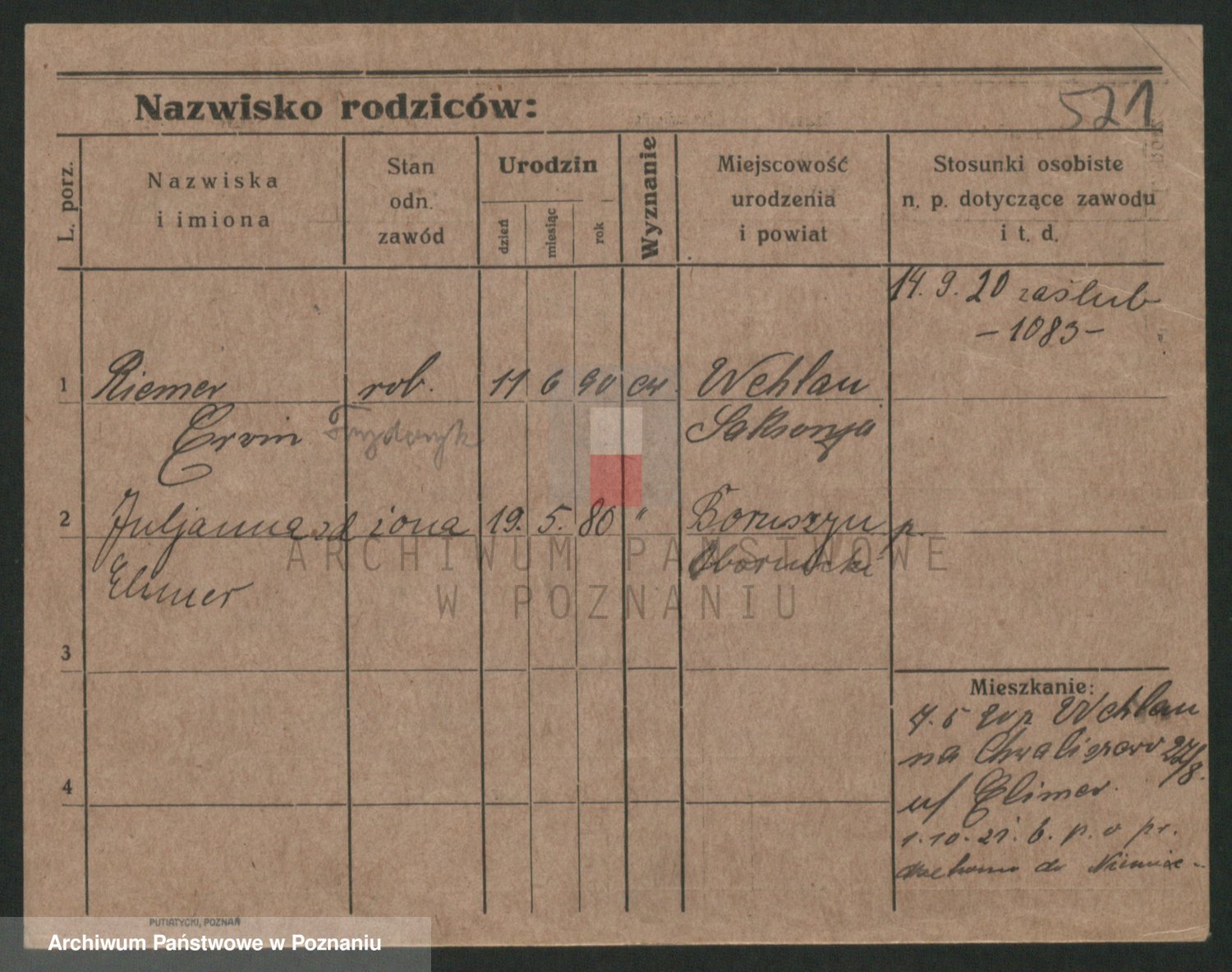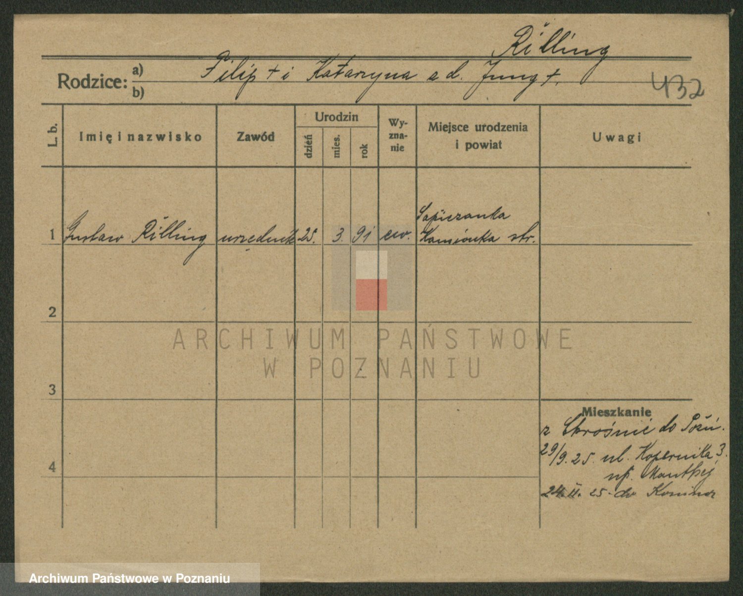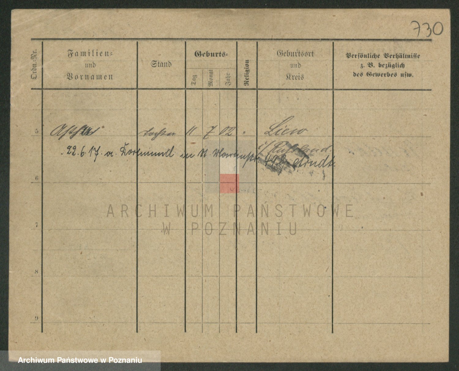 Podgląd karty osobowej dostępny jest po kliknięciu na nazwisko lub ikonkę karty. Można dokonywać powiększenia (ikony na górze) lub przechodzić między kolejnymi skanami (strzałki po bokach).