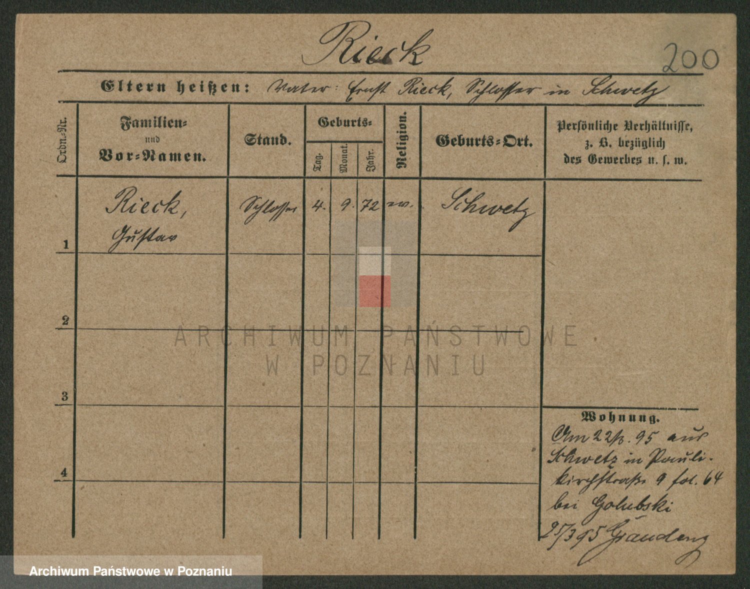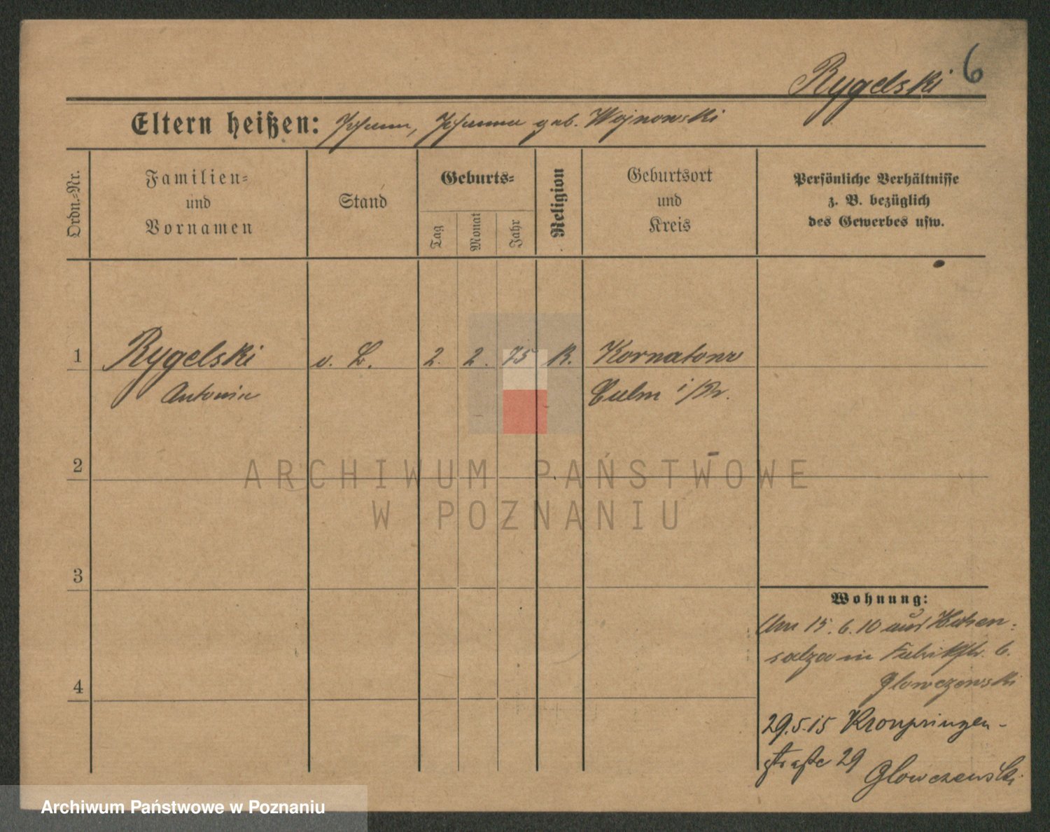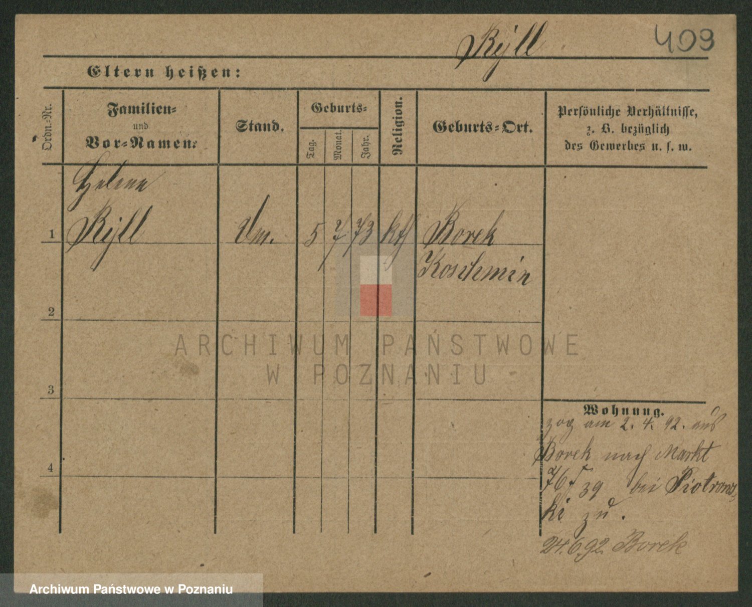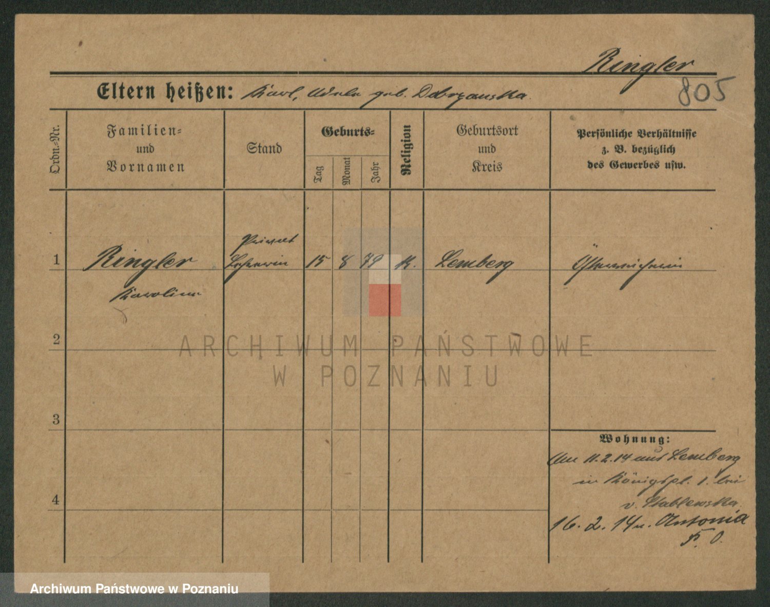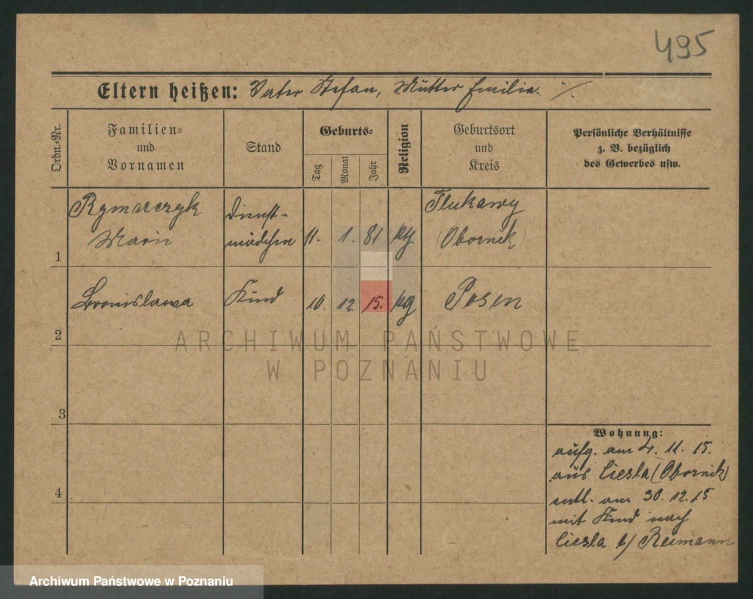 Podgląd karty osobowej dostępny jest po kliknięciu na nazwisko lub ikonkę karty. Można dokonywać powiększenia (ikony na górze) lub przechodzić między kolejnymi skanami (strzałki po bokach).
