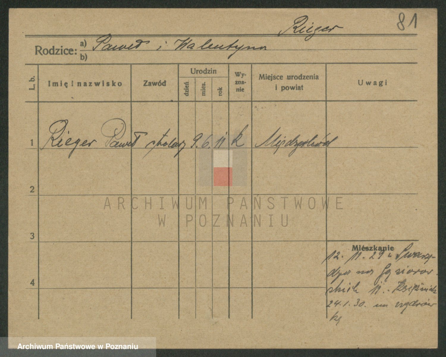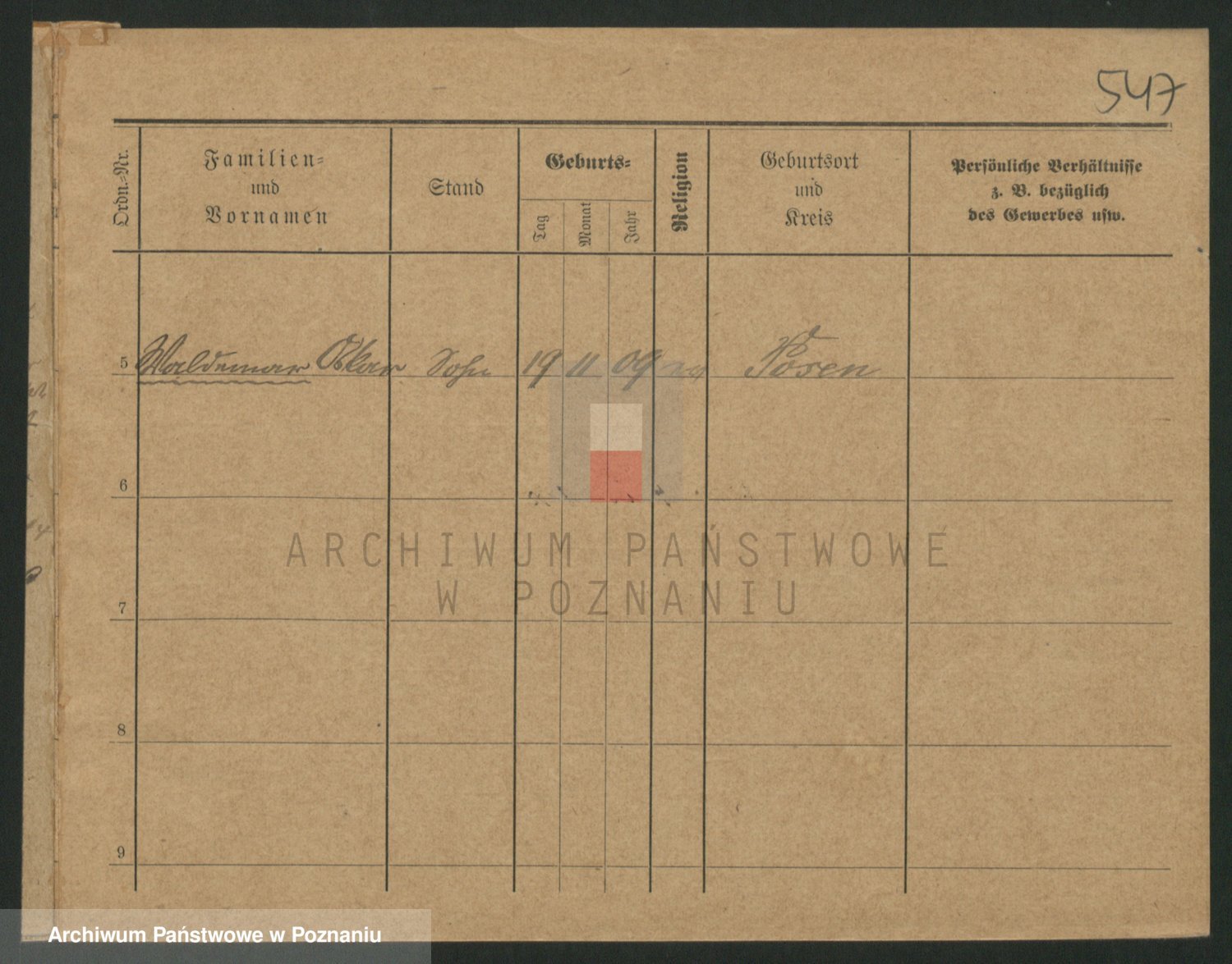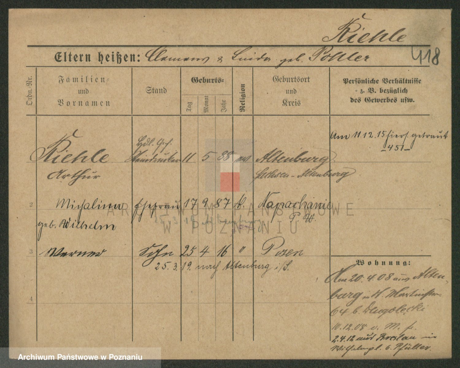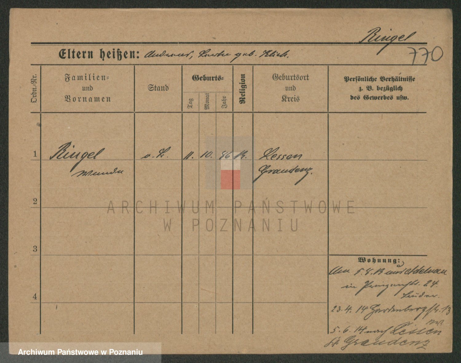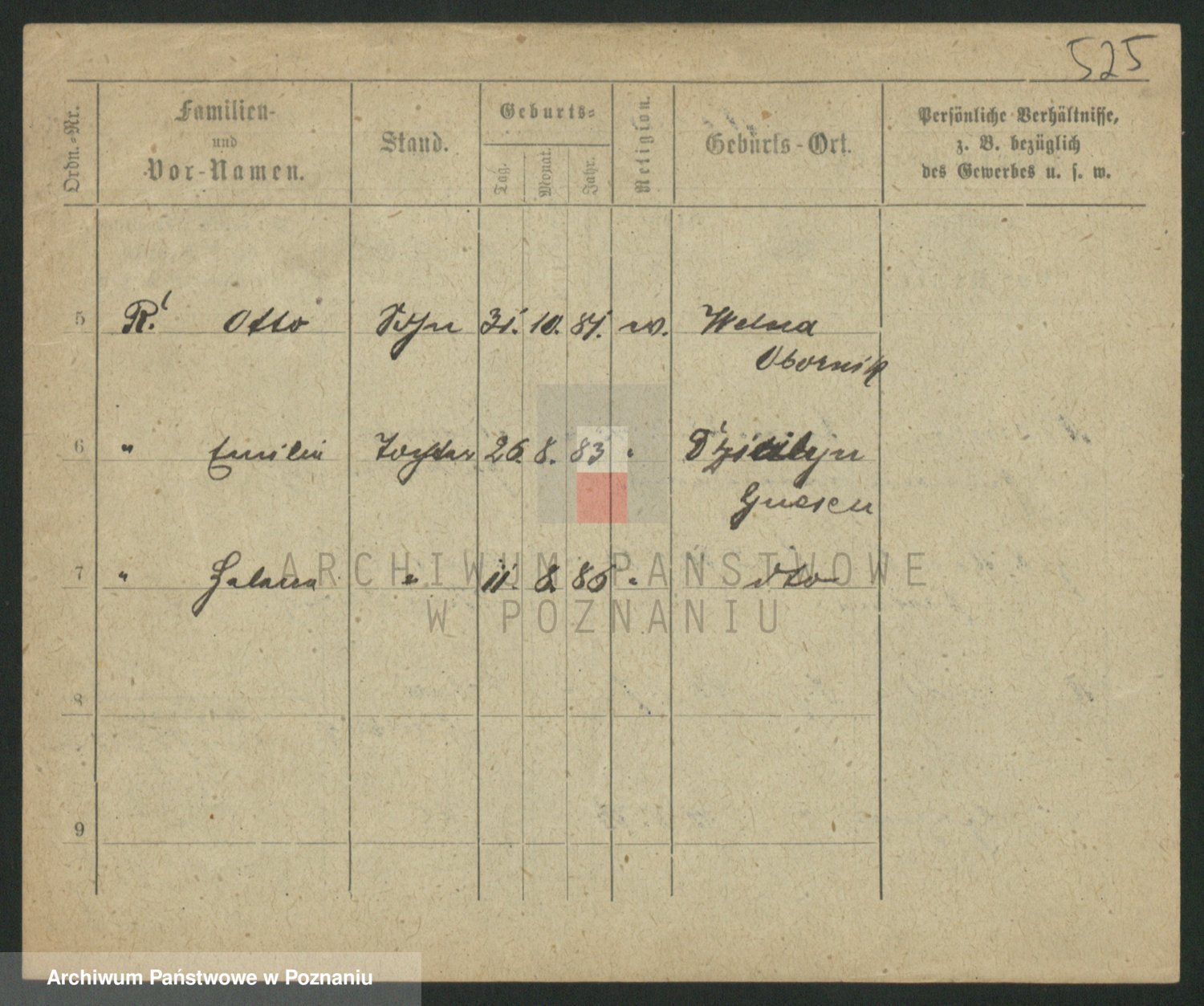 Podgląd karty osobowej dostępny jest po kliknięciu na nazwisko lub ikonkę karty. Można dokonywać powiększenia (ikony na górze) lub przechodzić między kolejnymi skanami (strzałki po bokach).