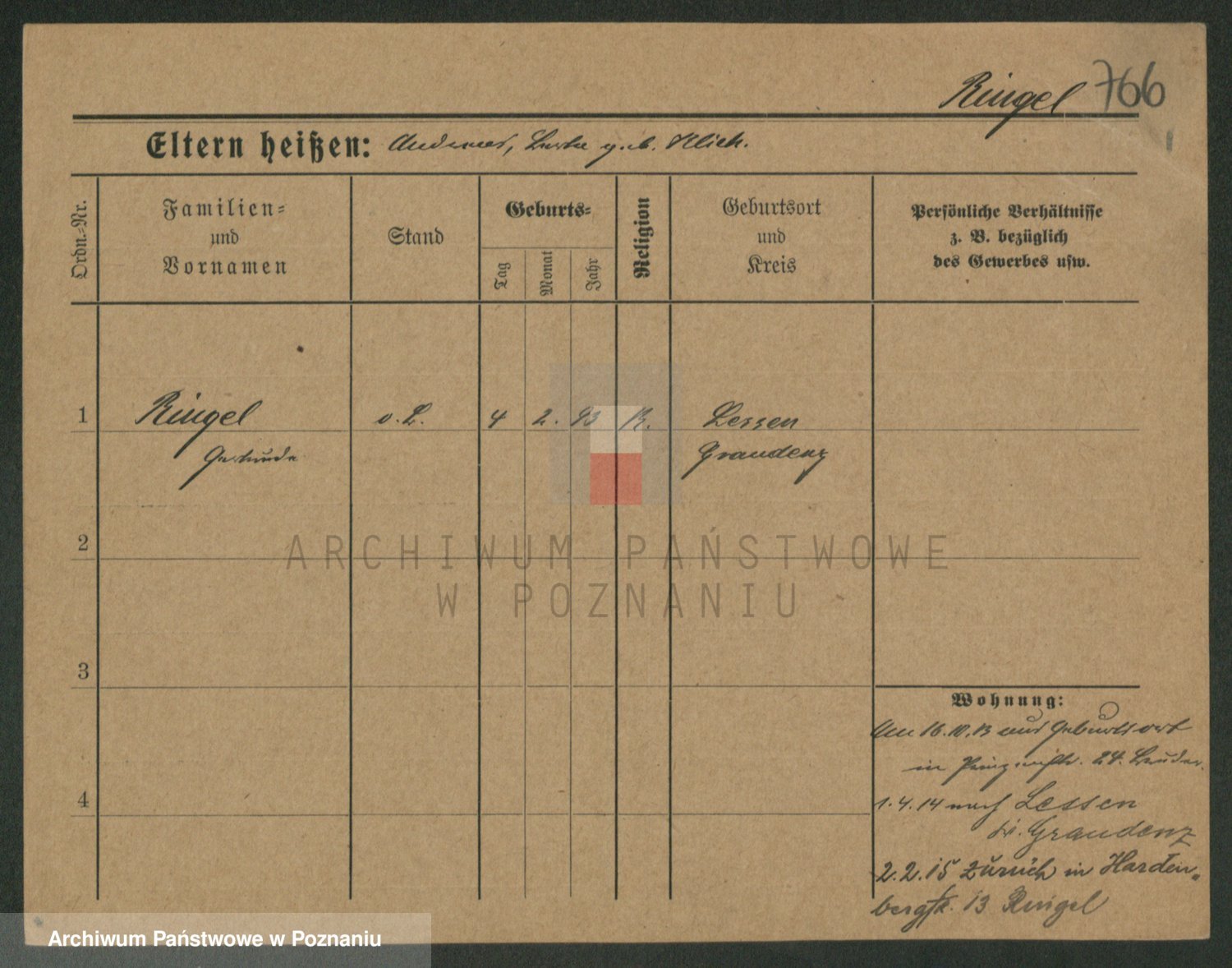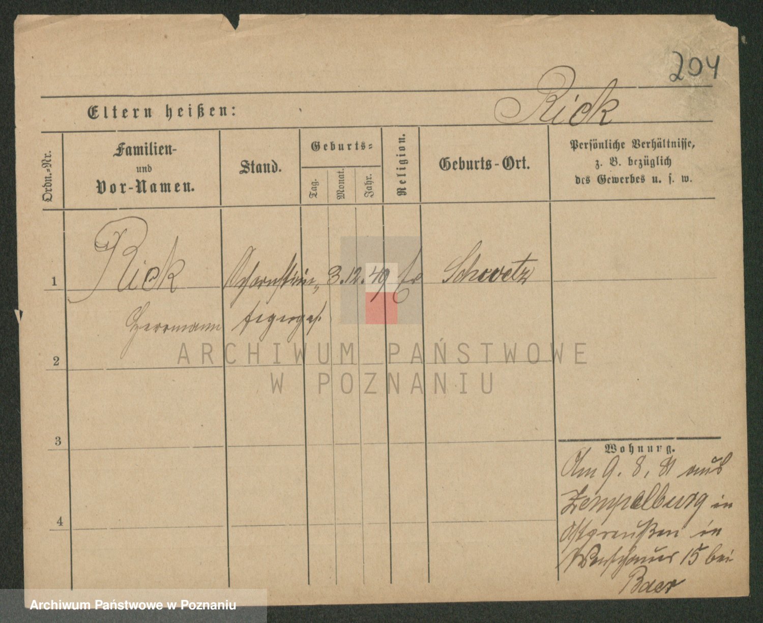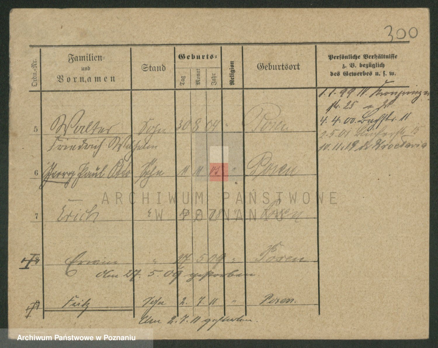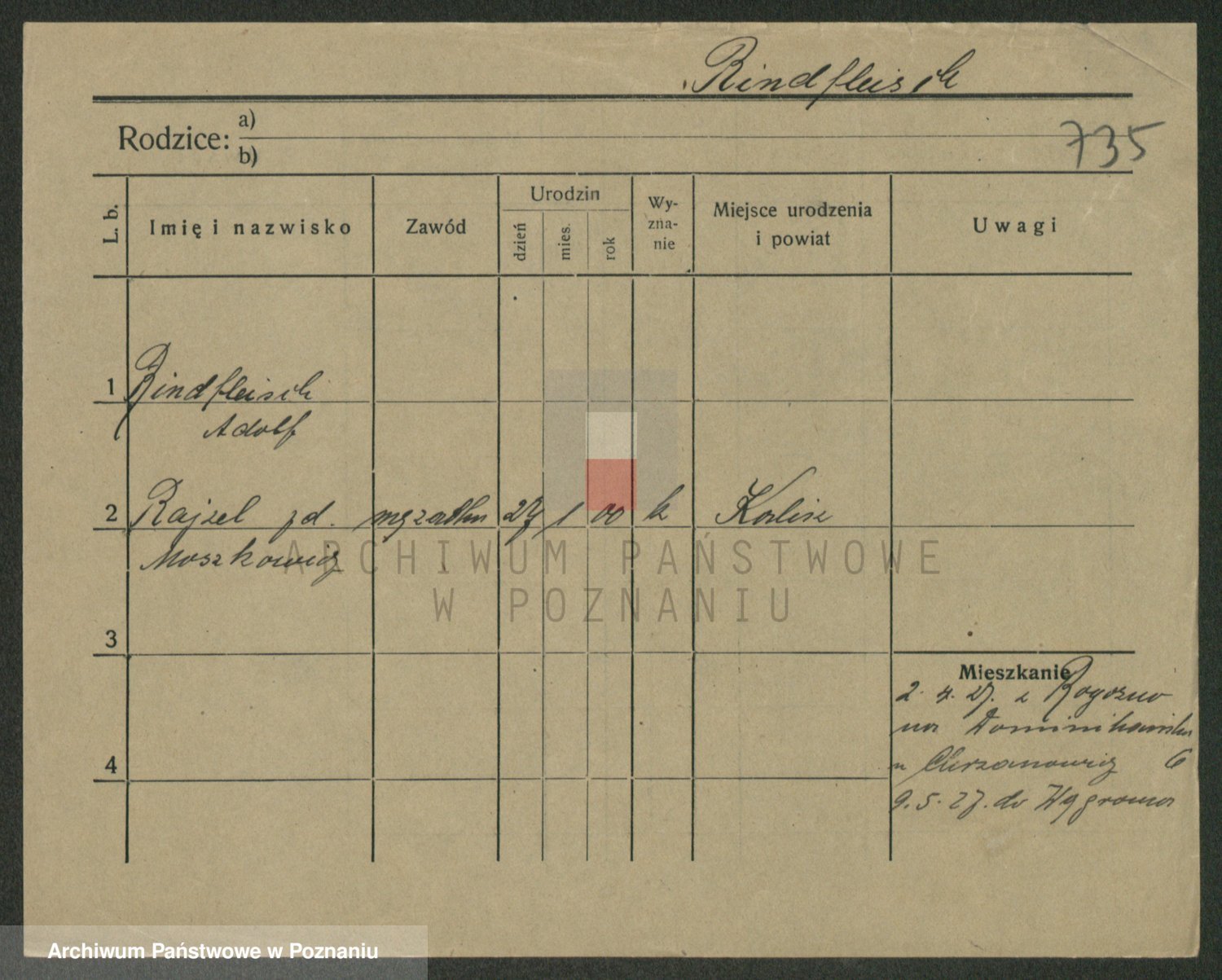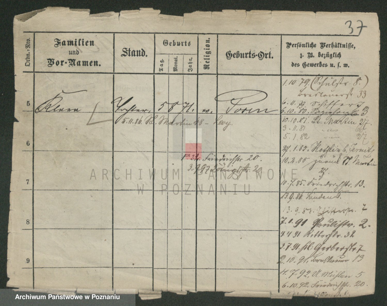 Podgląd karty osobowej dostępny jest po kliknięciu na nazwisko lub ikonkę karty. Można dokonywać powiększenia (ikony na górze) lub przechodzić między kolejnymi skanami (strzałki po bokach).