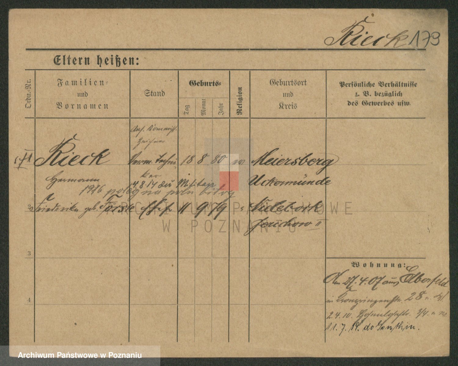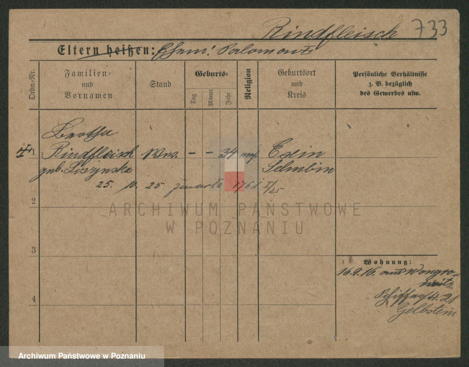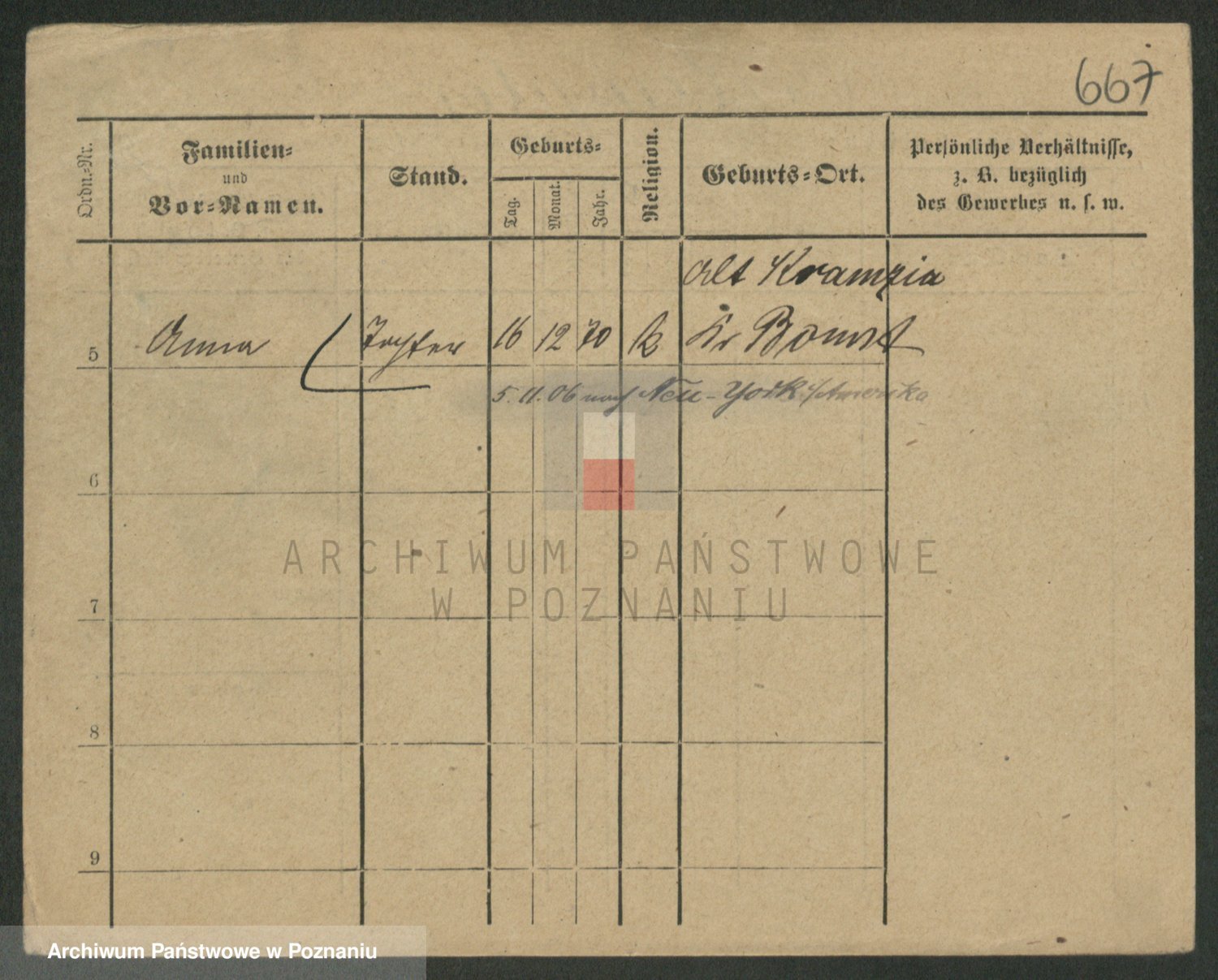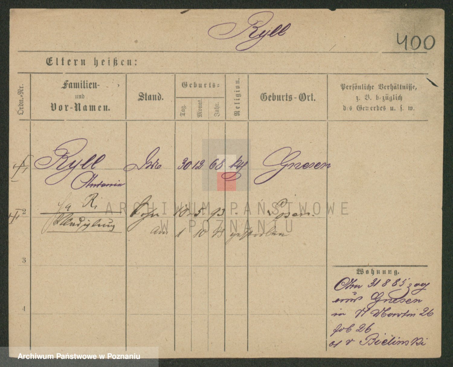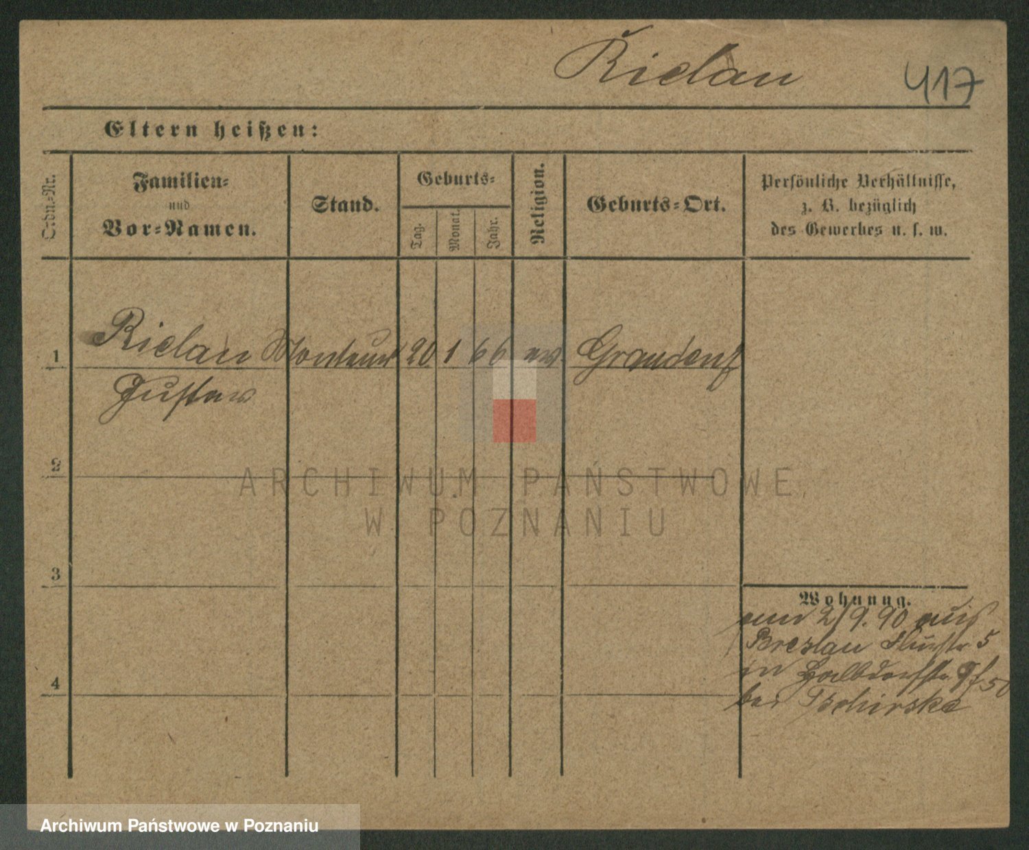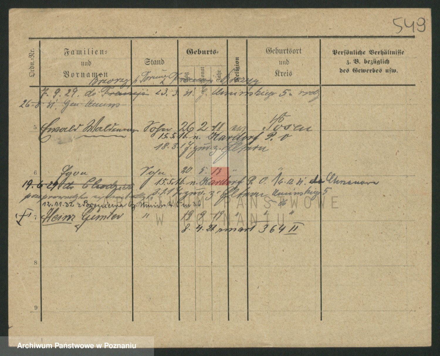Podgląd karty osobowej dostępny jest po kliknięciu na nazwisko lub ikonkę karty. Można dokonywać powiększenia (ikony na górze) lub przechodzić między kolejnymi skanami (strzałki po bokach).