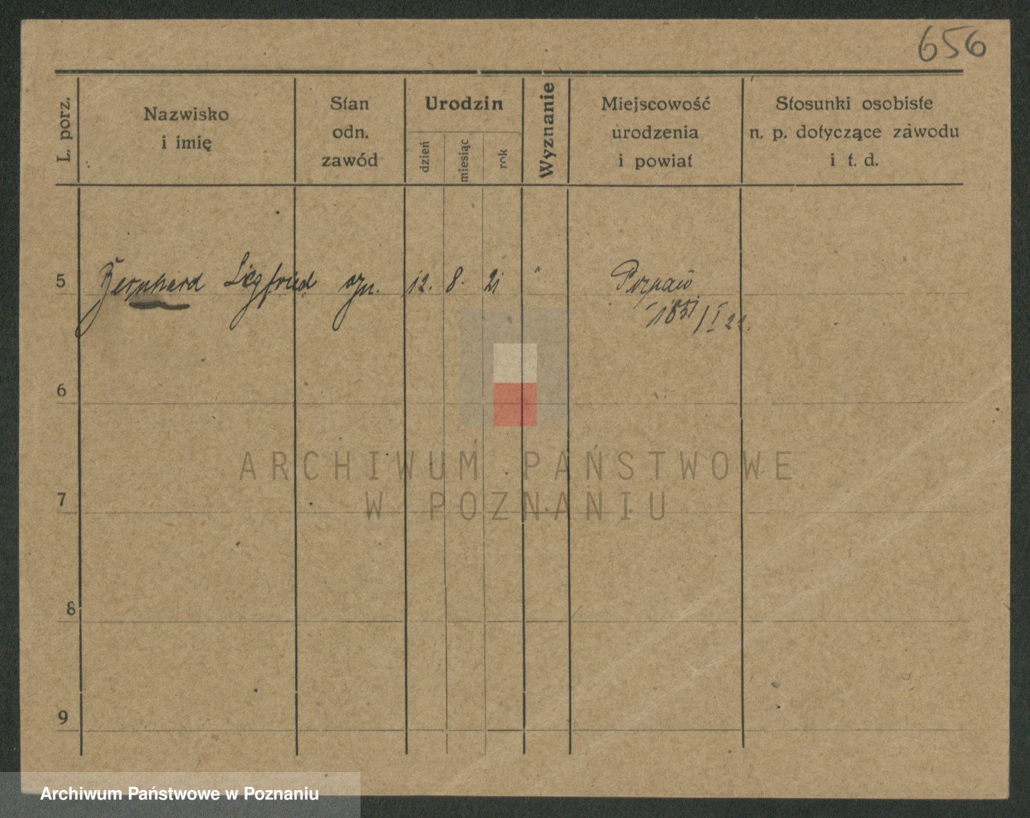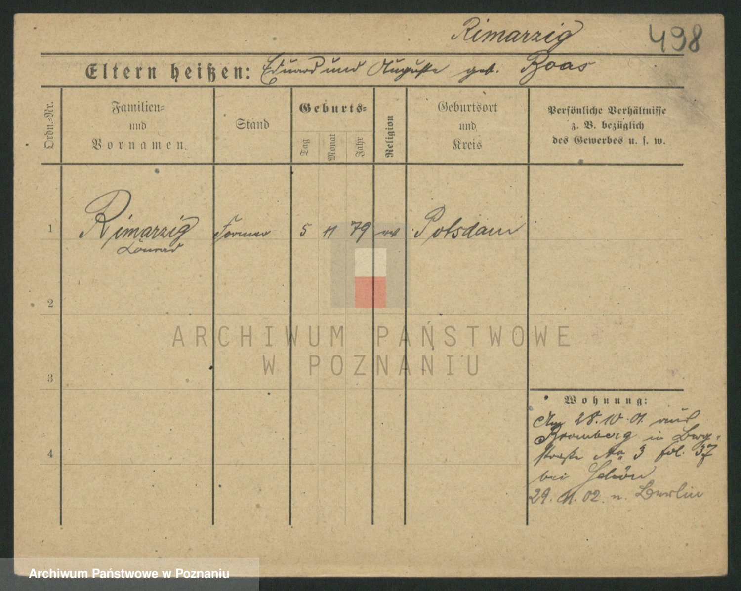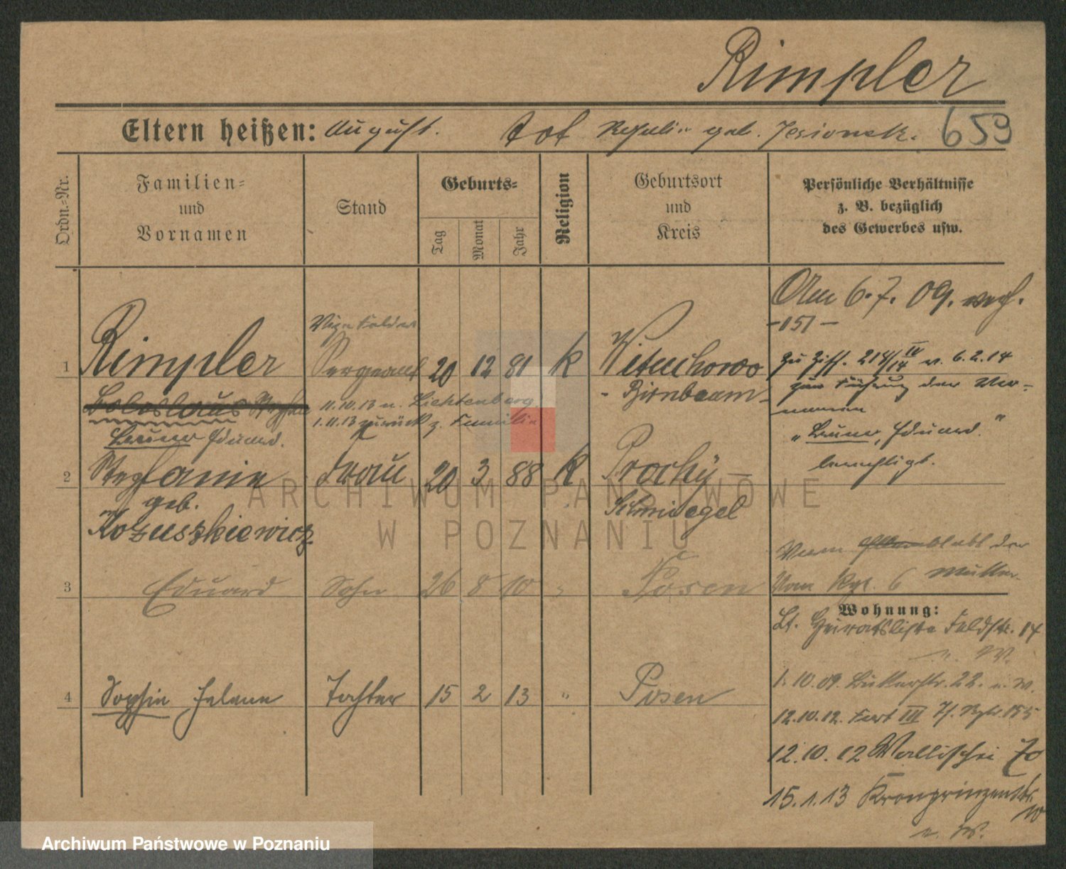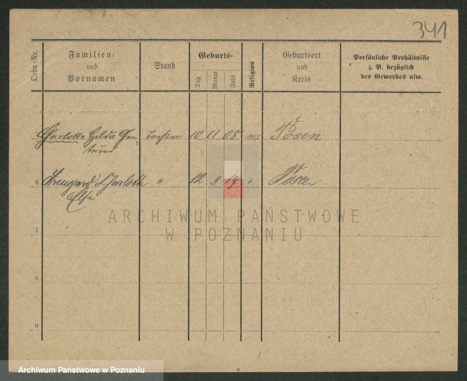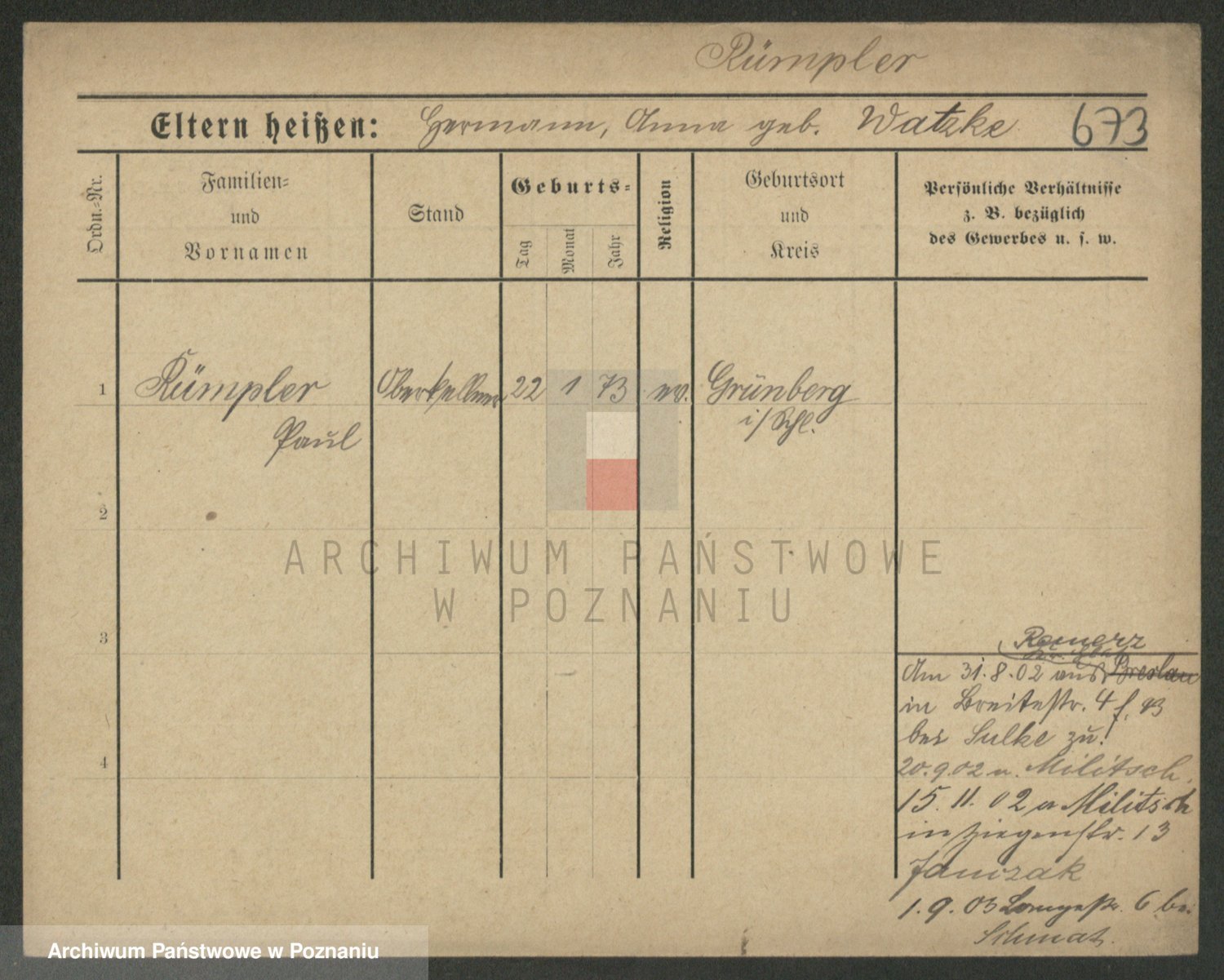 Podgląd karty osobowej dostępny jest po kliknięciu na nazwisko lub ikonkę karty. Można dokonywać powiększenia (ikony na górze) lub przechodzić między kolejnymi skanami (strzałki po bokach).