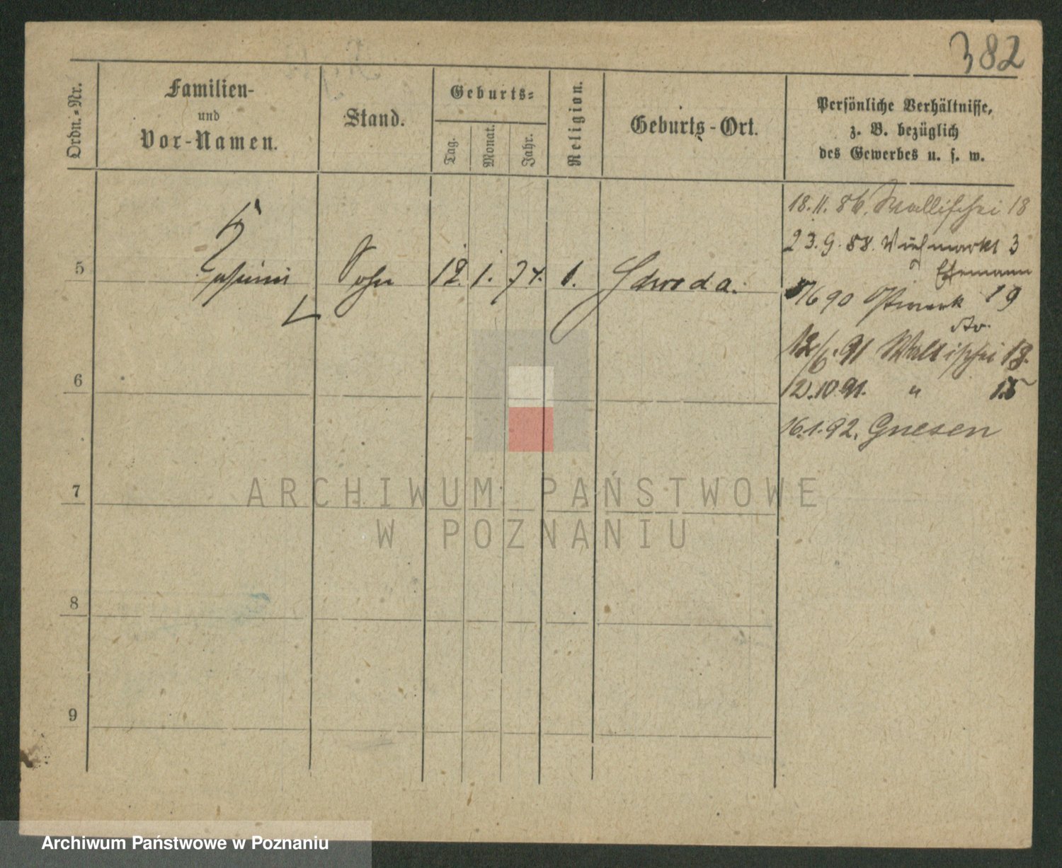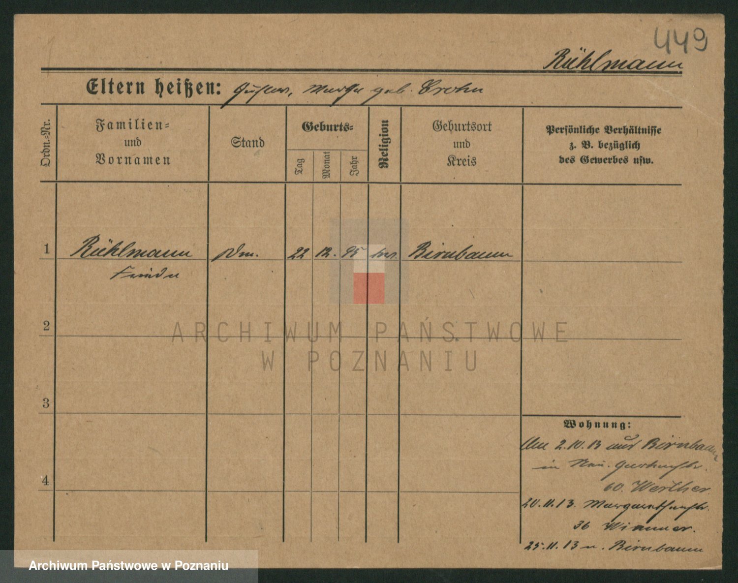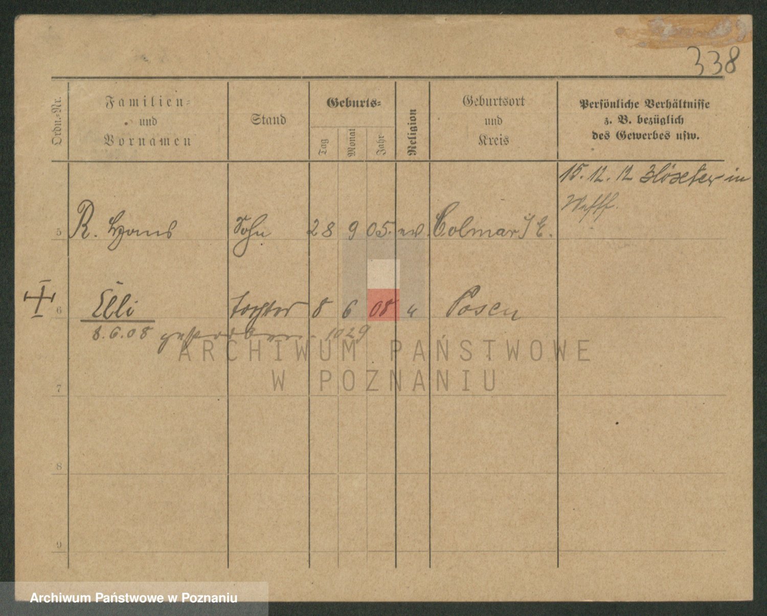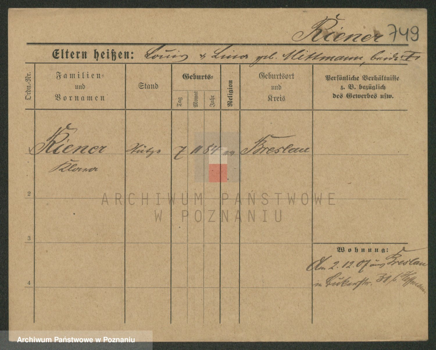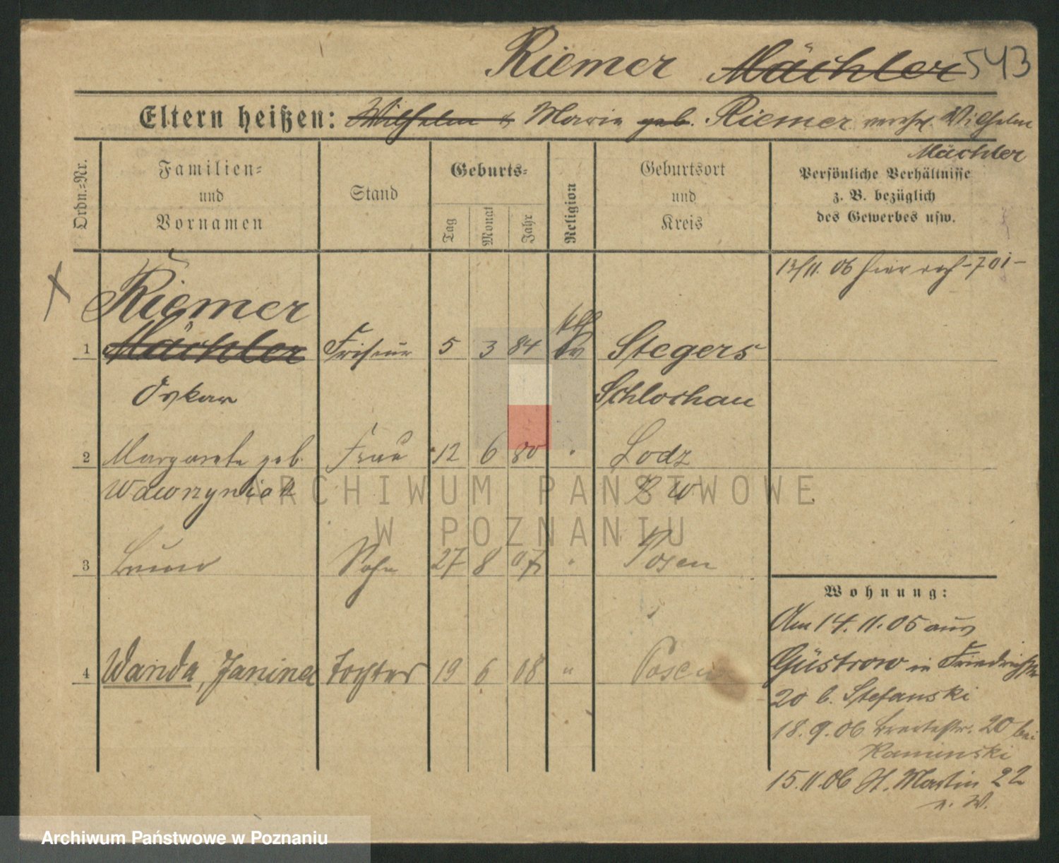 Podgląd karty osobowej dostępny jest po kliknięciu na nazwisko lub ikonkę karty. Można dokonywać powiększenia (ikony na górze) lub przechodzić między kolejnymi skanami (strzałki po bokach).