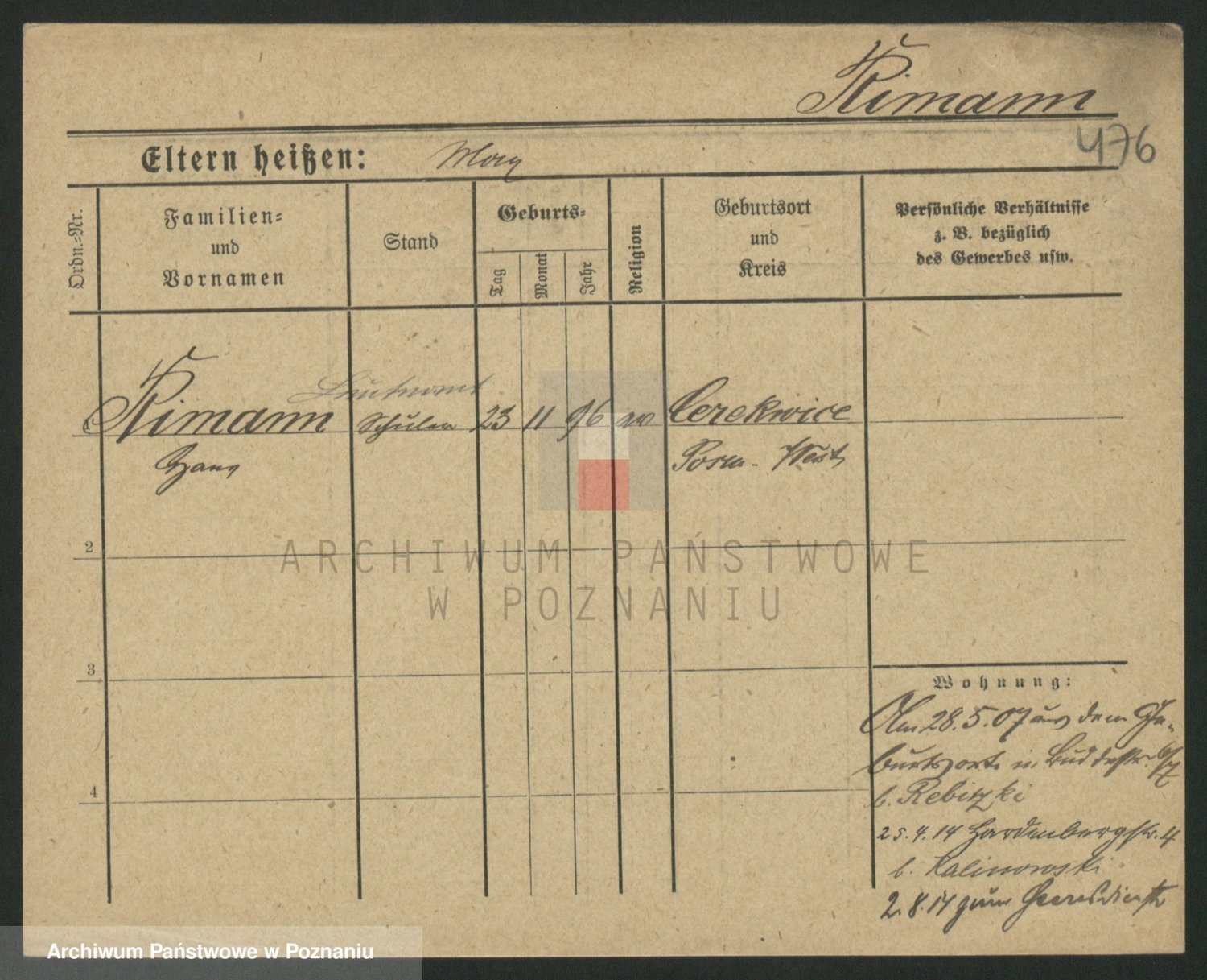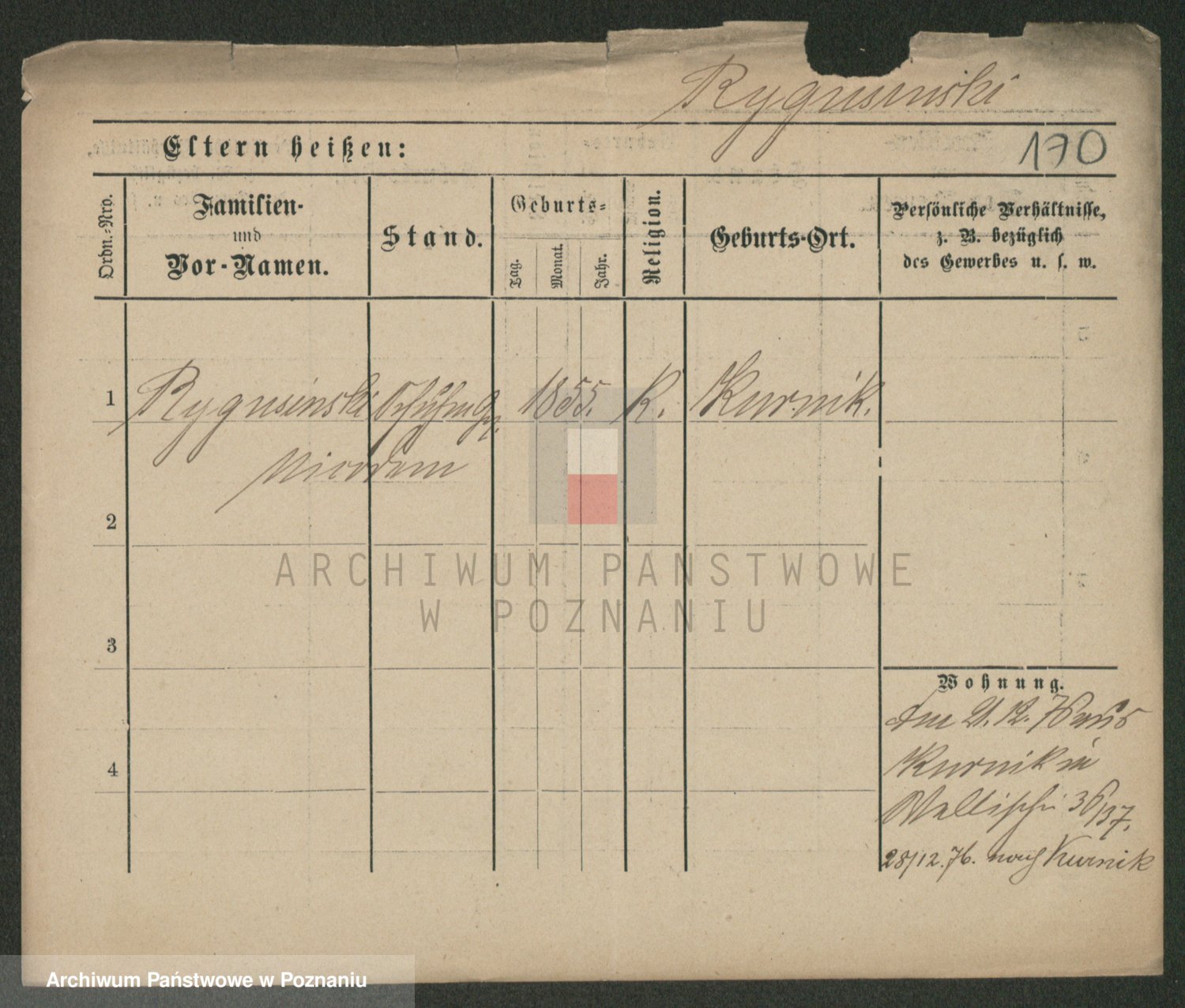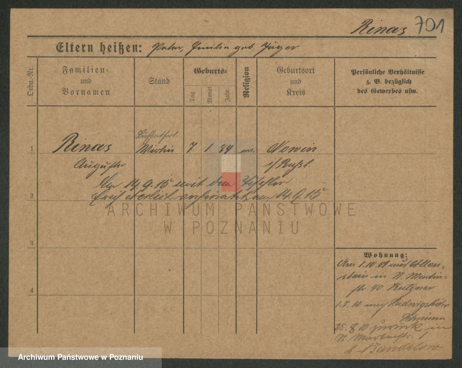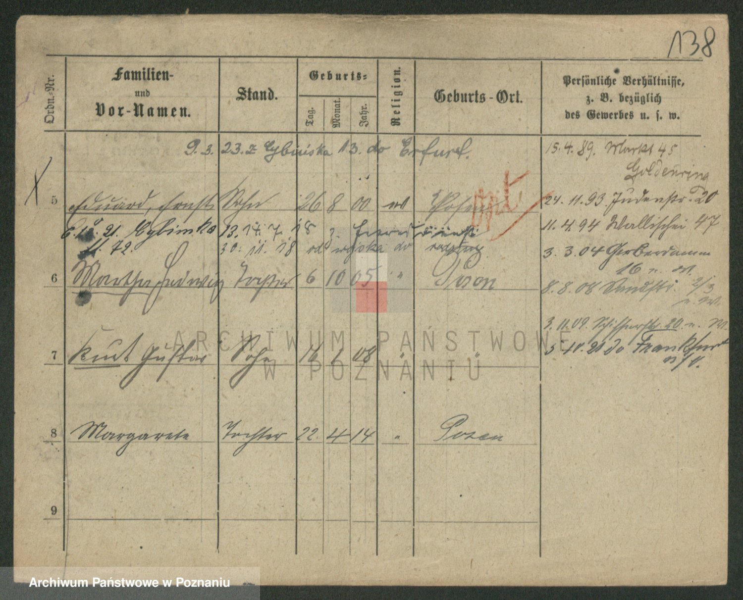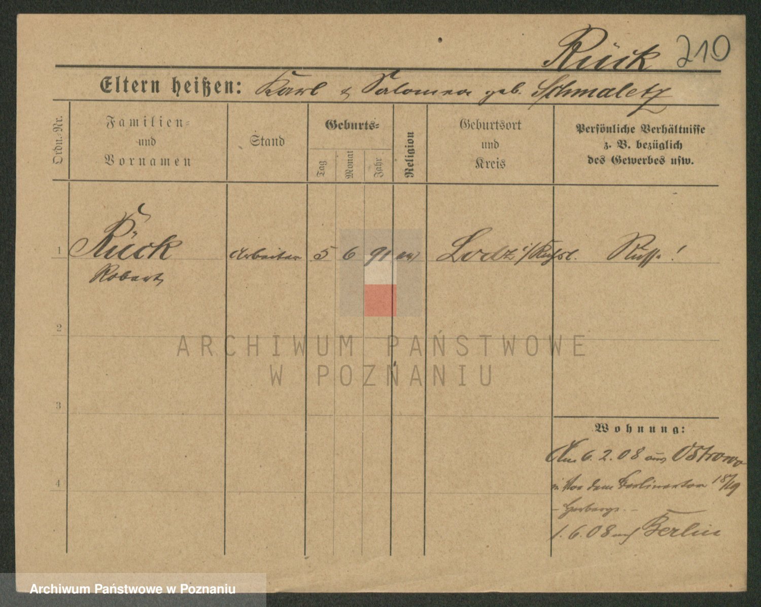 Podgląd karty osobowej dostępny jest po kliknięciu na nazwisko lub ikonkę karty. Można dokonywać powiększenia (ikony na górze) lub przechodzić między kolejnymi skanami (strzałki po bokach).