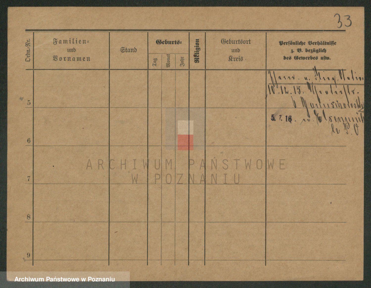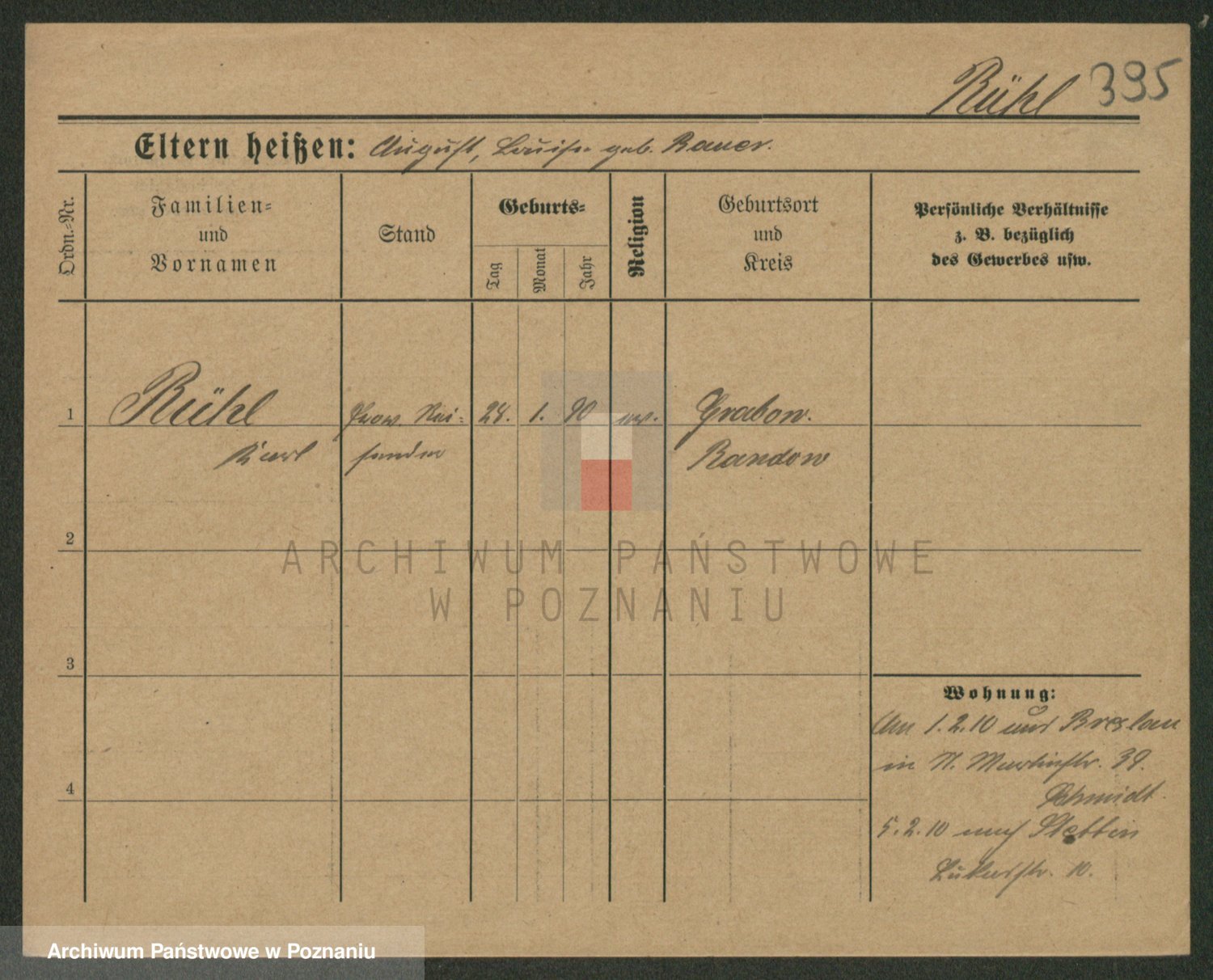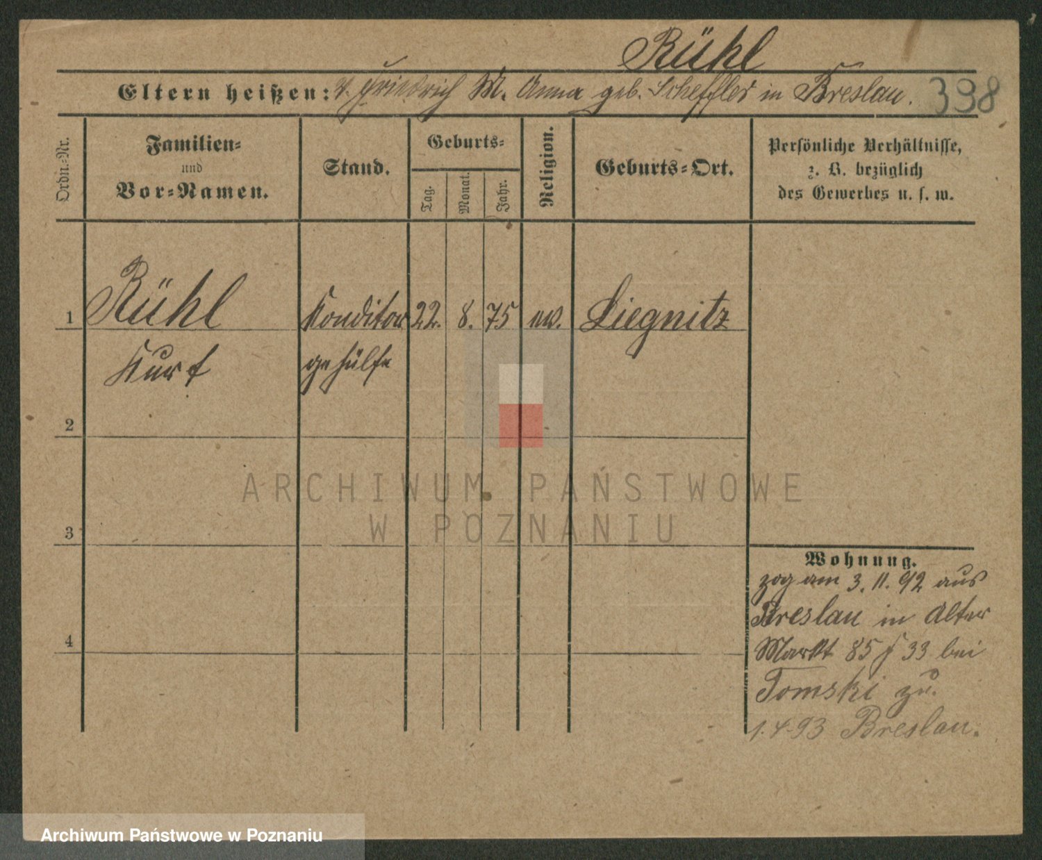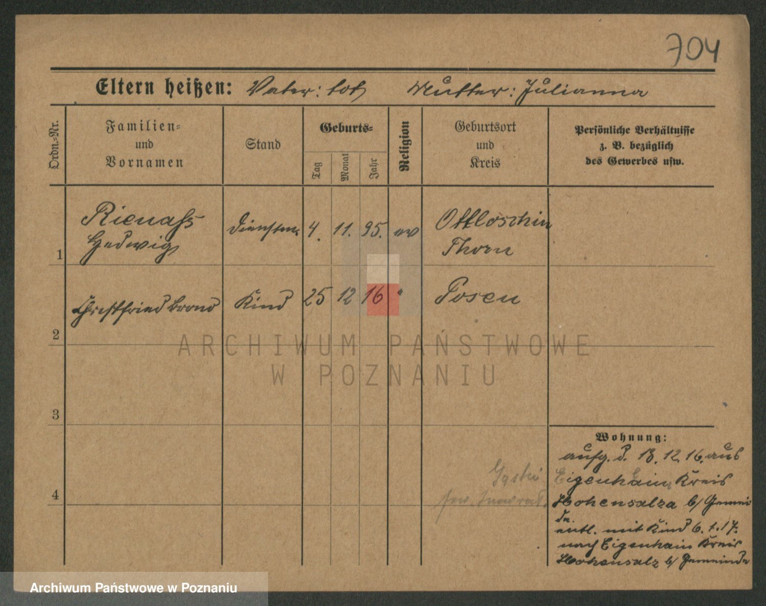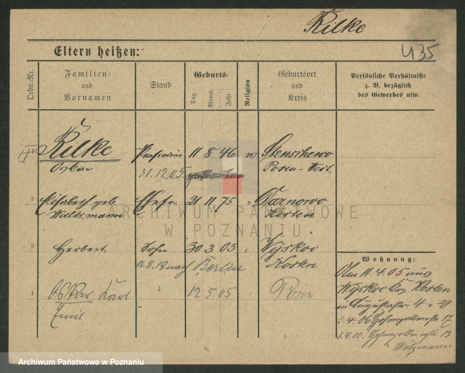 Podgląd karty osobowej dostępny jest po kliknięciu na nazwisko lub ikonkę karty. Można dokonywać powiększenia (ikony na górze) lub przechodzić między kolejnymi skanami (strzałki po bokach).
