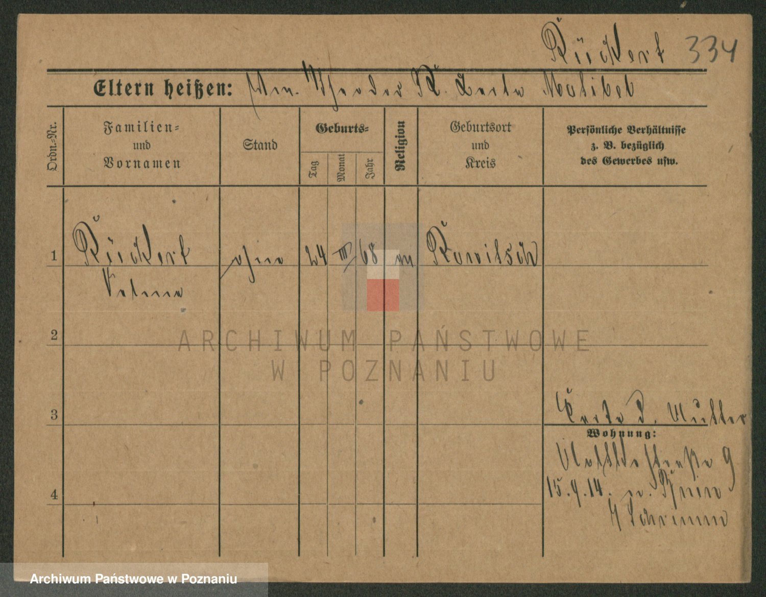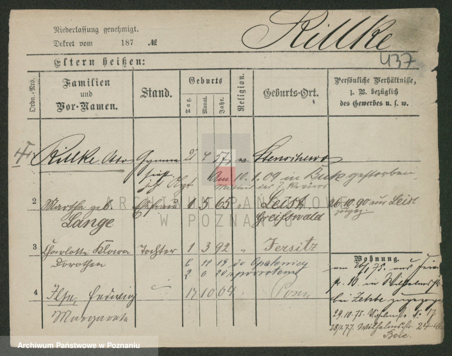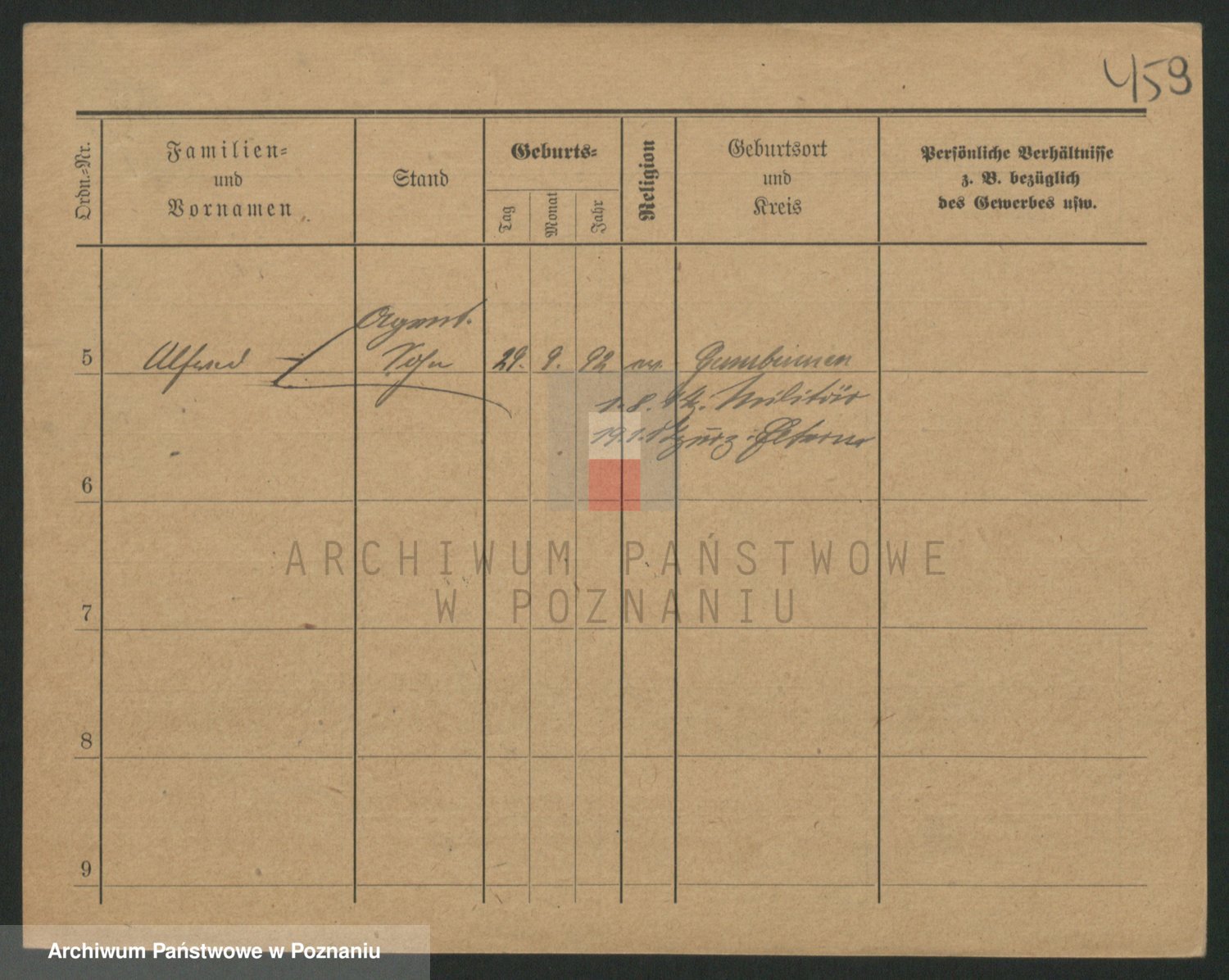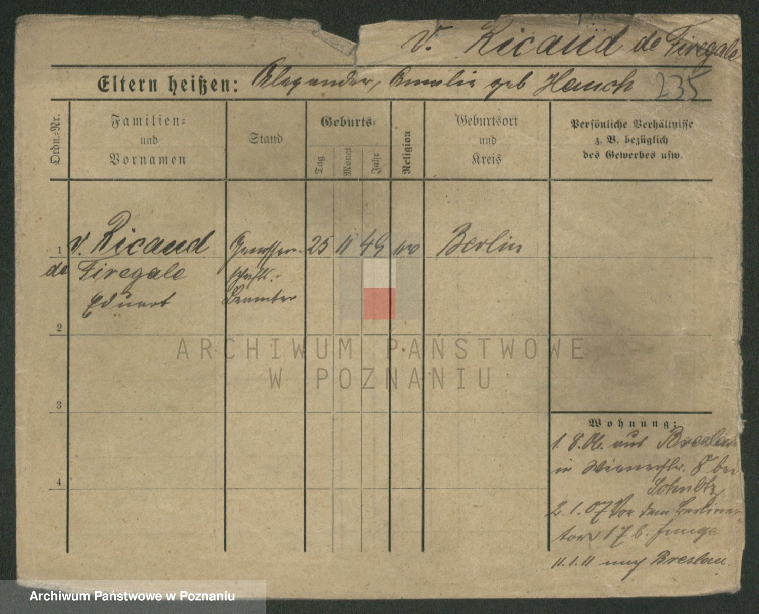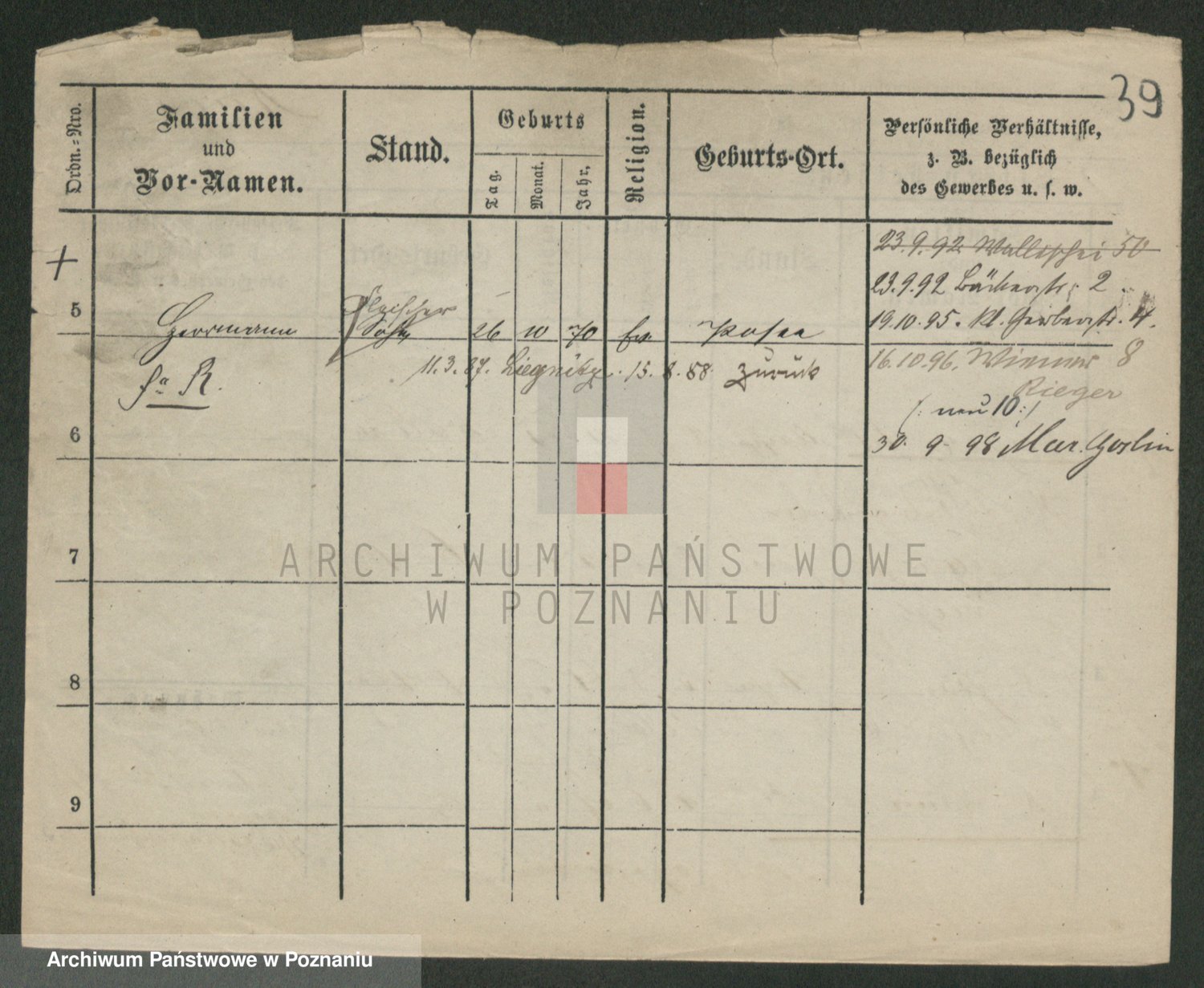 Podgląd karty osobowej dostępny jest po kliknięciu na nazwisko lub ikonkę karty. Można dokonywać powiększenia (ikony na górze) lub przechodzić między kolejnymi skanami (strzałki po bokach).