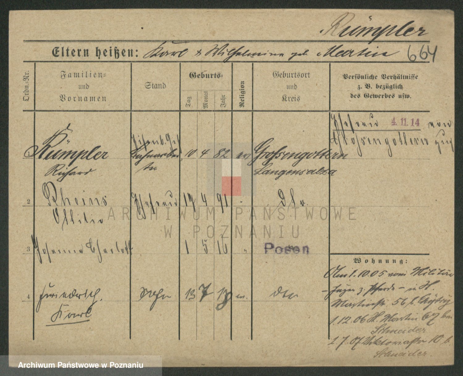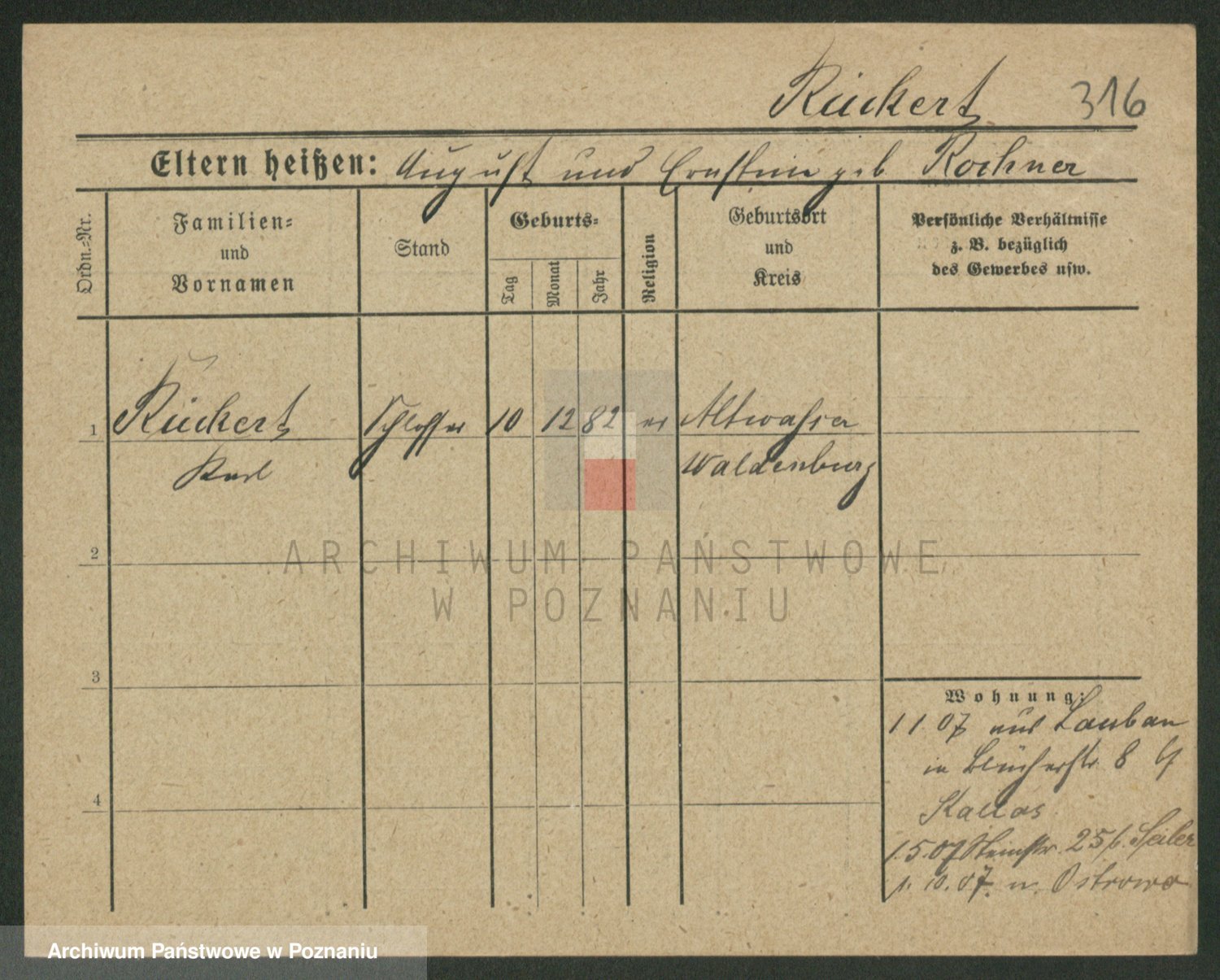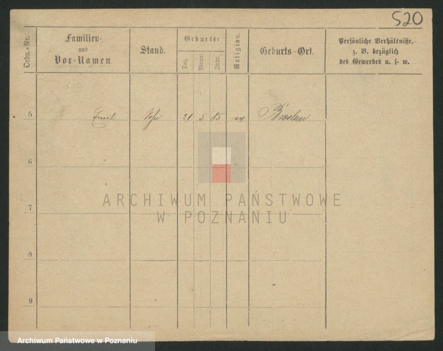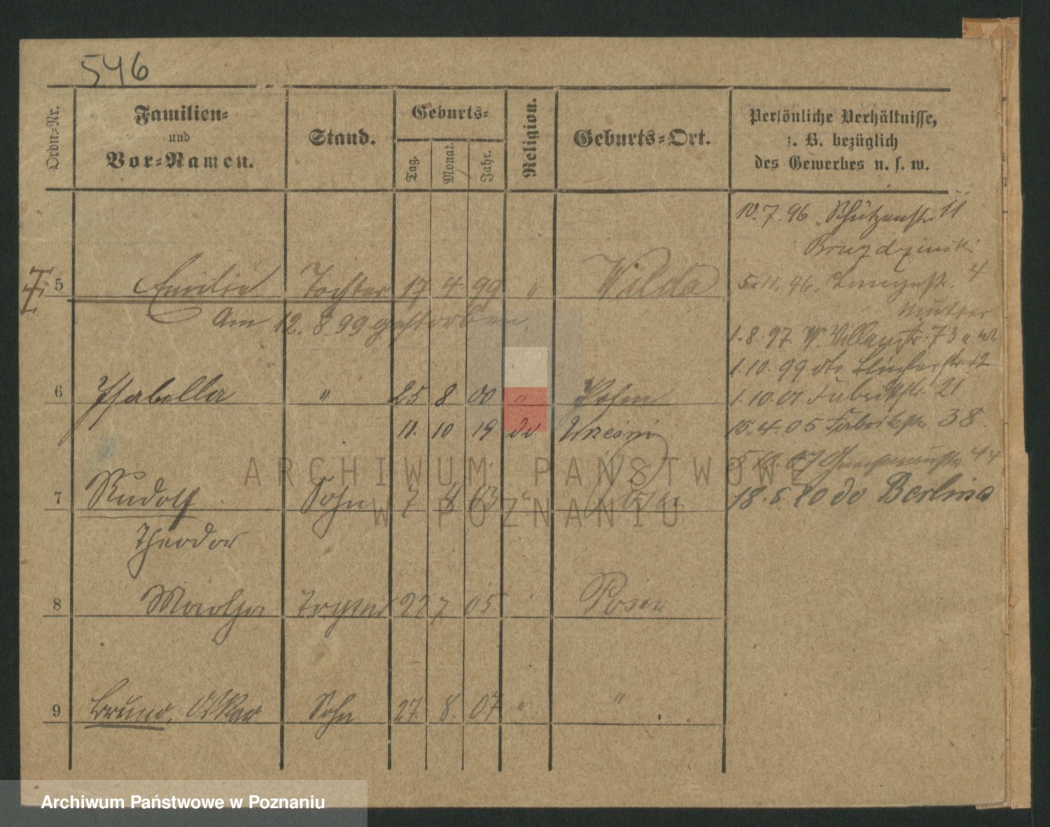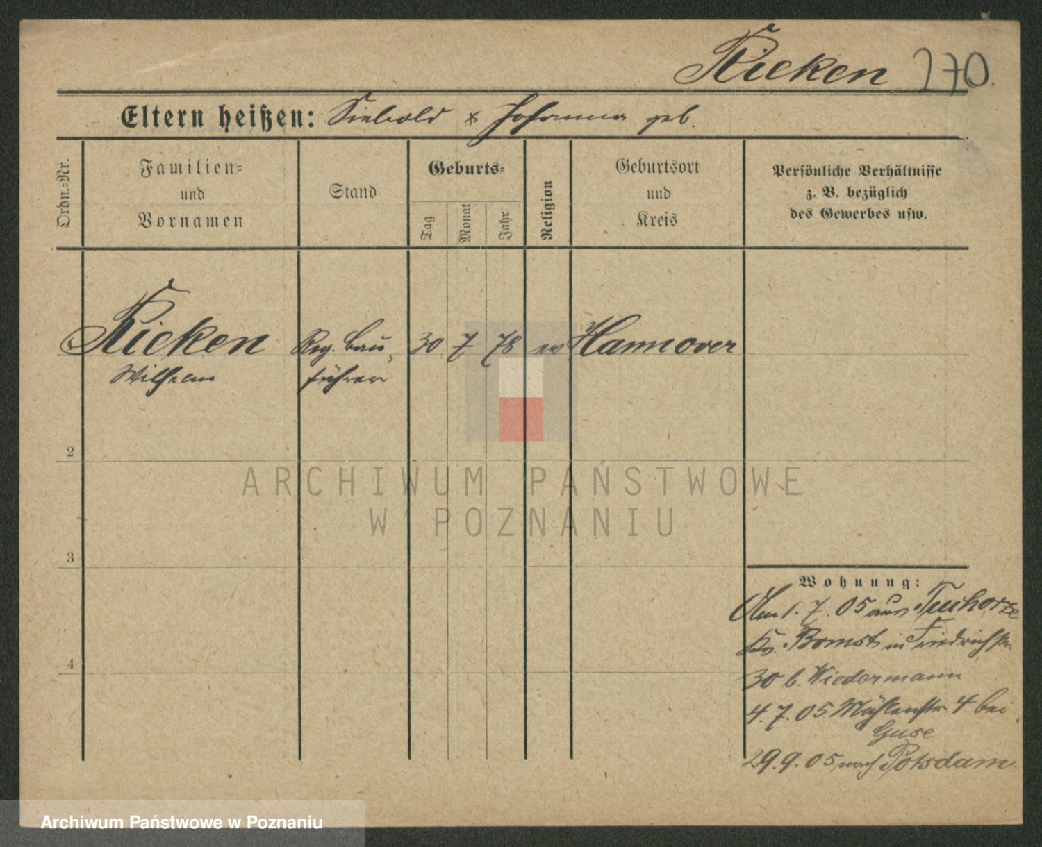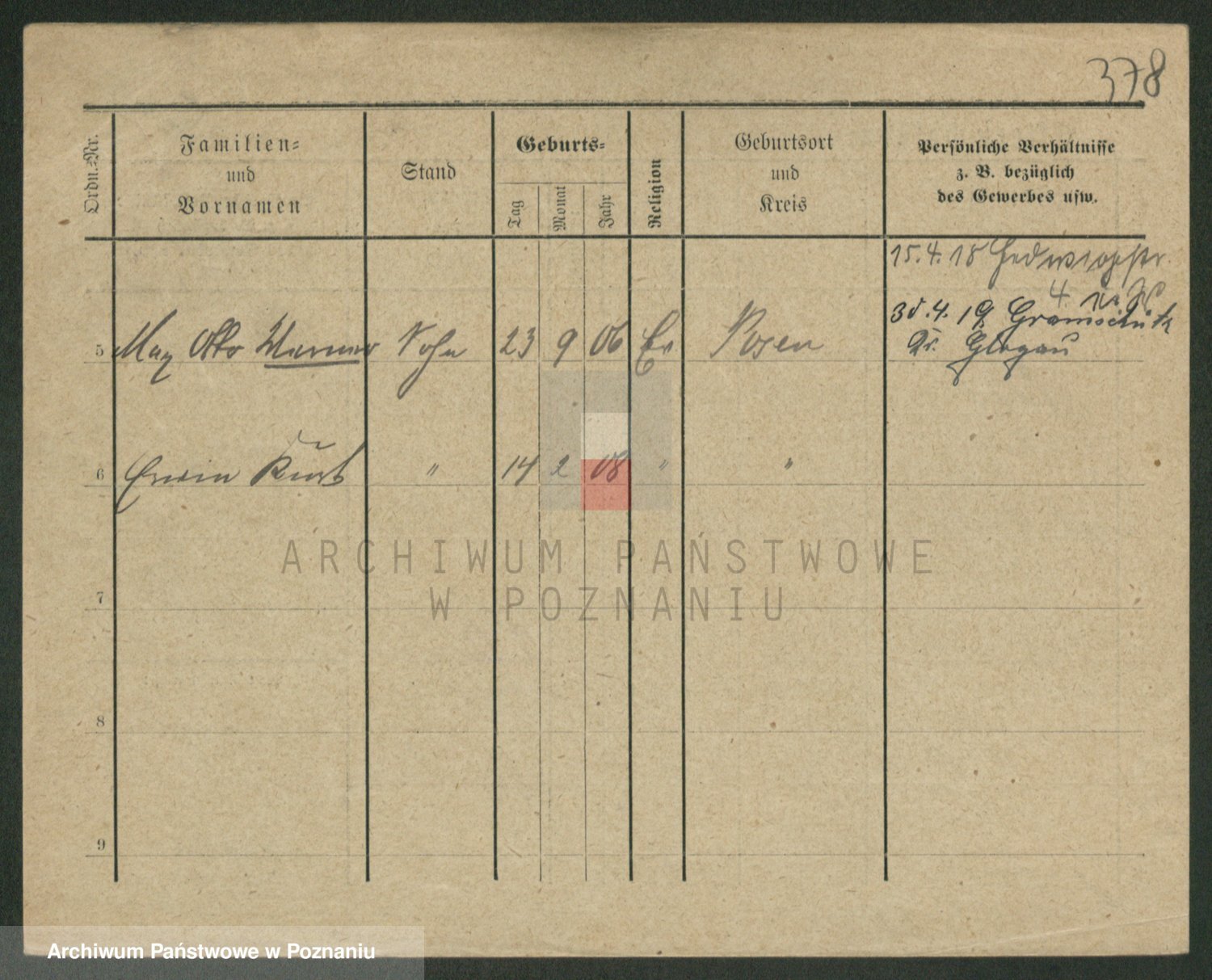 Podgląd karty osobowej dostępny jest po kliknięciu na nazwisko lub ikonkę karty. Można dokonywać powiększenia (ikony na górze) lub przechodzić między kolejnymi skanami (strzałki po bokach).