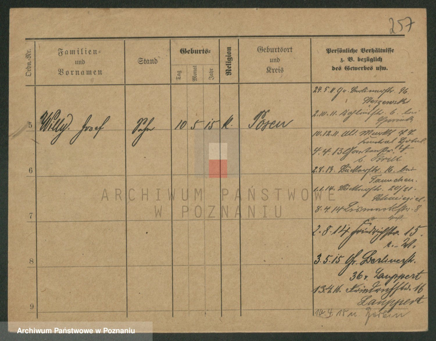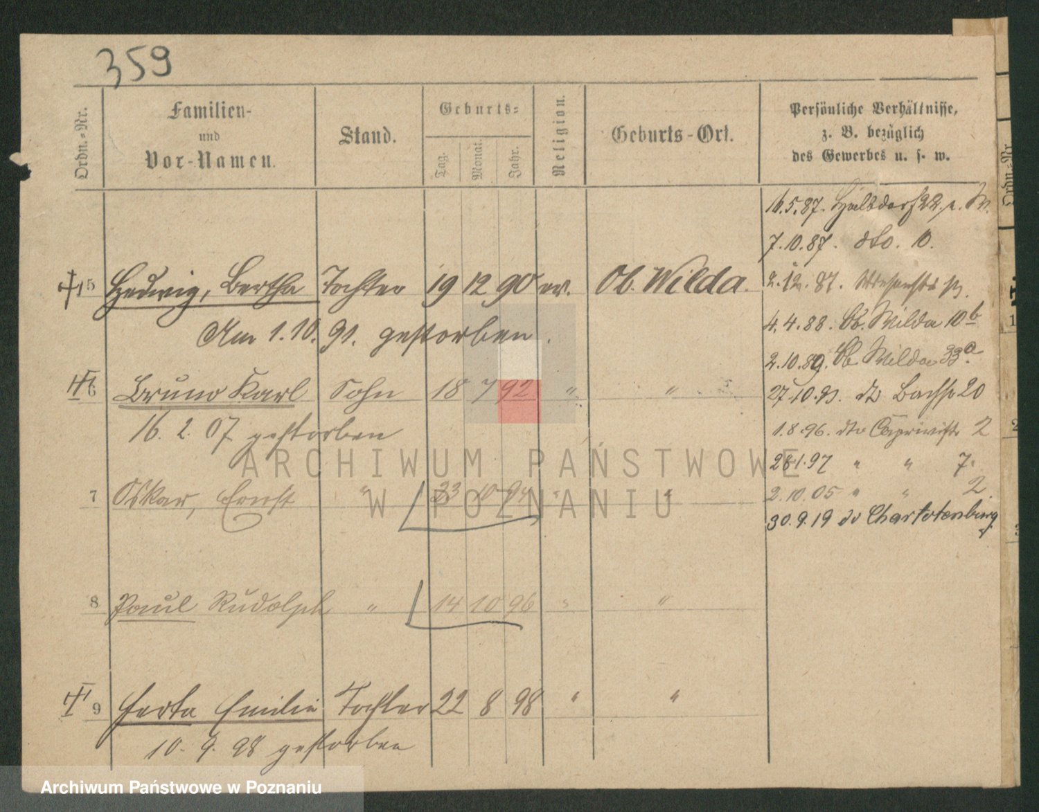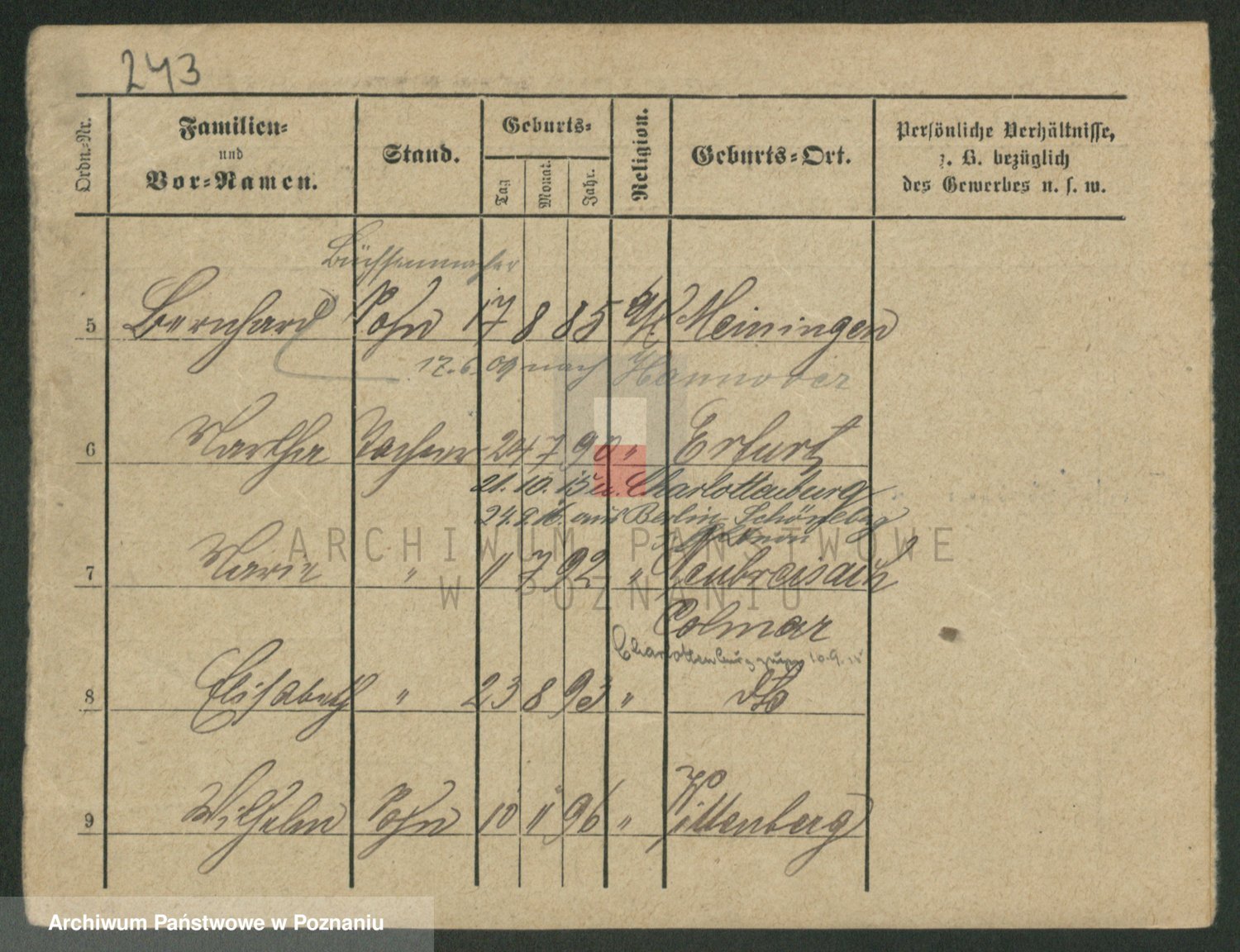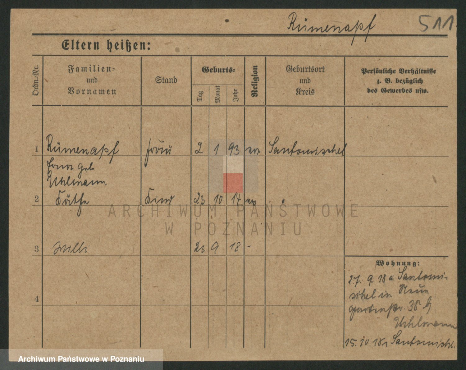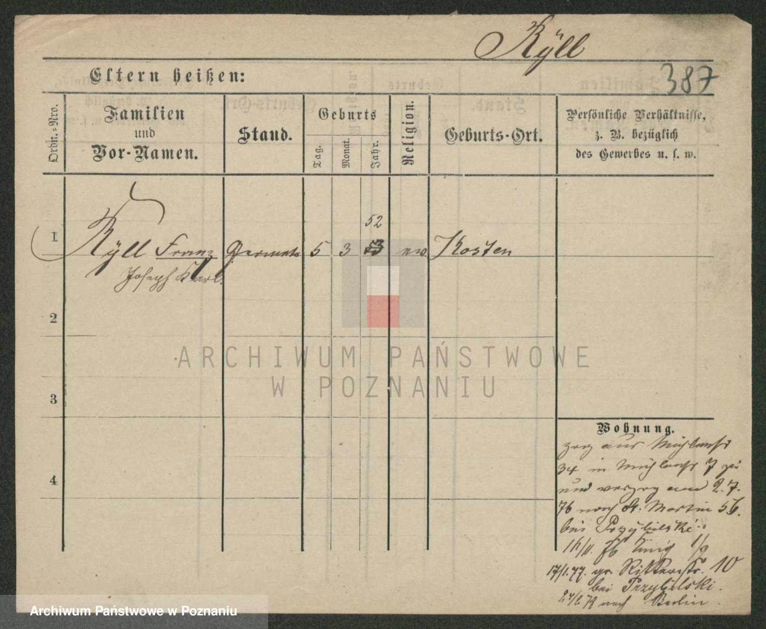 Podgląd karty osobowej dostępny jest po kliknięciu na nazwisko lub ikonkę karty. Można dokonywać powiększenia (ikony na górze) lub przechodzić między kolejnymi skanami (strzałki po bokach).