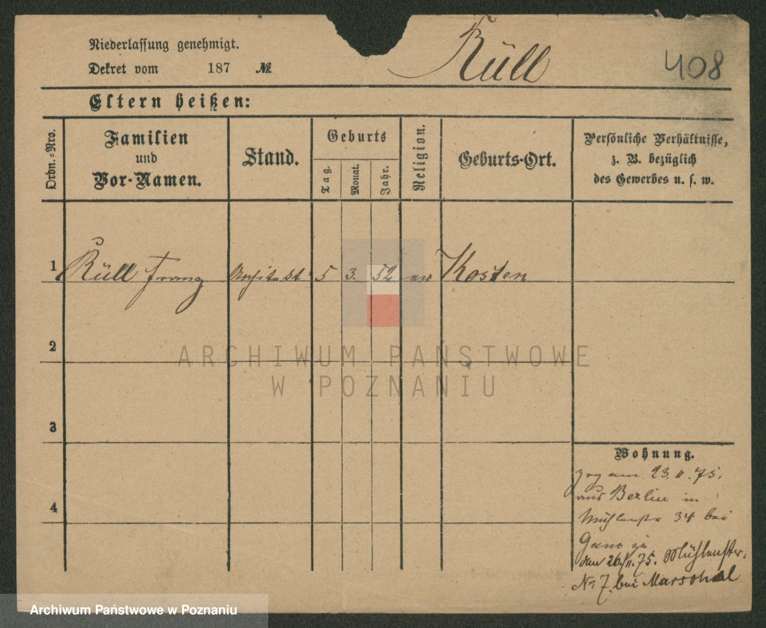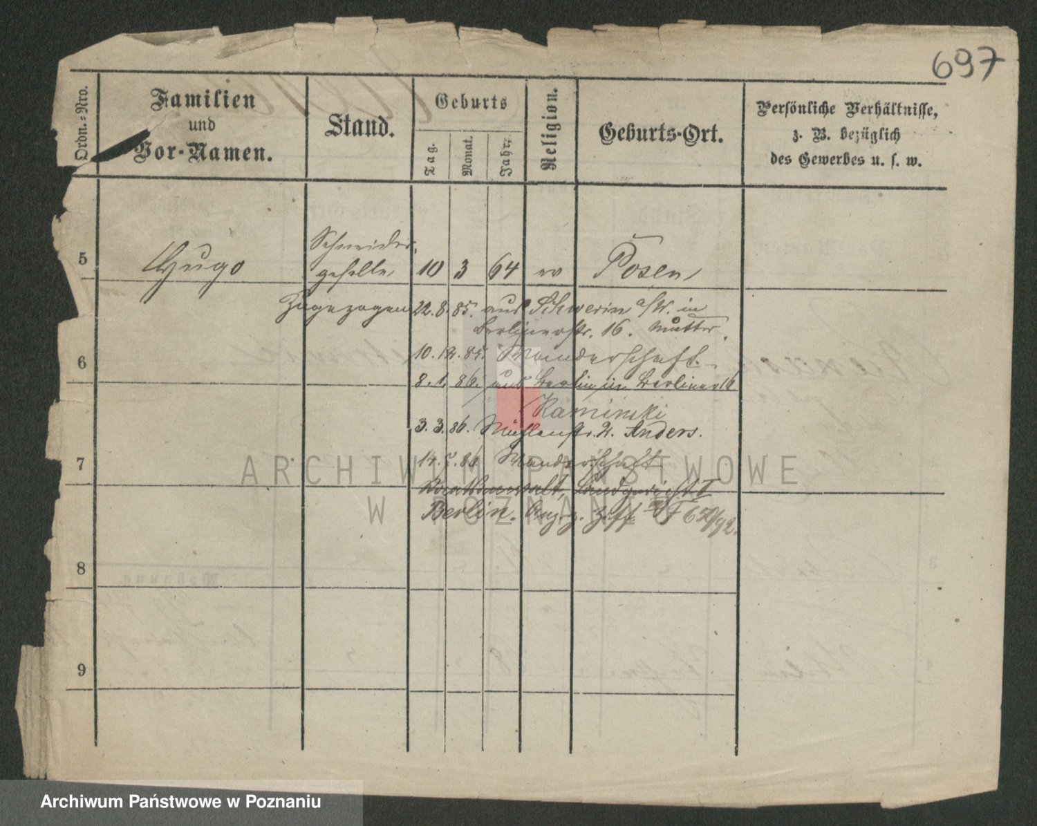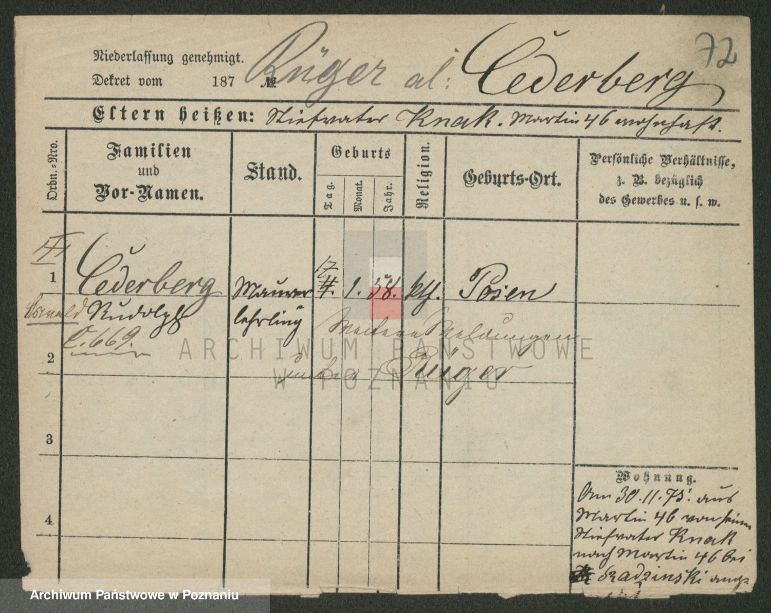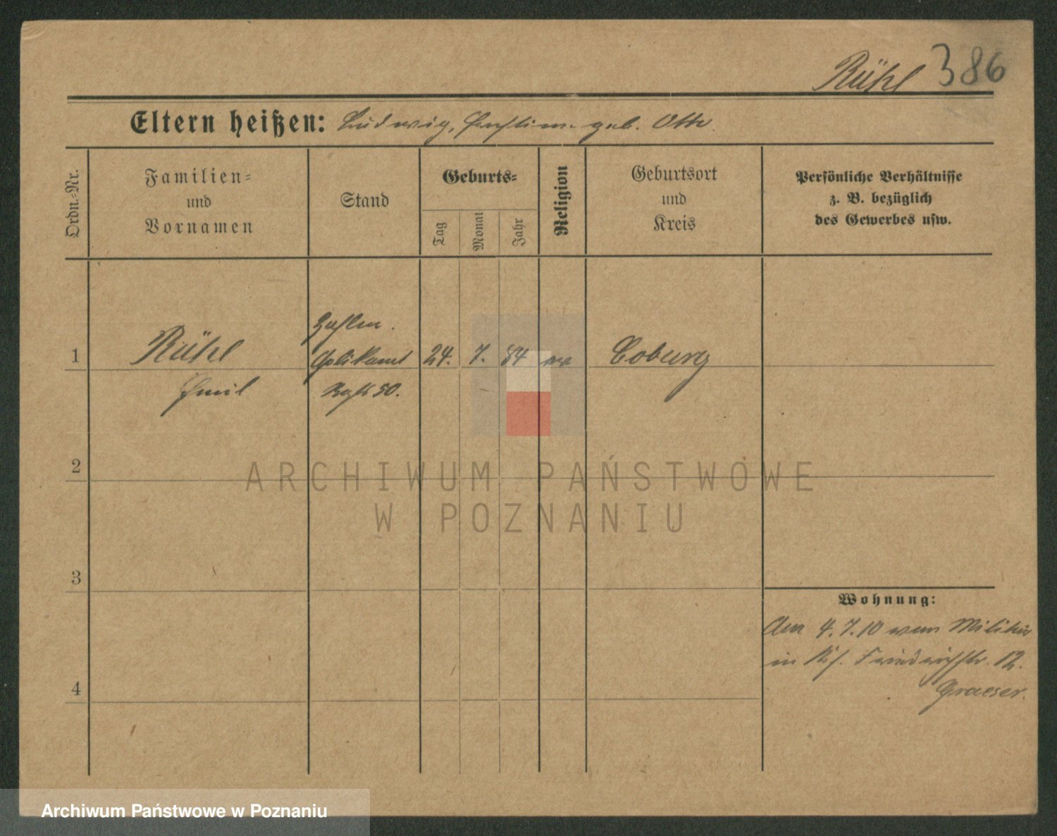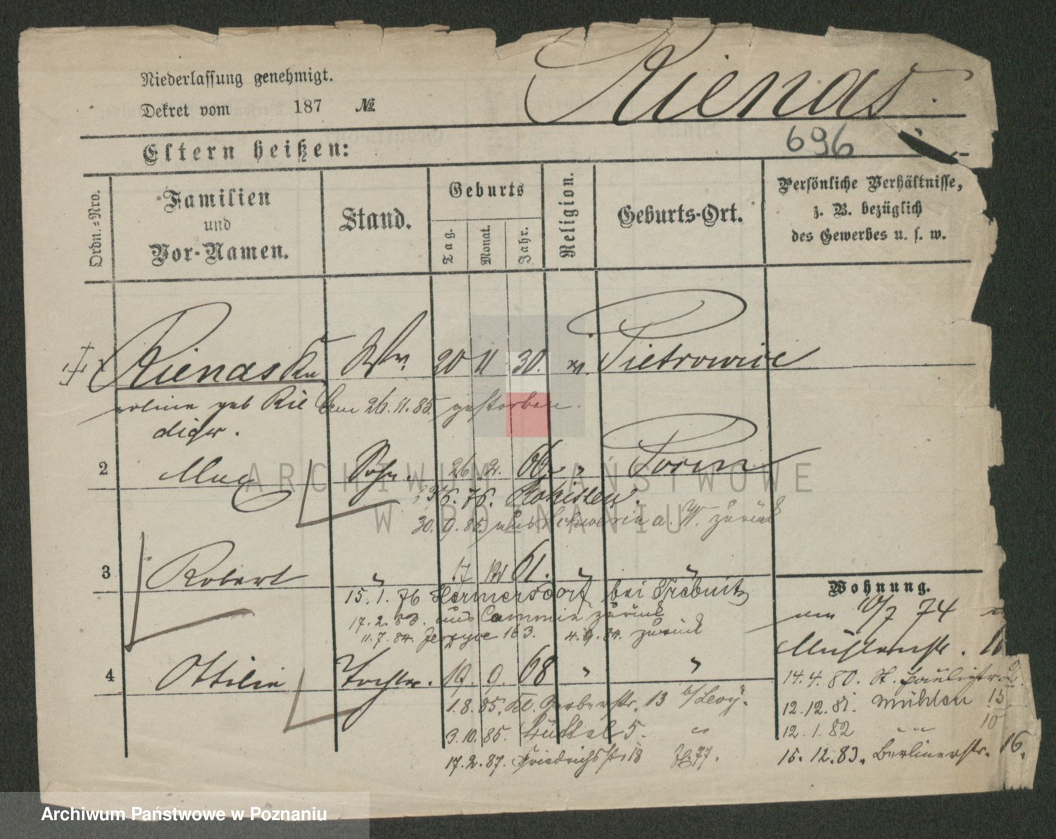 Podgląd karty osobowej dostępny jest po kliknięciu na nazwisko lub ikonkę karty. Można dokonywać powiększenia (ikony na górze) lub przechodzić między kolejnymi skanami (strzałki po bokach).