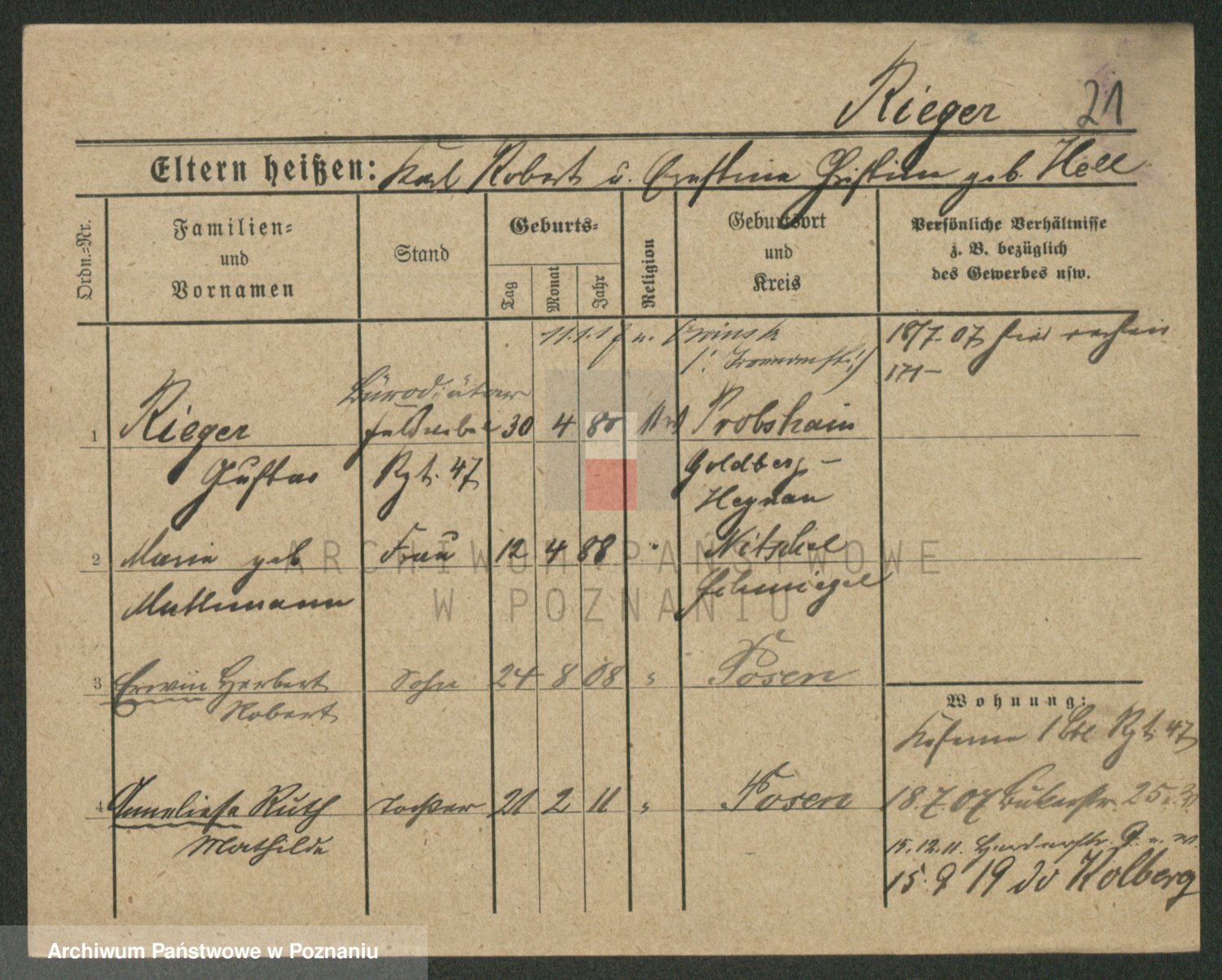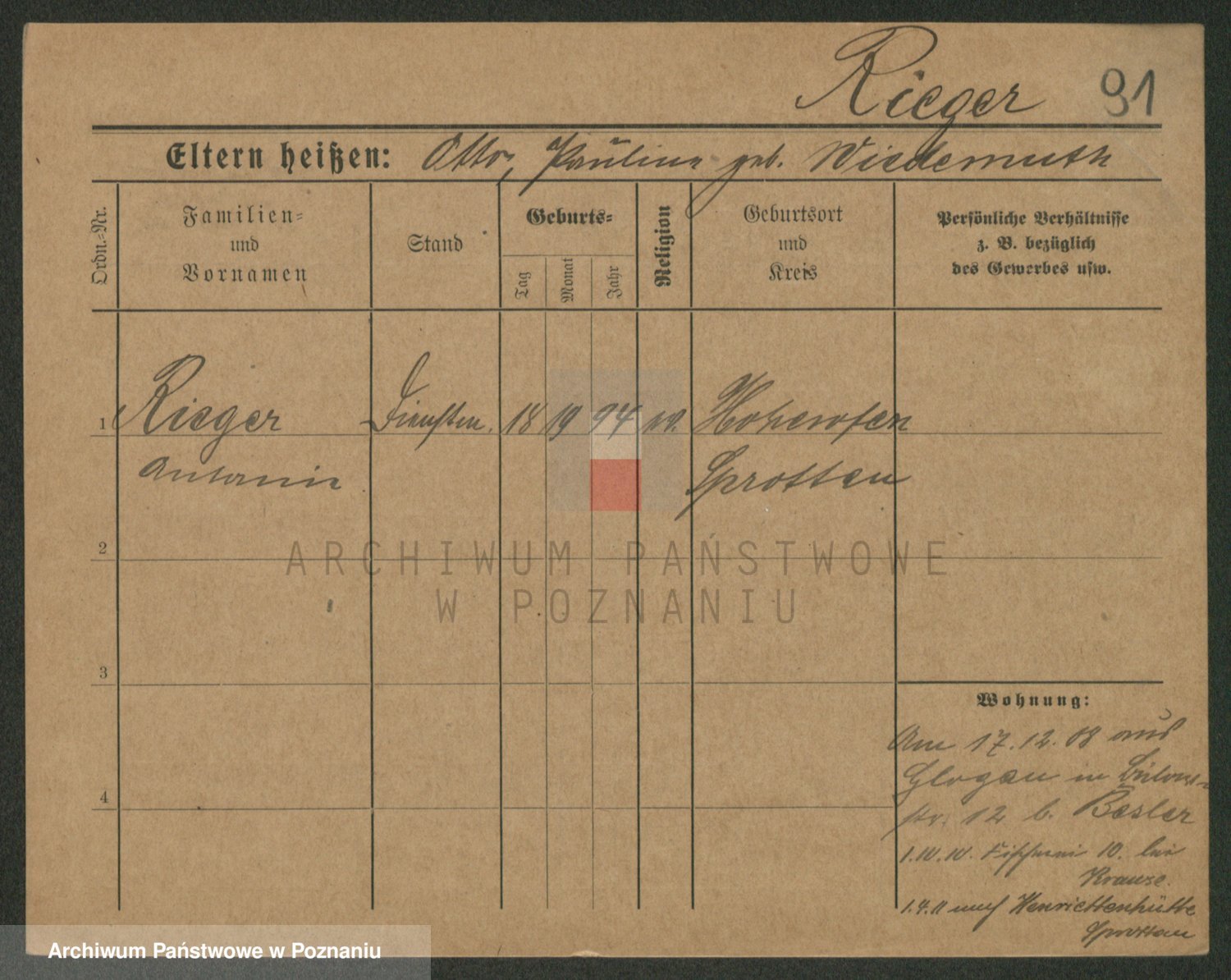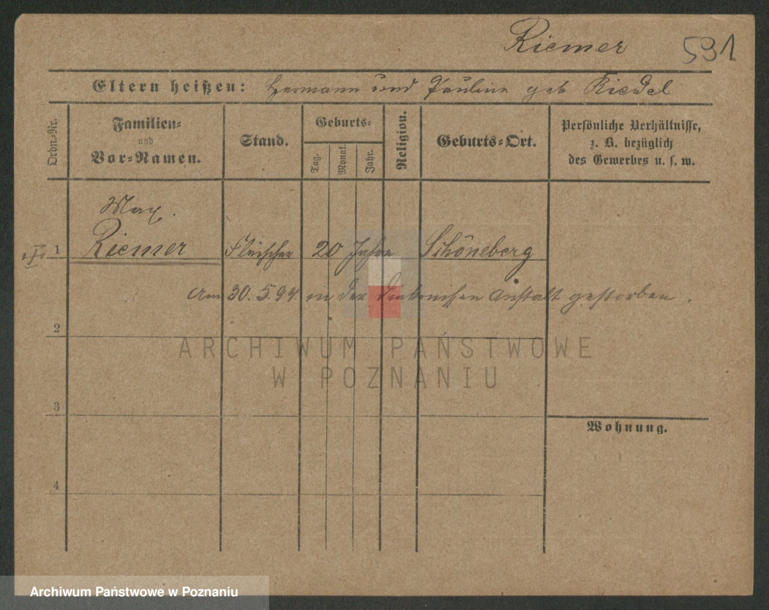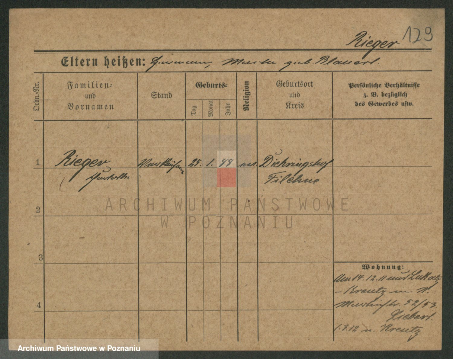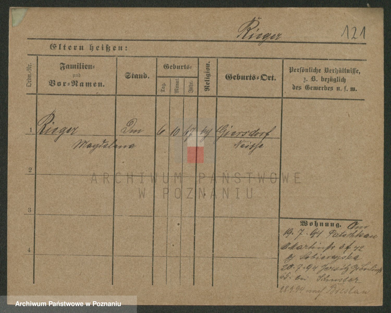 Rieger zd. Schuster, Marie