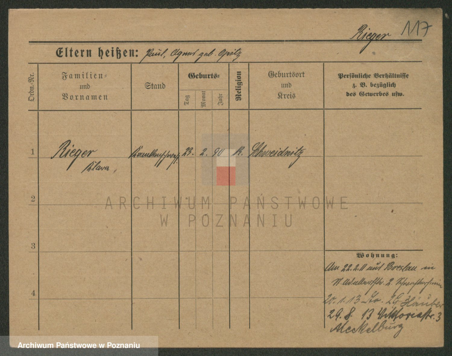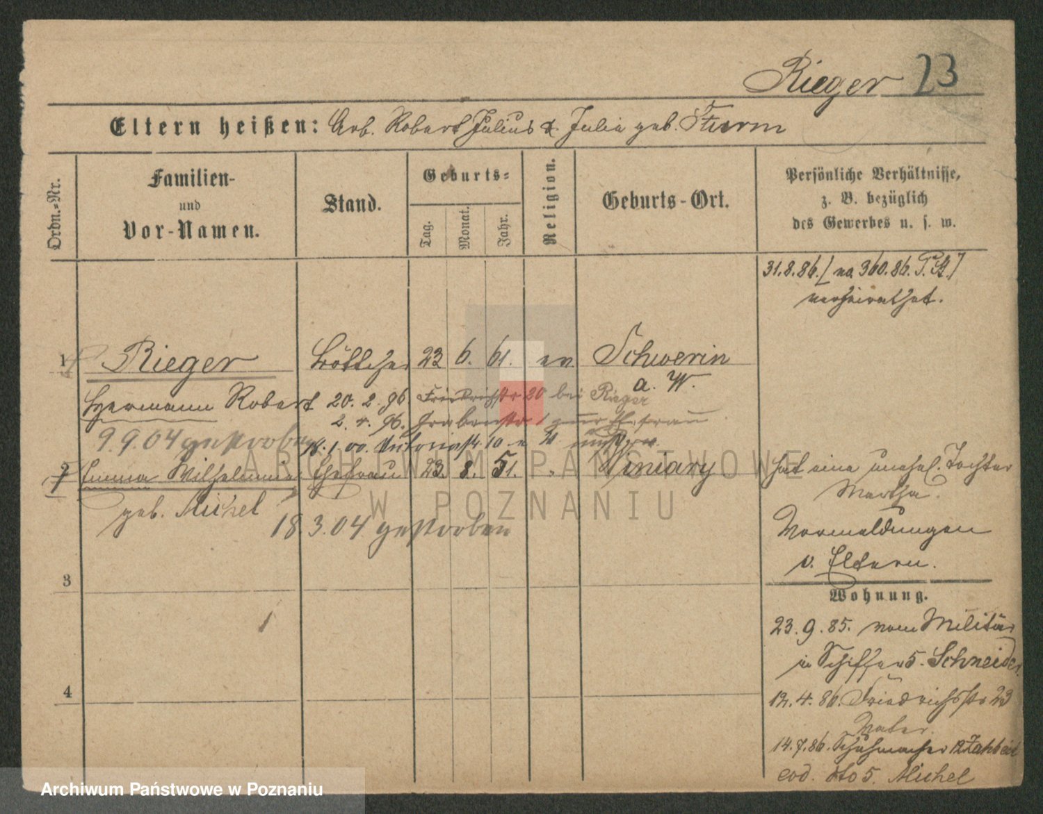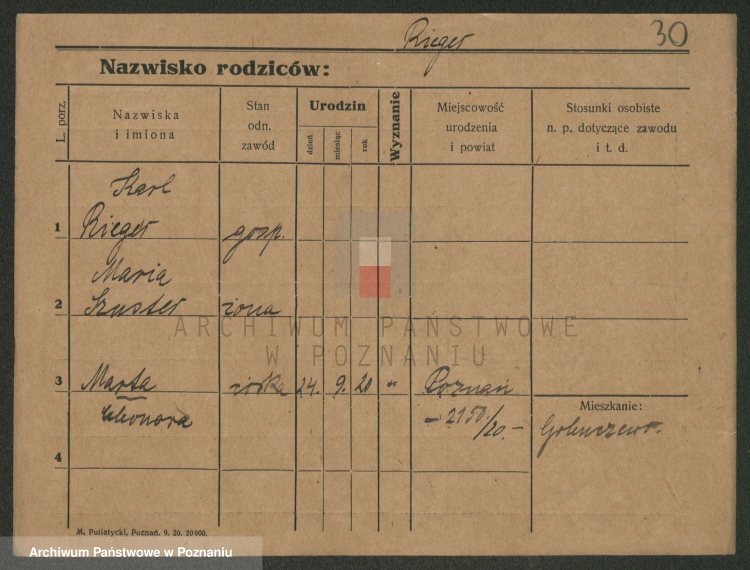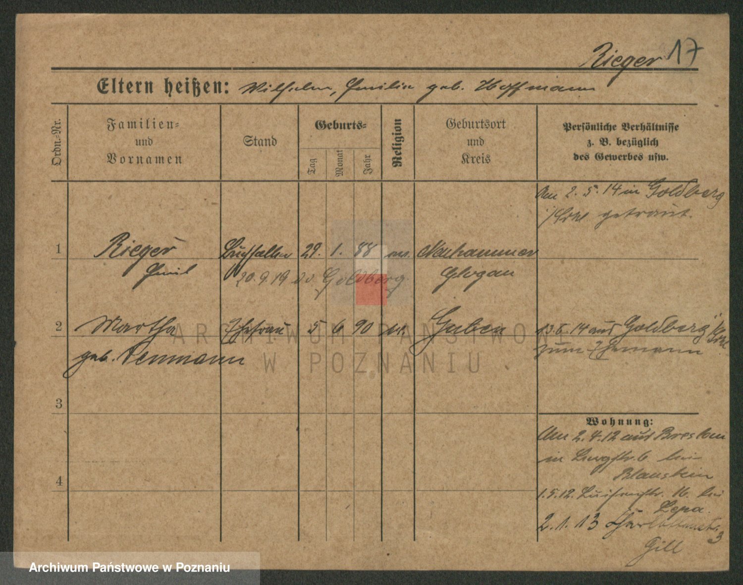 Rieger zd. Schuster, Marie