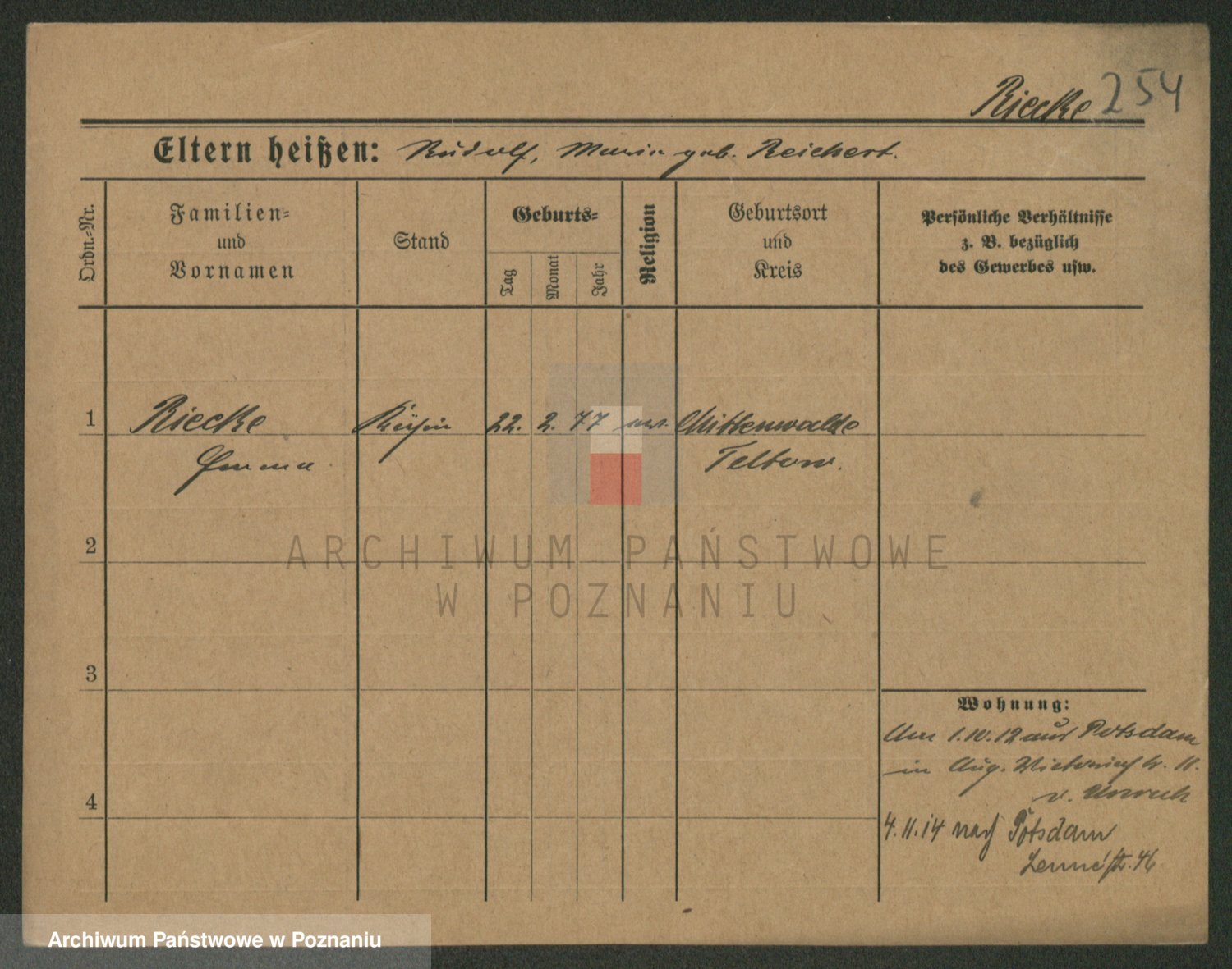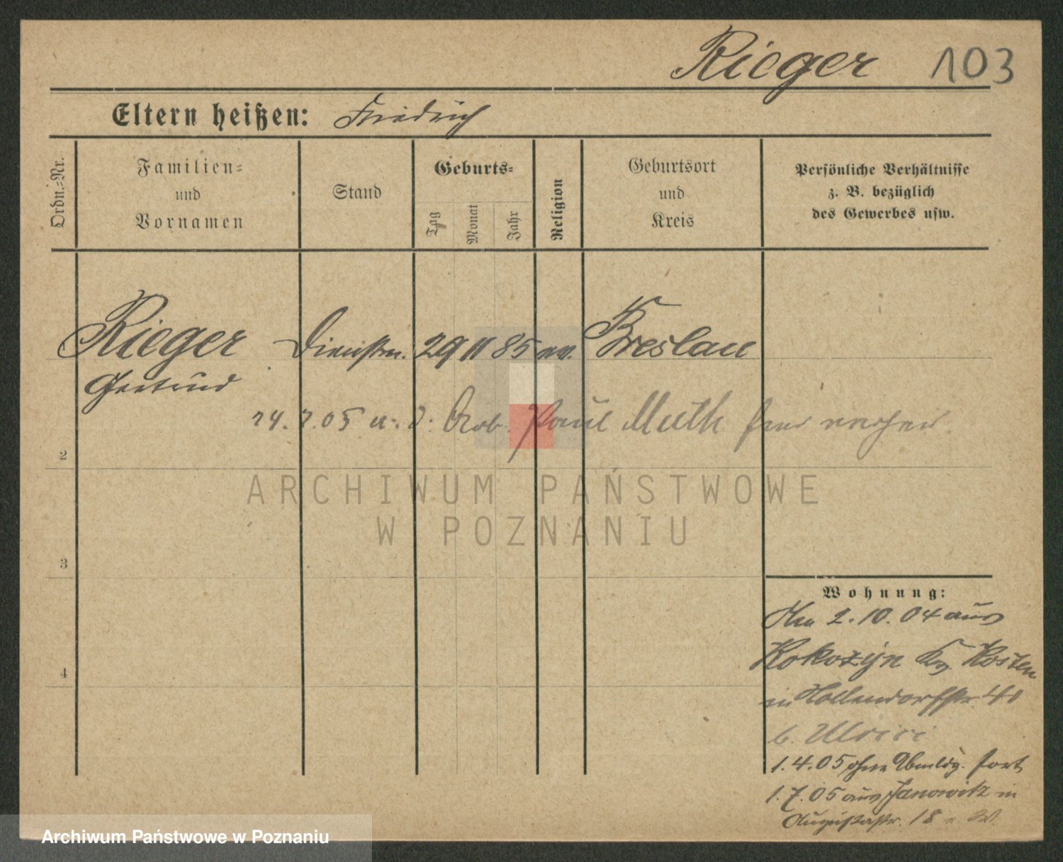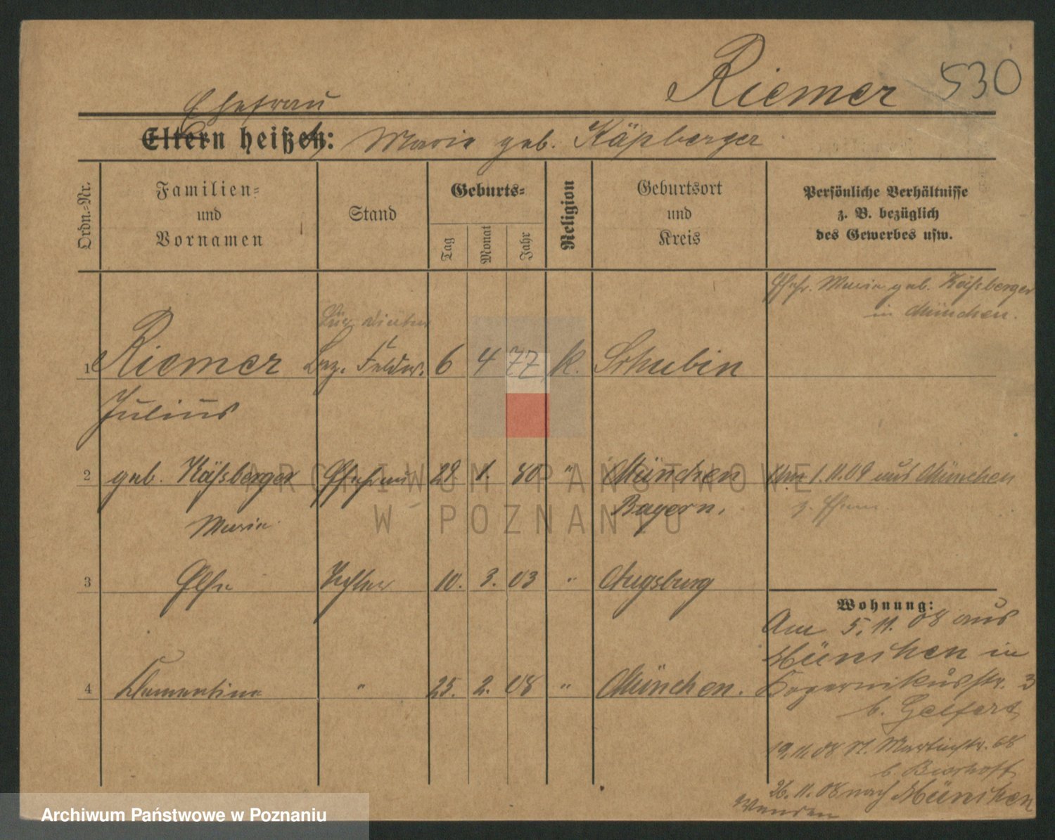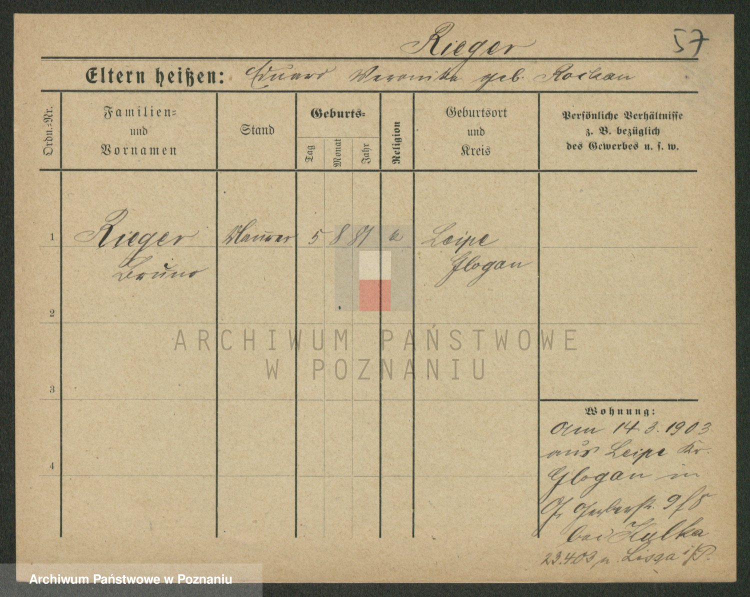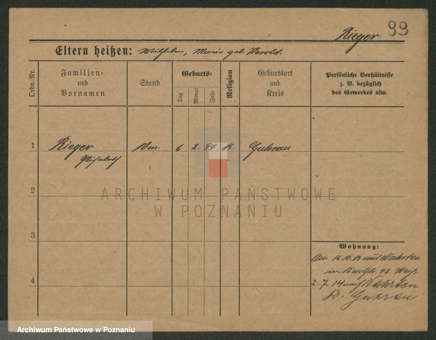 Rieger zd. Schuster, Marie